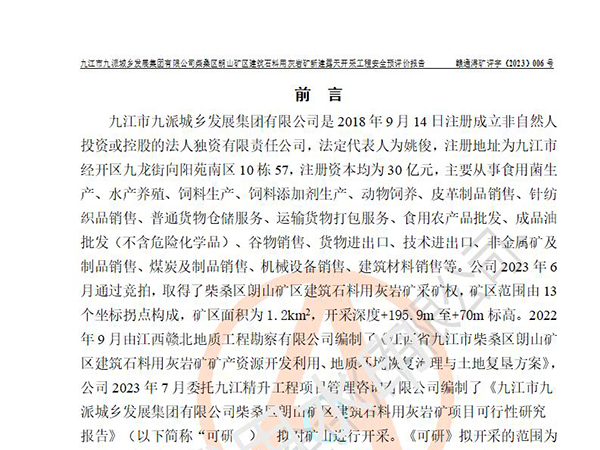 九江市九派城乡发展集团有限公司柴桑区朗山矿区建筑石料用灰岩矿新建露天开采工程安全预评价报告