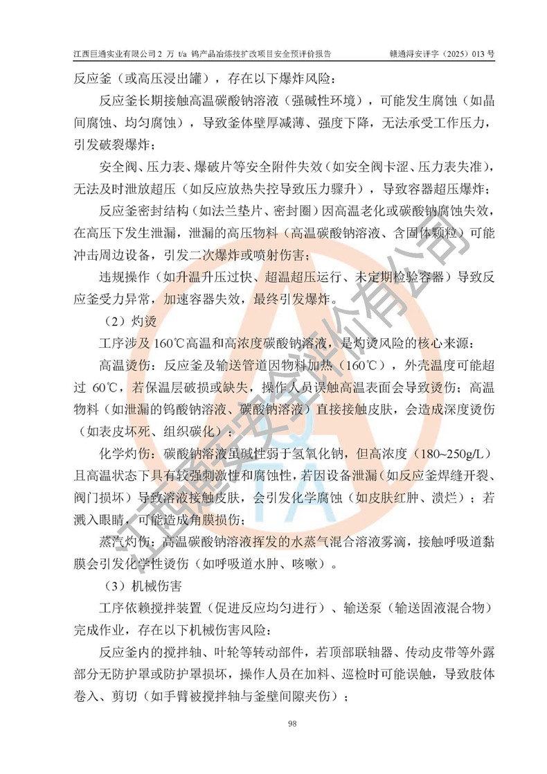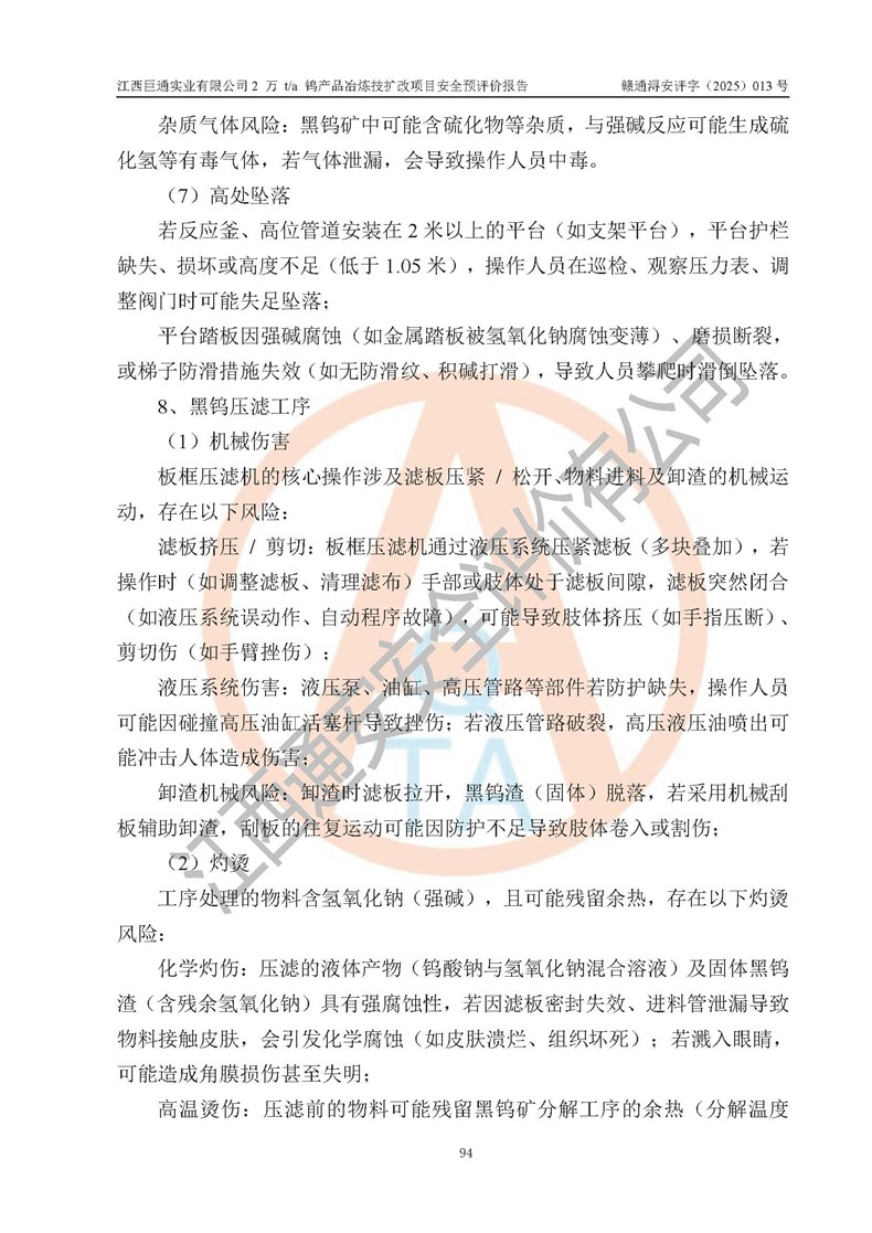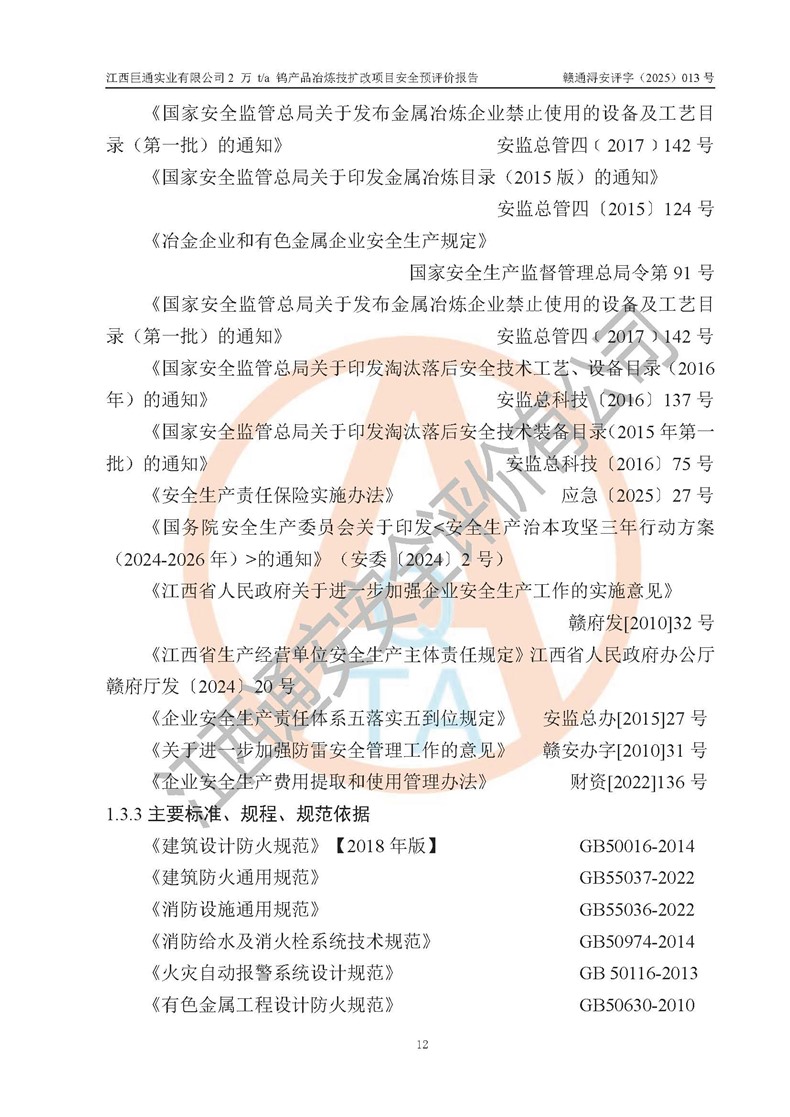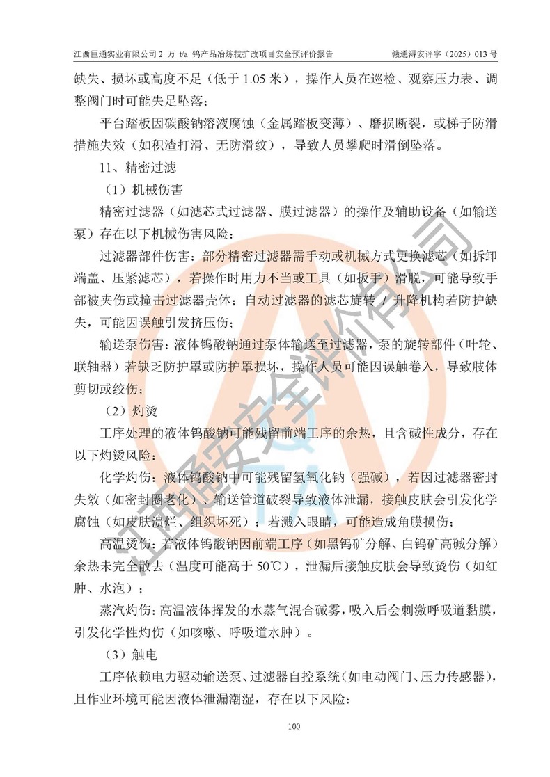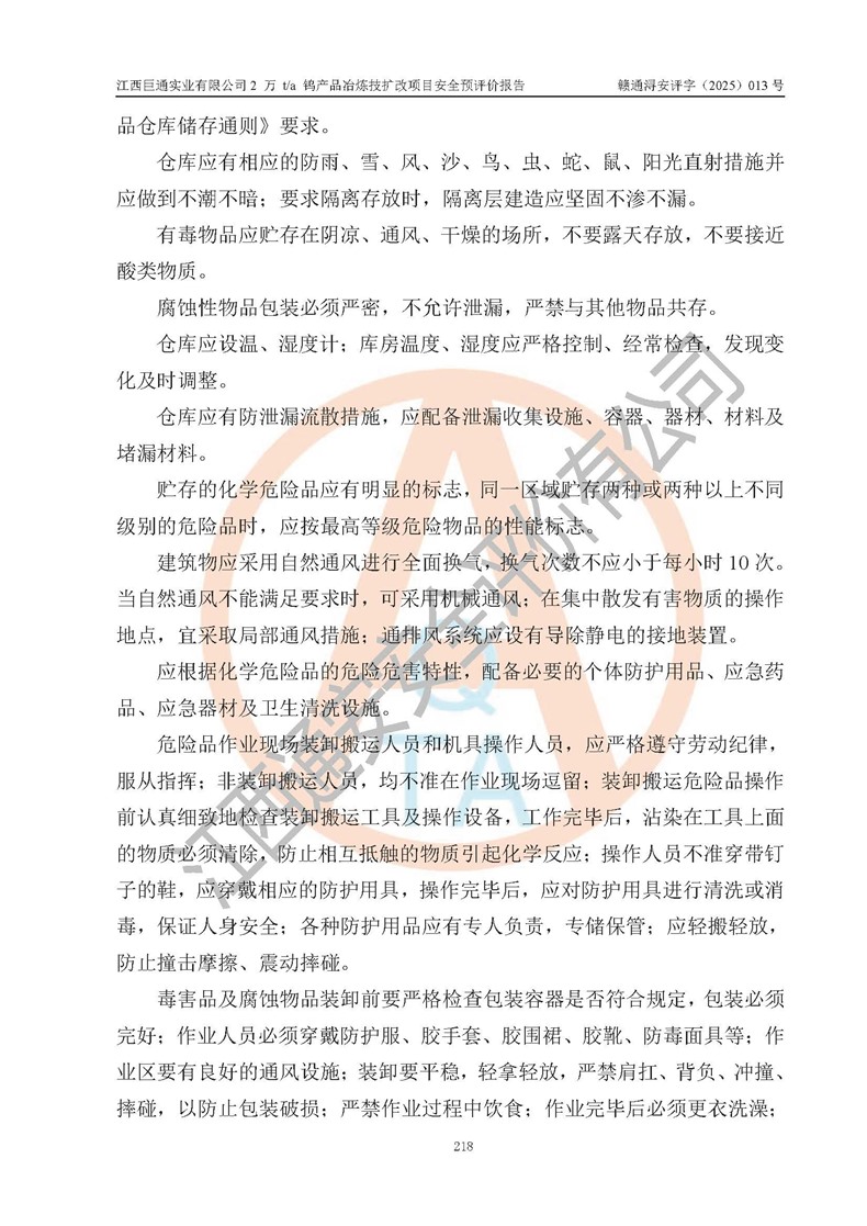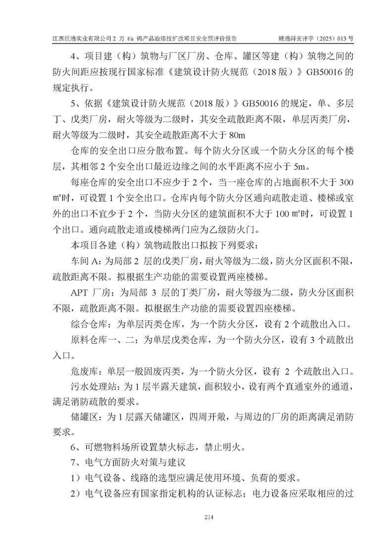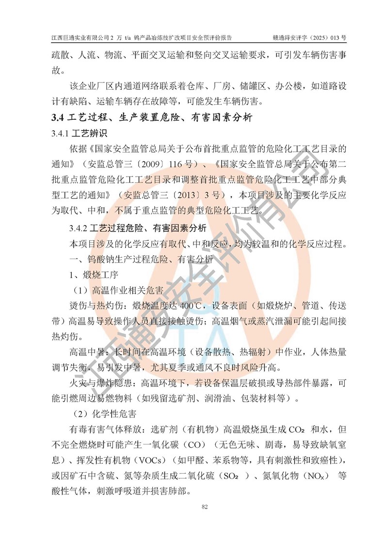 评价报告名称 | 江西巨通实业有限公司2 万 t/a 钨产品冶炼技扩改项目安全预评价报告 | |||