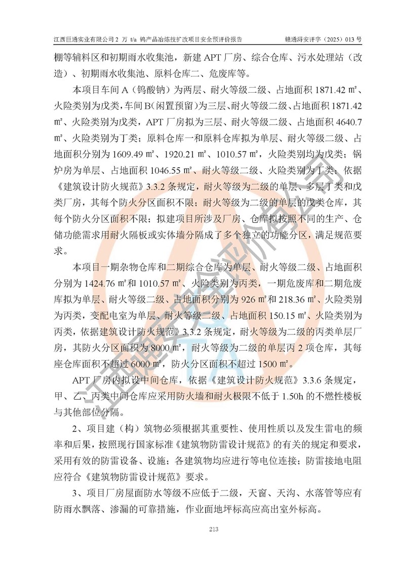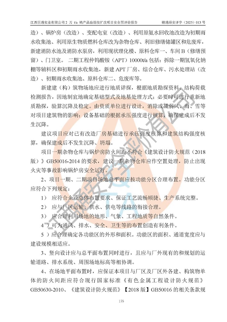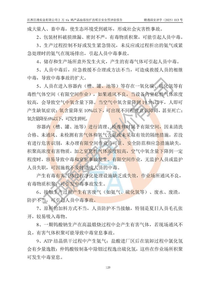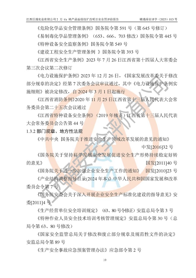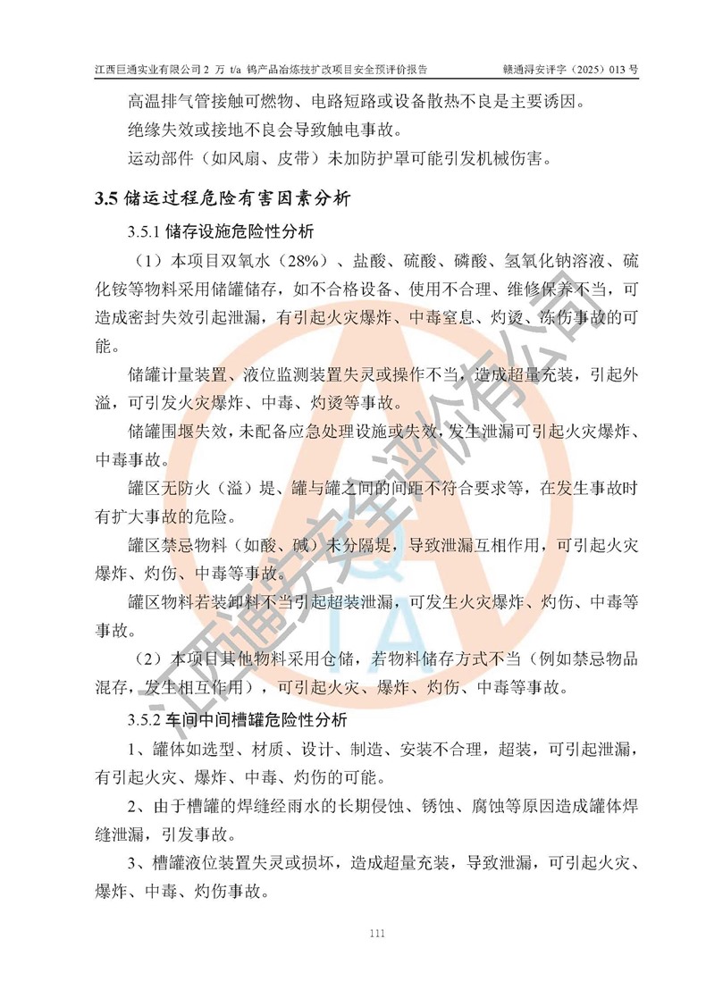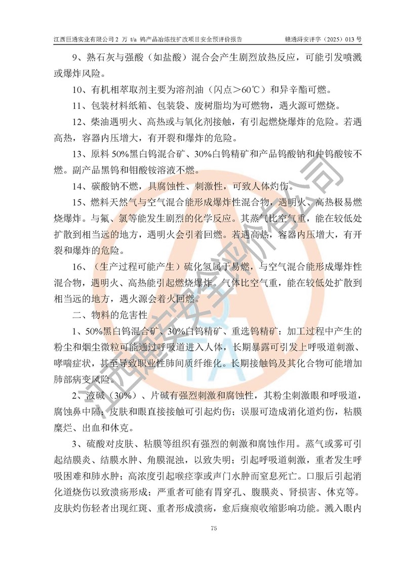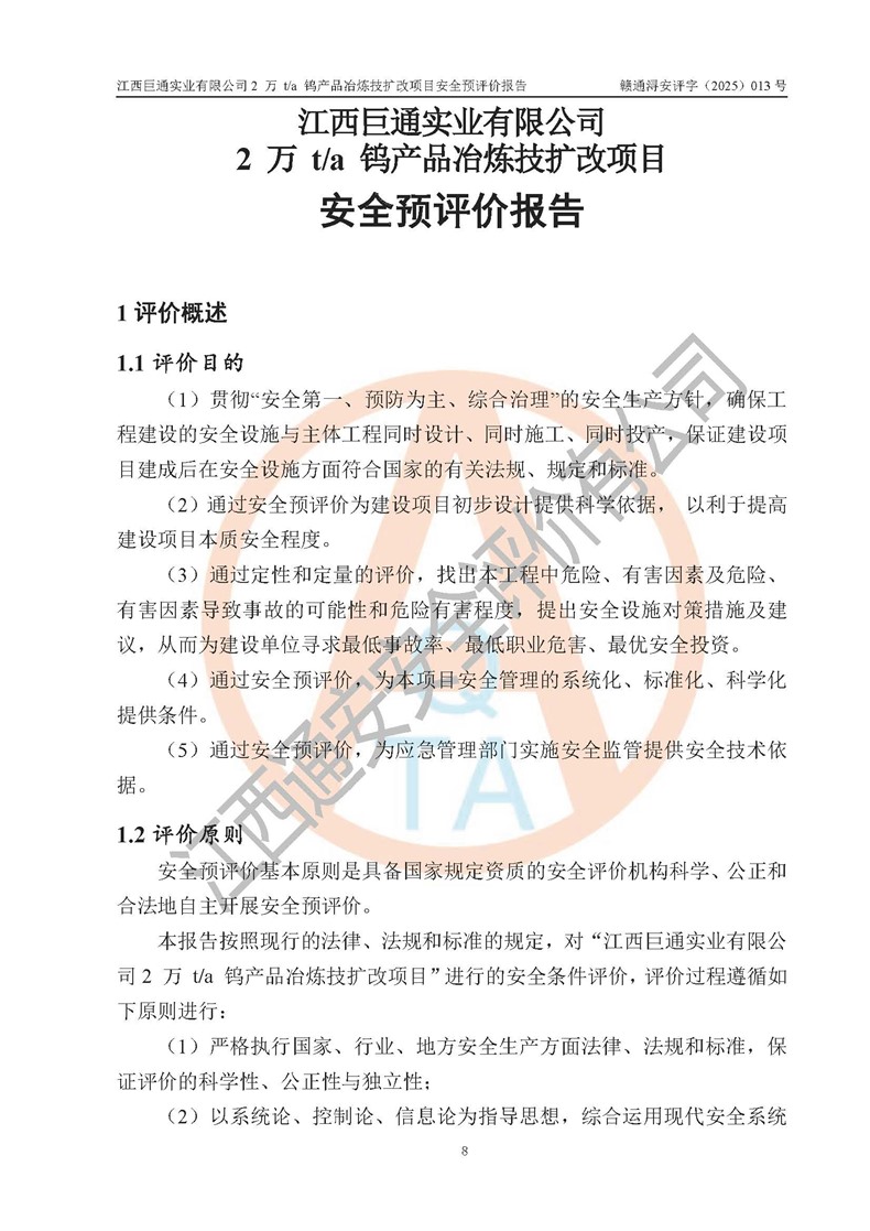 评价报告名称 | 江西巨通实业有限公司2 万 t/a 钨产品冶炼技扩改项目安全预评价报告 | |||