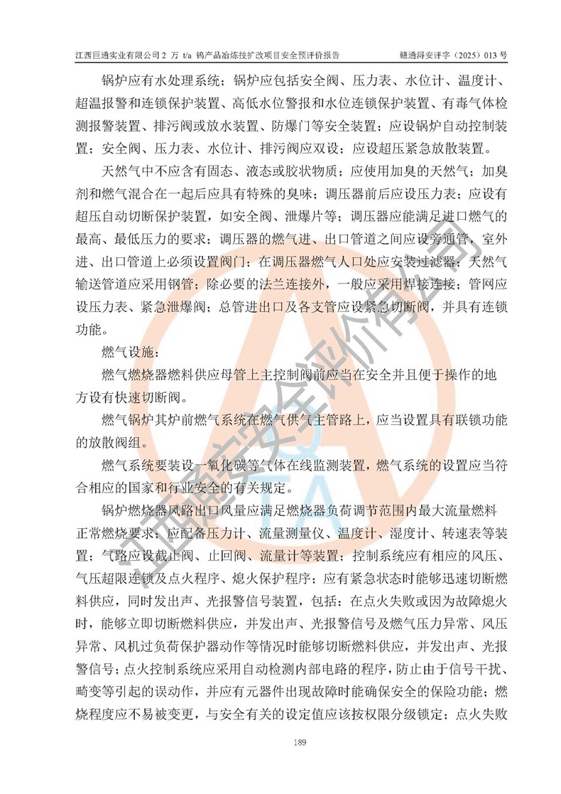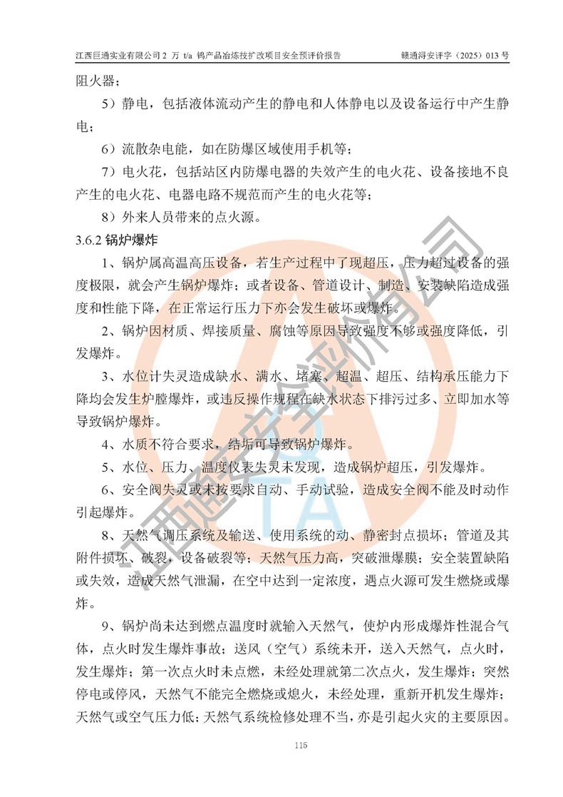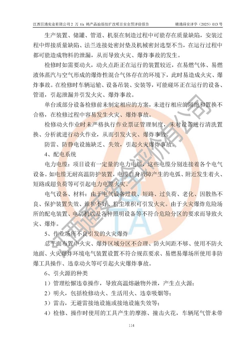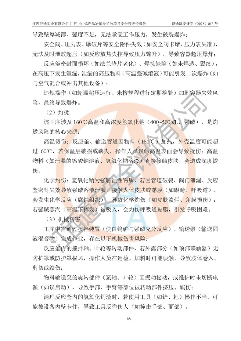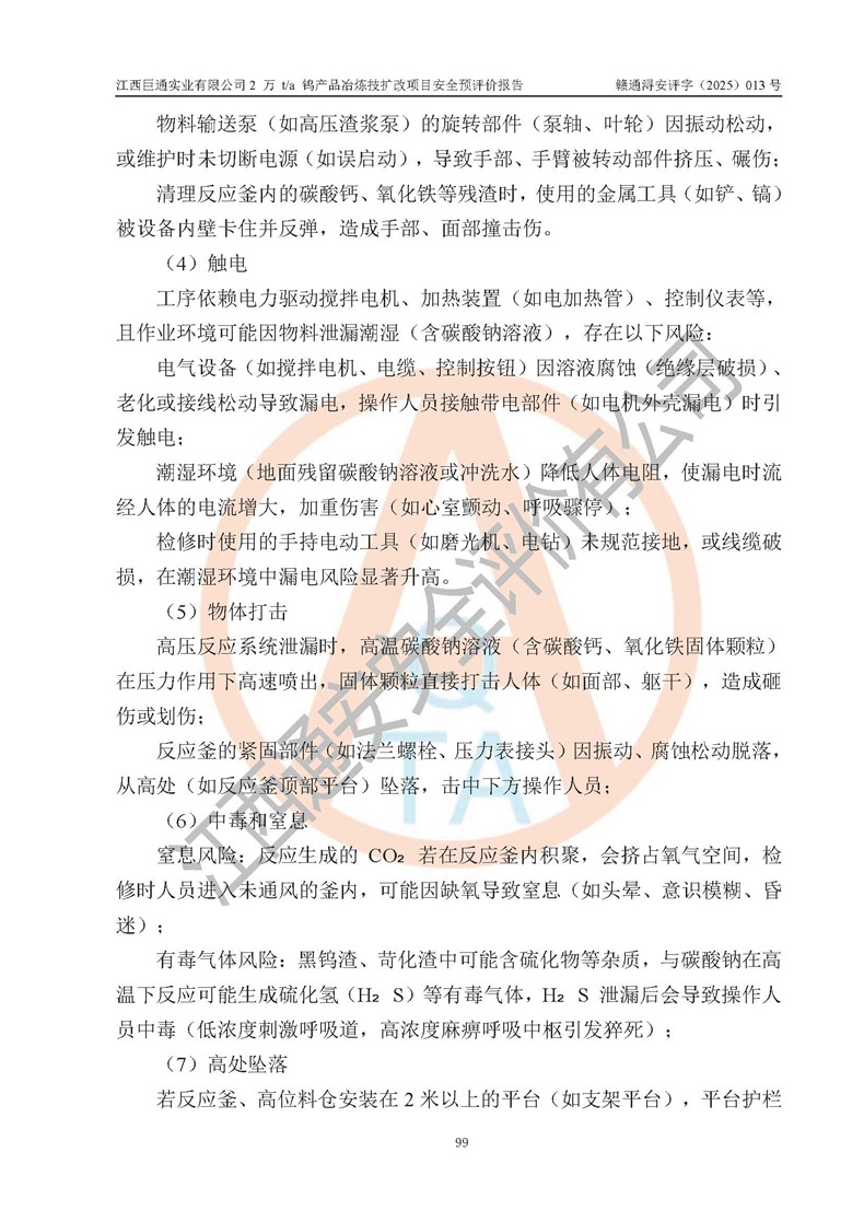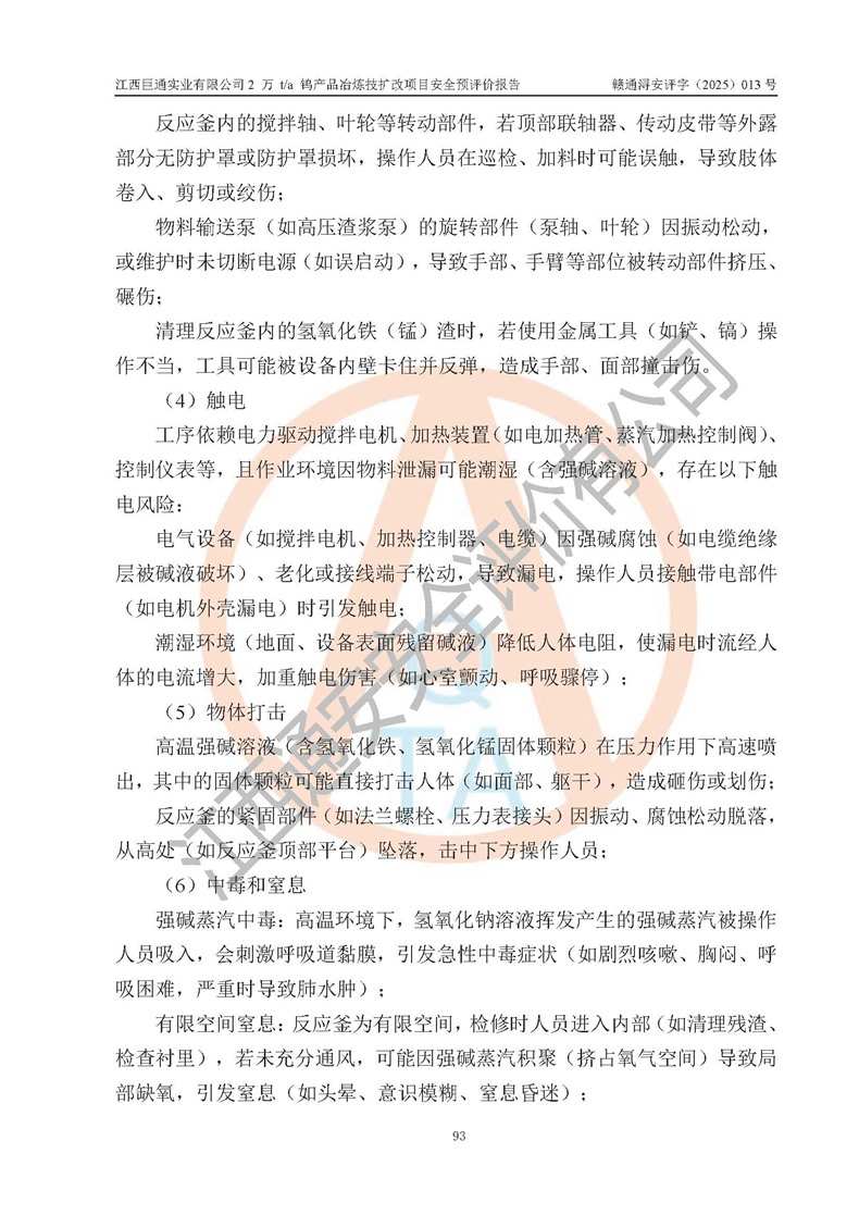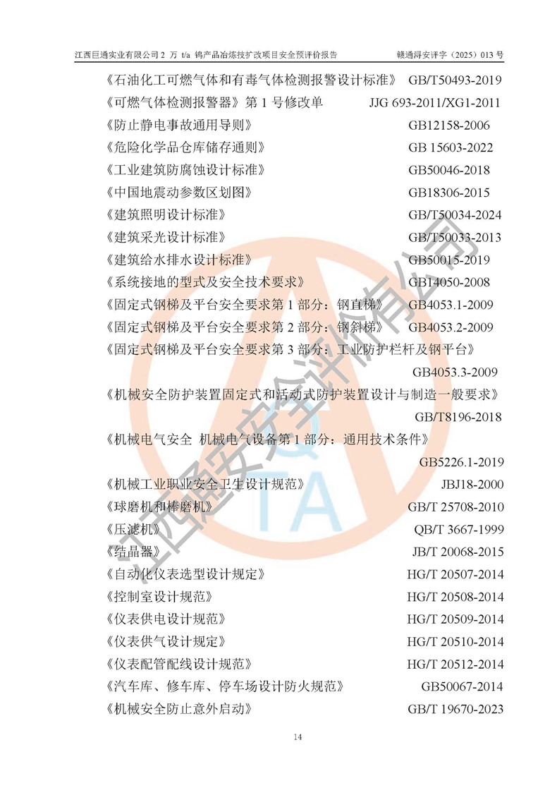 评价报告名称 | 江西巨通实业有限公司2 万 t/a 钨产品冶炼技扩改项目安全预评价报告 | |||