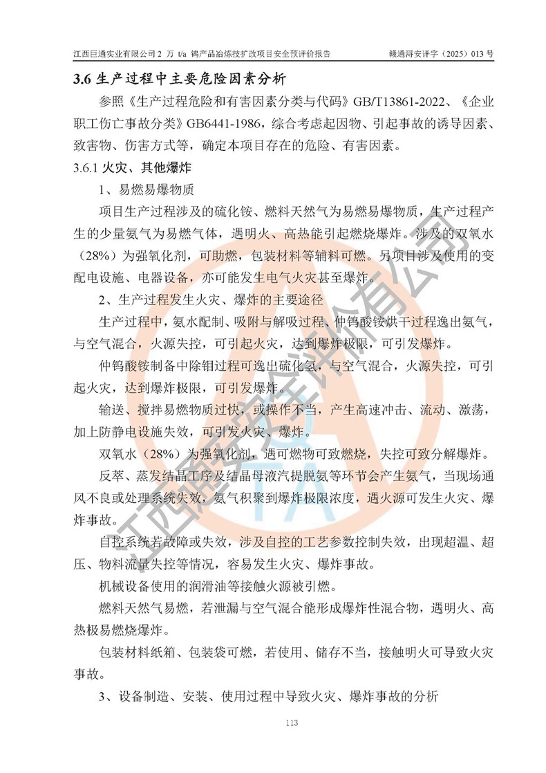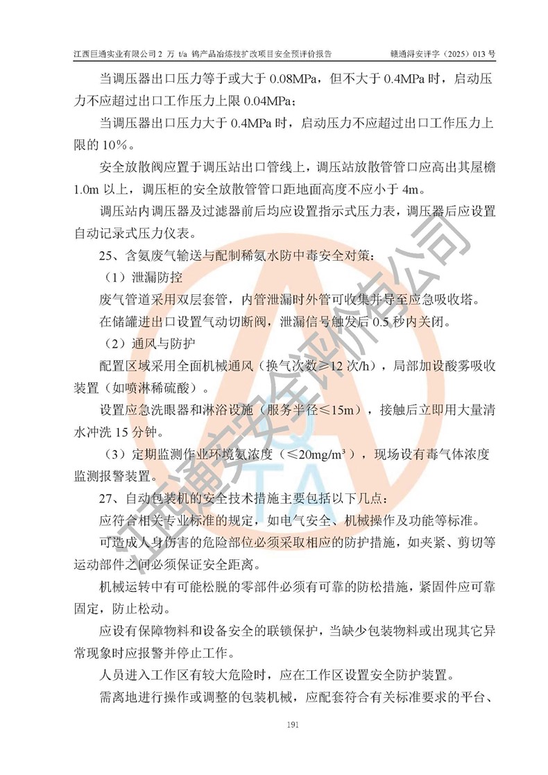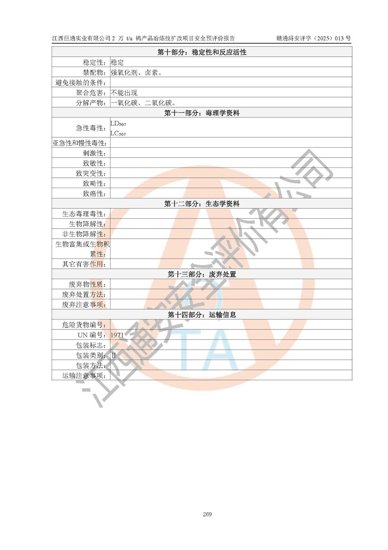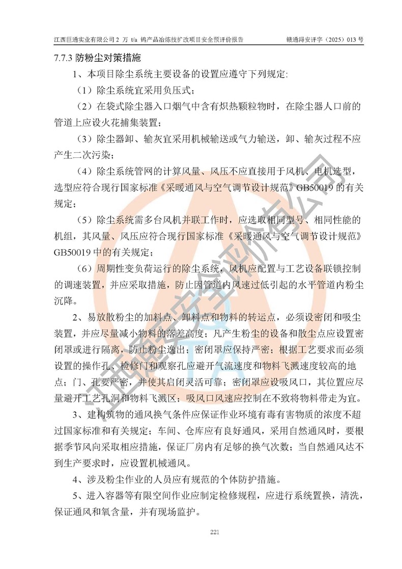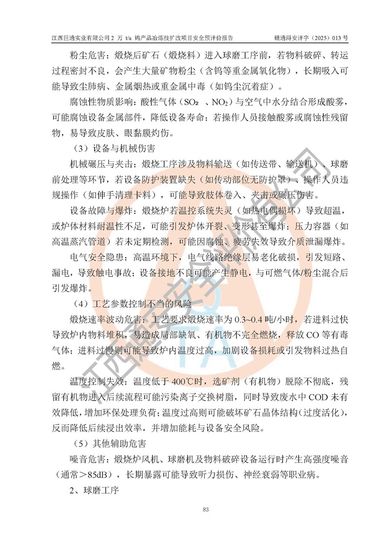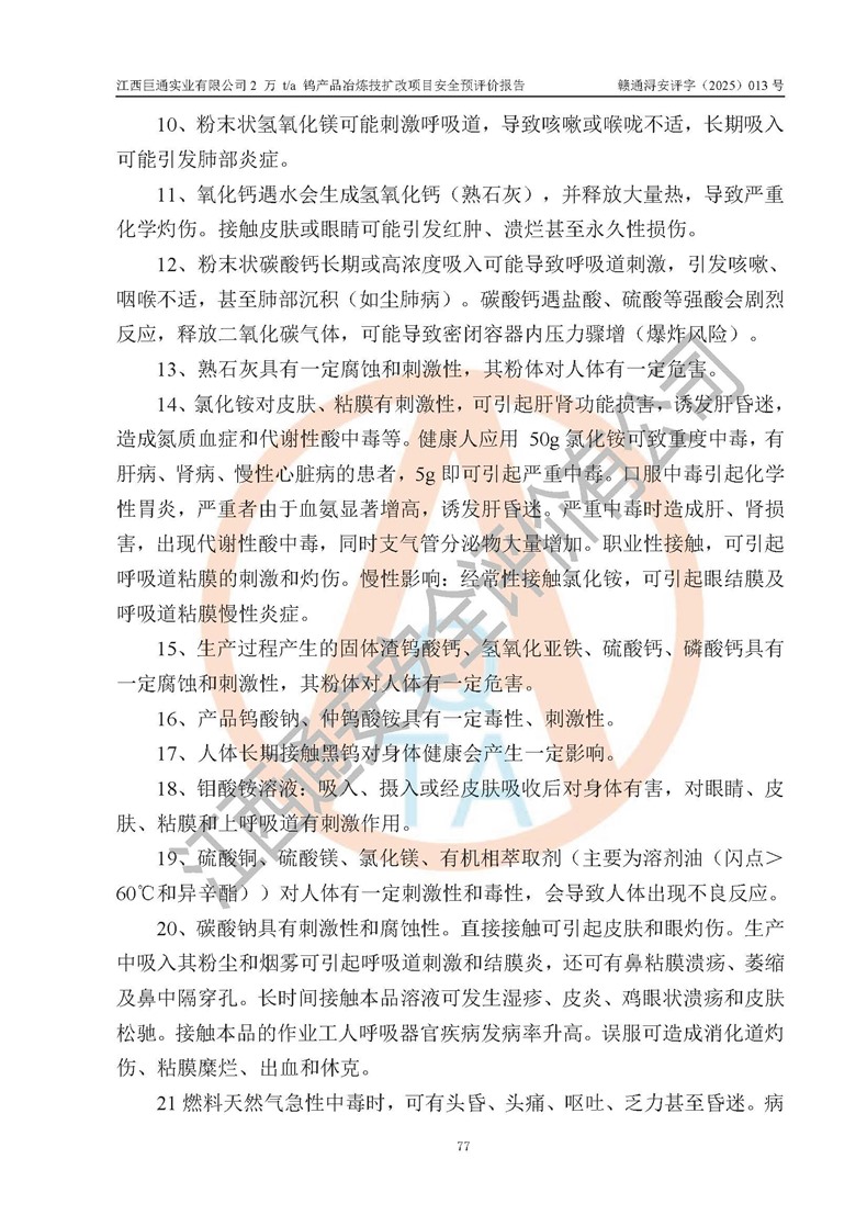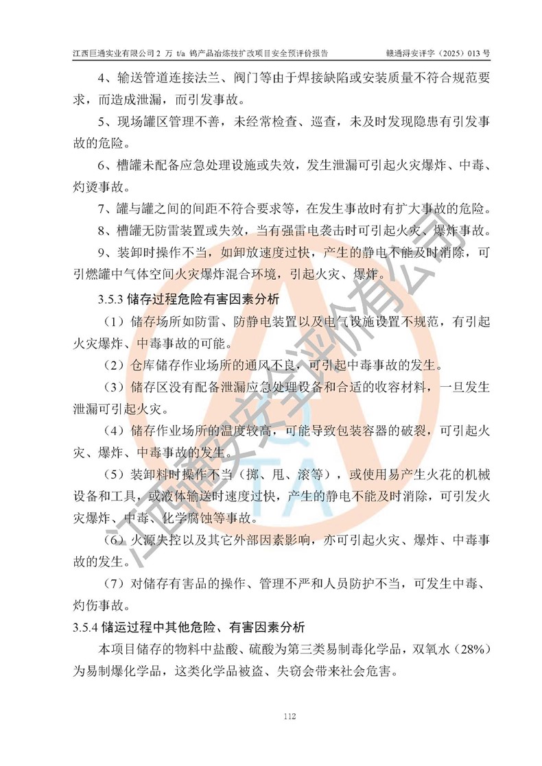 评价报告名称 | 江西巨通实业有限公司2 万 t/a 钨产品冶炼技扩改项目安全预评价报告 | |||