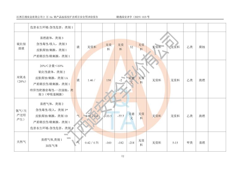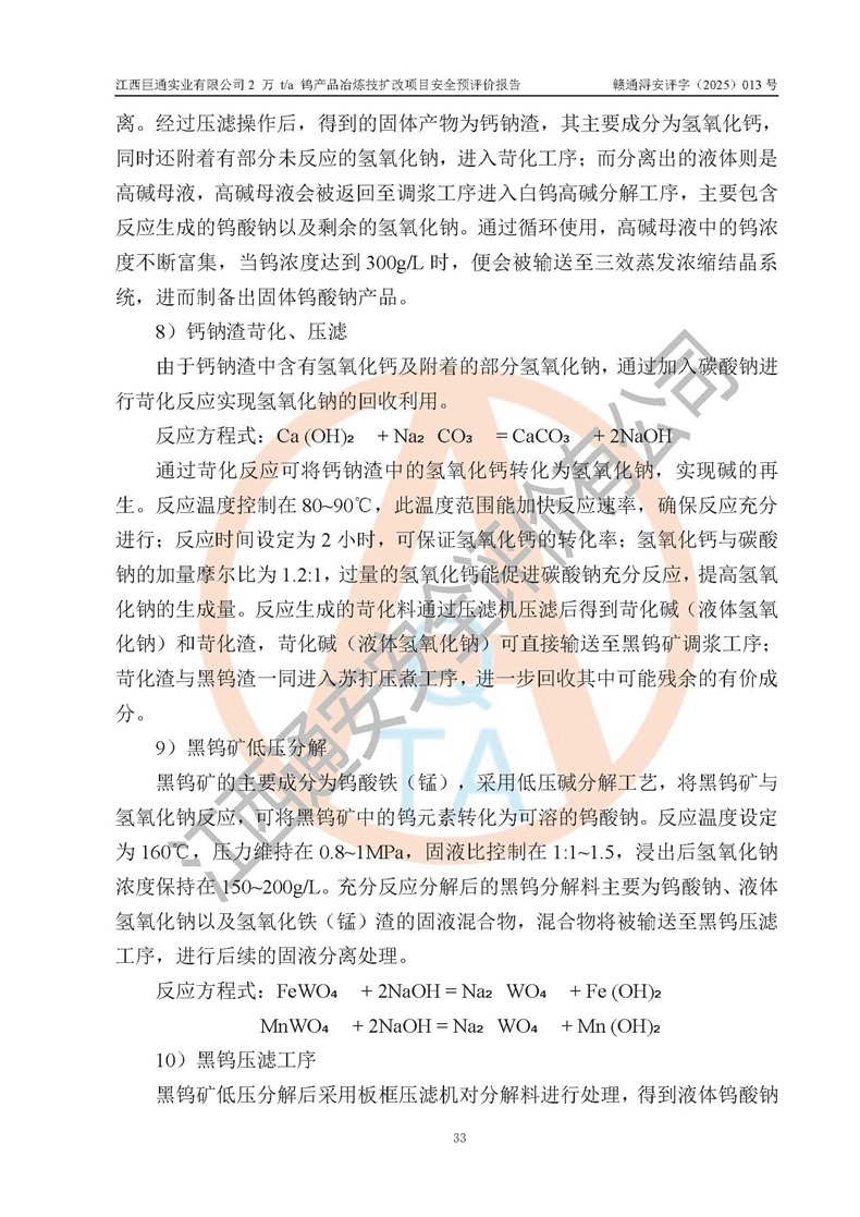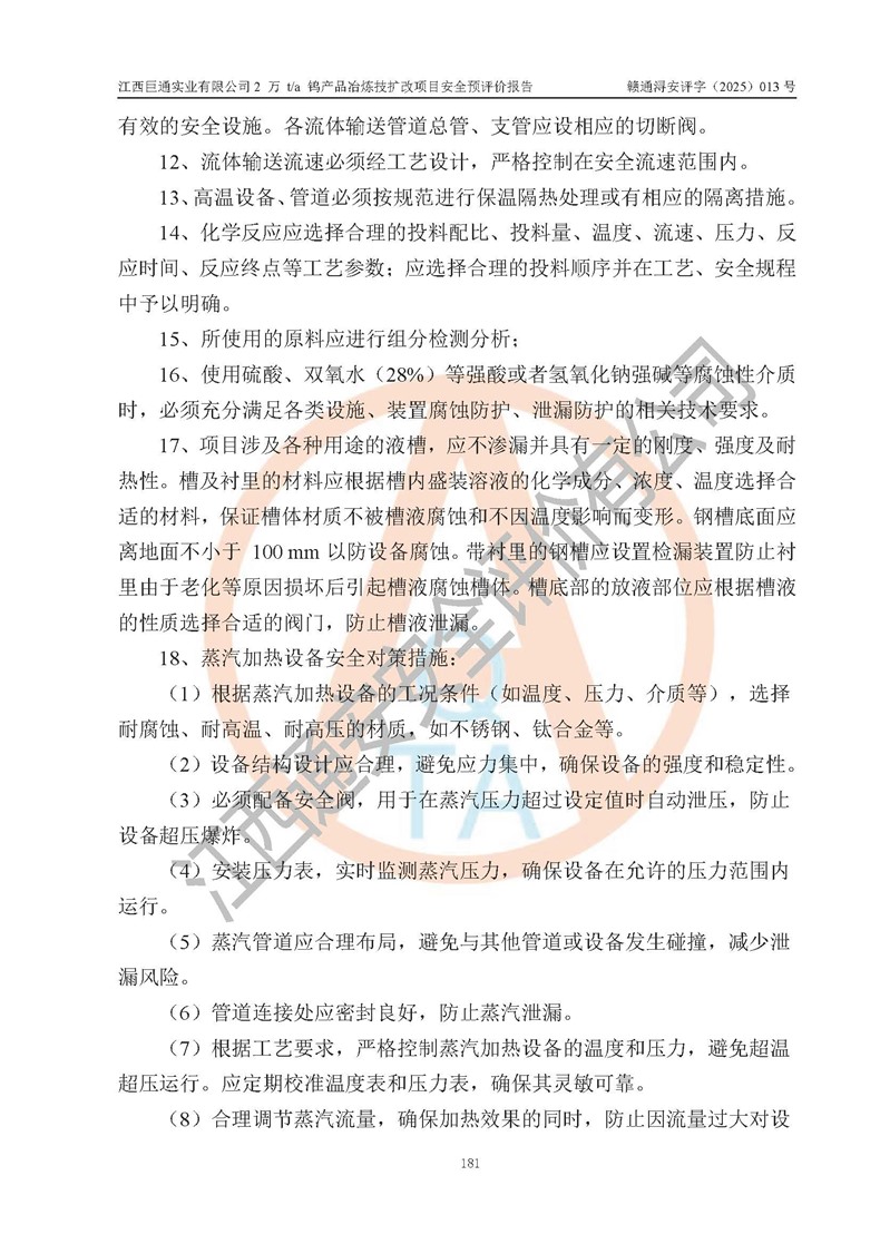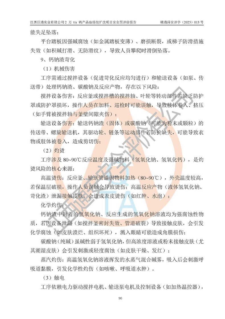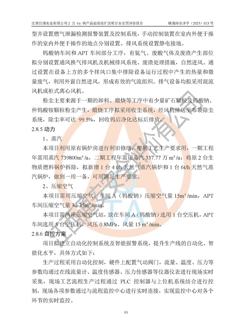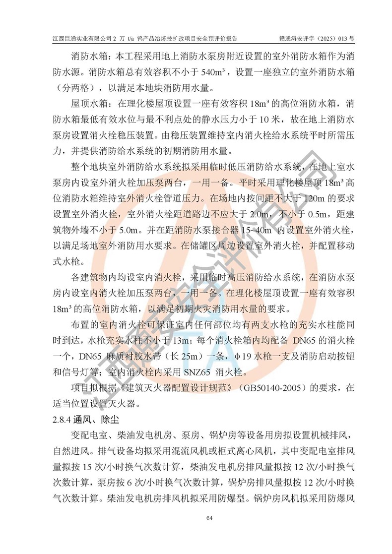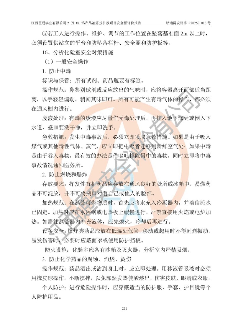 评价报告名称 | 江西巨通实业有限公司2 万 t/a 钨产品冶炼技扩改项目安全预评价报告 | |||