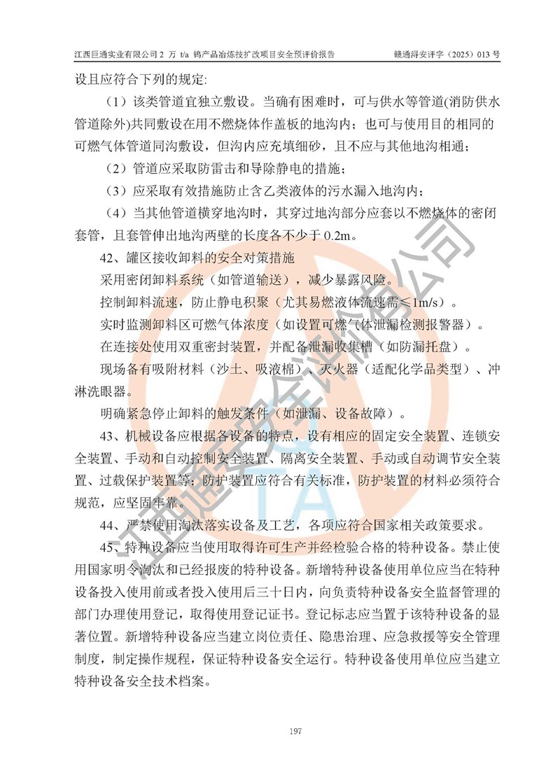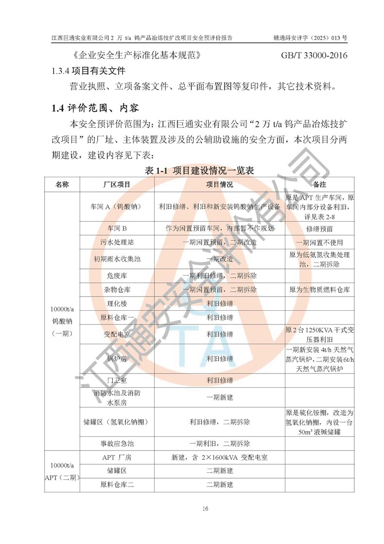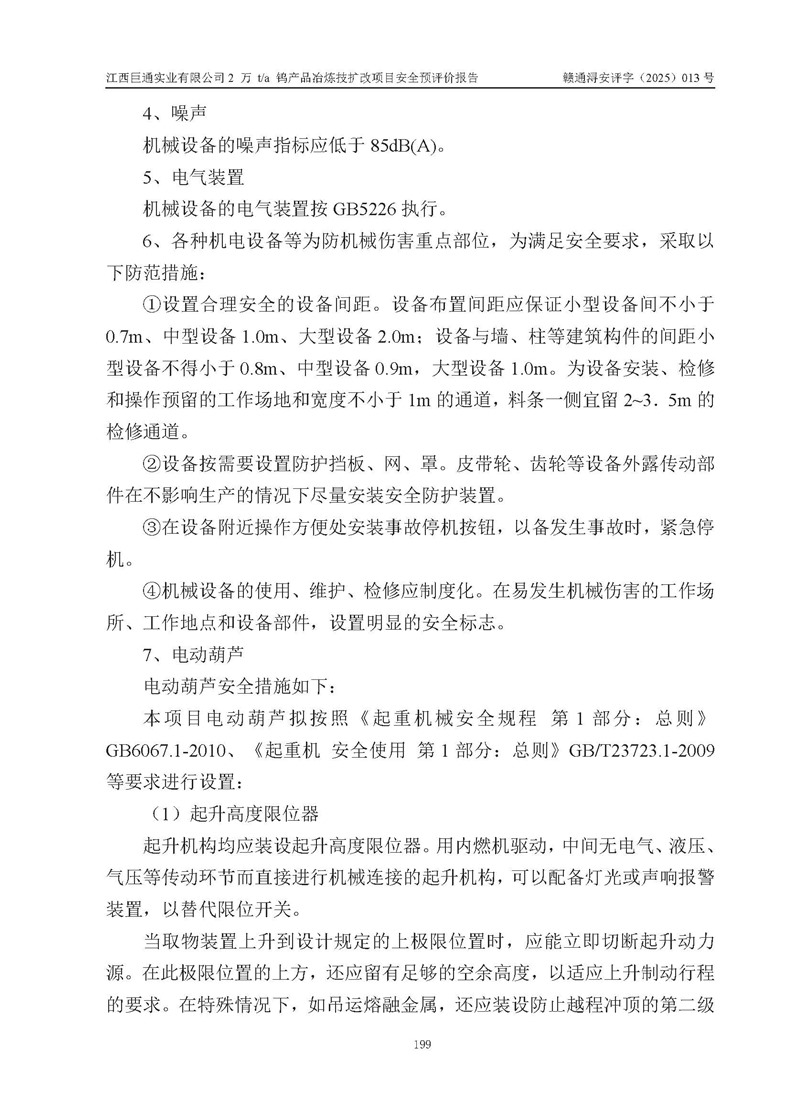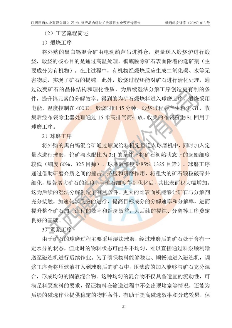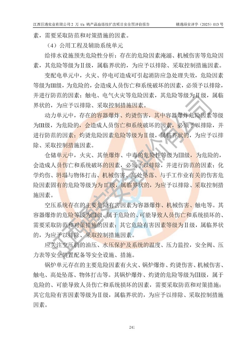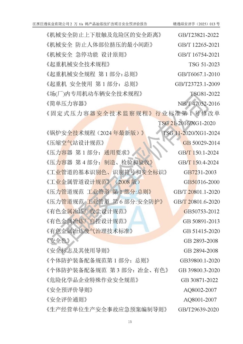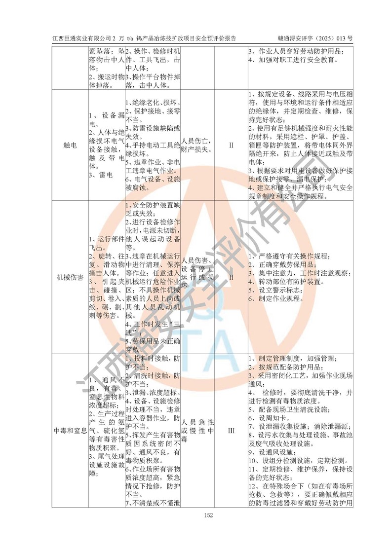 评价报告名称 | 江西巨通实业有限公司2 万 t/a 钨产品冶炼技扩改项目安全预评价报告 | |||