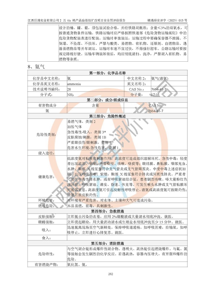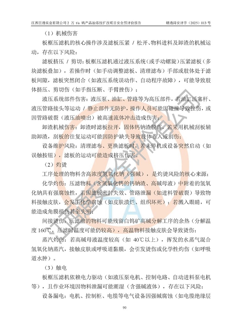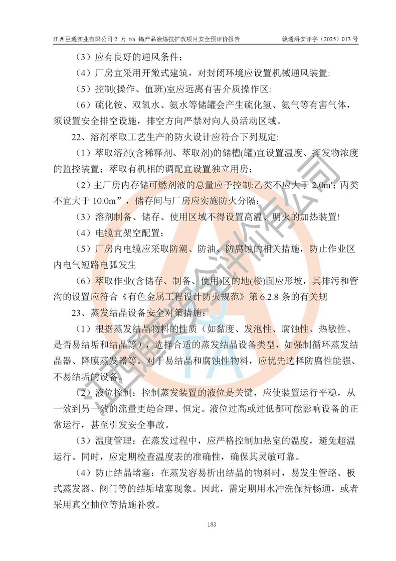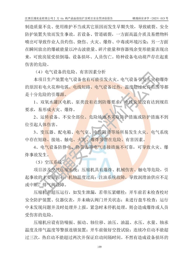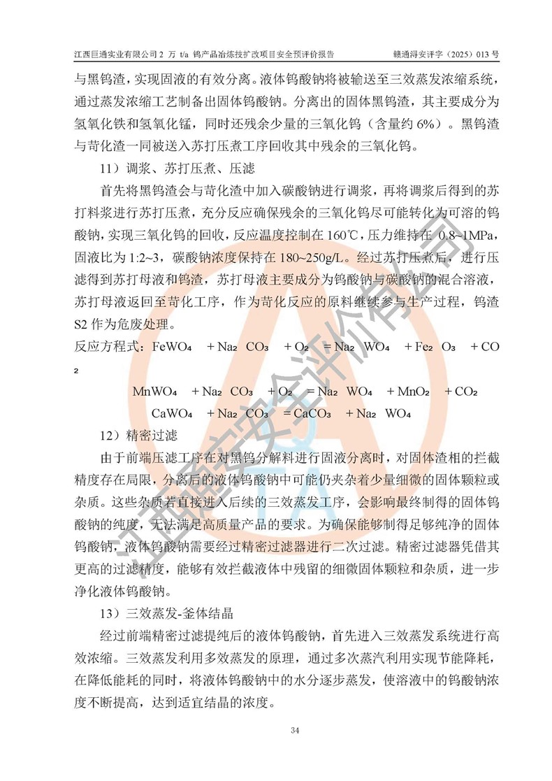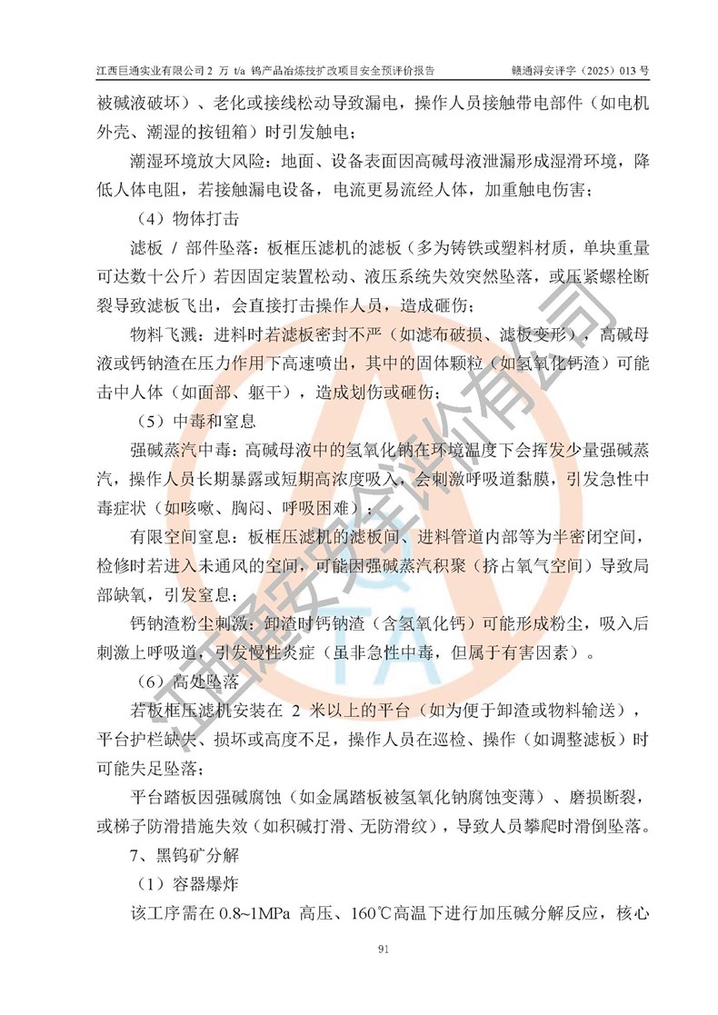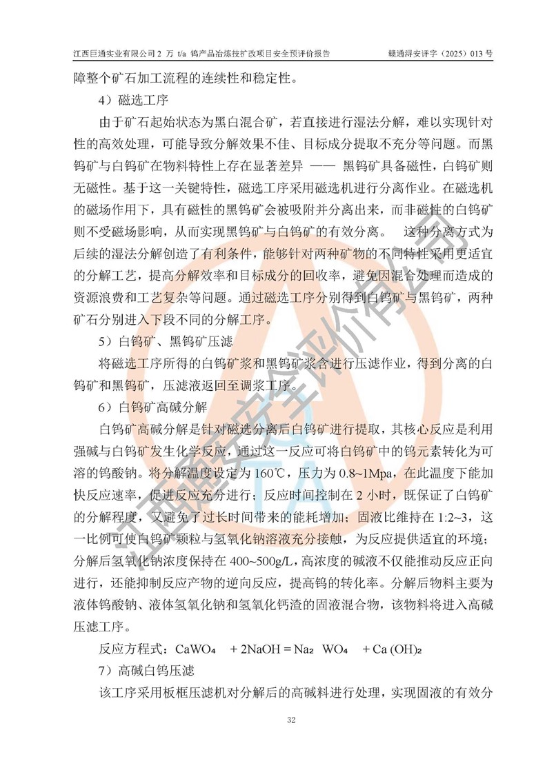 评价报告名称 | 江西巨通实业有限公司2 万 t/a 钨产品冶炼技扩改项目安全预评价报告 | |||