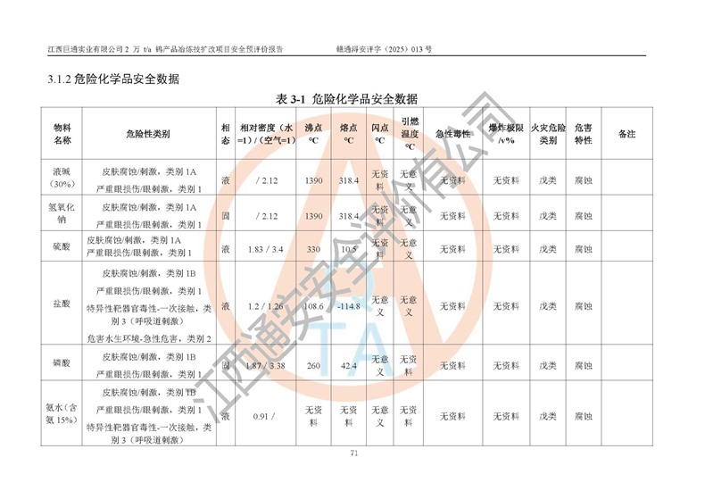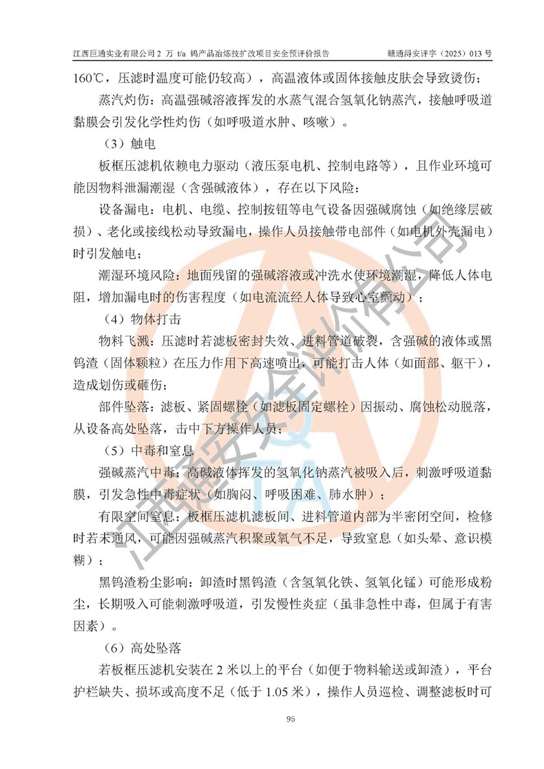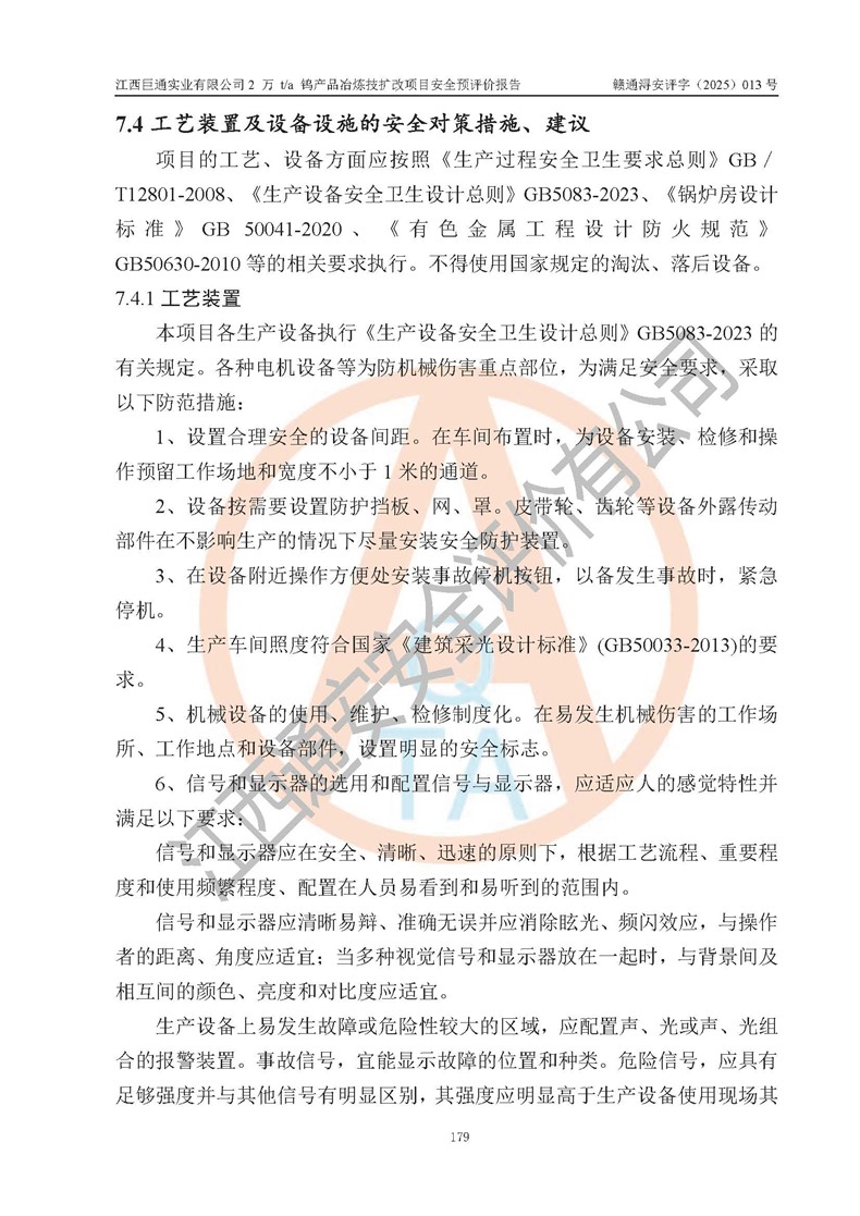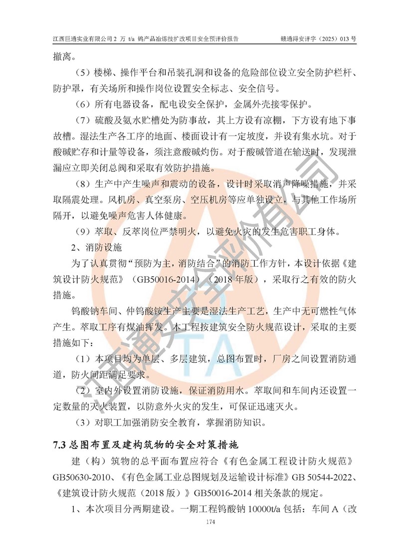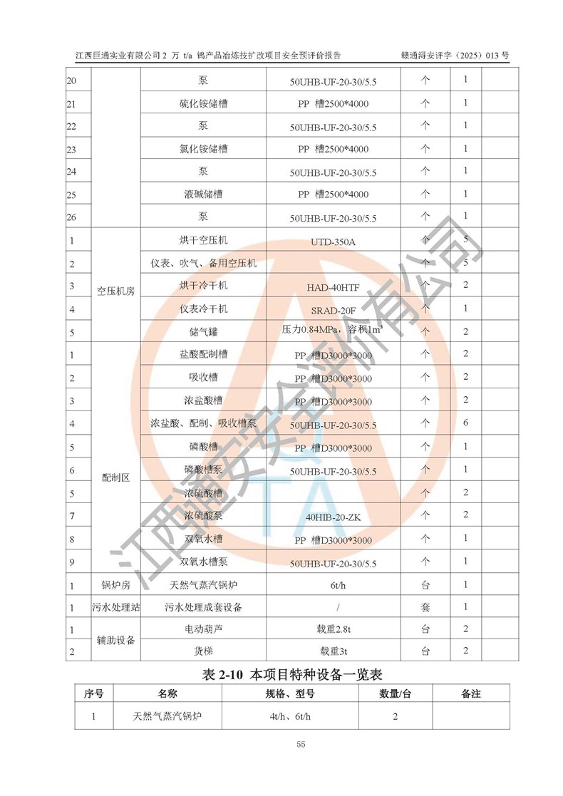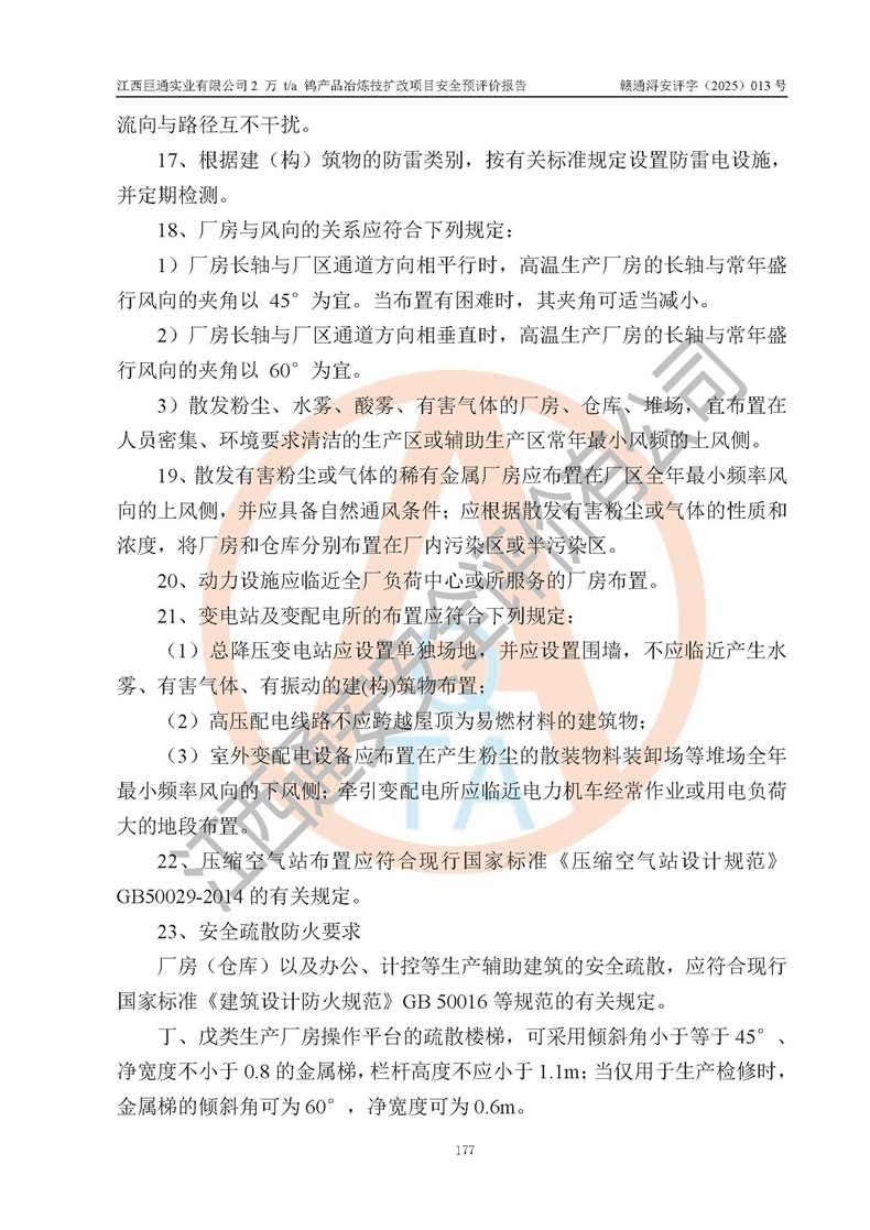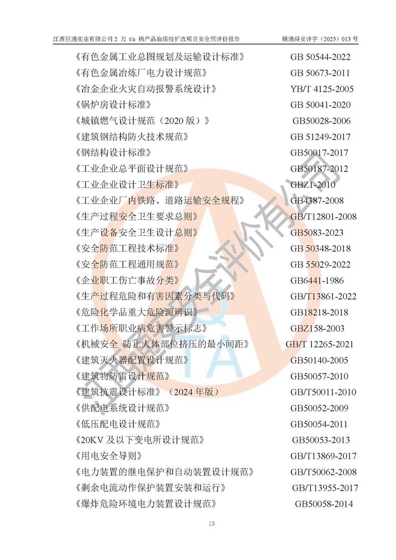 评价报告名称 | 江西巨通实业有限公司2 万 t/a 钨产品冶炼技扩改项目安全预评价报告 | |||