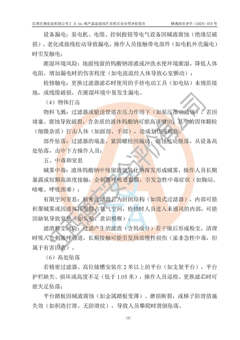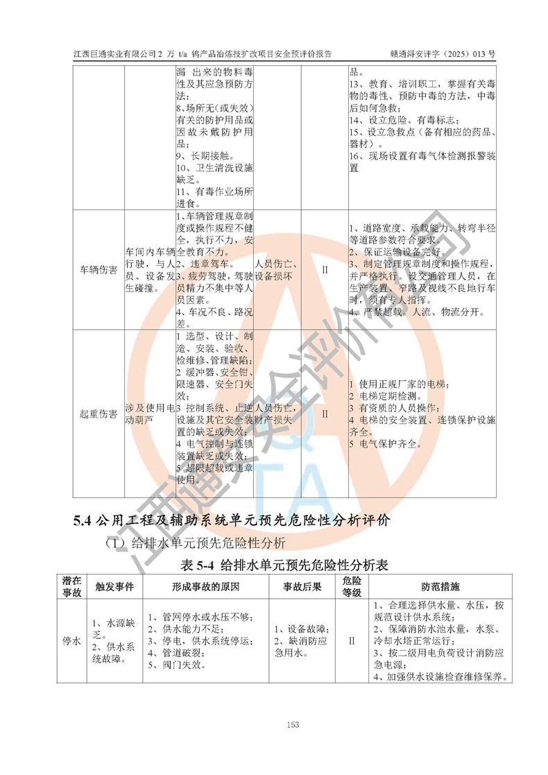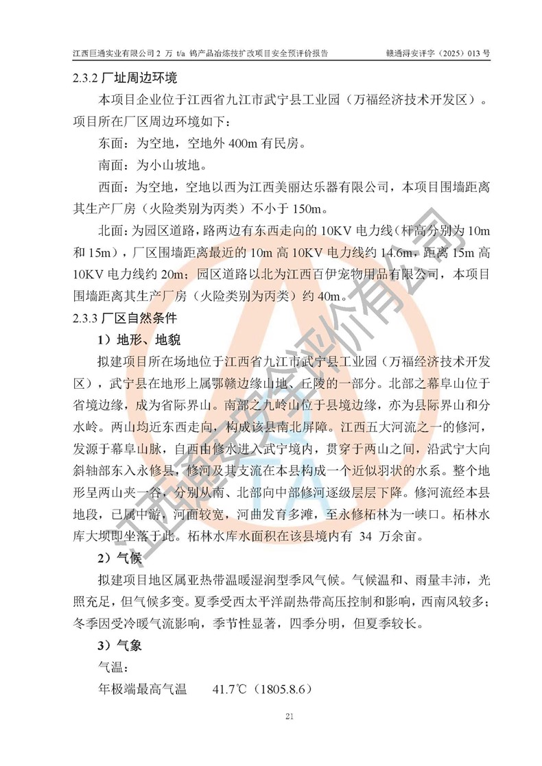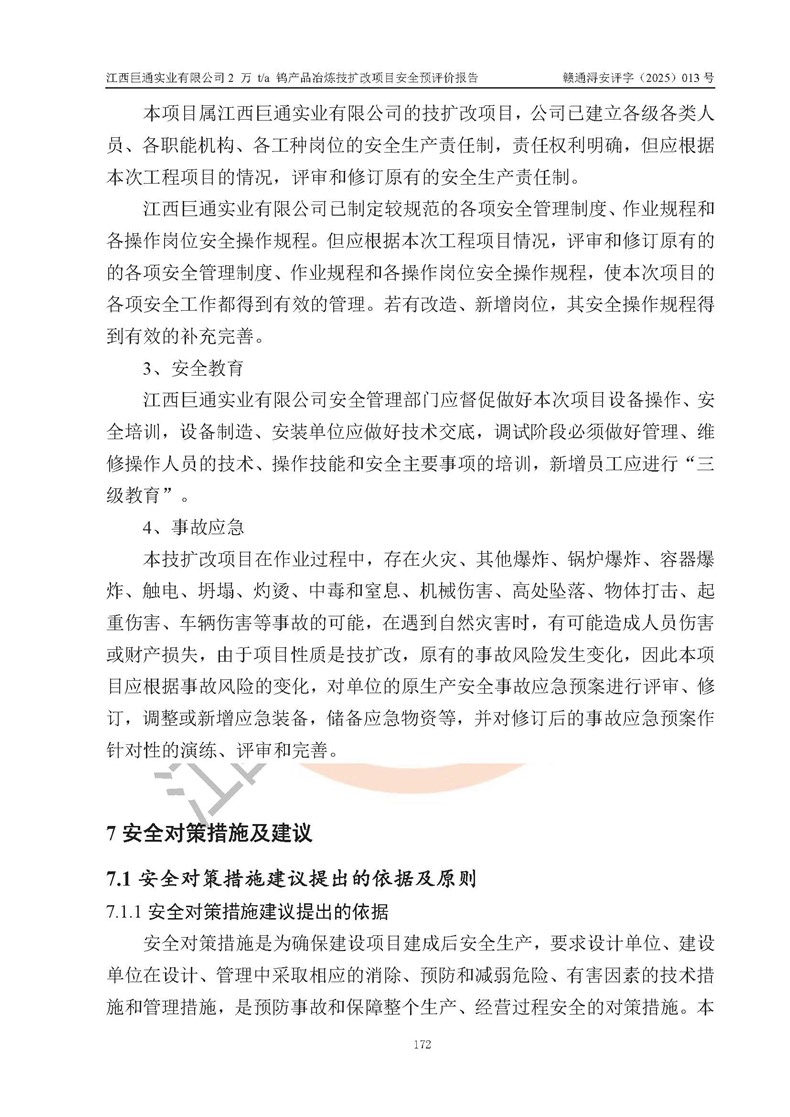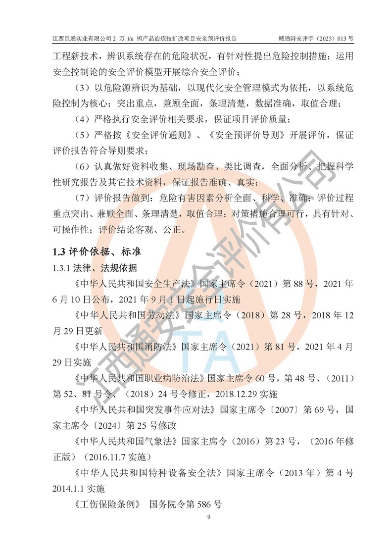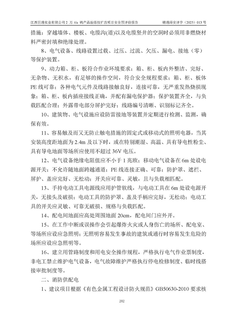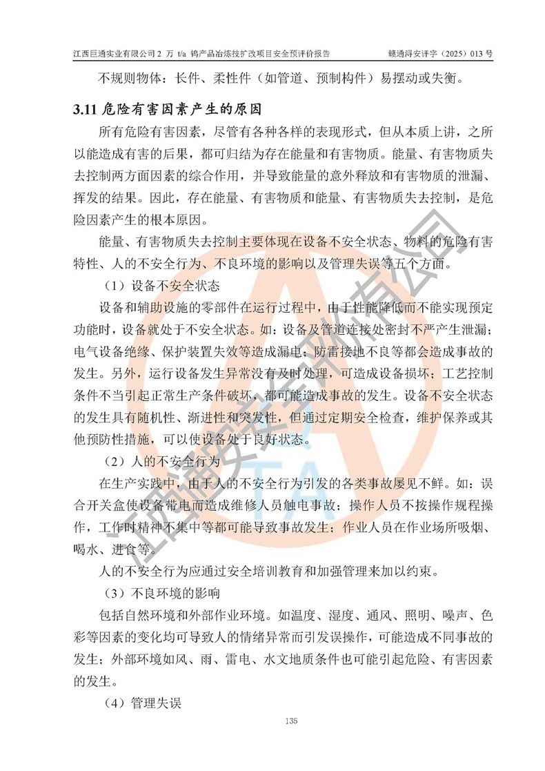 评价报告名称 | 江西巨通实业有限公司2 万 t/a 钨产品冶炼技扩改项目安全预评价报告 | |||