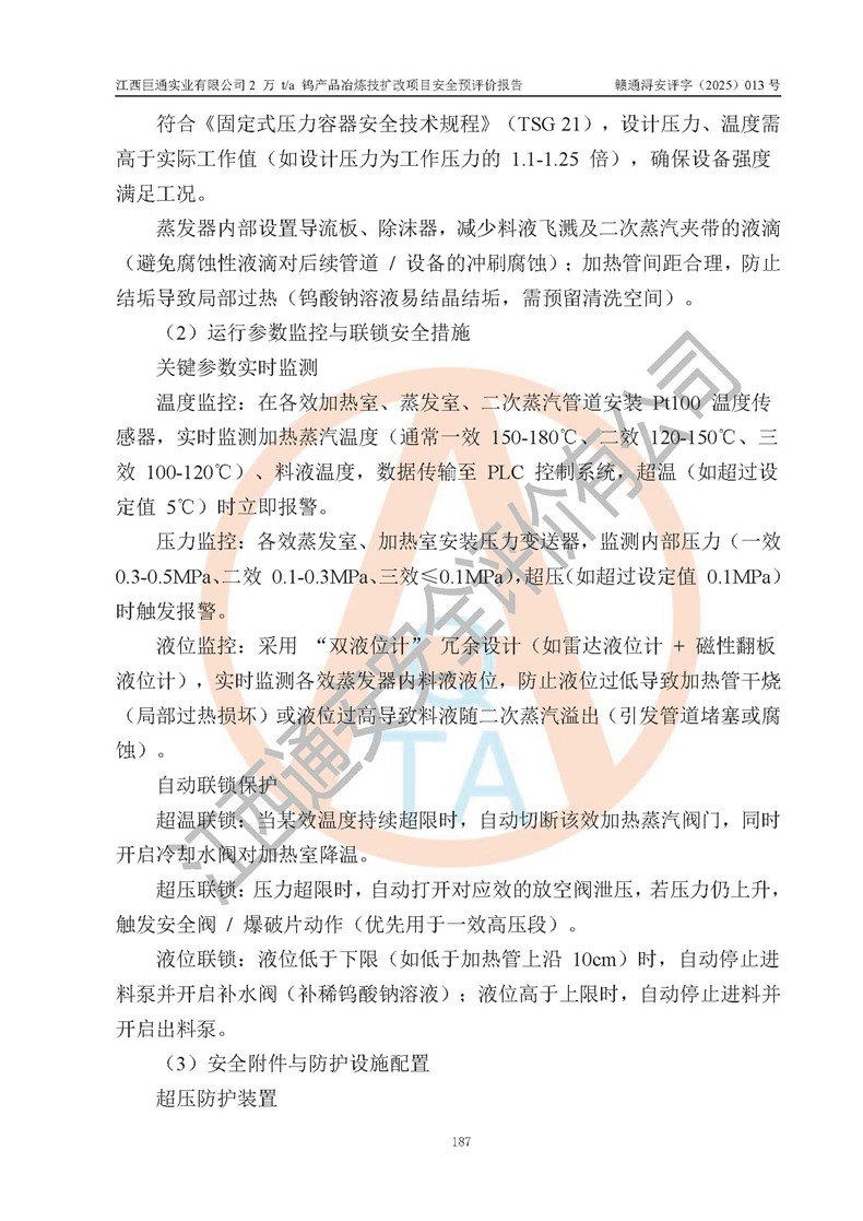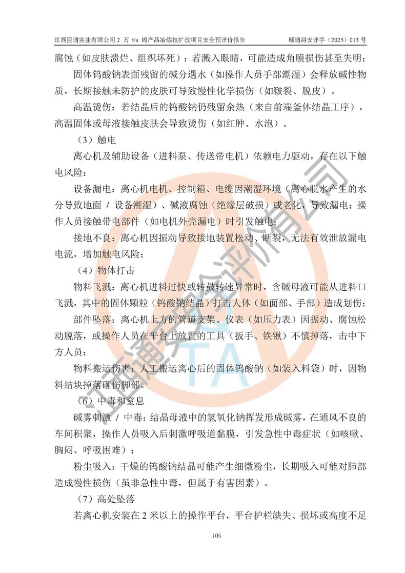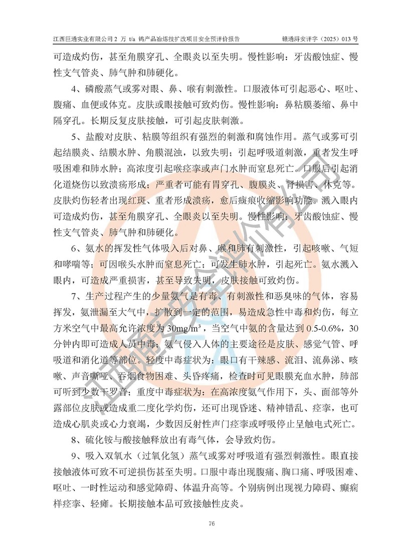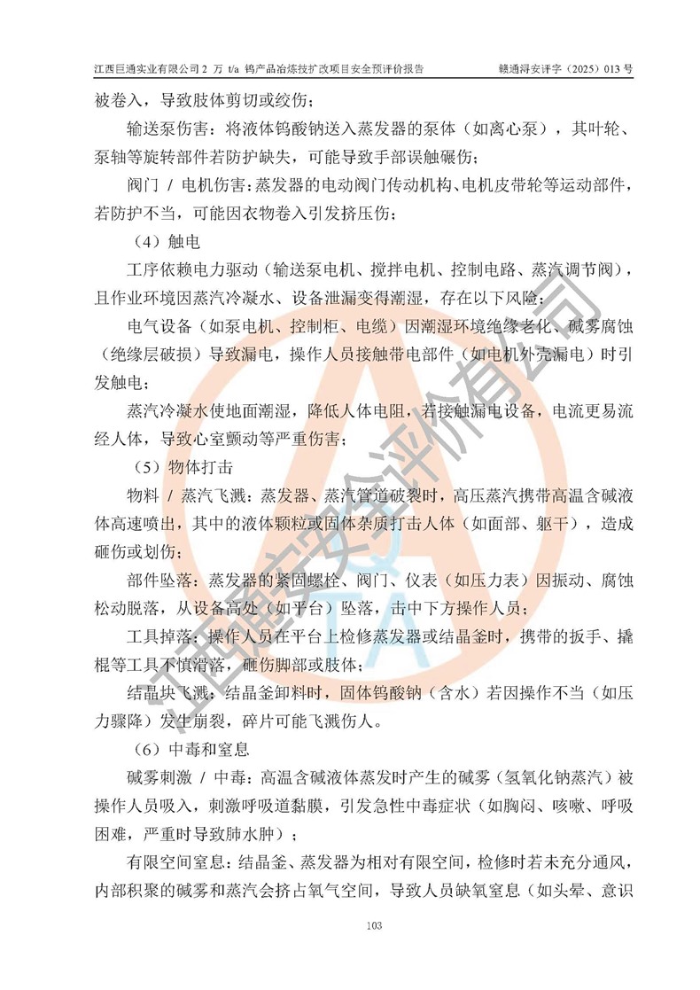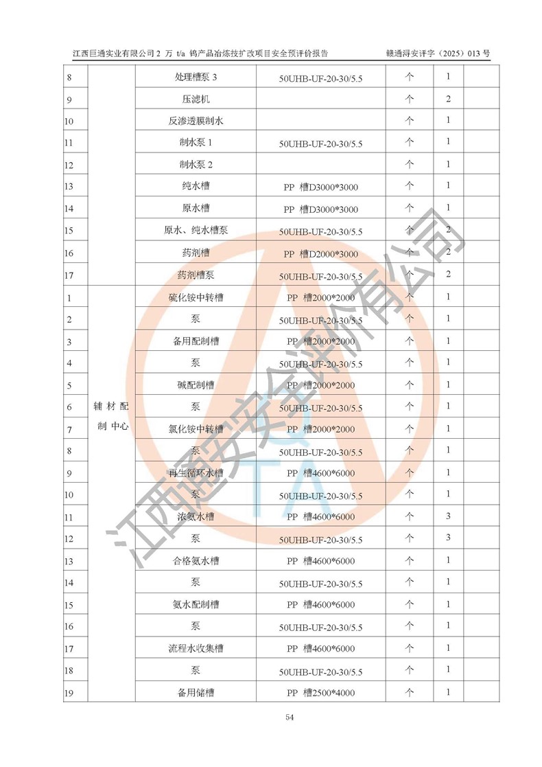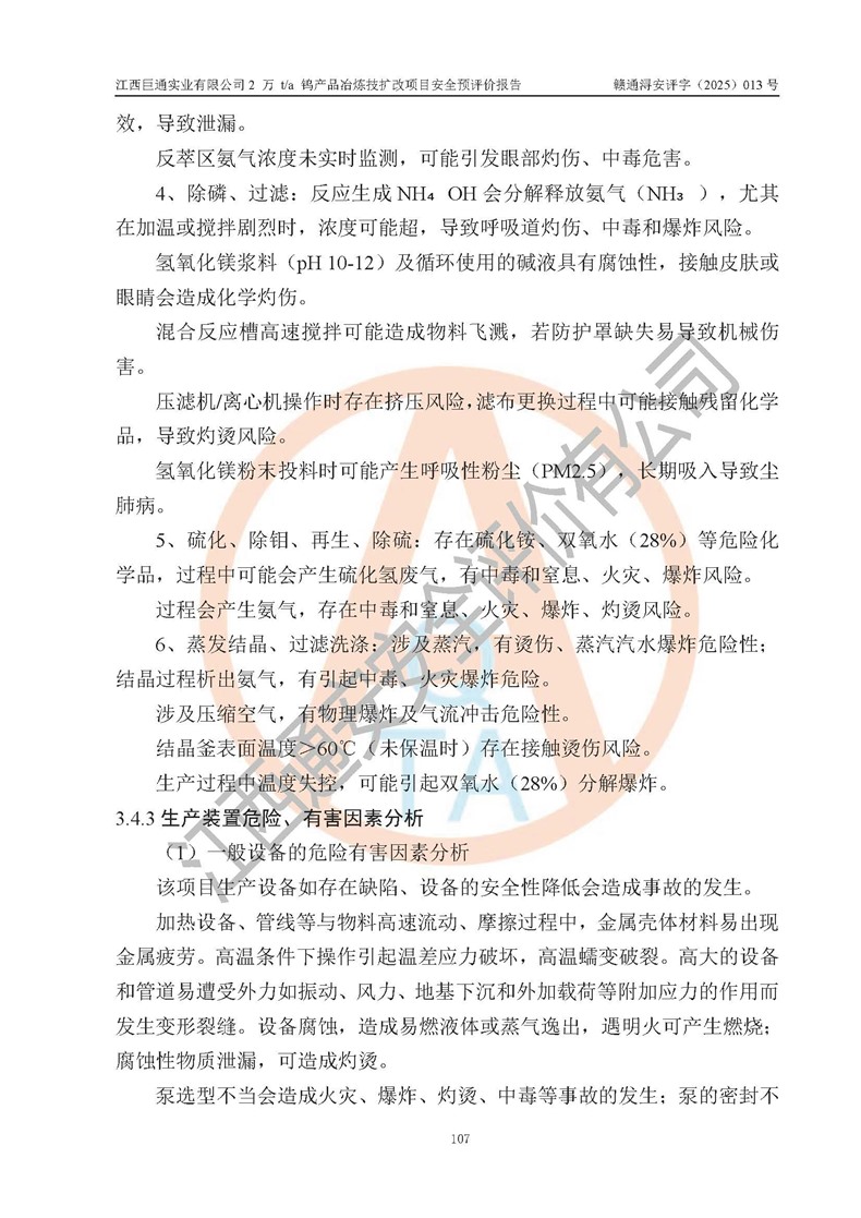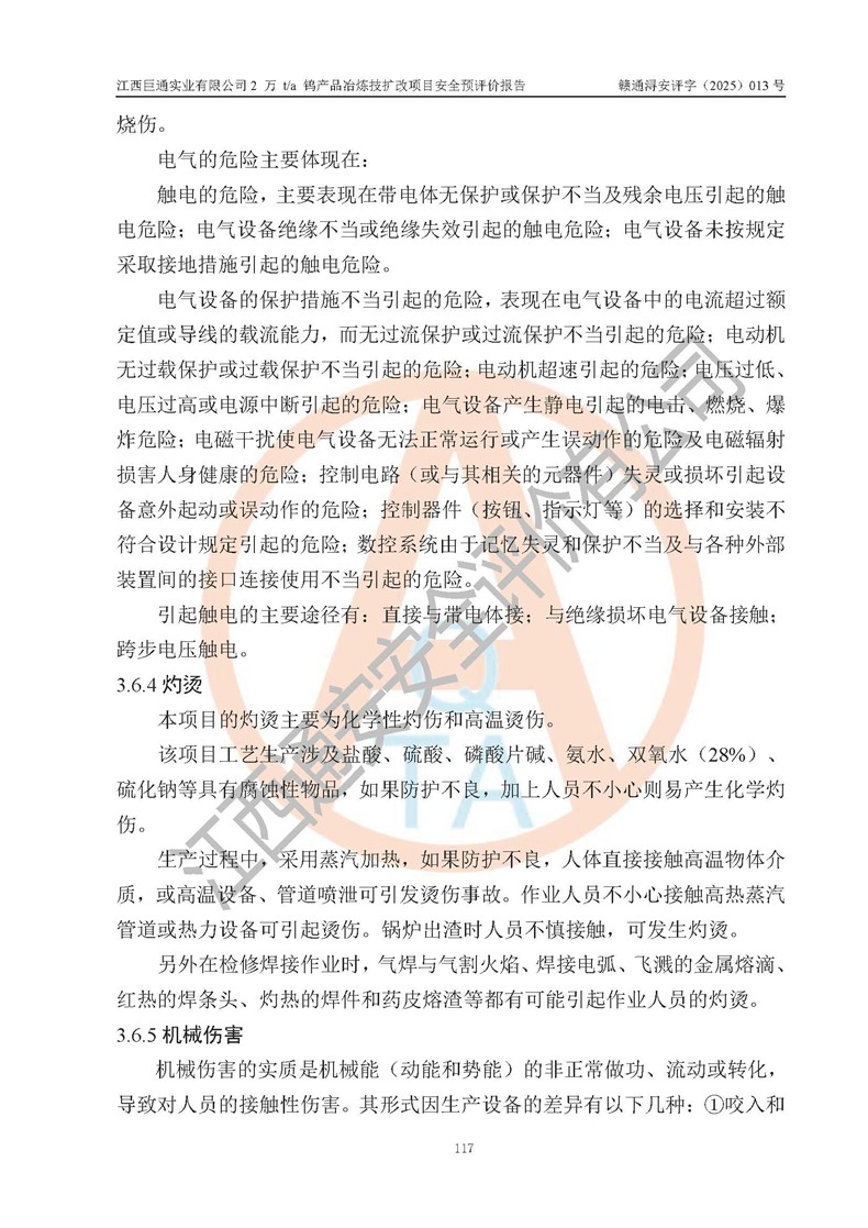 评价报告名称 | 江西巨通实业有限公司2 万 t/a 钨产品冶炼技扩改项目安全预评价报告 | |||