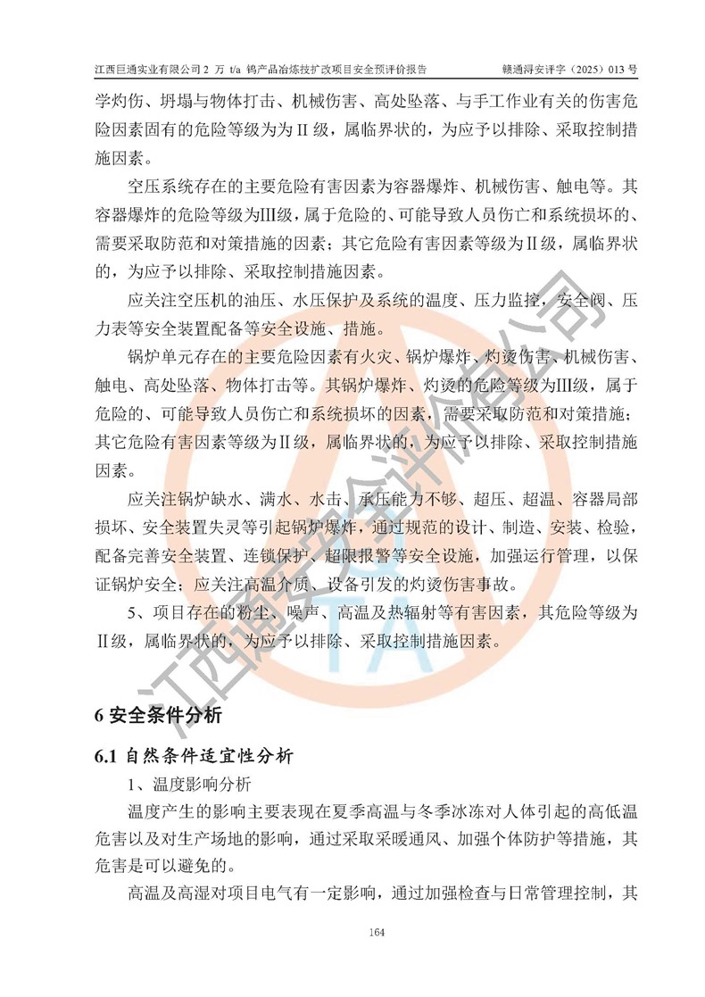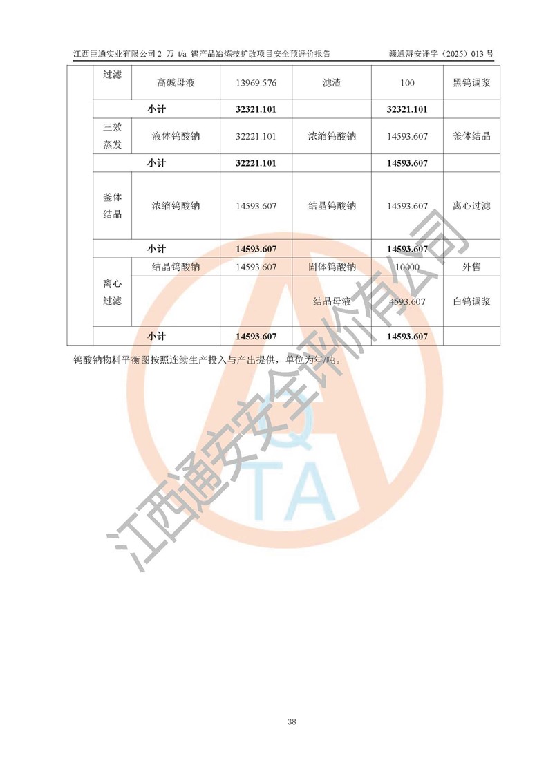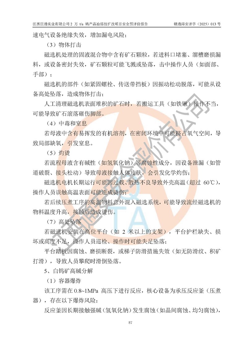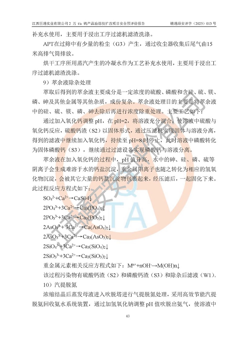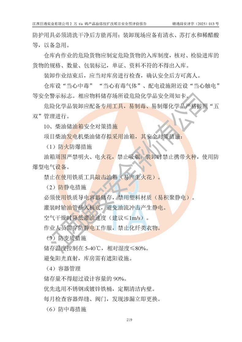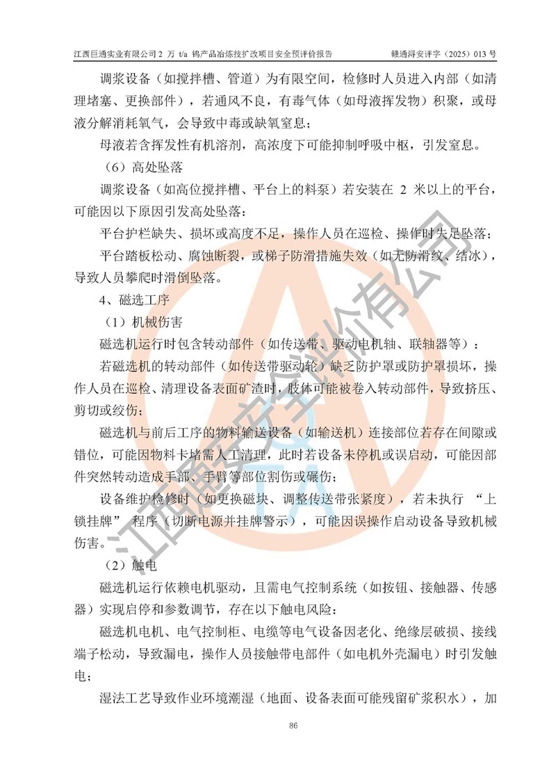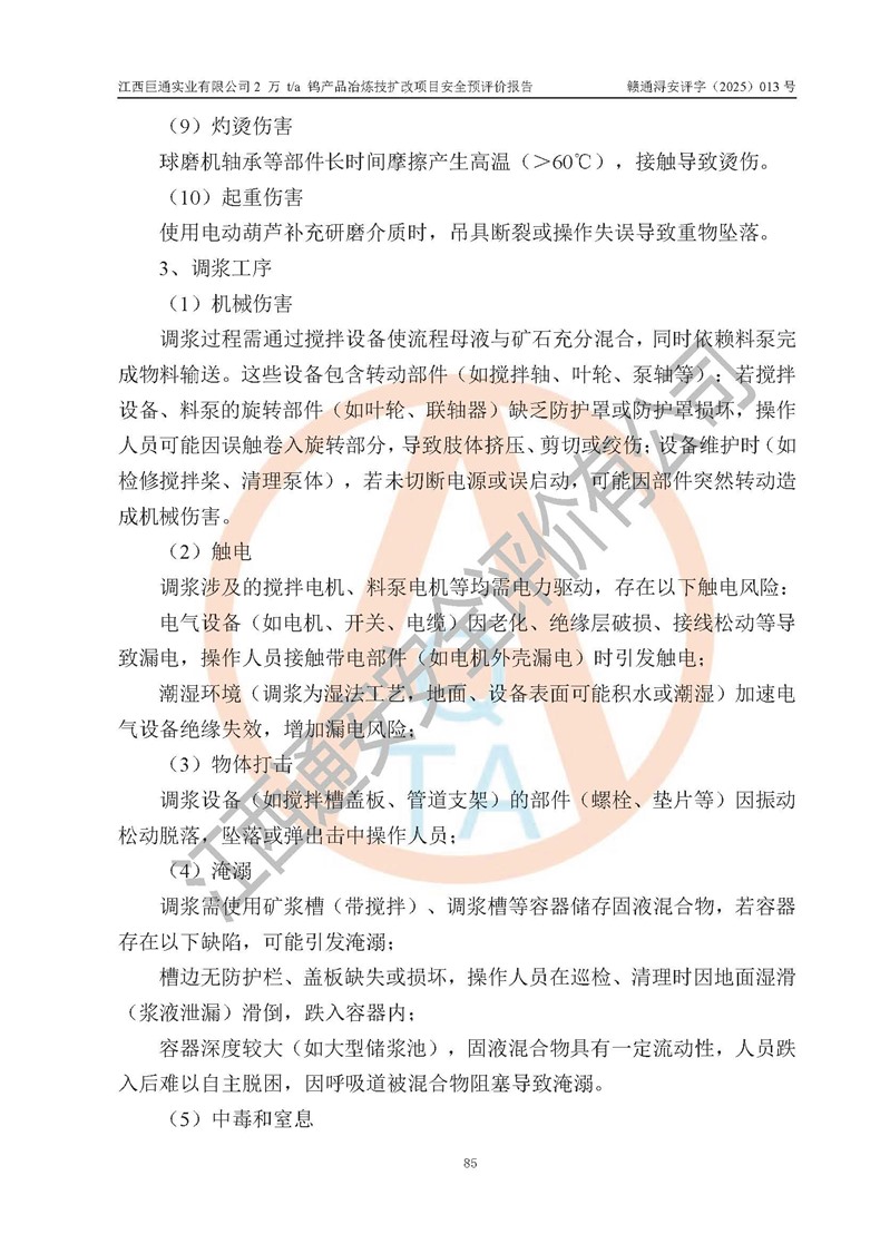 评价报告名称 | 江西巨通实业有限公司2 万 t/a 钨产品冶炼技扩改项目安全预评价报告 | |||