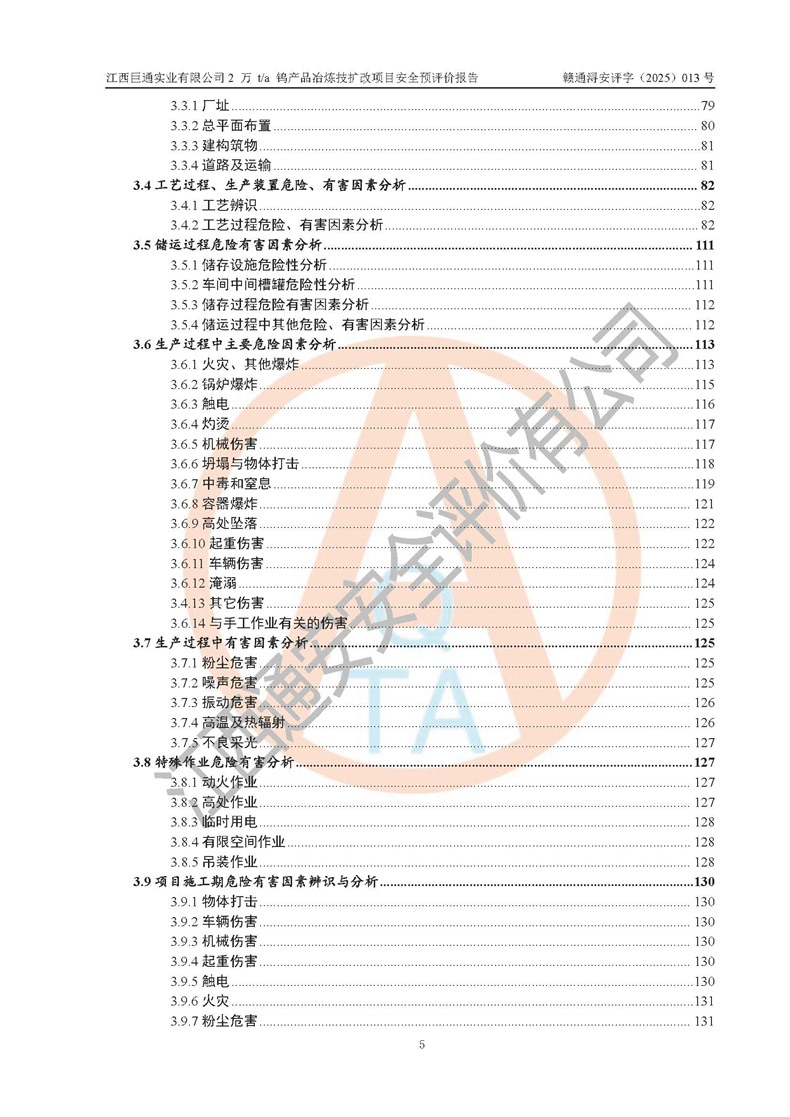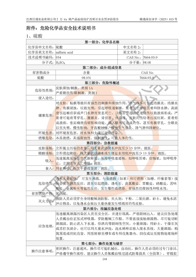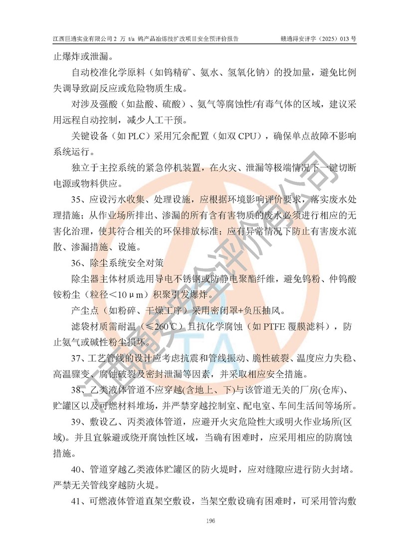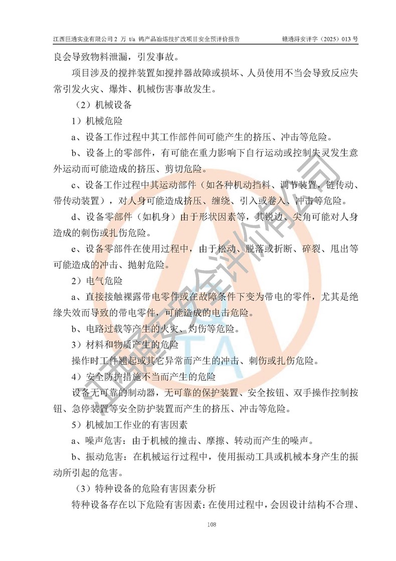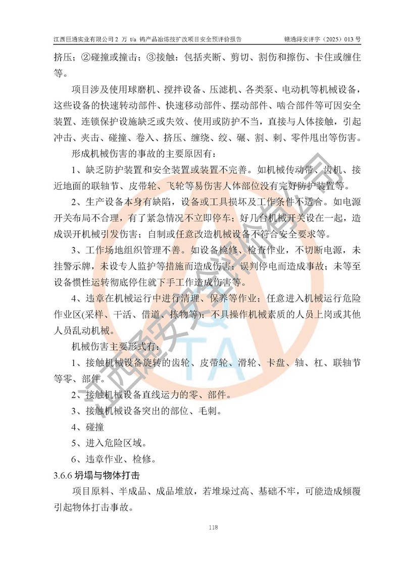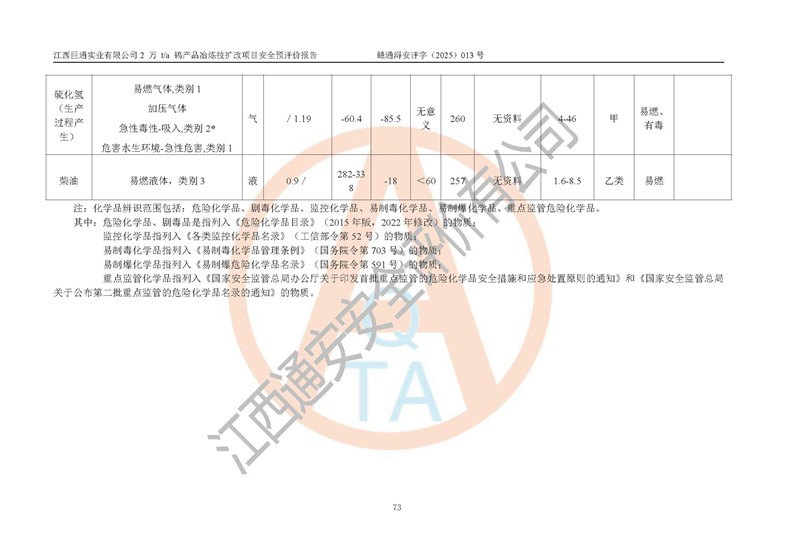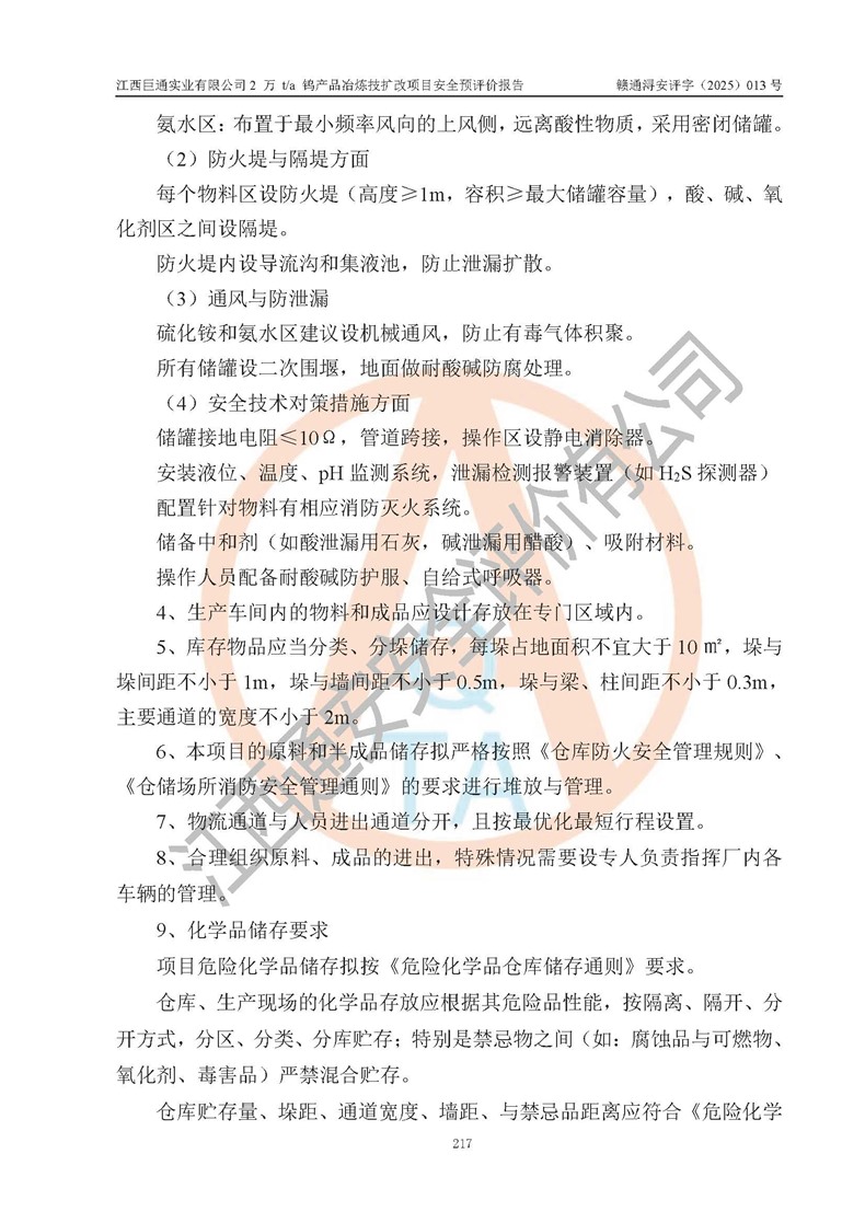 评价报告名称 | 江西巨通实业有限公司2 万 t/a 钨产品冶炼技扩改项目安全预评价报告 | |||