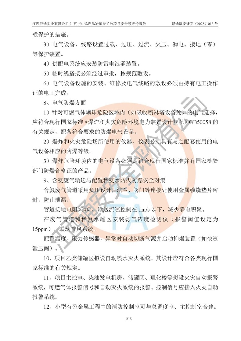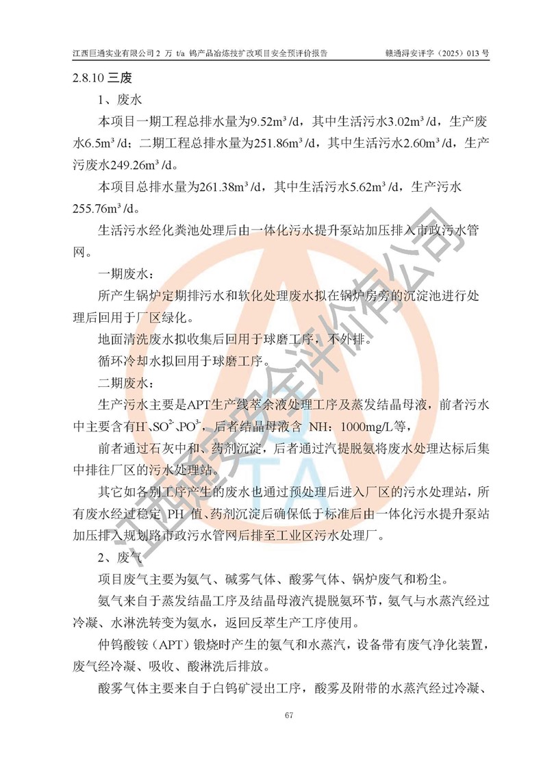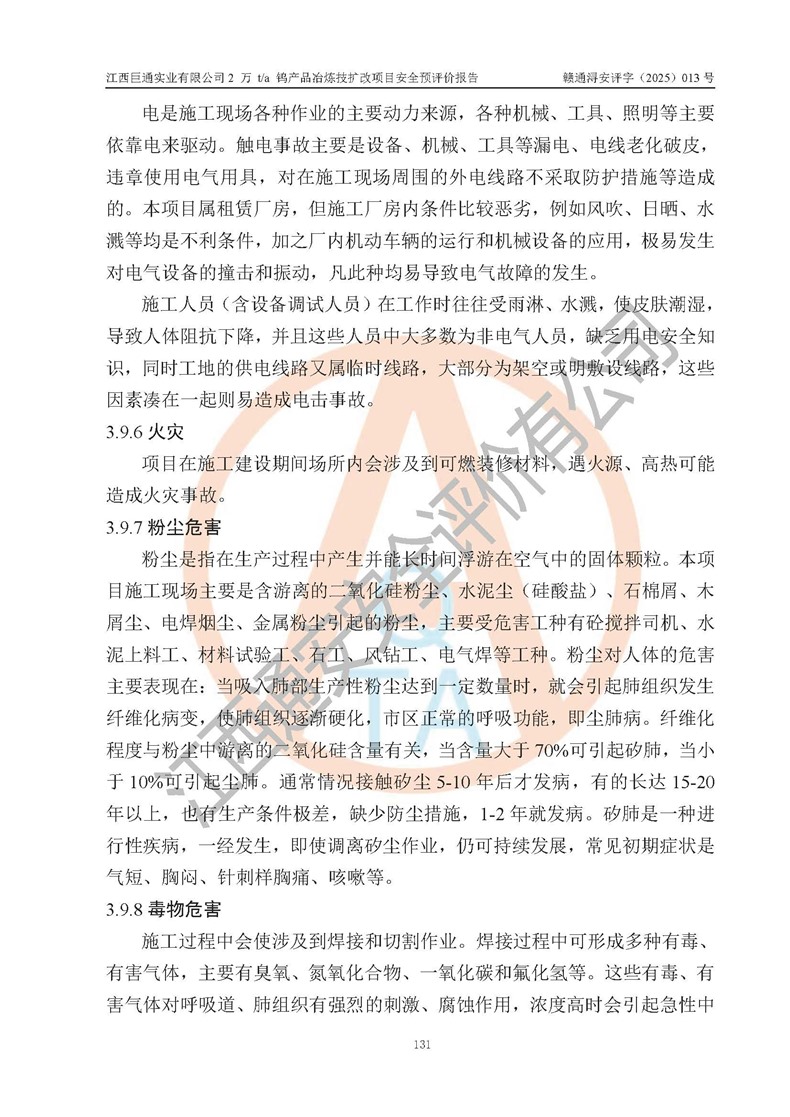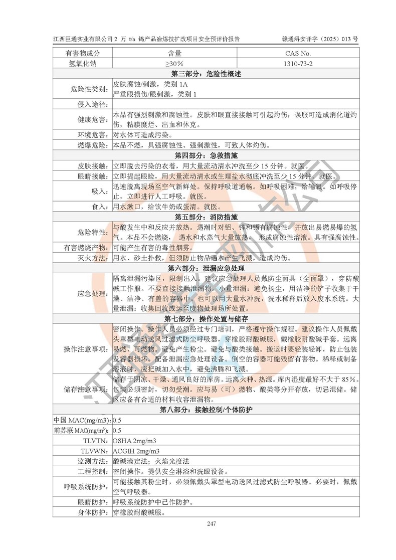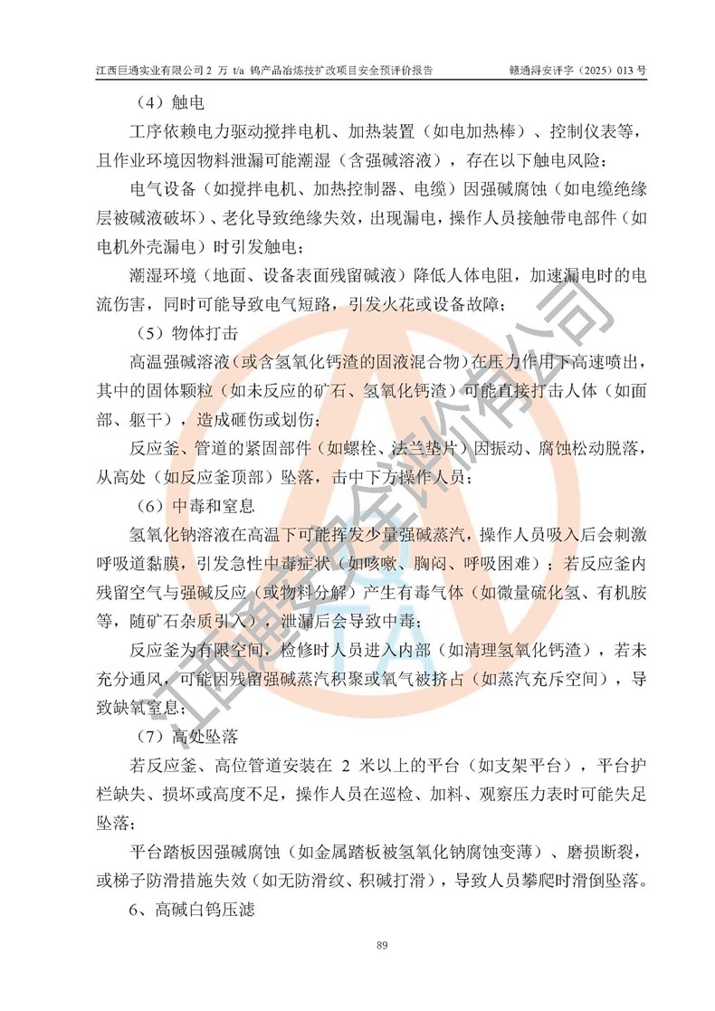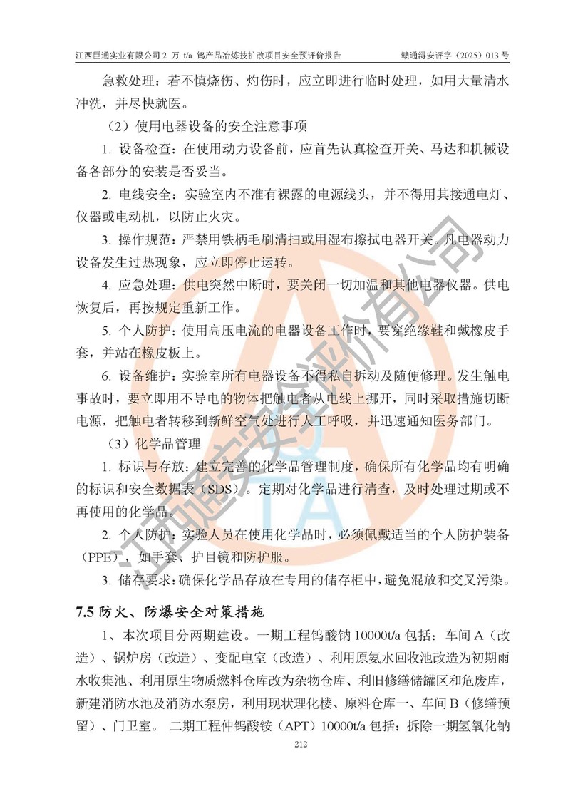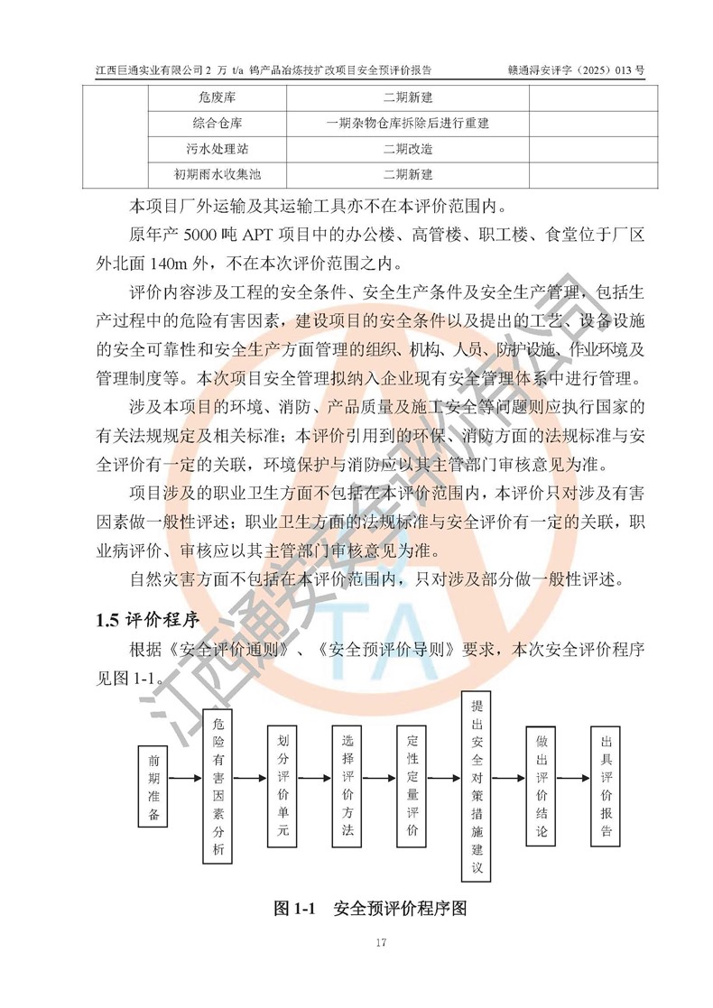 评价报告名称 | 江西巨通实业有限公司2 万 t/a 钨产品冶炼技扩改项目安全预评价报告 | |||