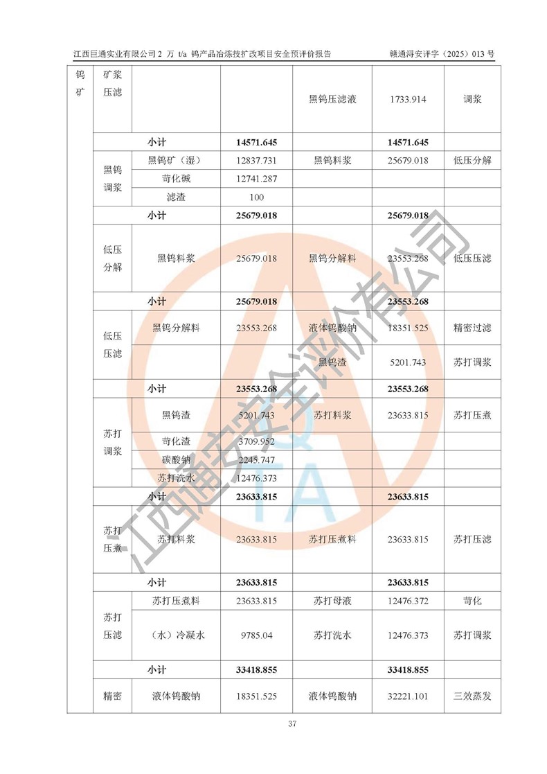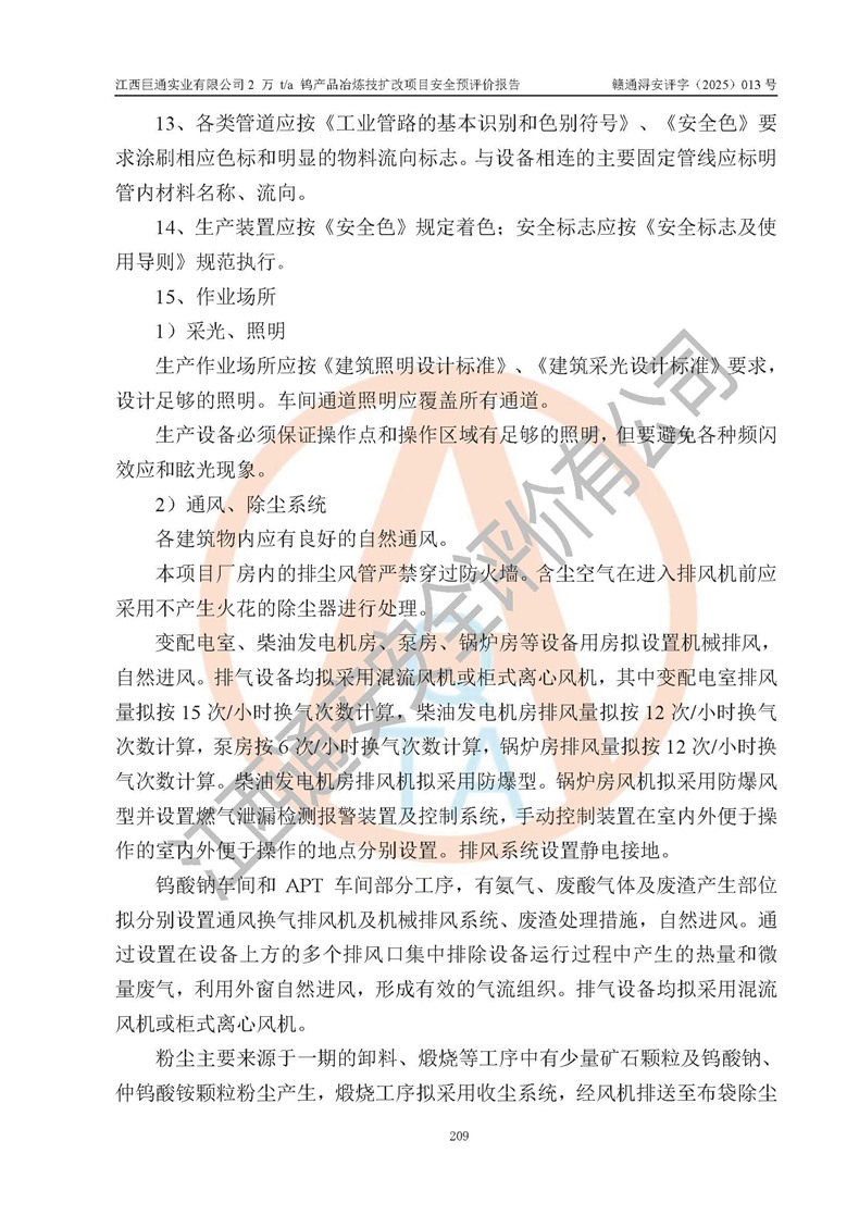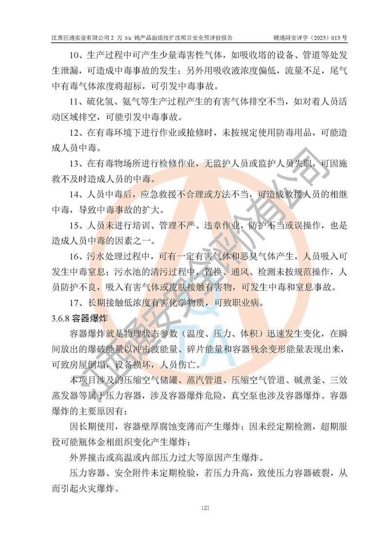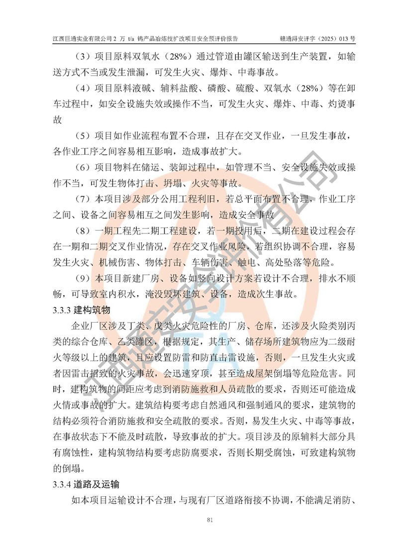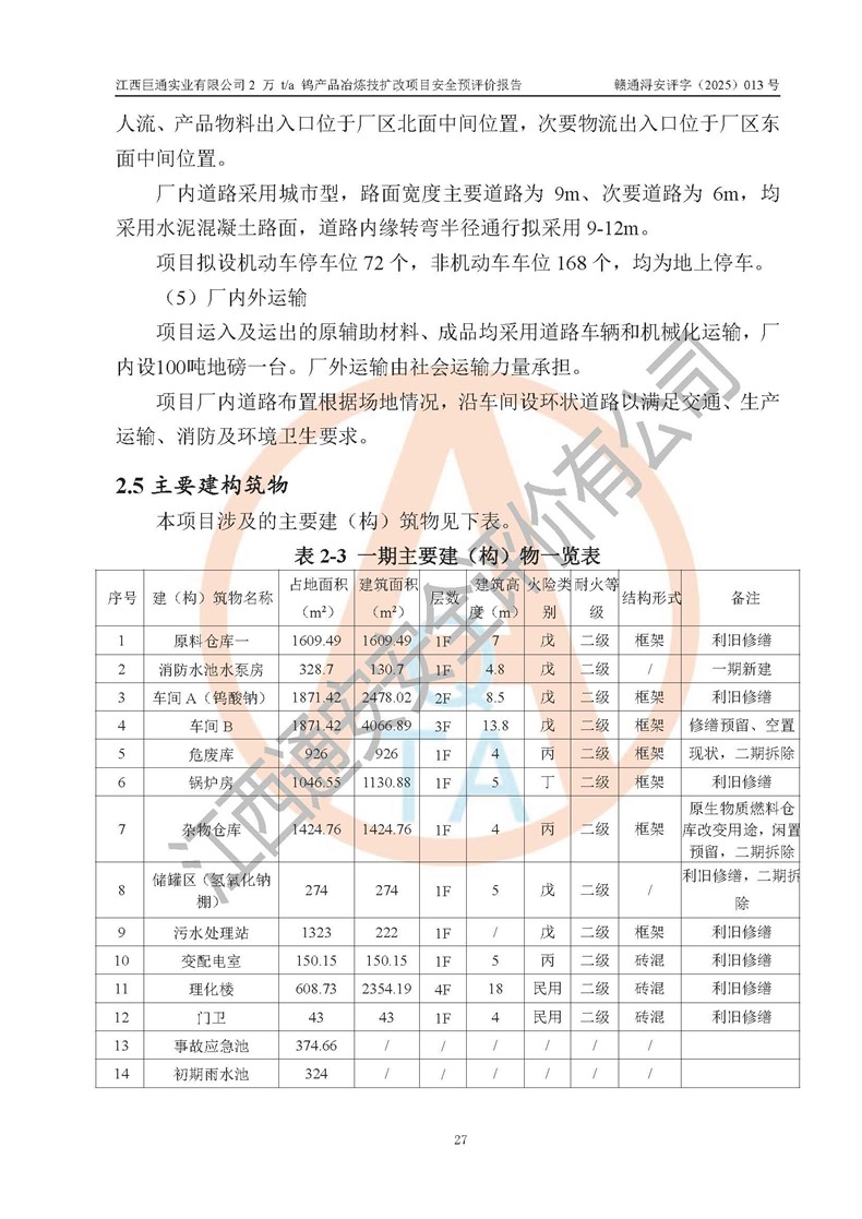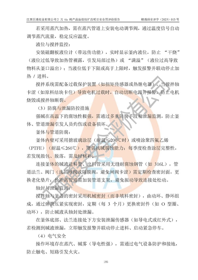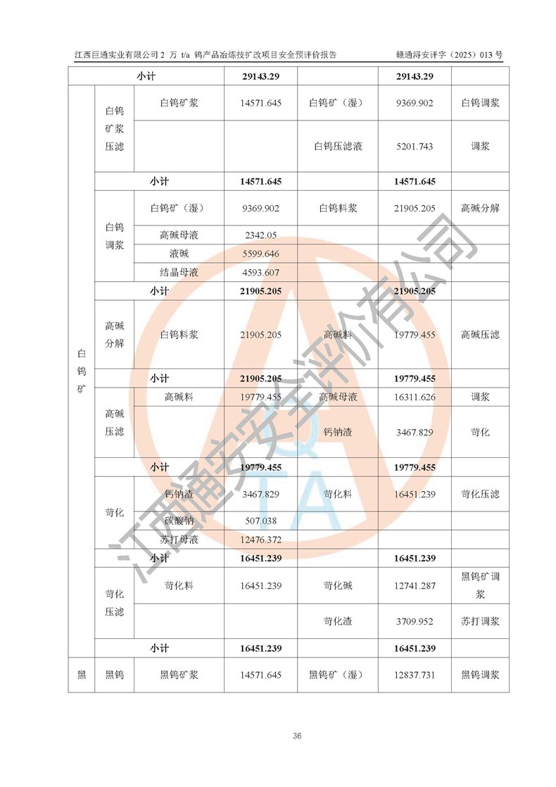 评价报告名称 | 江西巨通实业有限公司2 万 t/a 钨产品冶炼技扩改项目安全预评价报告 | |||