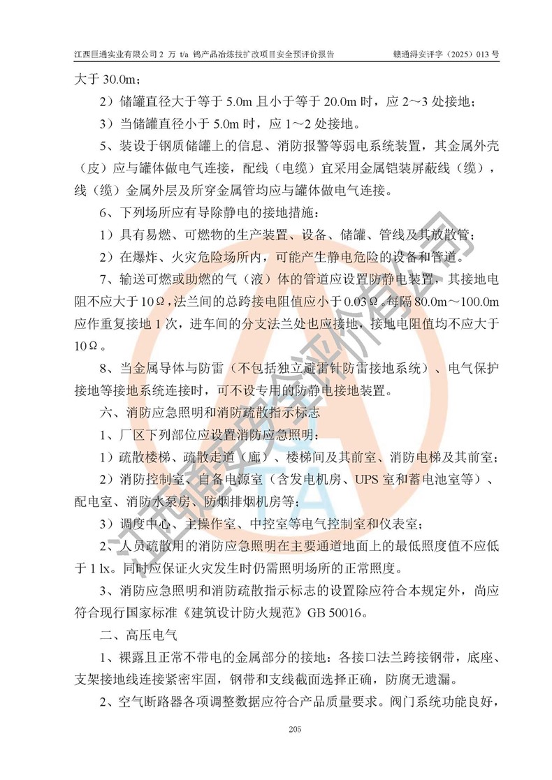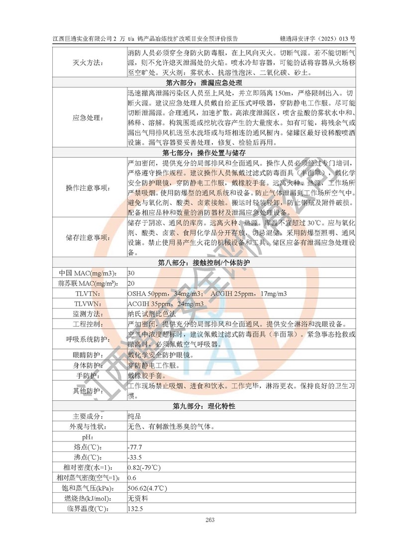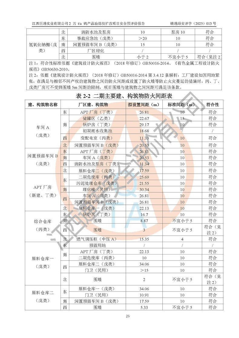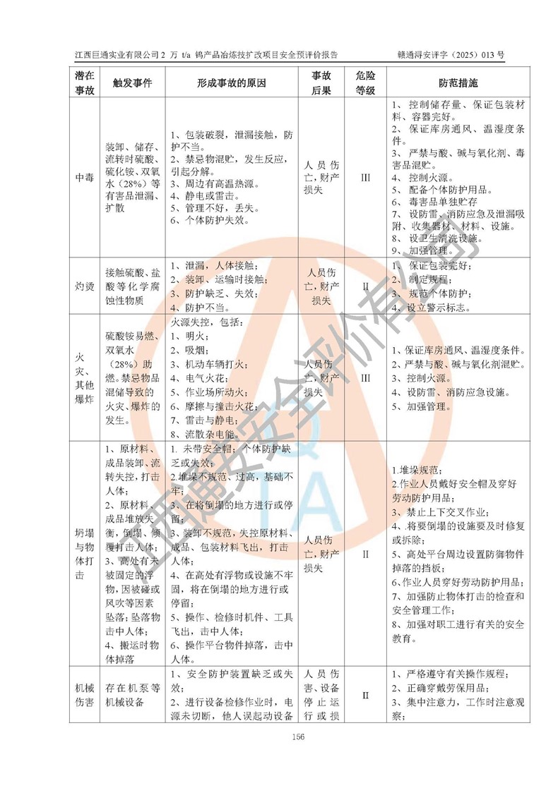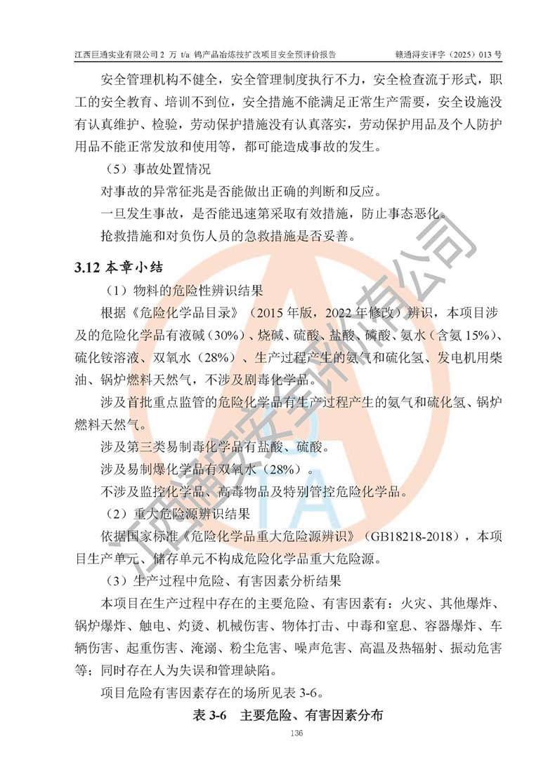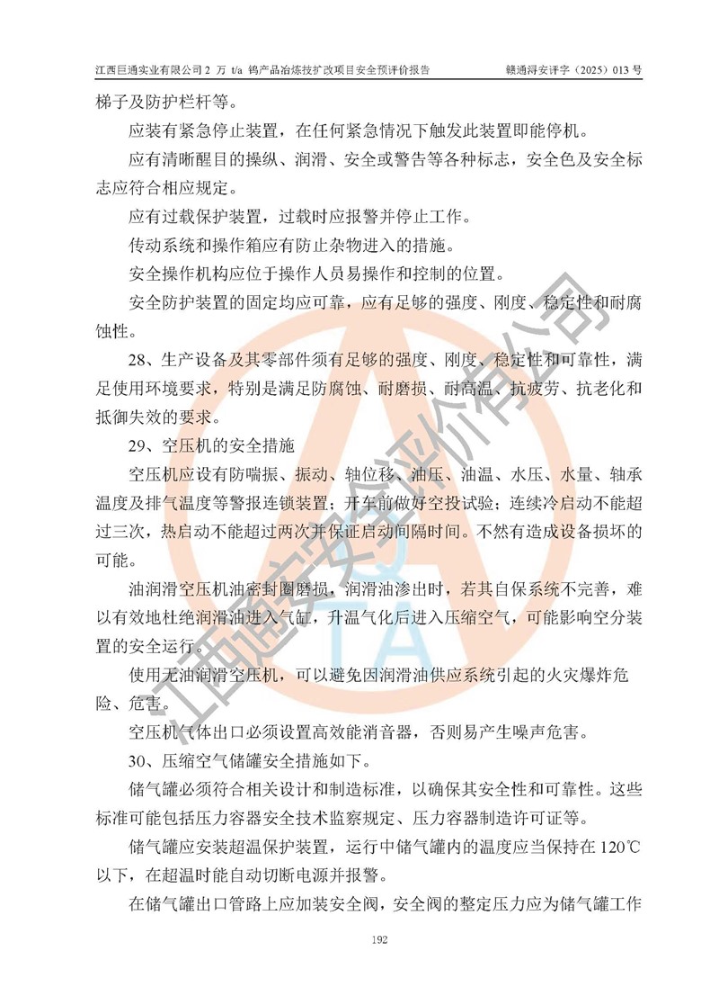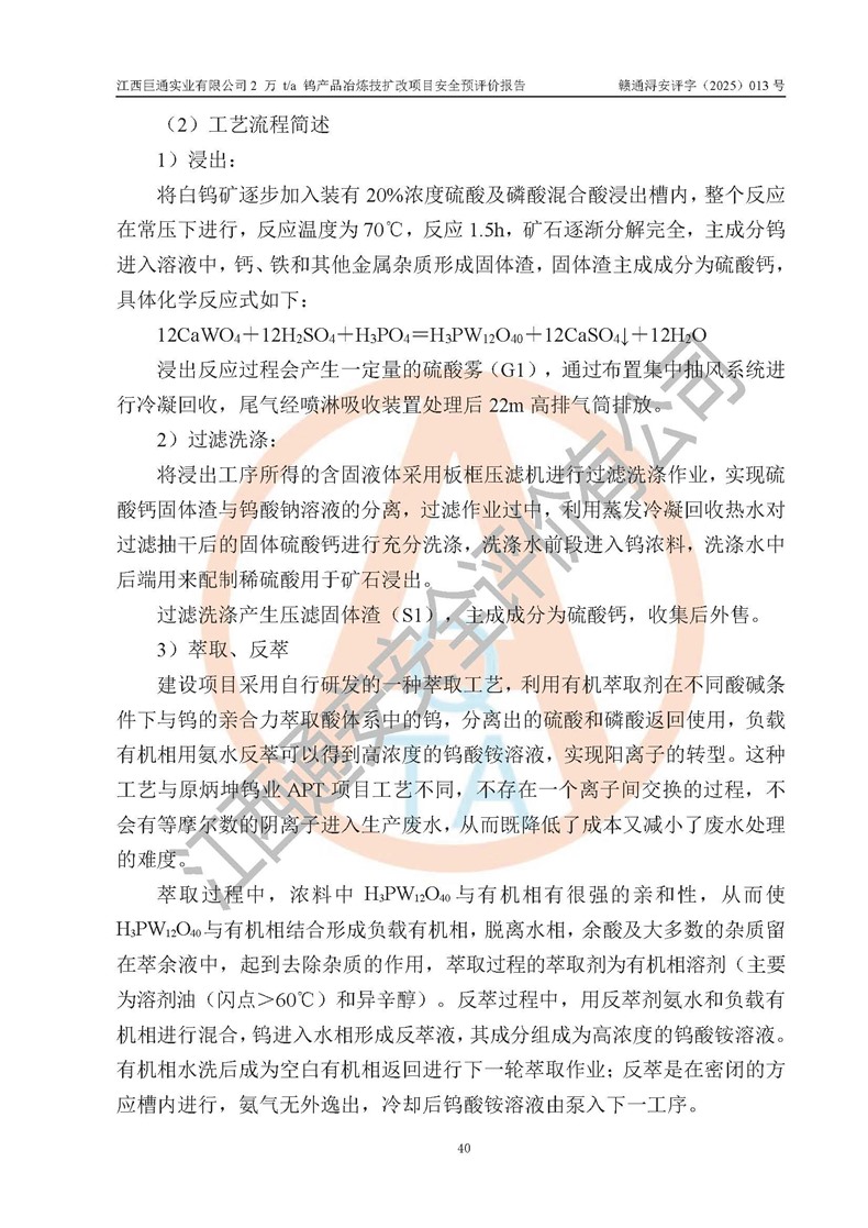 评价报告名称 | 江西巨通实业有限公司2 万 t/a 钨产品冶炼技扩改项目安全预评价报告 | |||