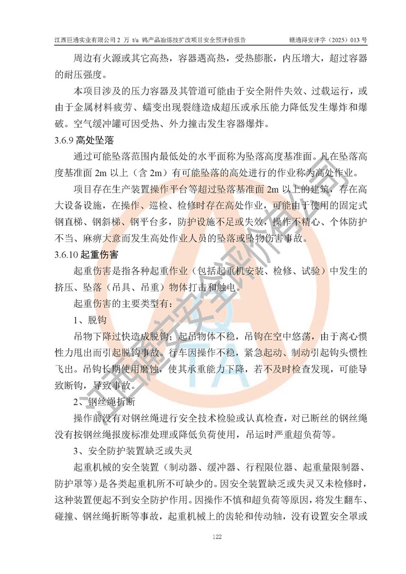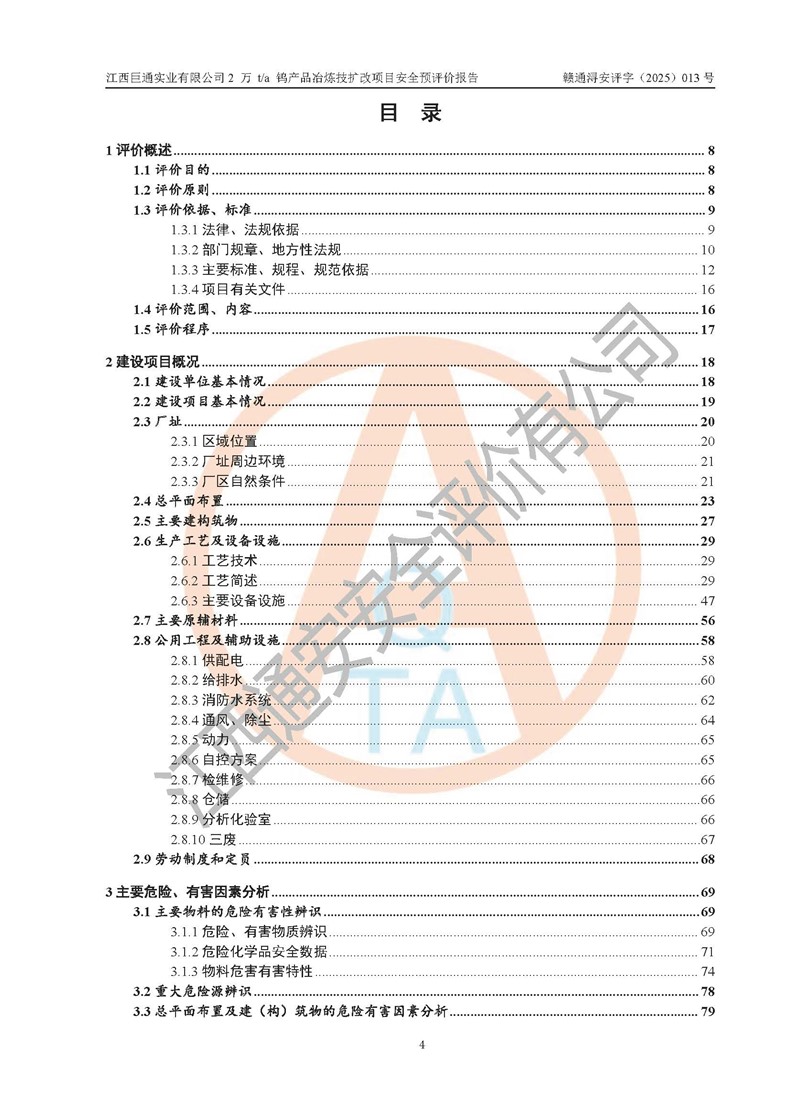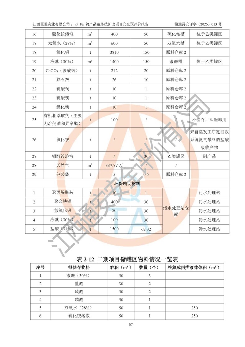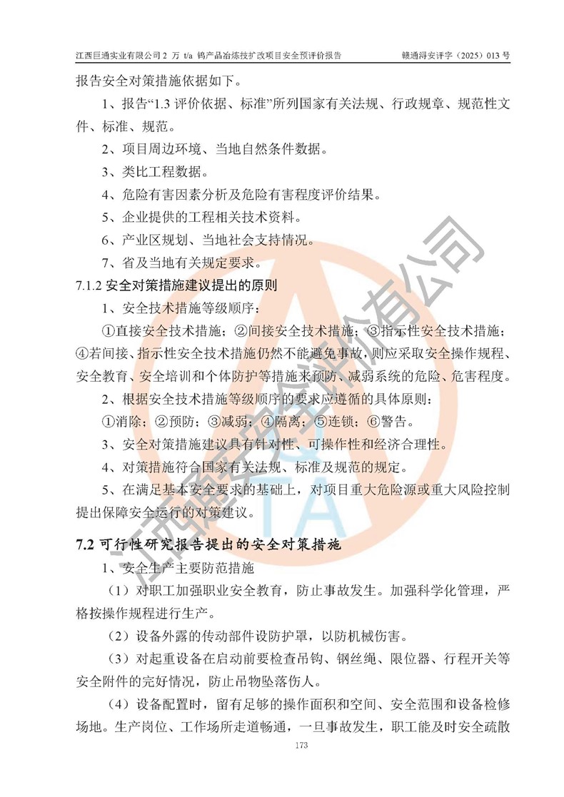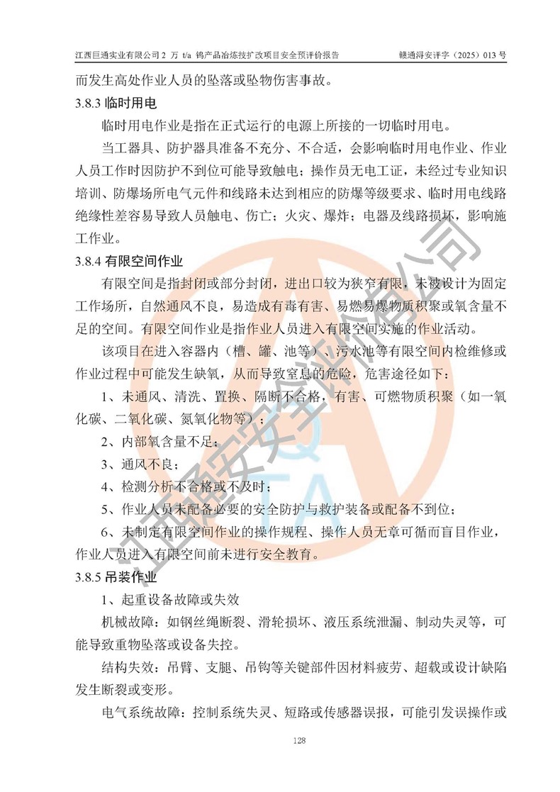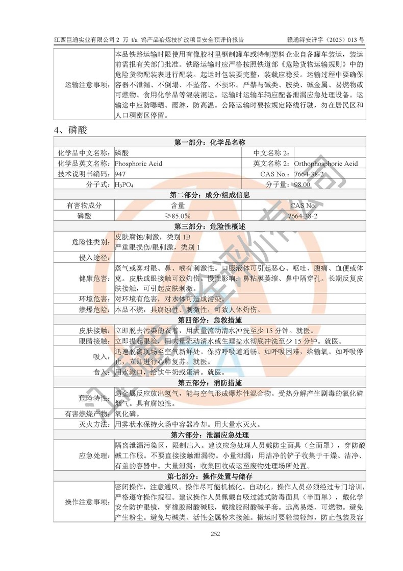 评价报告名称 | 江西巨通实业有限公司2 万 t/a 钨产品冶炼技扩改项目安全预评价报告 | |||