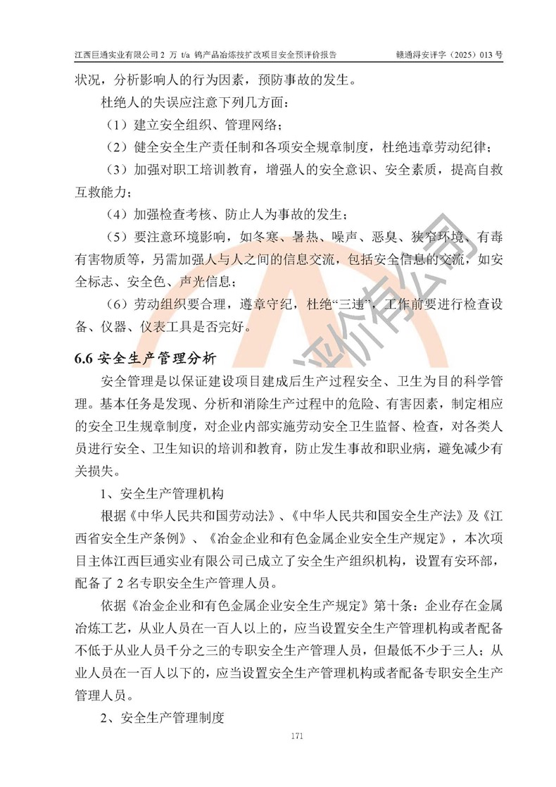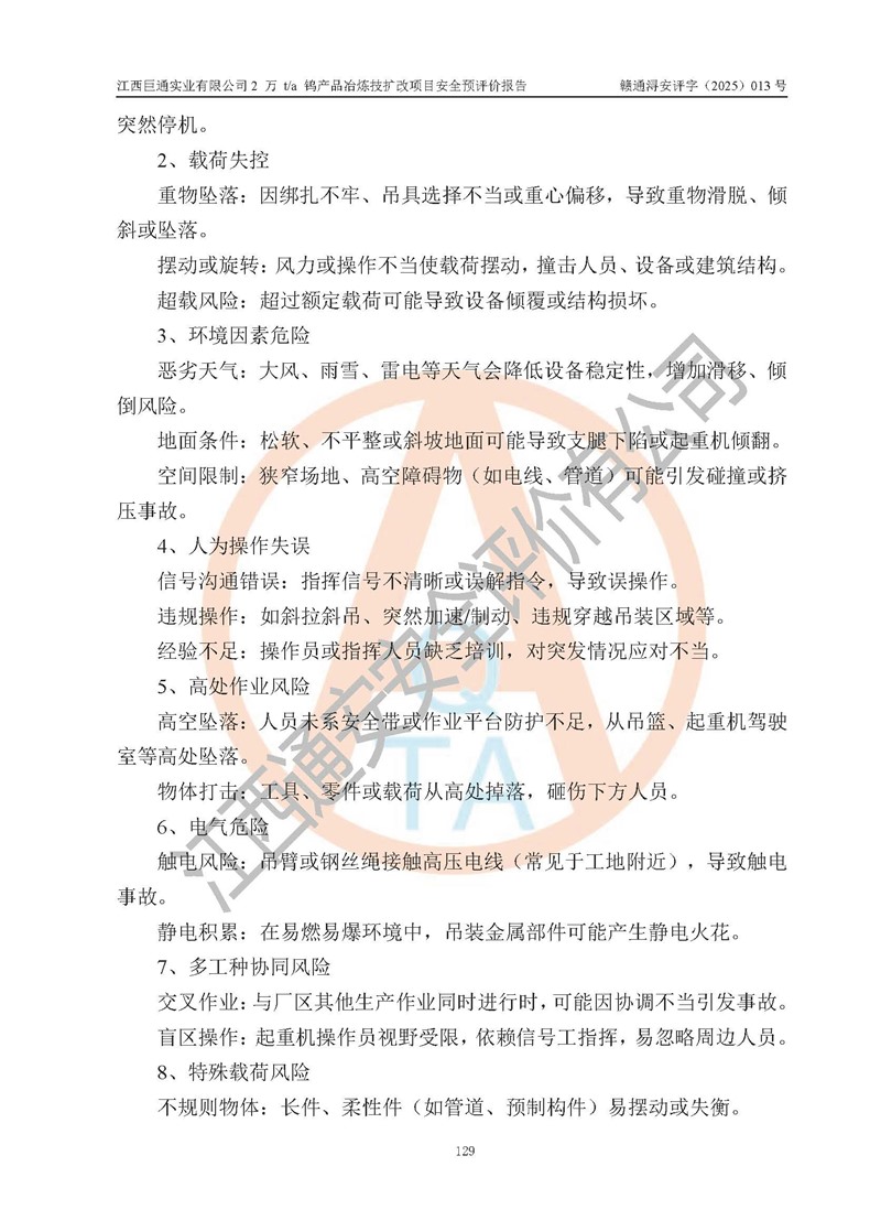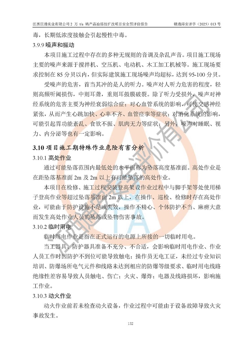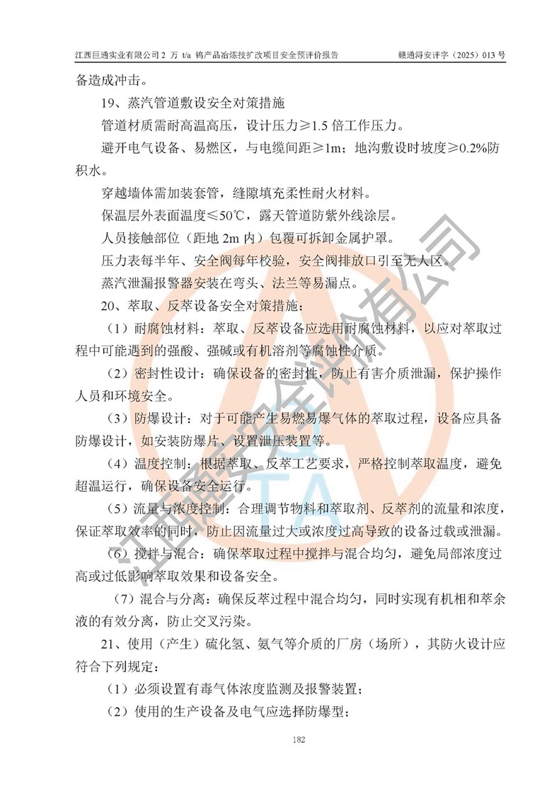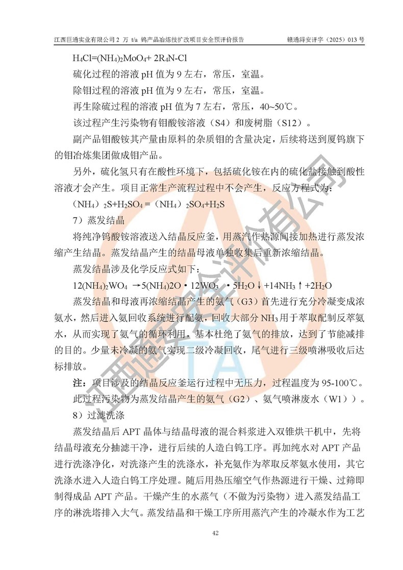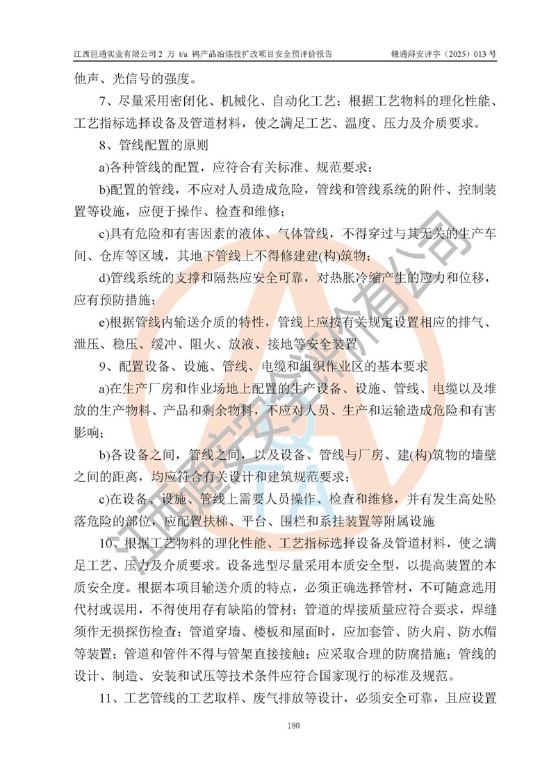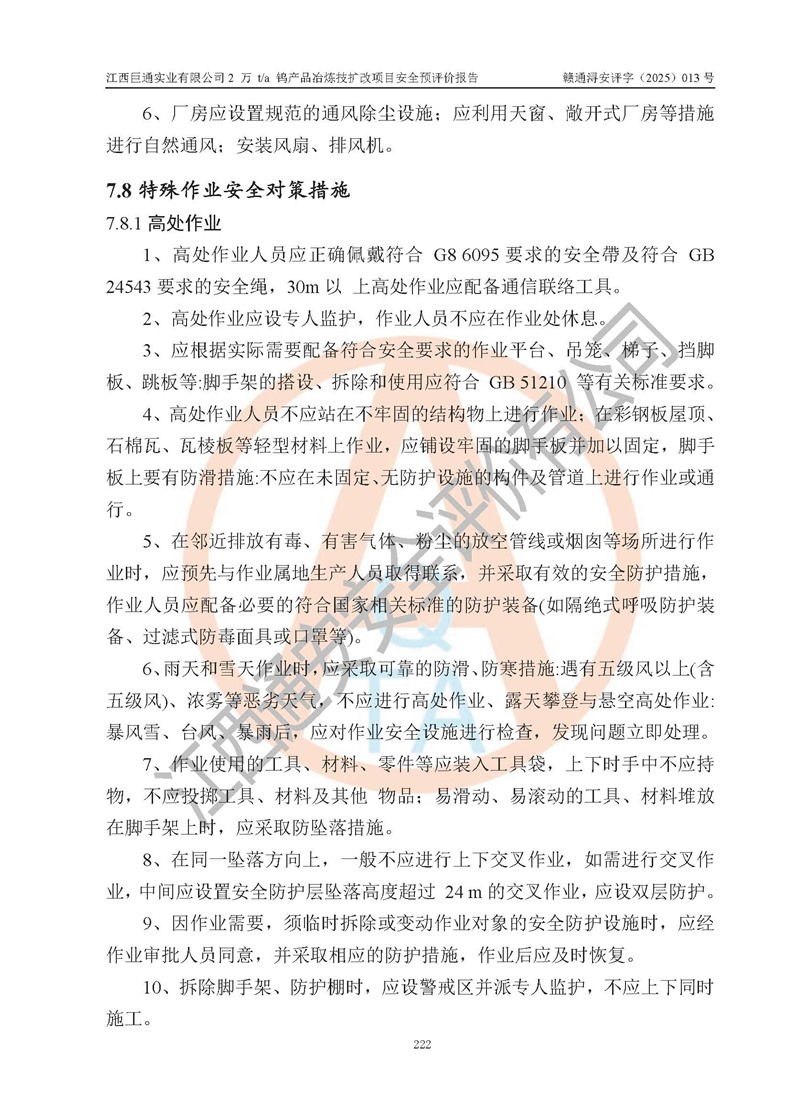 评价报告名称 | 江西巨通实业有限公司2 万 t/a 钨产品冶炼技扩改项目安全预评价报告 | |||