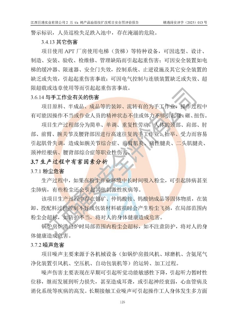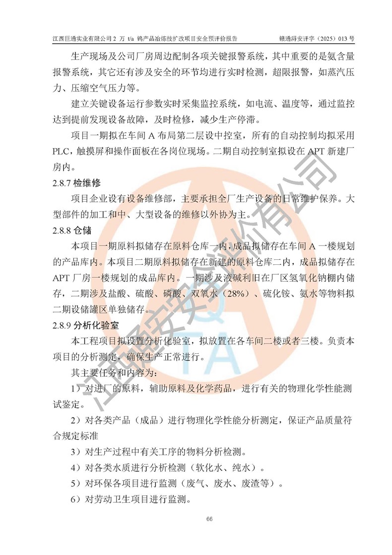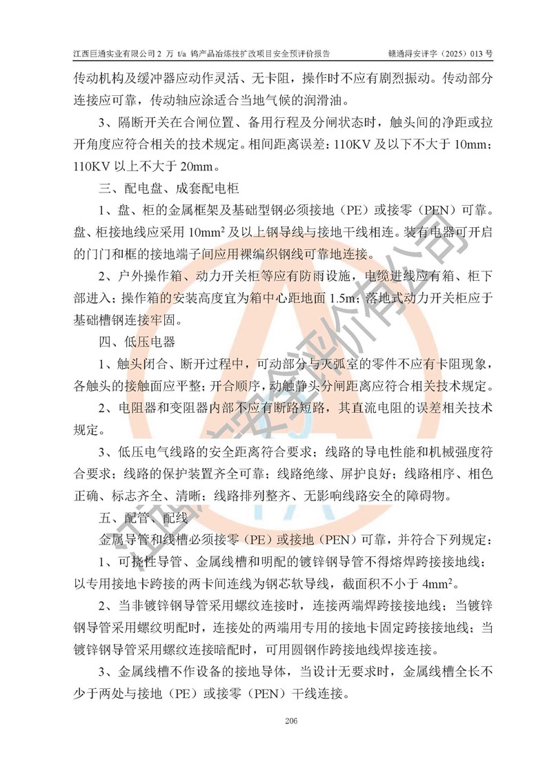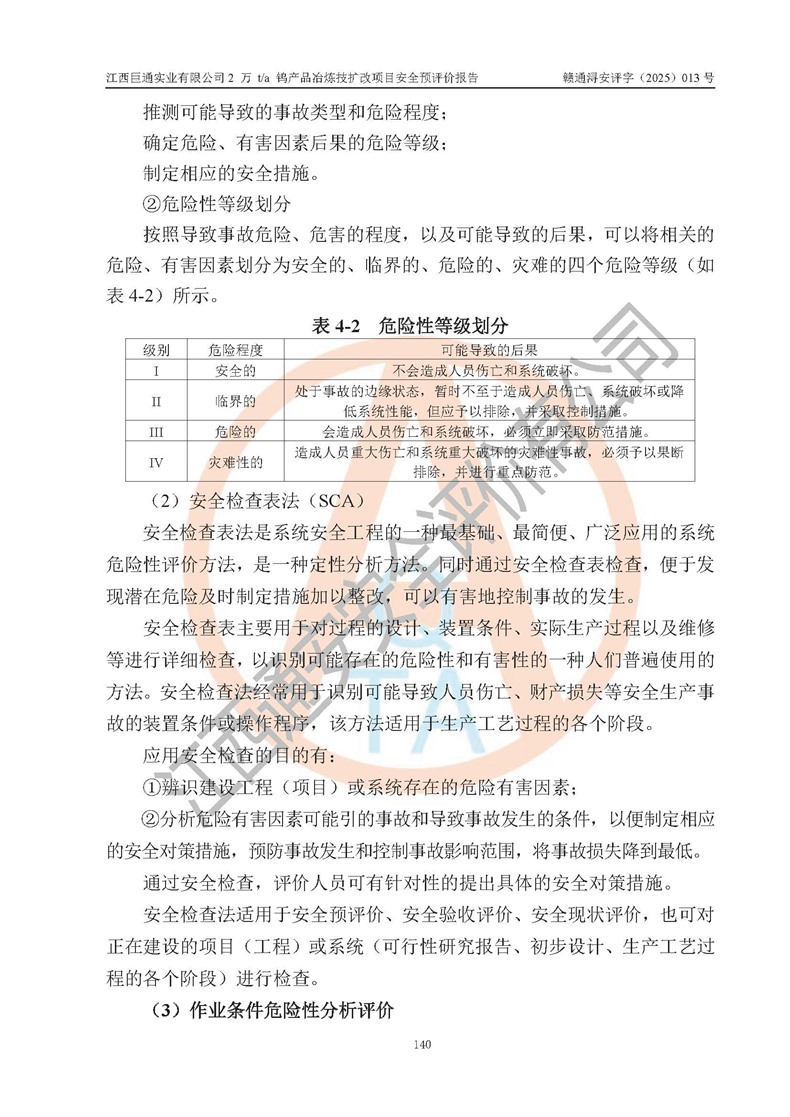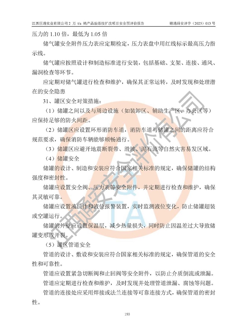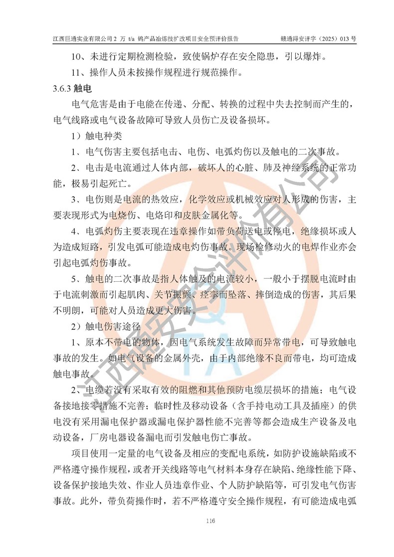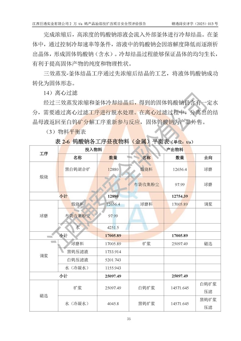 评价报告名称 | 江西巨通实业有限公司2 万 t/a 钨产品冶炼技扩改项目安全预评价报告 | |||