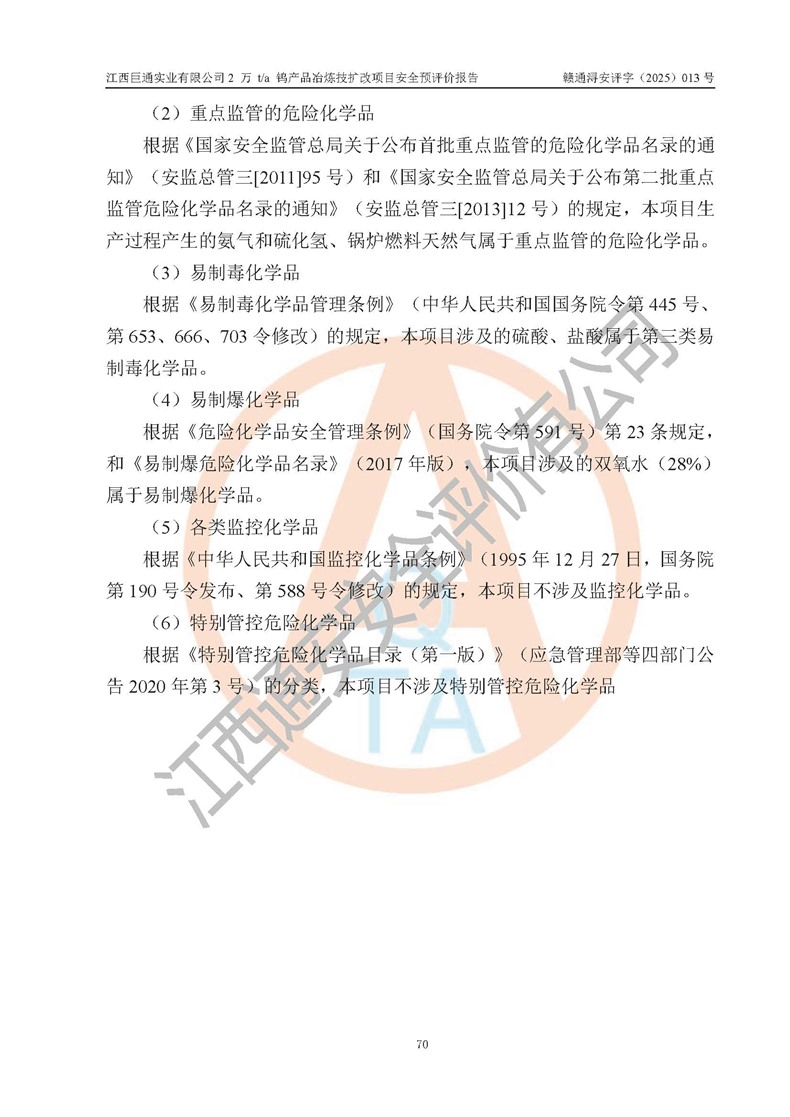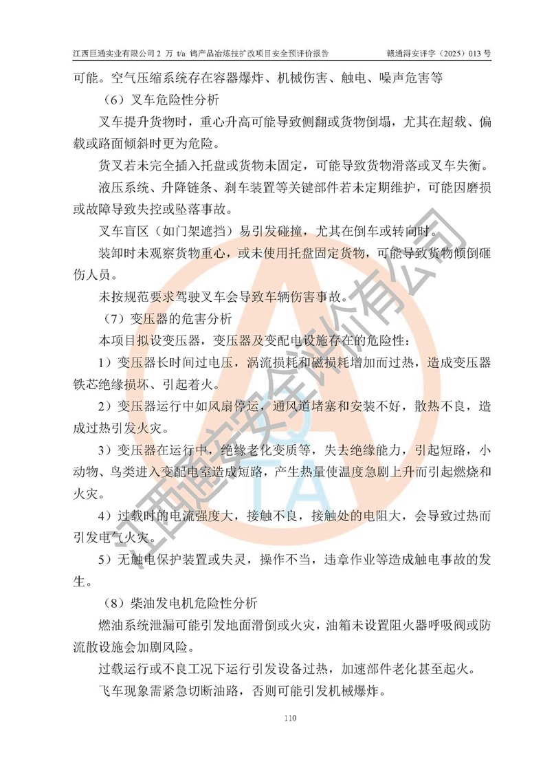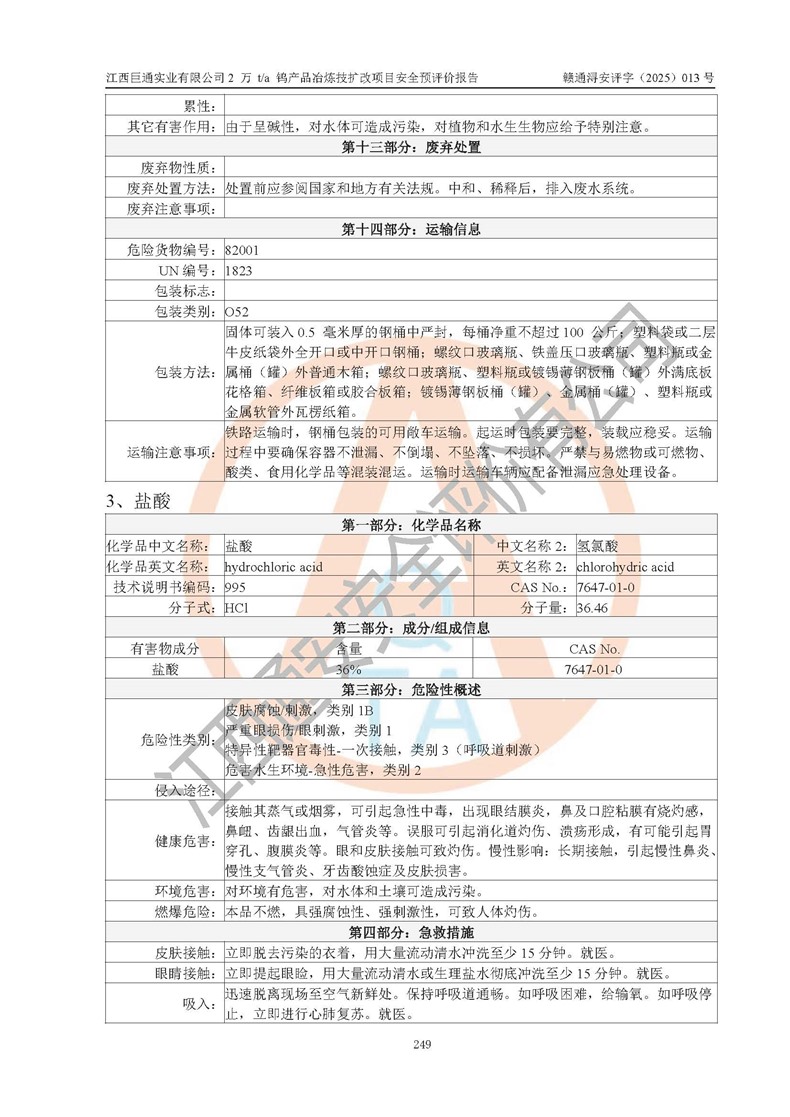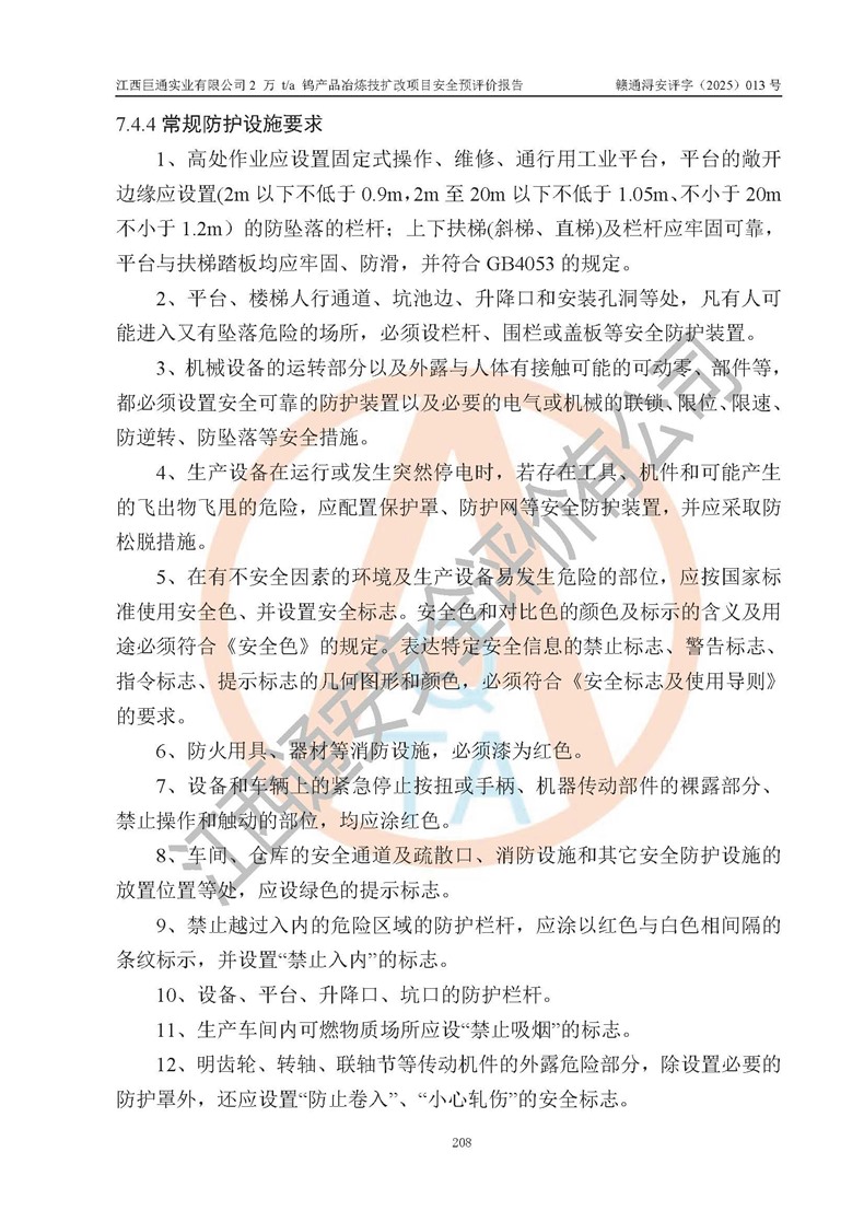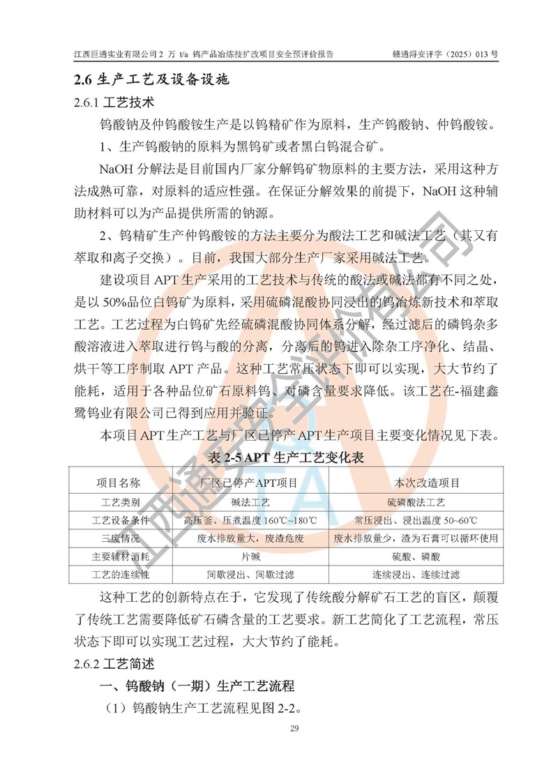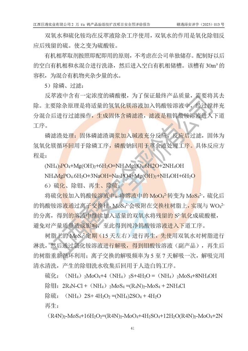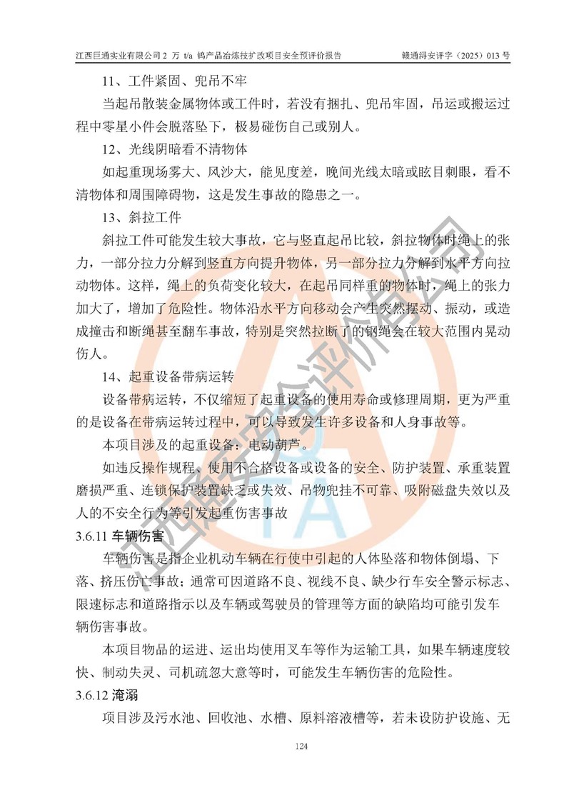 评价报告名称 | 江西巨通实业有限公司2 万 t/a 钨产品冶炼技扩改项目安全预评价报告 | |||