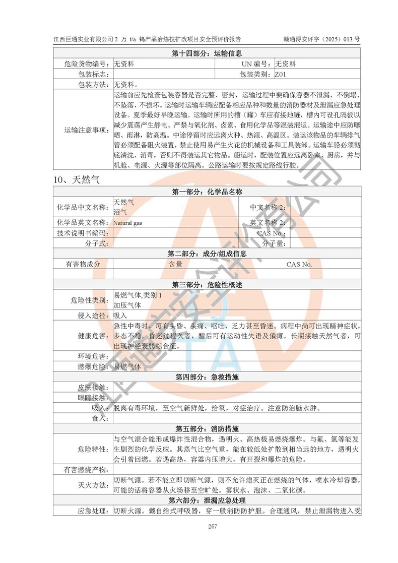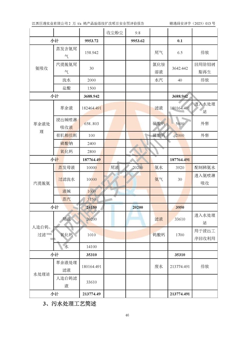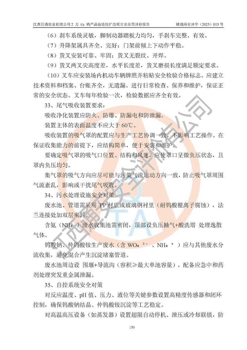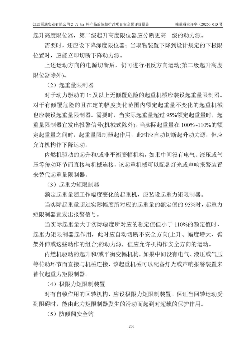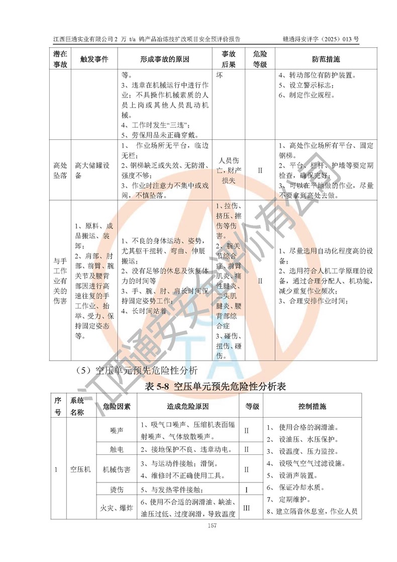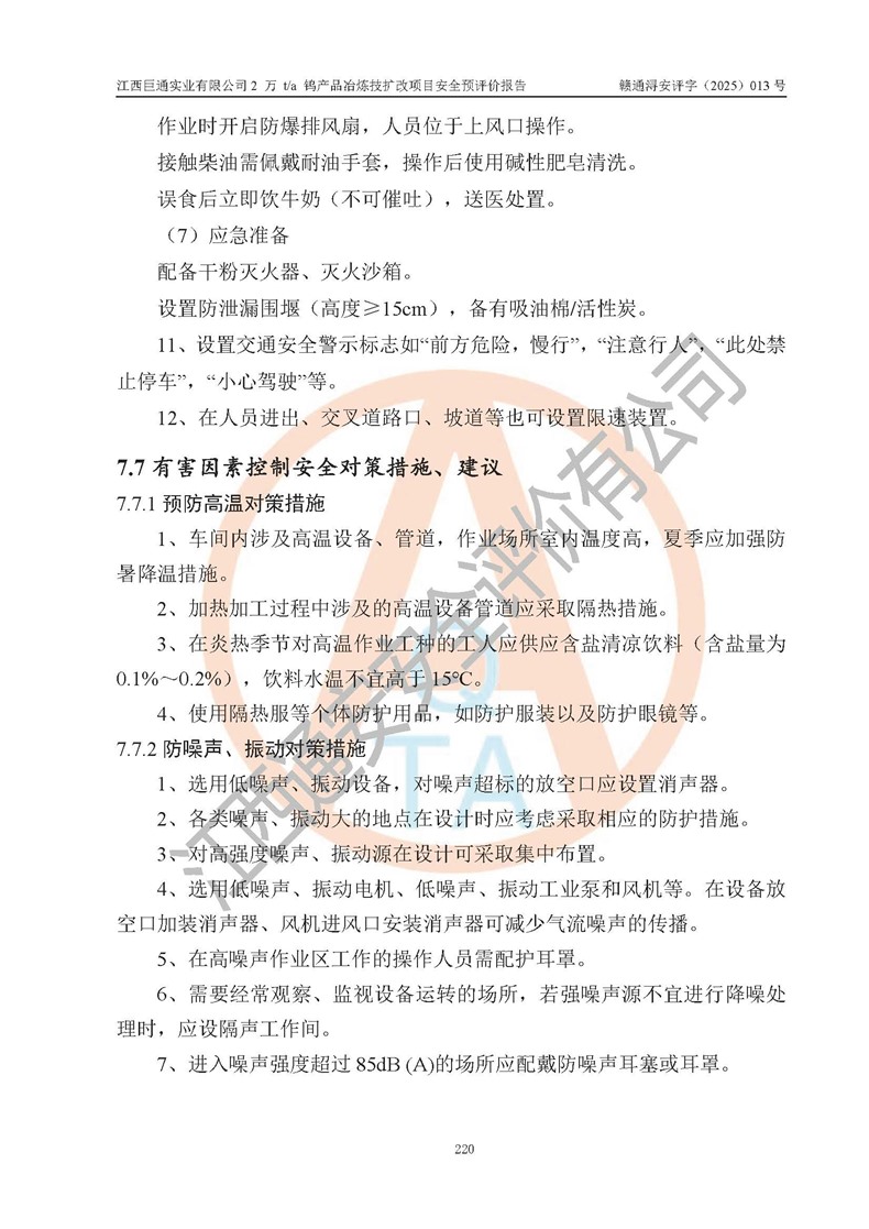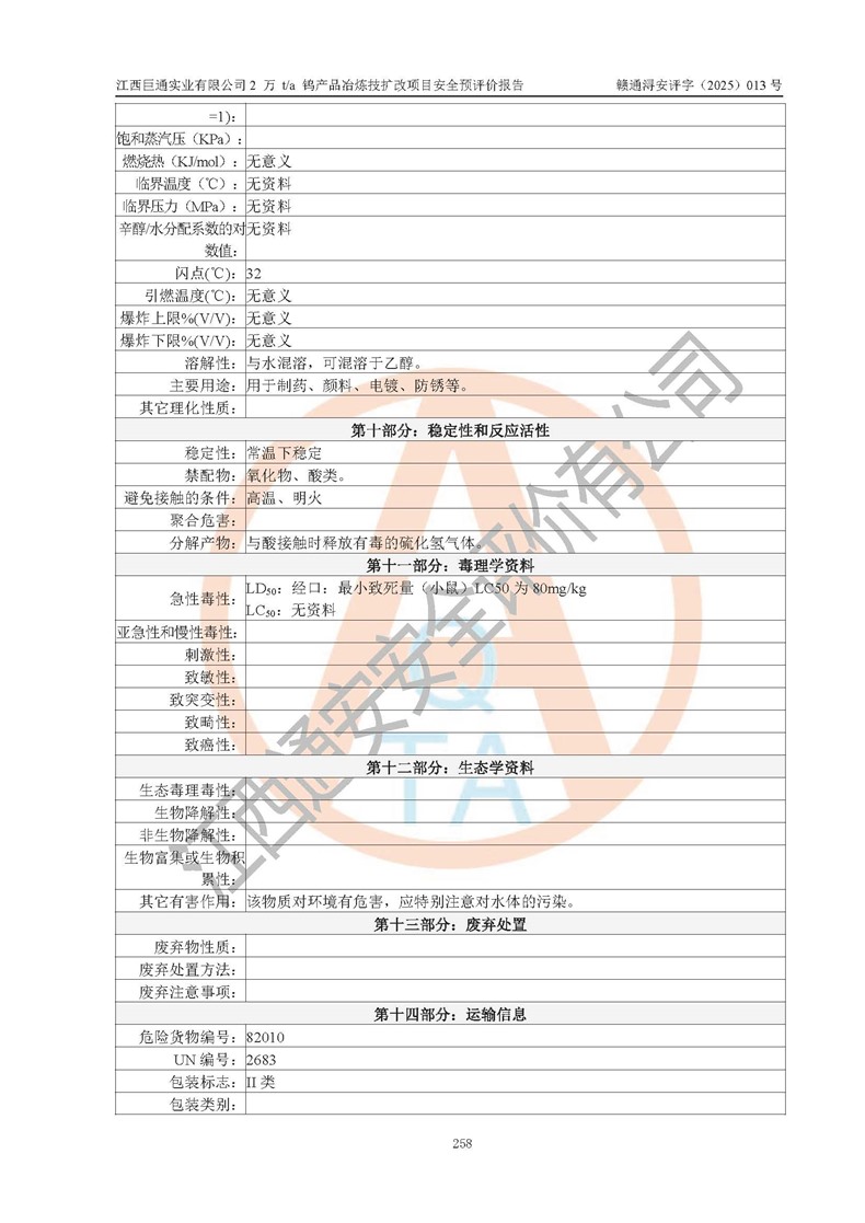 评价报告名称 | 江西巨通实业有限公司2 万 t/a 钨产品冶炼技扩改项目安全预评价报告 | |||