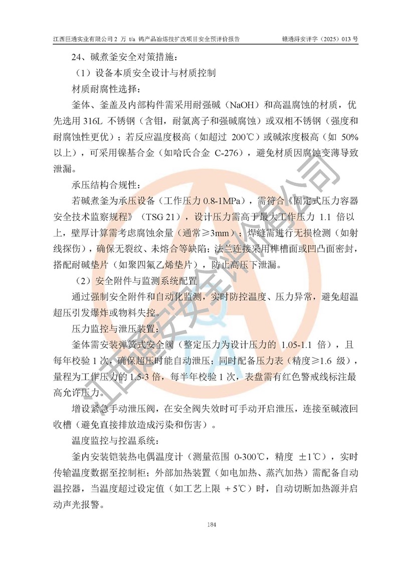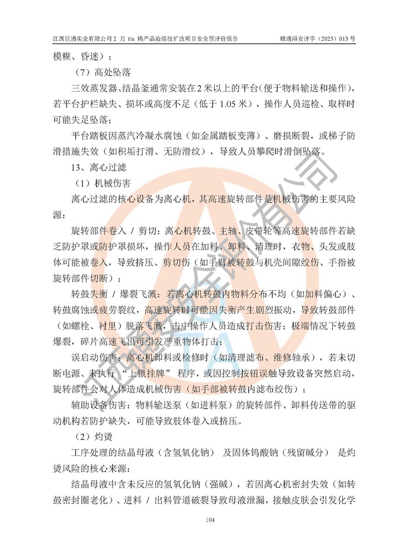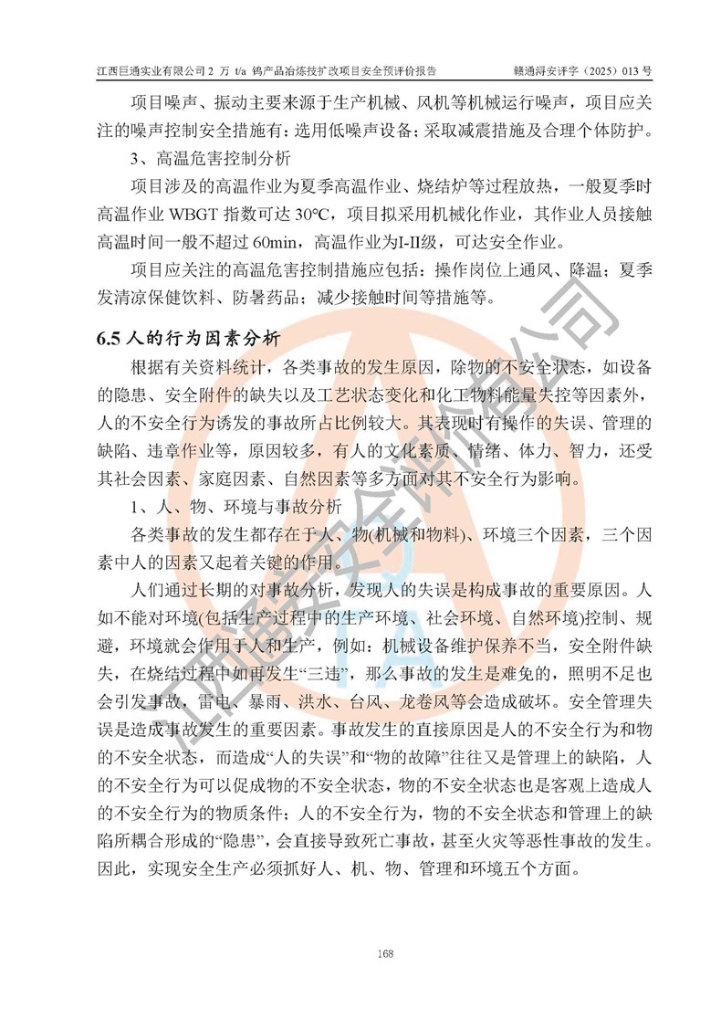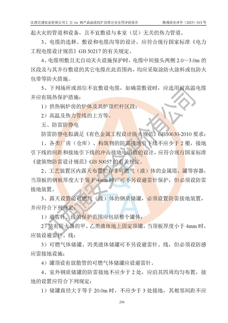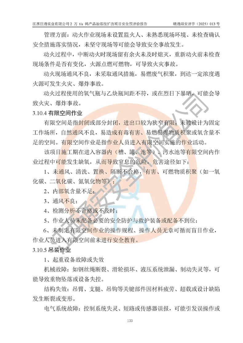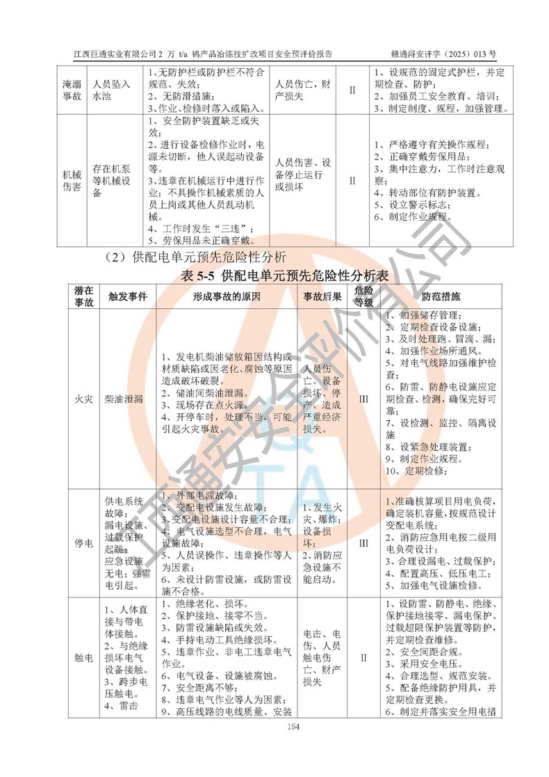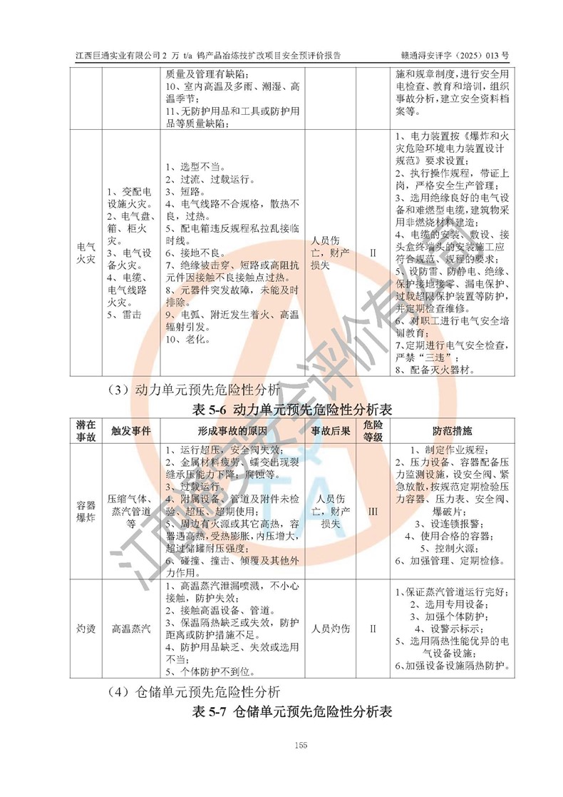 评价报告名称 | 江西巨通实业有限公司2 万 t/a 钨产品冶炼技扩改项目安全预评价报告 | |||
