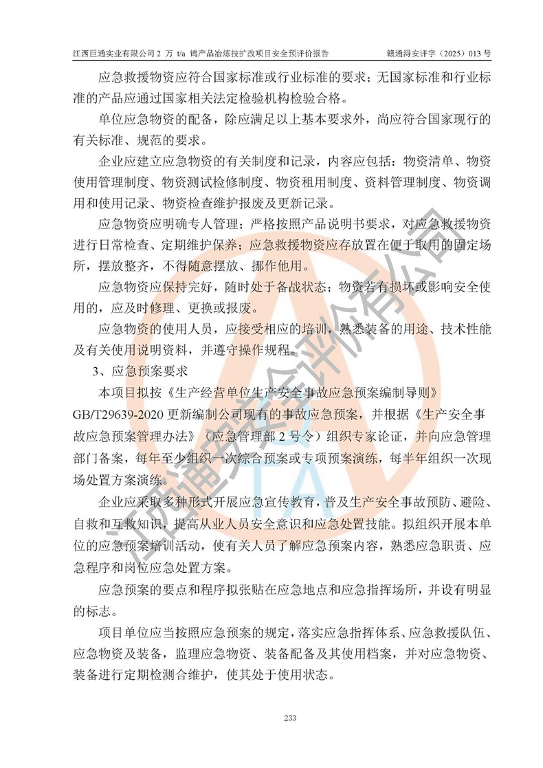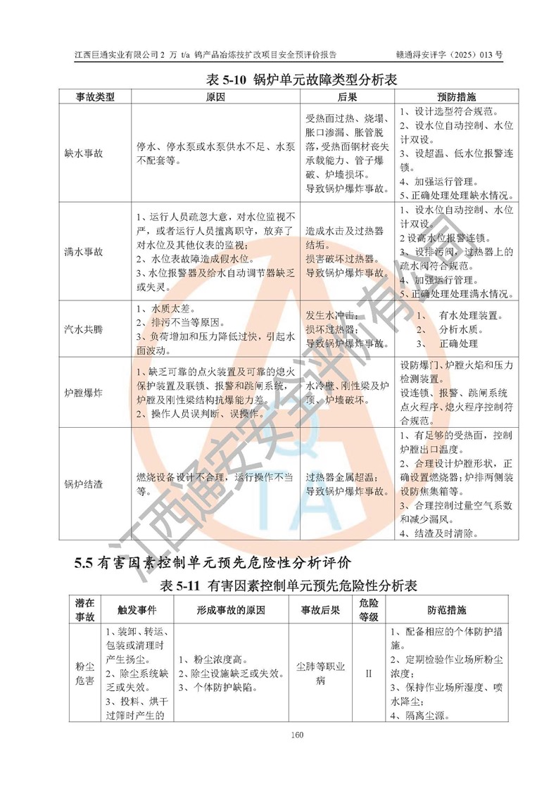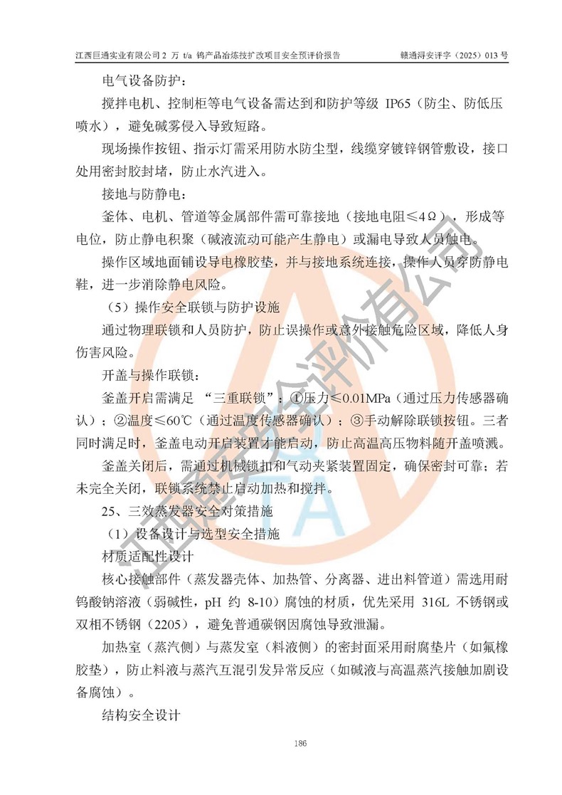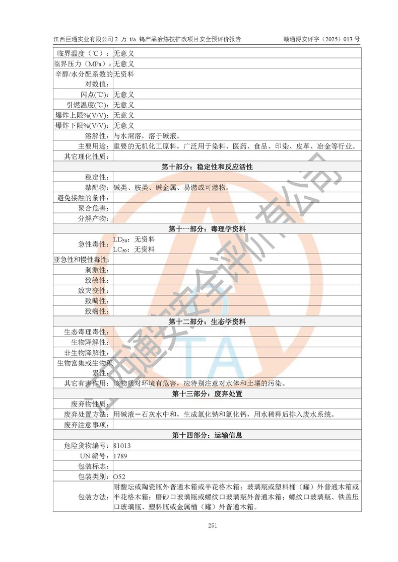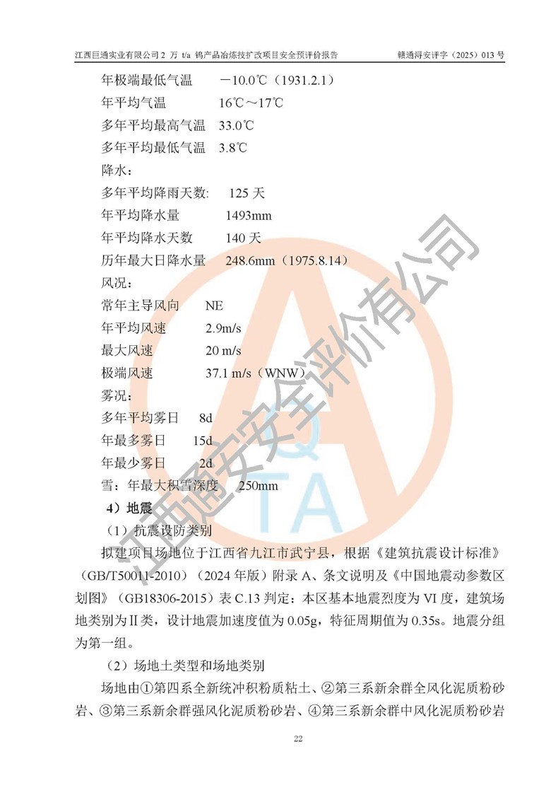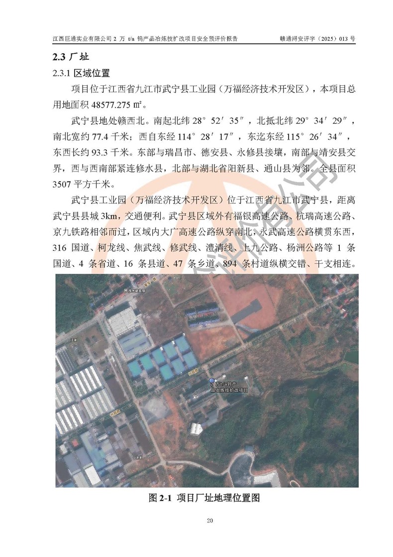 评价报告名称 | 江西巨通实业有限公司2 万 t/a 钨产品冶炼技扩改项目安全预评价报告 | |||