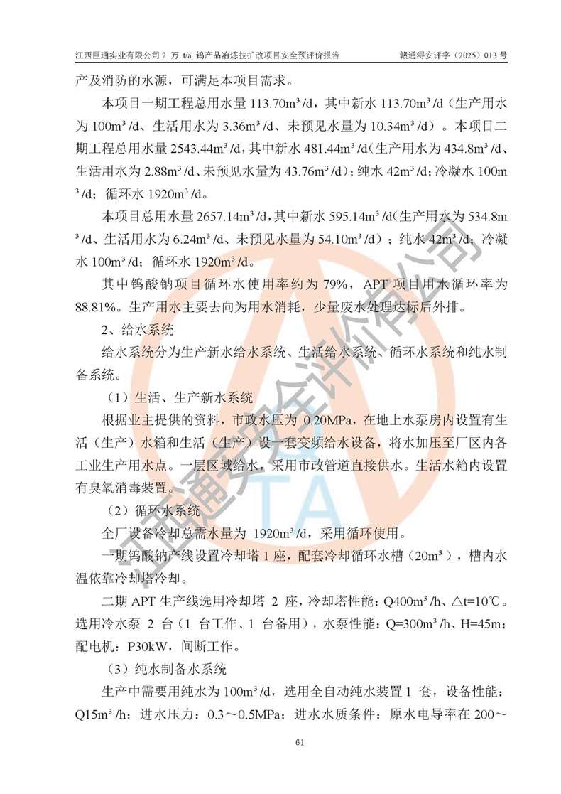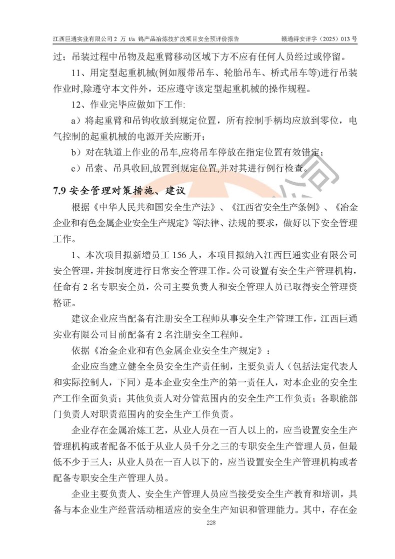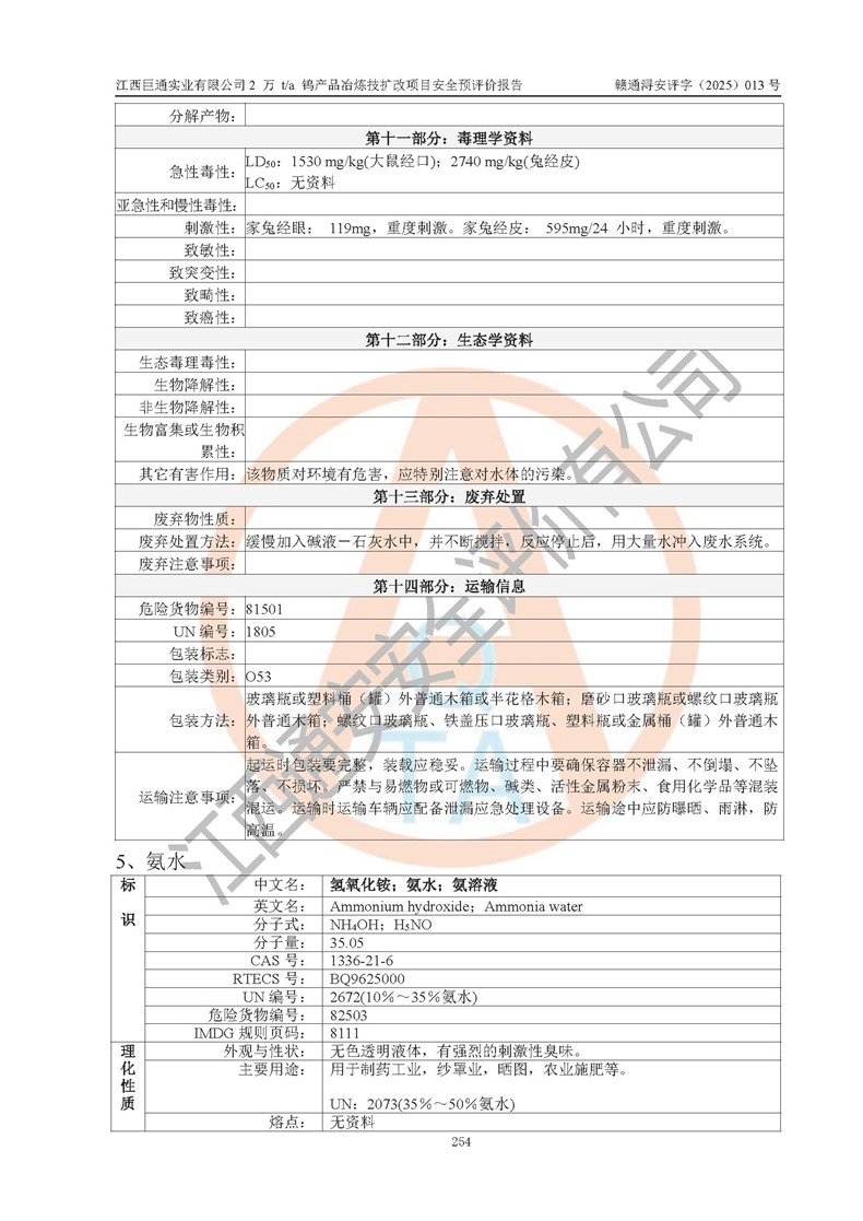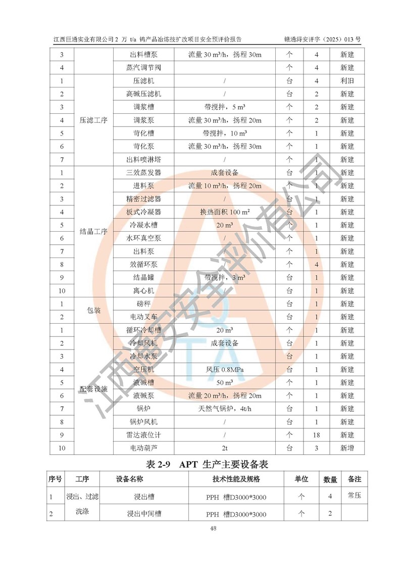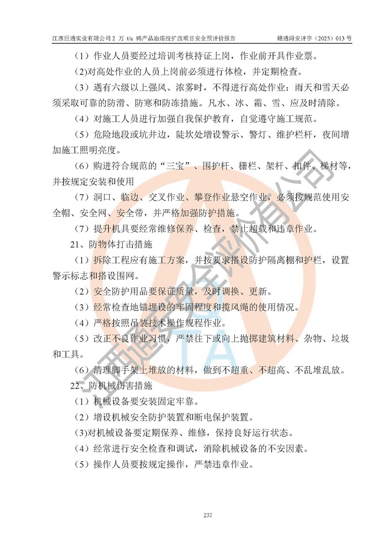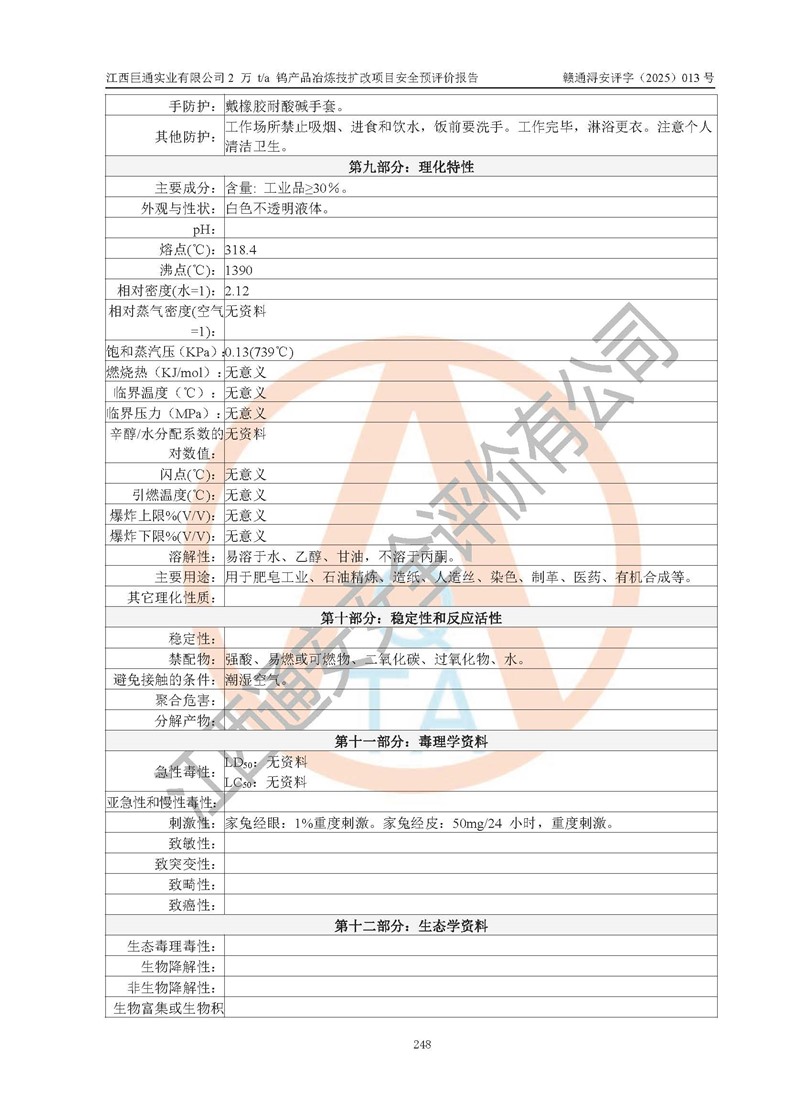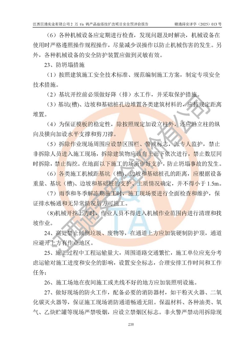 评价报告名称 | 江西巨通实业有限公司2 万 t/a 钨产品冶炼技扩改项目安全预评价报告 | |||