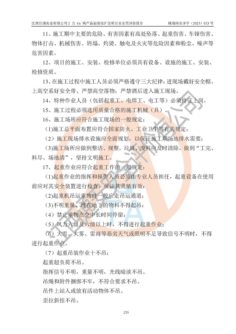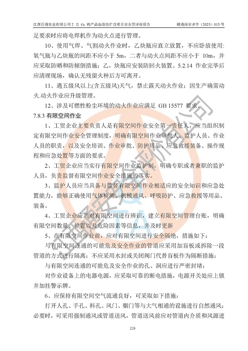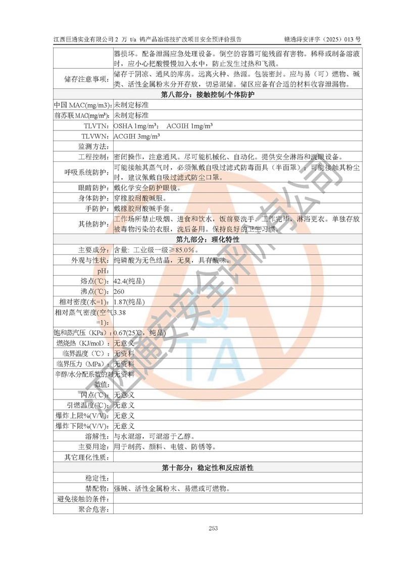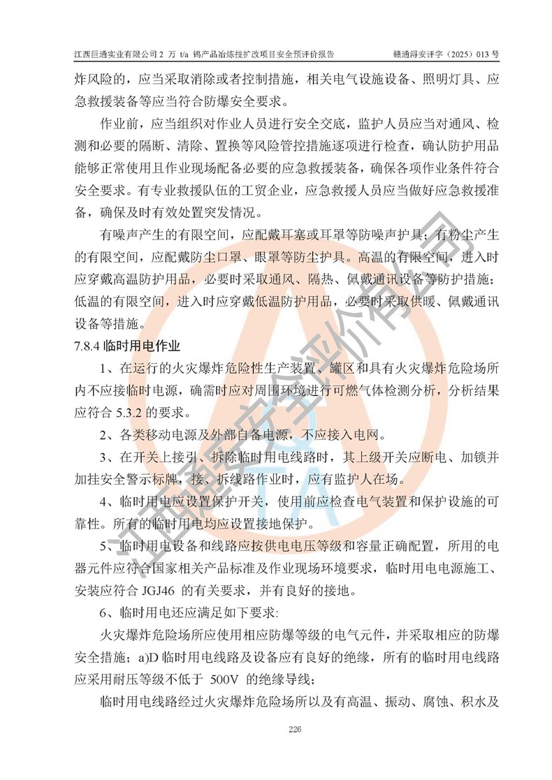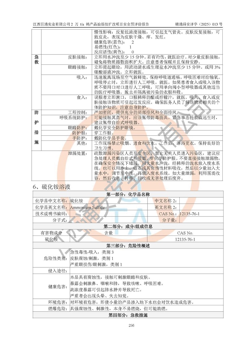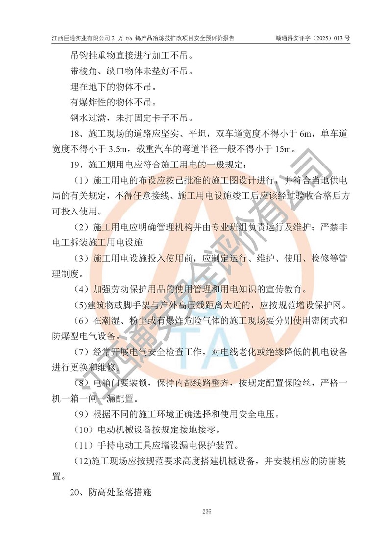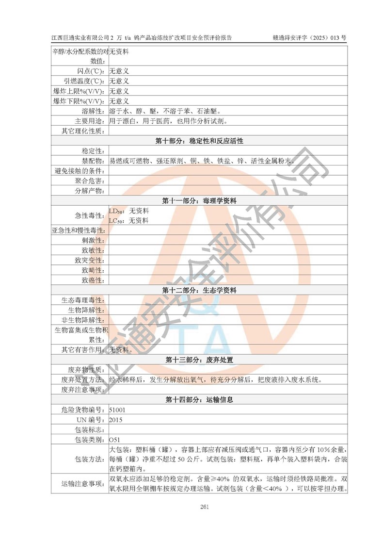 评价报告名称 | 江西巨通实业有限公司2 万 t/a 钨产品冶炼技扩改项目安全预评价报告 | |||