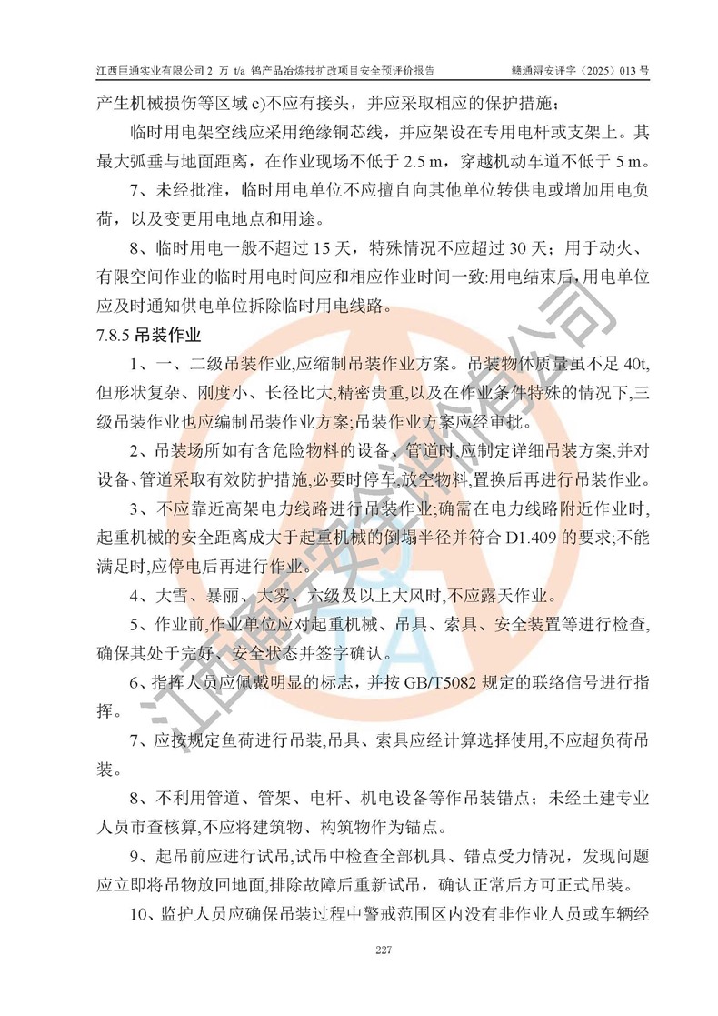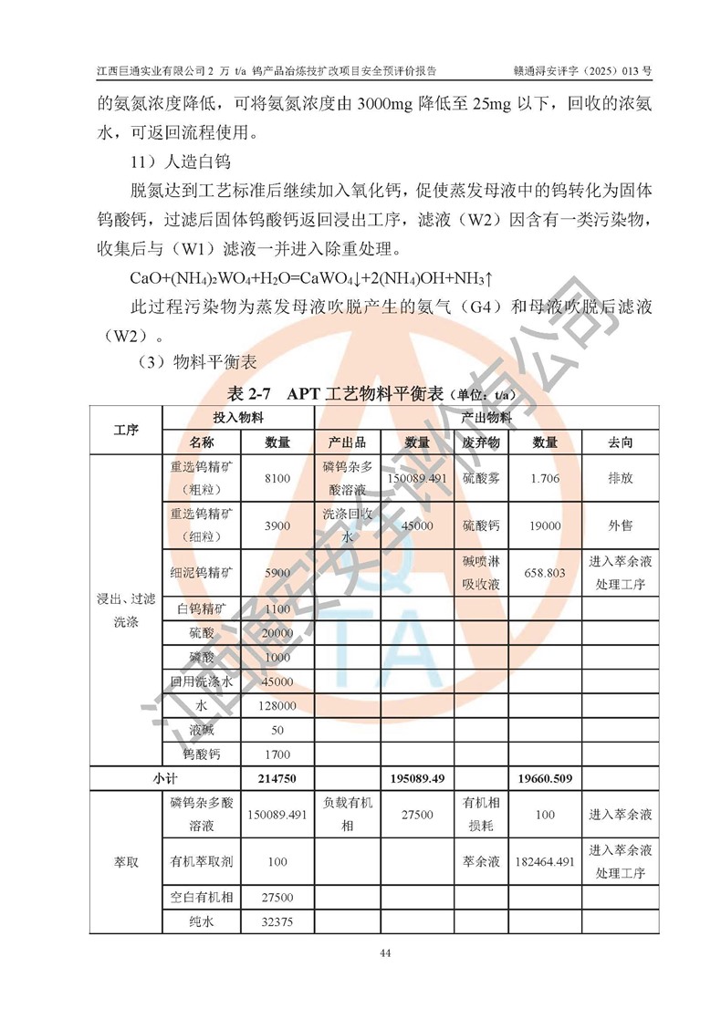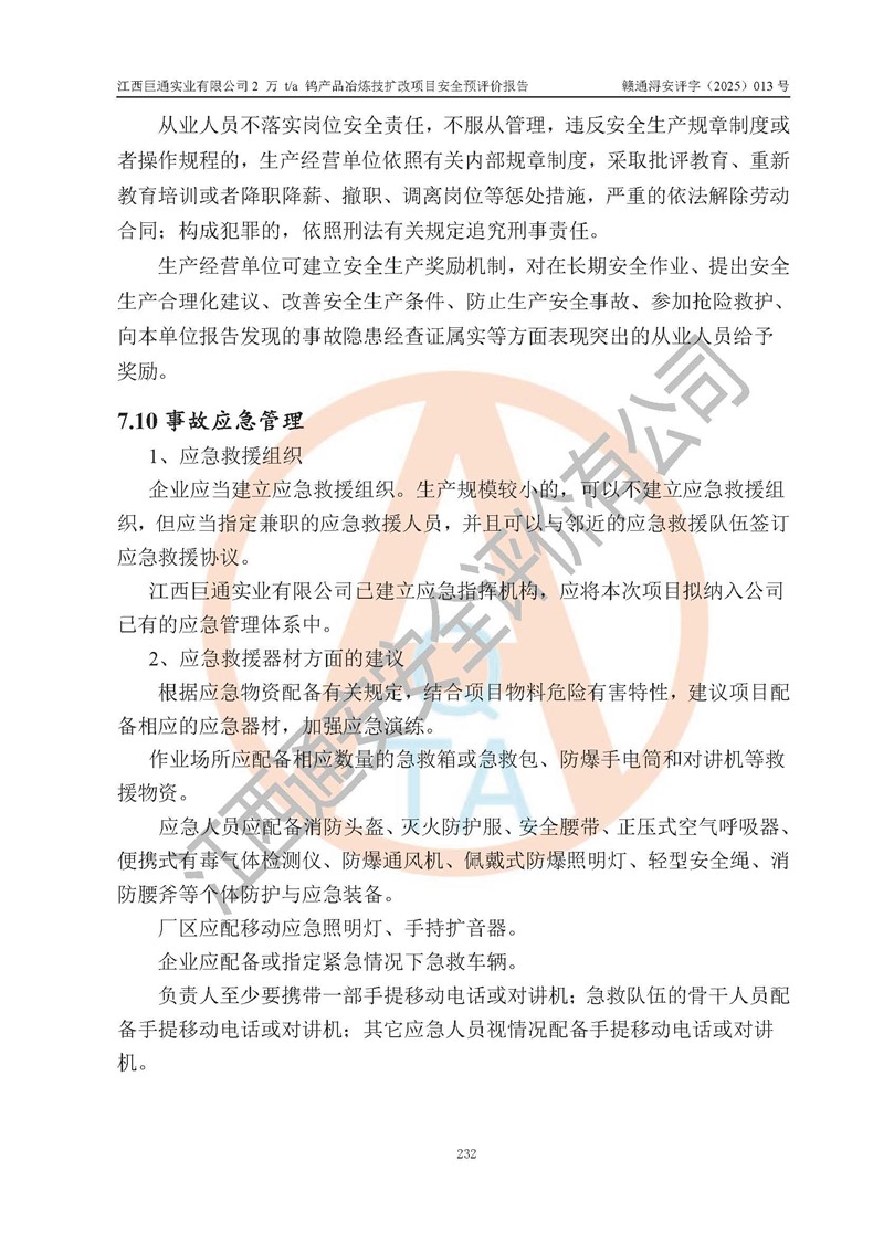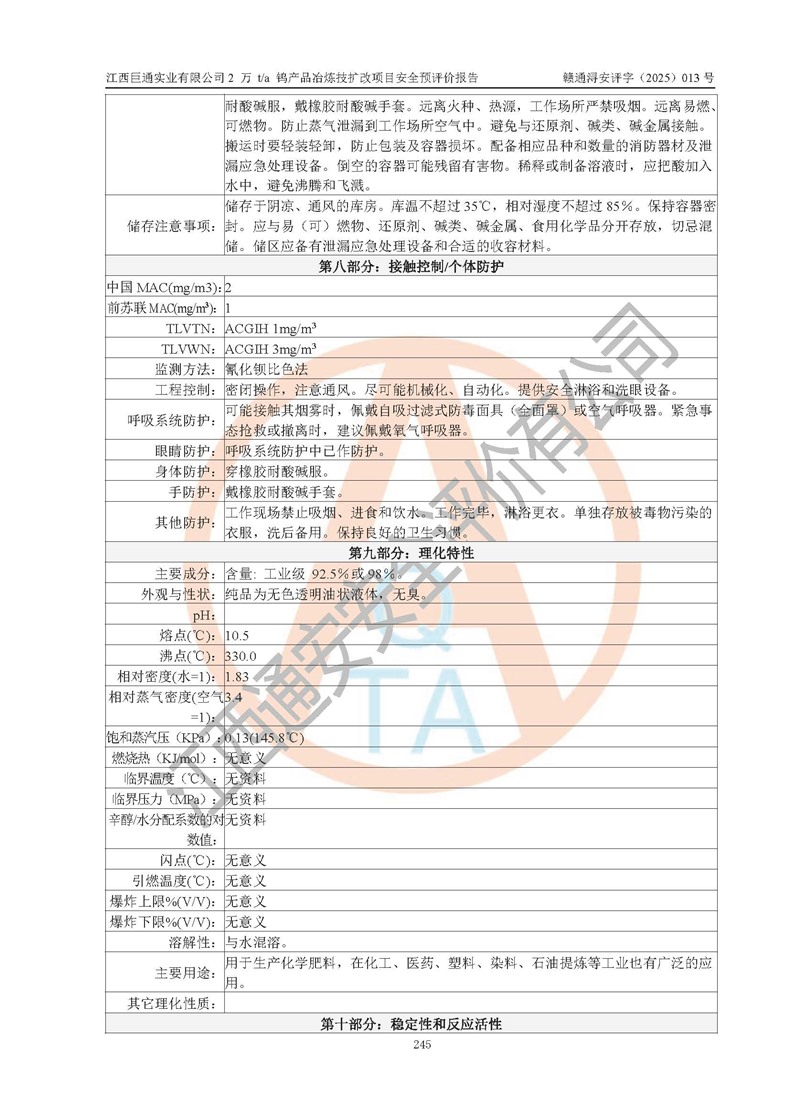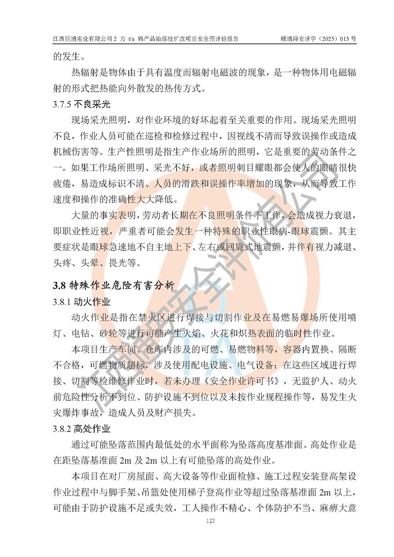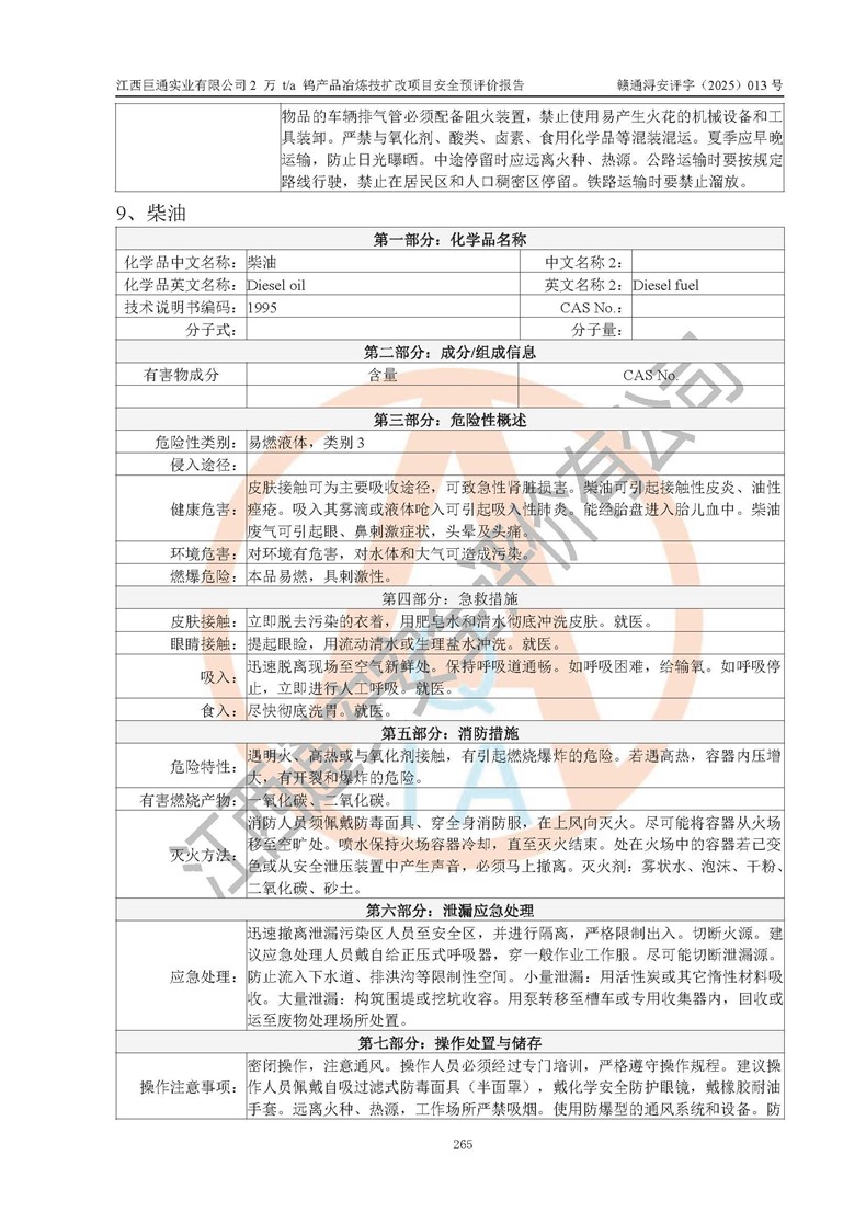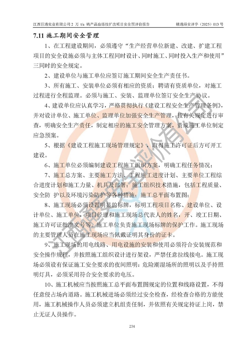 评价报告名称 | 江西巨通实业有限公司2 万 t/a 钨产品冶炼技扩改项目安全预评价报告 | |||