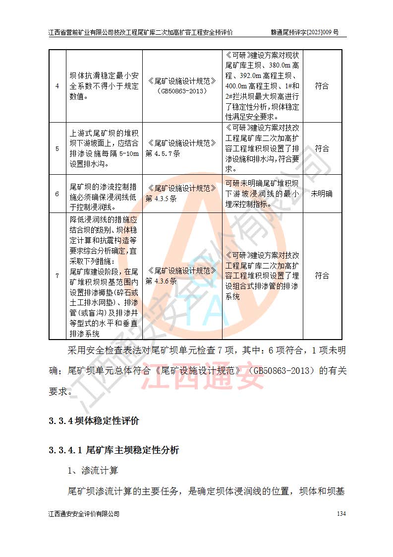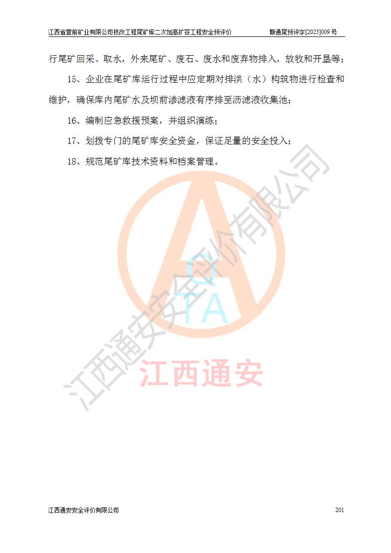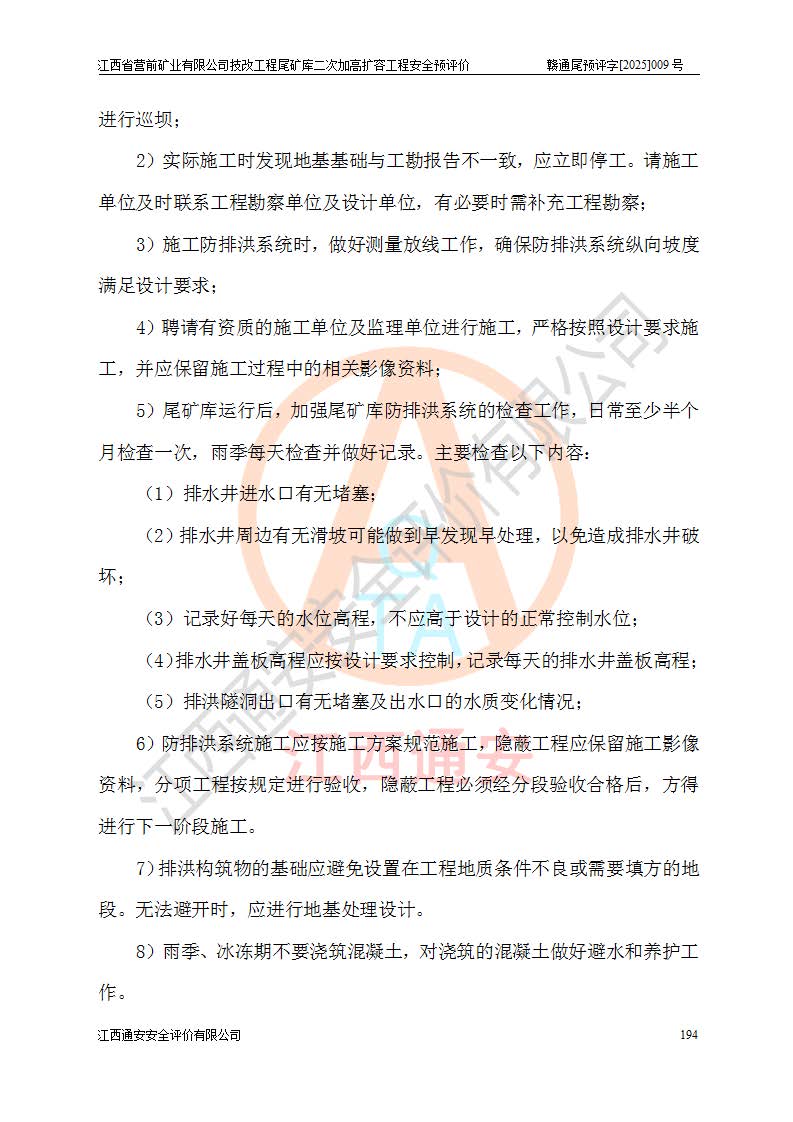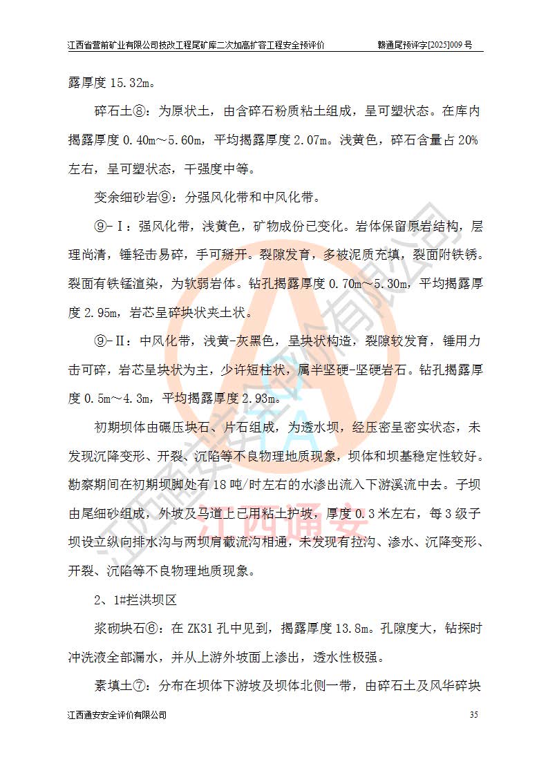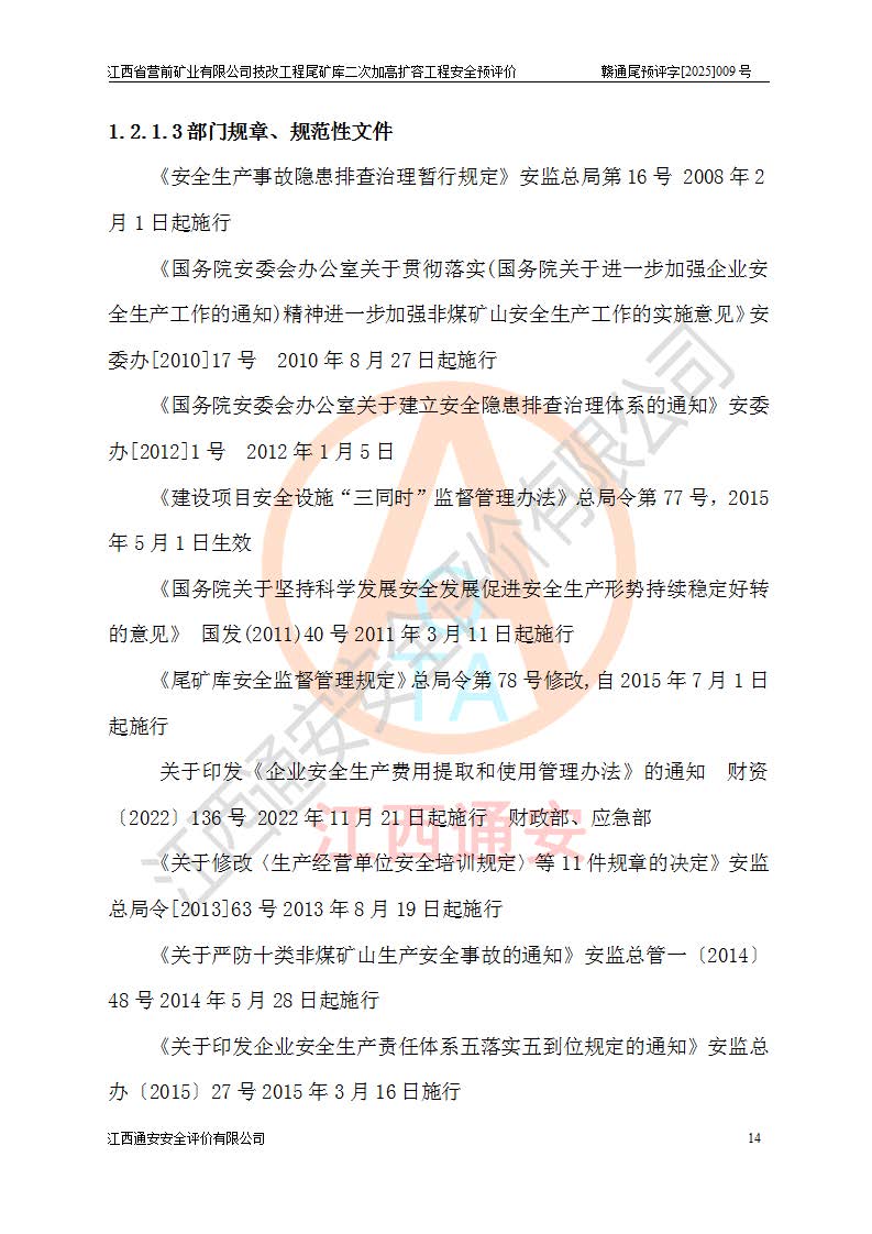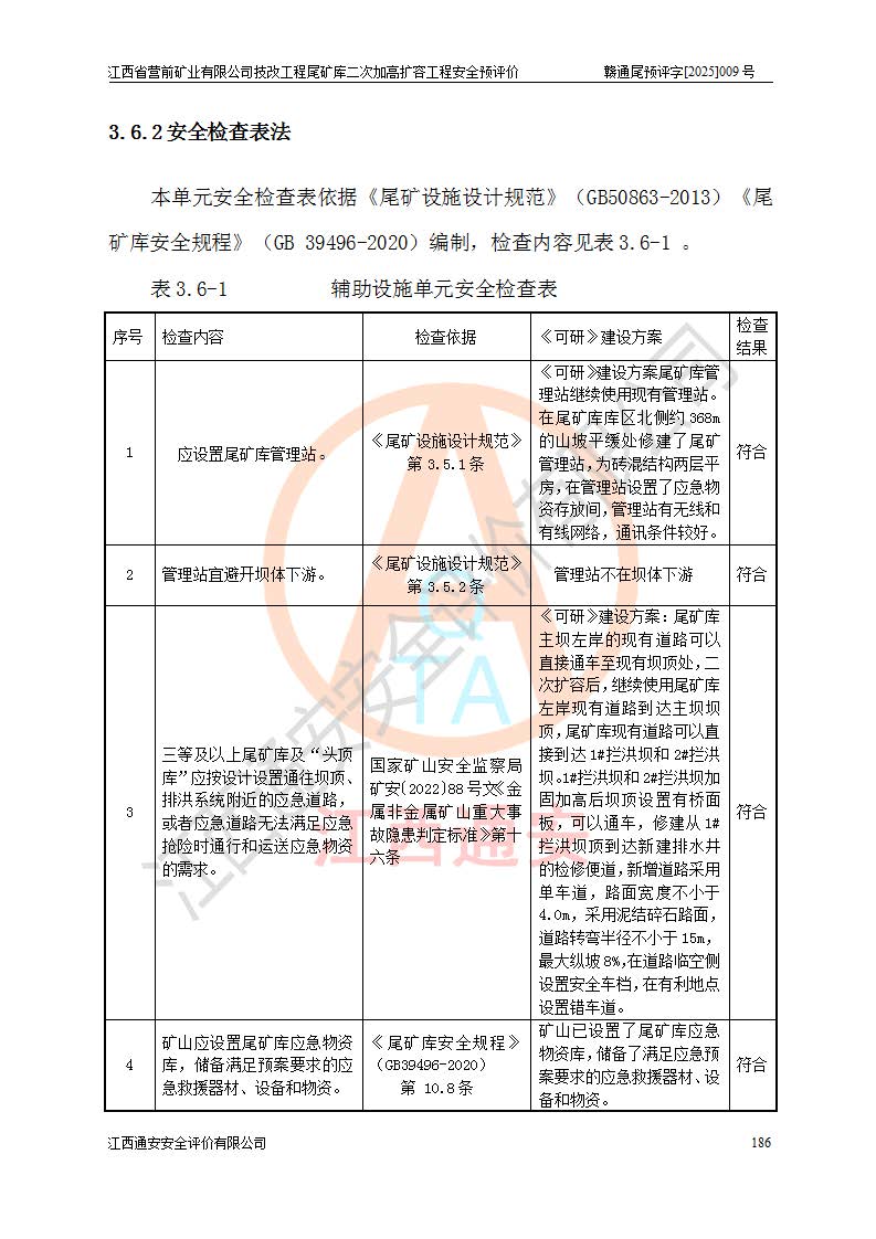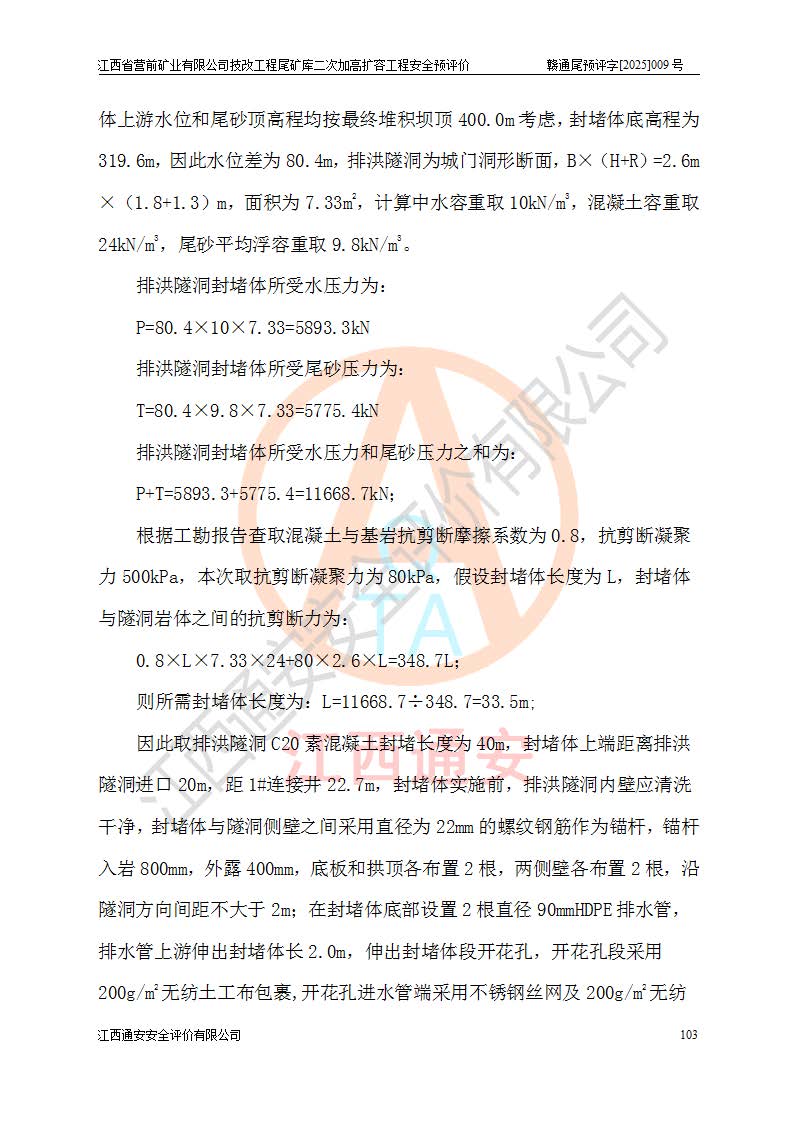 江西省营前矿业有限公司于2003年12月16日成立,位于赣州市上犹县营前镇焦里村境内,公司注册资本10000万元,法定**人陈雅博,矿区地理坐标:东经114°18′30″~114°19′00″,北纬25°52′35″~25°53′47″。公司经营范围包括:铅矿、锌、钨、银地下开采、销售。 江西省营前矿业有限公司技改工程尾矿库位于焦里钨银铅锌矿区,处于上犹县水岩乡井子村坑尾自然村境内,为山谷型尾矿库。 江西省营前矿业有限公司技改工程尾矿库于2013年由福建省冶金工业设计院设计,2014年8月开始施工建设,2015年4月竣工开始试运行,2015年11月完成竣工验收,2016年1月首次取得安全生产许可证,2019年1月完成延期换证,2020年8月委托金建工程设计有限公司进行尾矿库加高扩容工作,2020年10月21日取得了江西省应急管理厅下发的《关于江西省营前矿业有限公司技改工程尾矿库加高扩容工程安全设施设计的审查意见》(赣应急非煤项目设审〔2020〕46号),之后委托驻马店市黄淮建设工程有限公司负责施工,云南润滇工程技术有限公司负责监理,2021年12月完成加高扩容竣工验收工作,经过延期,现尾矿库安全生产许可证编号(赣)FM安许证字[2016]M1692号,**期为2025年01月18日至2028年01月17日。 江西省营前矿业有限公司技改工程尾矿库为山谷型尾矿库,初期坝为透水堆石坝,坝顶高程为330.0m,初期坝高25.0m,后期采用上游式尾矿堆积坝,加高扩容后*终坝顶高程为380.0m,堆积坝高50.0m,总坝高为75.0m,总库容为为503.14×104m3,尾矿库为三等库。尾矿库初期坝以上总汇水面积3.53km2,防洪标准取500年一遇。 目前尾矿库由初期坝、堆积坝、库内排洪系统(双格排水斜槽+连接井+排水涵洞+排洪隧洞+排水陡槽+消力池)、1#拦洪坝、1#分洪隧洞、2#拦洪坝、2#分洪隧洞和安全监测设施组成。根据建设单位提供的尾矿库平面布置图,截至2024年12月,现状尾矿库堆积坝顶高程为372.2m,现状总坝高67.2m,滩顶高程为369.8m,现状全库容387.51×104m3,现状尾矿库为三等库,原加高扩容设计*终堆积坝顶高程为380.0m,现剩余库容115.63×104m3,剩余**库容约92.5×104m3,剩余服务年限约4.5年;矿山现有储量较大,剩余库容及服务年限不满足矿山后期生产需要。 技改工程尾矿库尾矿坝下游1**范围无居民,不存在工矿企业等建构筑物,不属于“头顶库”;尾矿库不压矿;距赣江直线距离60**;不涉及保护区及生态红线;尾矿库所在沟谷较长,谷底平均纵坡9%,上游周边山体地形有利于尾矿库二次加高扩容工程的实施,因此为了增加尾矿库库容,延长服务年限,充分利用尾矿库所在沟谷地形,江西省营前矿业有限公司对技改尾矿库进行二次加高扩容。 2024年12月,江西省营前矿业有限公司委托地矿赣西地质工程勘察院编制了《江西省营前矿业有限公司技改工程尾矿库二次扩容工程(水文)地质勘察报告》,2025年4月,江西省营前矿业有限公司委托金建工程设计有限公司编制了《江西省营前矿业有限公司技改工程尾矿库二次加高扩容工程可行性研究报告》。 按照非煤矿山建设项目安全设施“三同时”的规定要求,技改工程尾矿库为二次加高扩容工程,**进行安全预评价;江西省营前矿业有限公司委托我公司承担技改工程尾矿库二次加高扩容工程建设项目的安全预评价工作。 |
