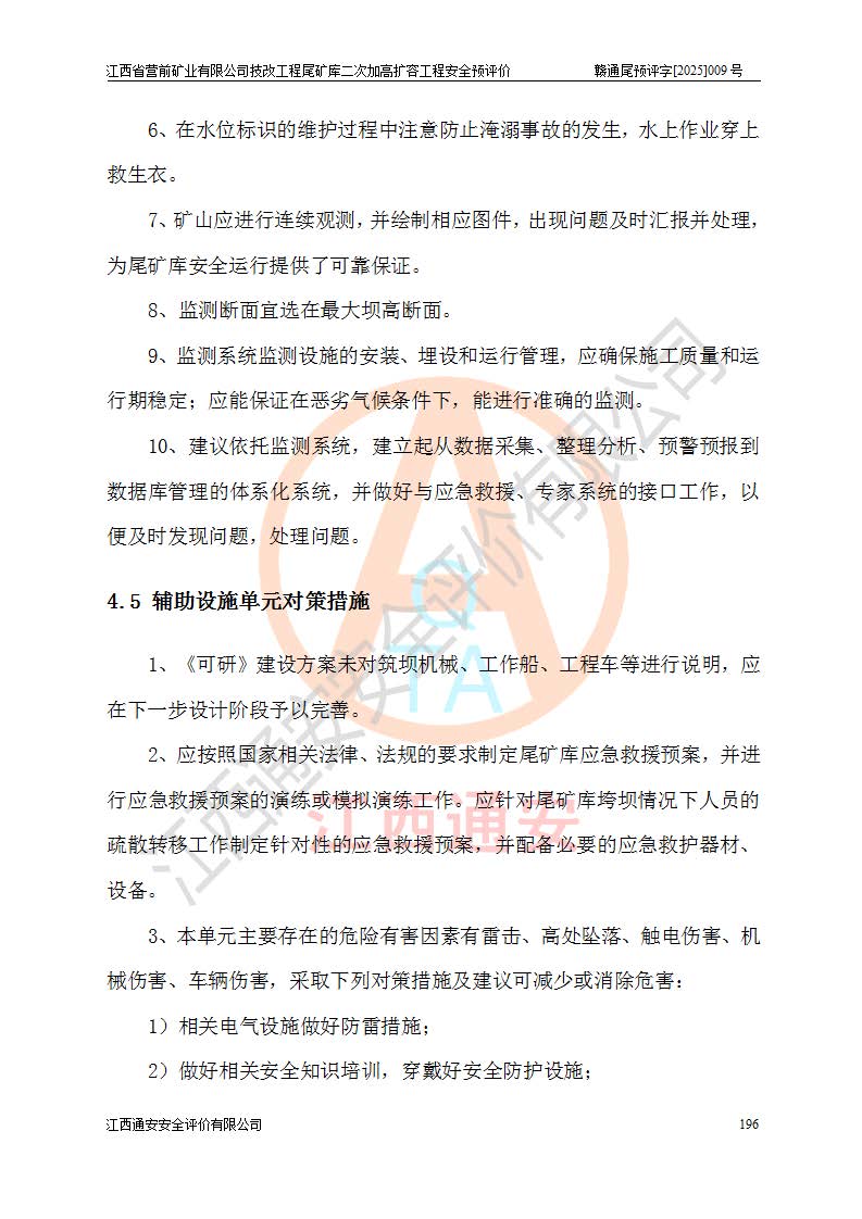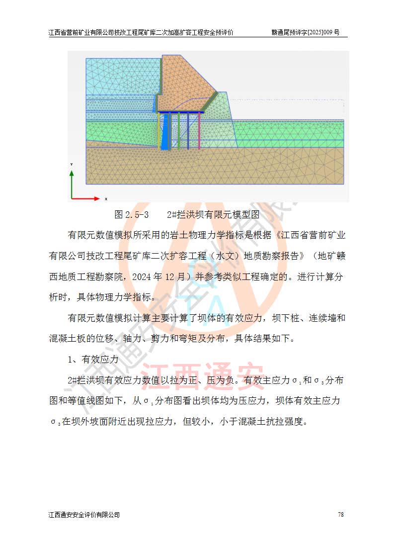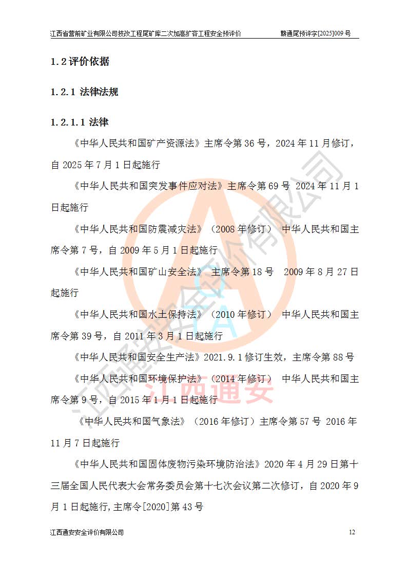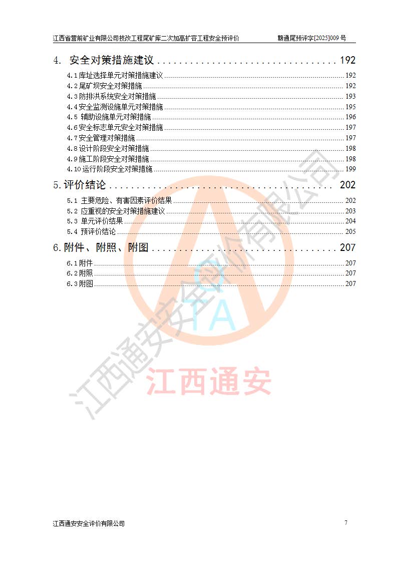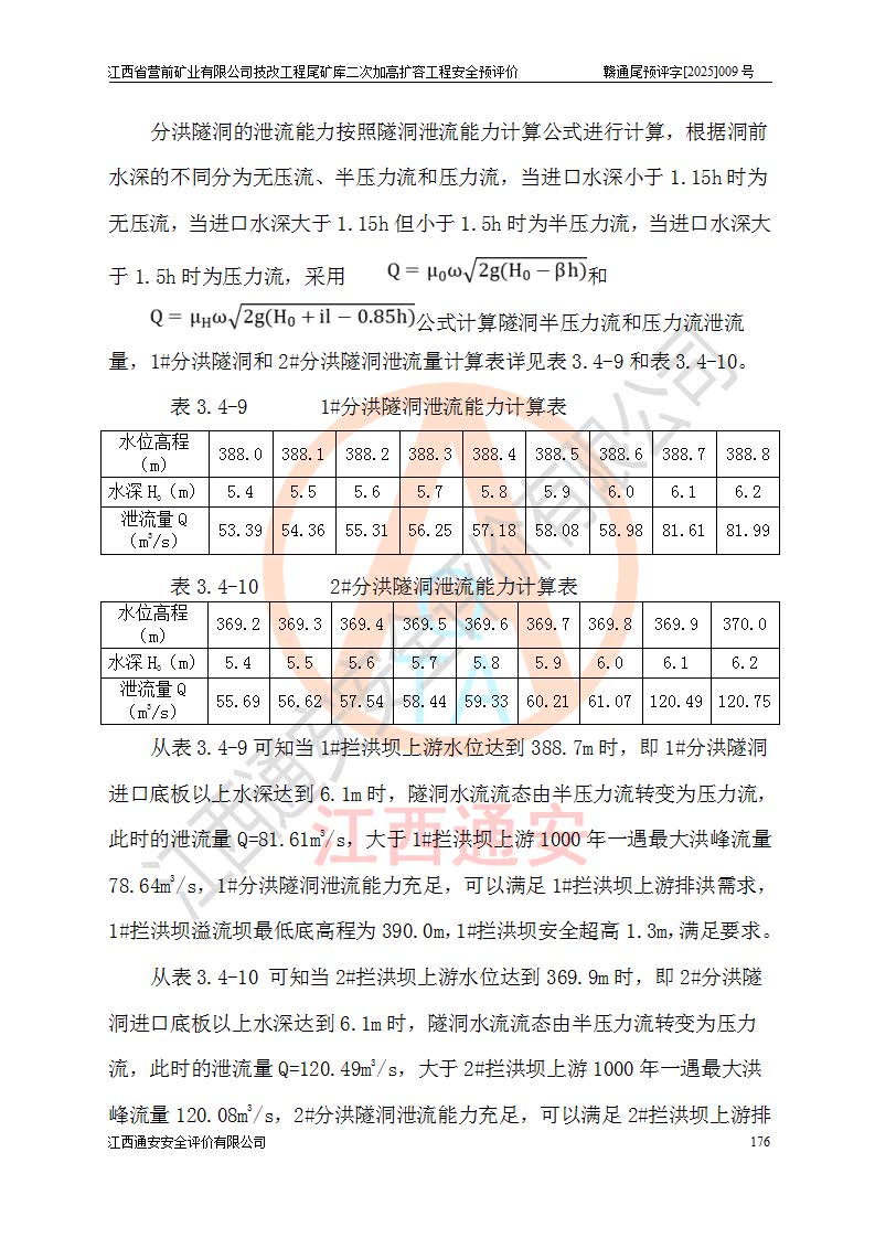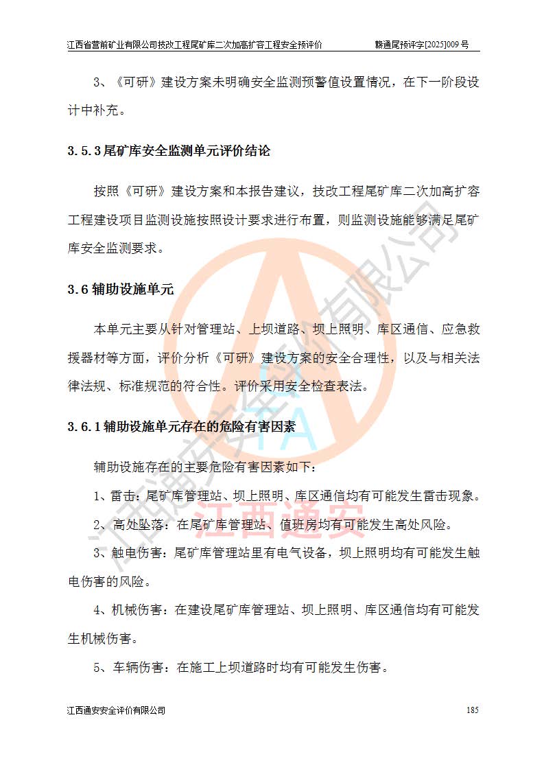 江西省营前矿业有限公司于2003年12月16日成立,位于赣州市上犹县营前镇焦里村境内,公司注册资本10000万元,法定**人陈雅博,矿区地理坐标:东经114°18′30″~114°19′00″,北纬25°52′35″~25°53′47″。公司经营范围包括:铅矿、锌、钨、银地下开采、销售。 江西省营前矿业有限公司技改工程尾矿库位于焦里钨银铅锌矿区,处于上犹县水岩乡井子村坑尾自然村境内,为山谷型尾矿库。 江西省营前矿业有限公司技改工程尾矿库于2013年由福建省冶金工业设计院设计,2014年8月开始施工建设,2015年4月竣工开始试运行,2015年11月完成竣工验收,2016年1月首次取得安全生产许可证,2019年1月完成延期换证,2020年8月委托金建工程设计有限公司进行尾矿库加高扩容工作,2020年10月21日取得了江西省应急管理厅下发的《关于江西省营前矿业有限公司技改工程尾矿库加高扩容工程安全设施设计的审查意见》(赣应急非煤项目设审〔2020〕46号),之后委托驻马店市黄淮建设工程有限公司负责施工,云南润滇工程技术有限公司负责监理,2021年12月完成加高扩容竣工验收工作,经过延期,现尾矿库安全生产许可证编号(赣)FM安许证字[2016]M1692号,**期为2025年01月18日至2028年01月17日。 江西省营前矿业有限公司技改工程尾矿库为山谷型尾矿库,初期坝为透水堆石坝,坝顶高程为330.0m,初期坝高25.0m,后期采用上游式尾矿堆积坝,加高扩容后*终坝顶高程为380.0m,堆积坝高50.0m,总坝高为75.0m,总库容为为503.14×104m3,尾矿库为三等库。尾矿库初期坝以上总汇水面积3.53km2,防洪标准取500年一遇。 目前尾矿库由初期坝、堆积坝、库内排洪系统(双格排水斜槽+连接井+排水涵洞+排洪隧洞+排水陡槽+消力池)、1#拦洪坝、1#分洪隧洞、2#拦洪坝、2#分洪隧洞和安全监测设施组成。根据建设单位提供的尾矿库平面布置图,截至2024年12月,现状尾矿库堆积坝顶高程为372.2m,现状总坝高67.2m,滩顶高程为369.8m,现状全库容387.51×104m3,现状尾矿库为三等库,原加高扩容设计*终堆积坝顶高程为380.0m,现剩余库容115.63×104m3,剩余**库容约92.5×104m3,剩余服务年限约4.5年;矿山现有储量较大,剩余库容及服务年限不满足矿山后期生产需要。 技改工程尾矿库尾矿坝下游1**范围无居民,不存在工矿企业等建构筑物,不属于“头顶库”;尾矿库不压矿;距赣江直线距离60**;不涉及保护区及生态红线;尾矿库所在沟谷较长,谷底平均纵坡9%,上游周边山体地形有利于尾矿库二次加高扩容工程的实施,因此为了增加尾矿库库容,延长服务年限,充分利用尾矿库所在沟谷地形,江西省营前矿业有限公司对技改尾矿库进行二次加高扩容。 2024年12月,江西省营前矿业有限公司委托地矿赣西地质工程勘察院编制了《江西省营前矿业有限公司技改工程尾矿库二次扩容工程(水文)地质勘察报告》,2025年4月,江西省营前矿业有限公司委托金建工程设计有限公司编制了《江西省营前矿业有限公司技改工程尾矿库二次加高扩容工程可行性研究报告》。 按照非煤矿山建设项目安全设施“三同时”的规定要求,技改工程尾矿库为二次加高扩容工程,**进行安全预评价;江西省营前矿业有限公司委托我公司承担技改工程尾矿库二次加高扩容工程建设项目的安全预评价工作。 |