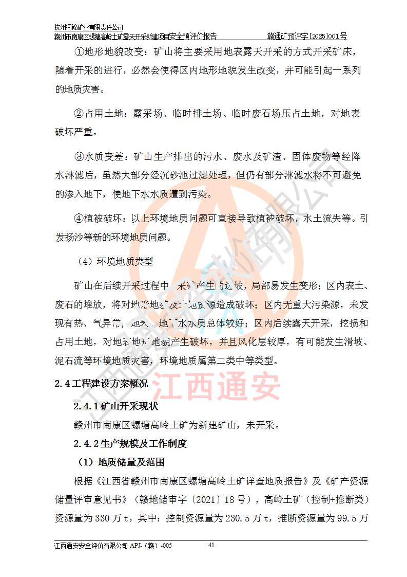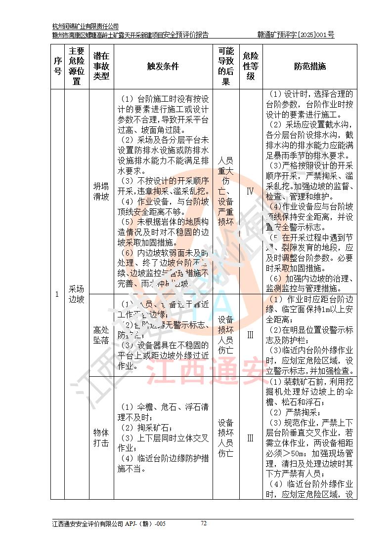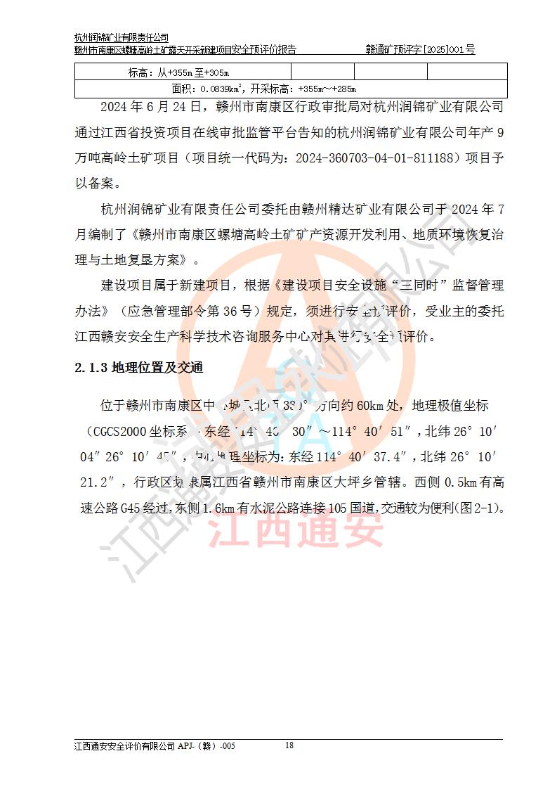 项目名称 | 赣州市南康区螺塘高岭土矿露天开采新建项目安全预评价报告 | ||||
