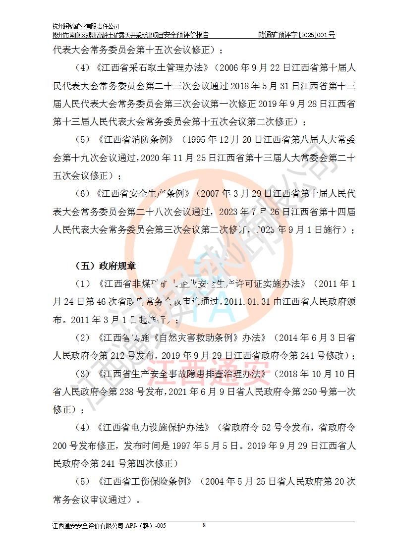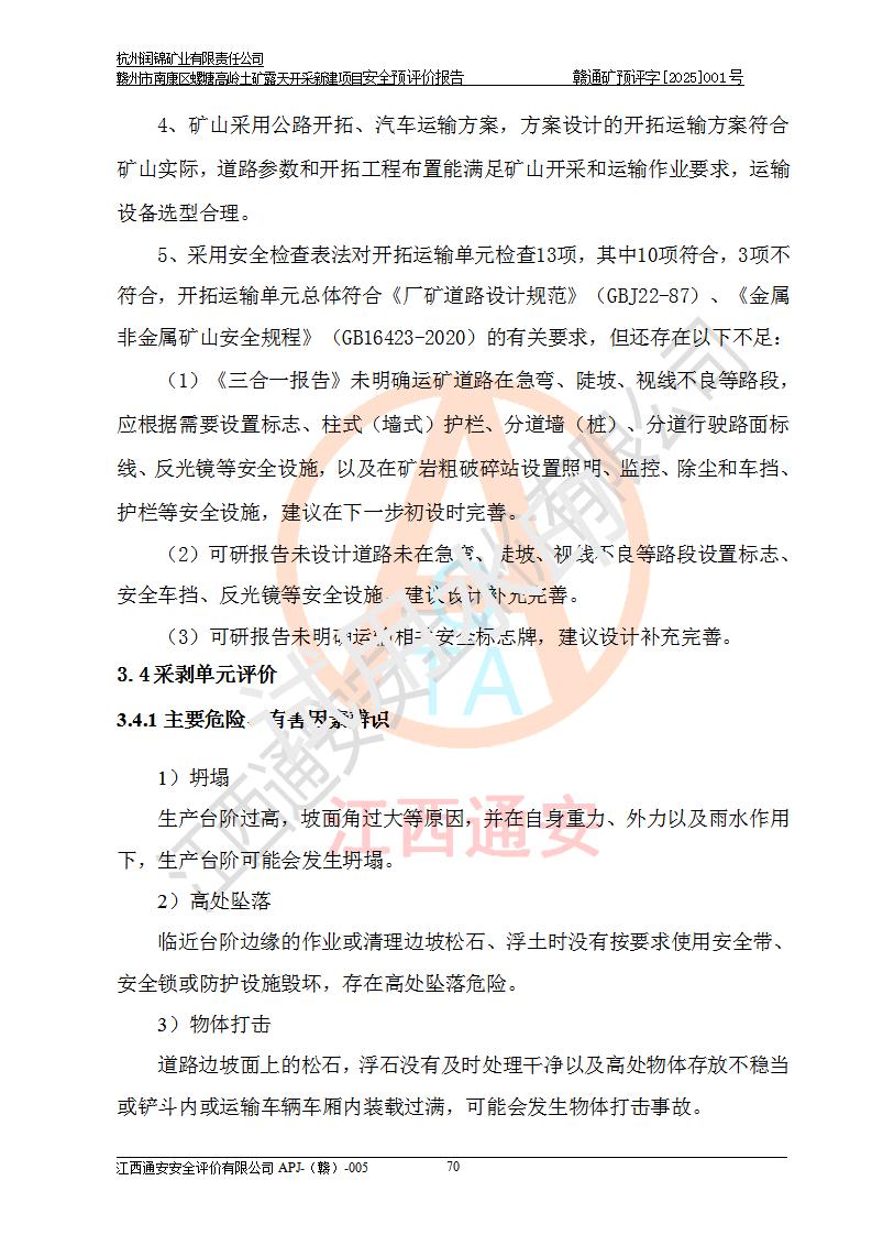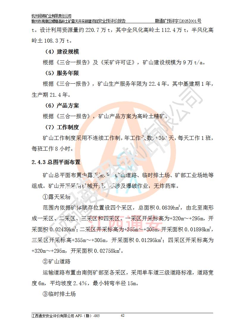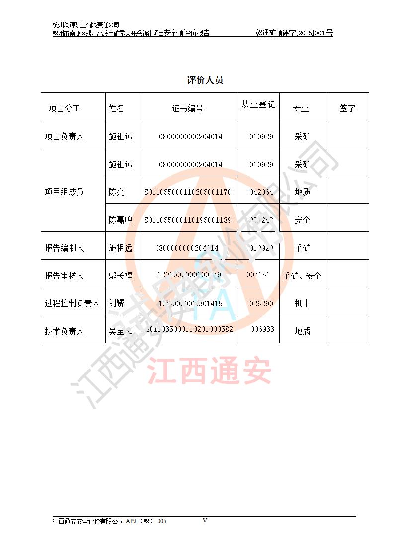 项目名称 | 赣州市南康区螺塘高岭土矿露天开采新建项目安全预评价报告 | ||||