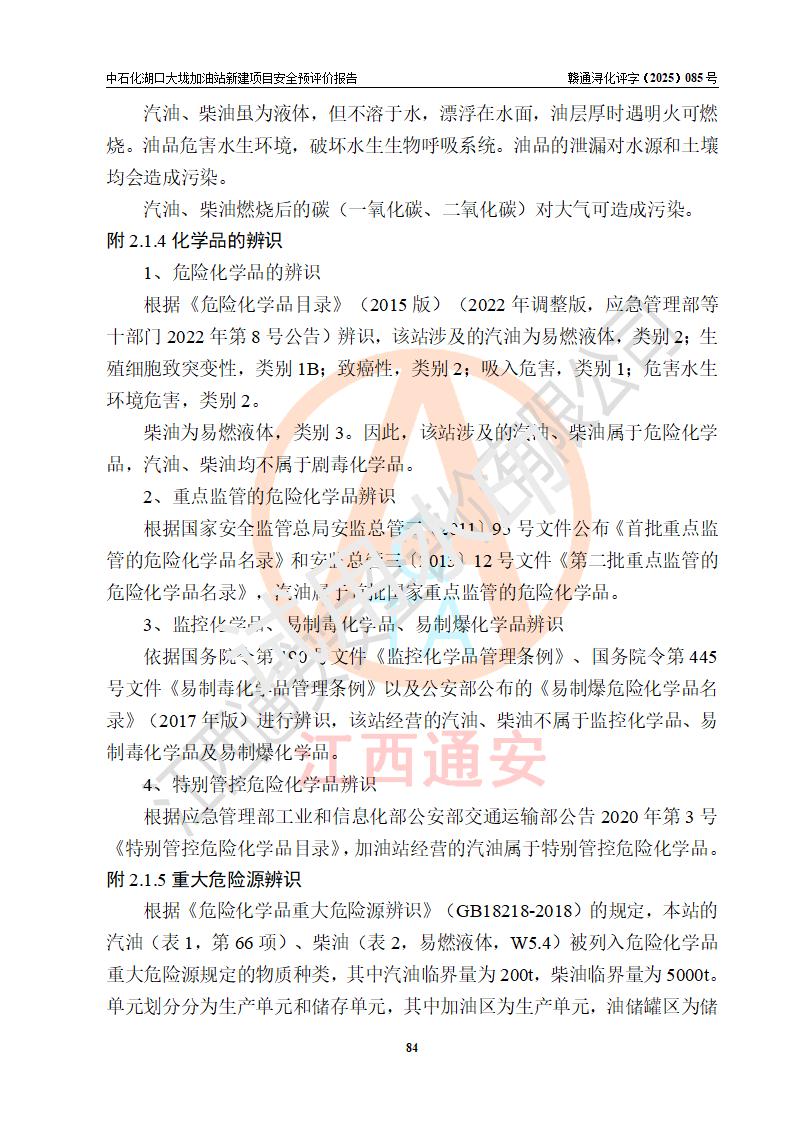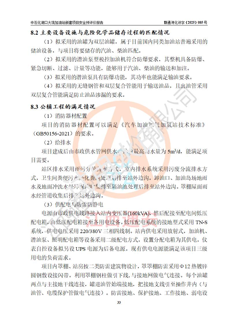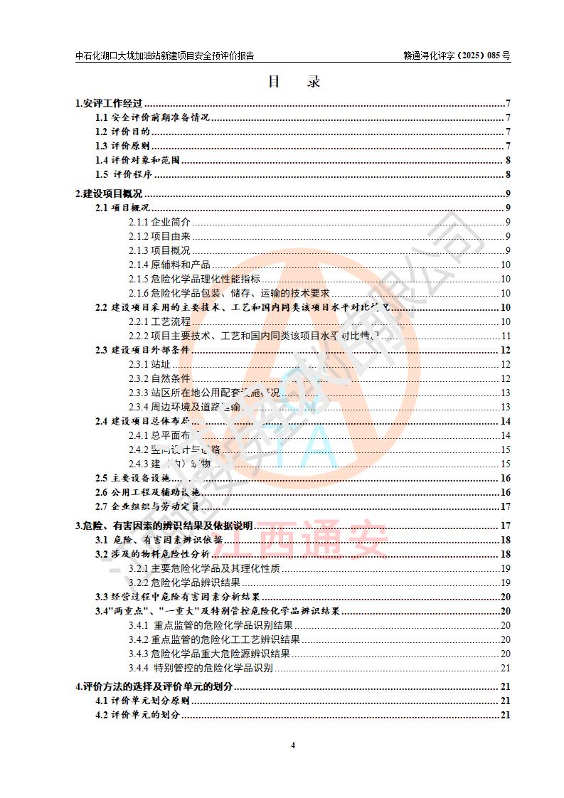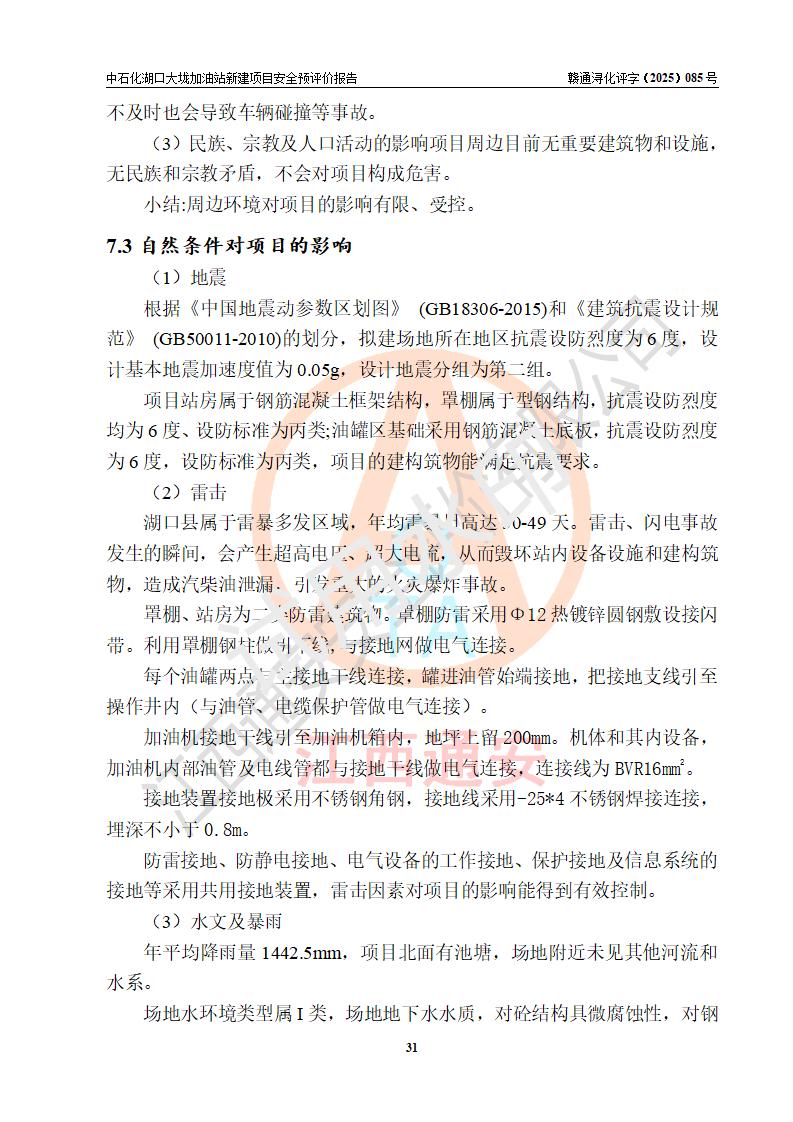 评价结论 | 中国石化销售股份有限公司江西九江石油分公司湖口大垅加油站新建项目的选址、自然条件适宜该项目工程的建设;项目规划设计中的总体布局方案可行,符合有关法规、标准要求;项目选择的工艺过程及设备设施的安全可靠性能达到**法规、标准规定要求;项目存在的危险有害因素可控,在落实项目建设方案及评价报告提出的有关安全对策措施后,其危险有害程度能达到可以接受的程度,项目建设能够实现安全运行的目标。 | |||