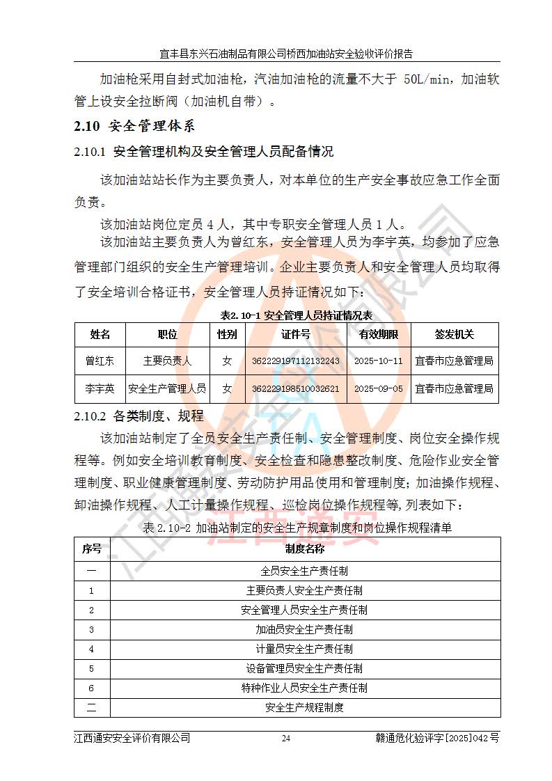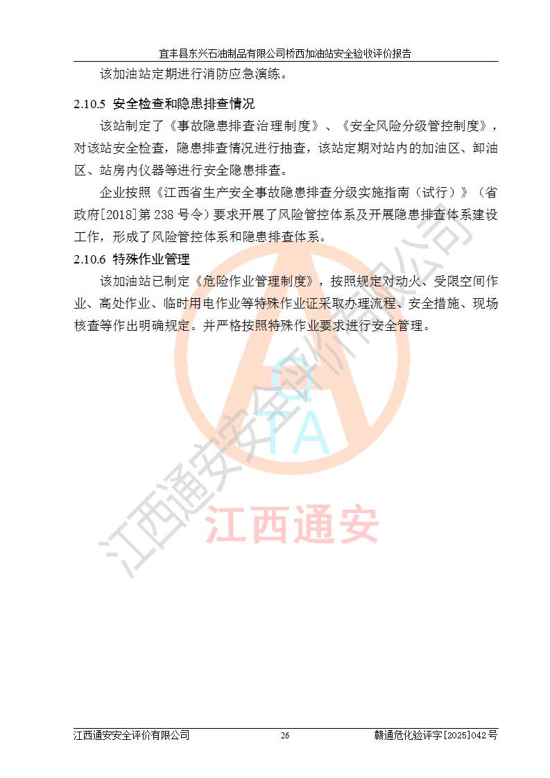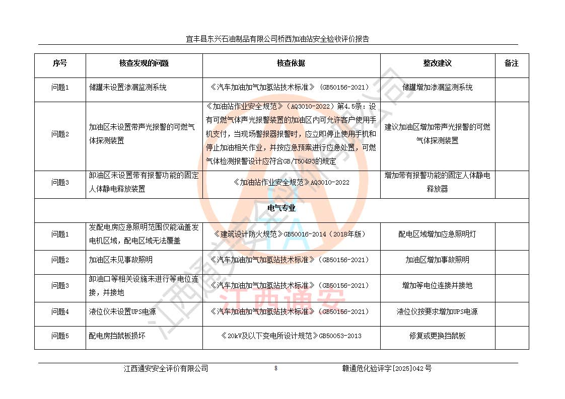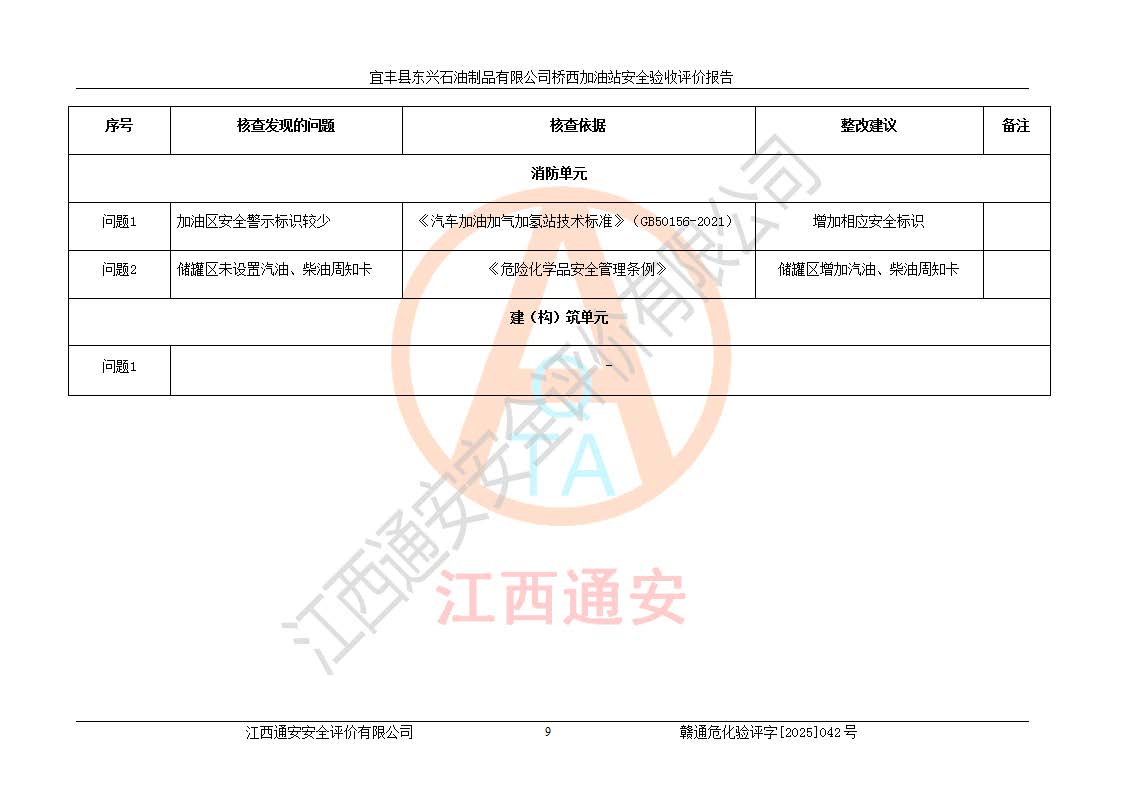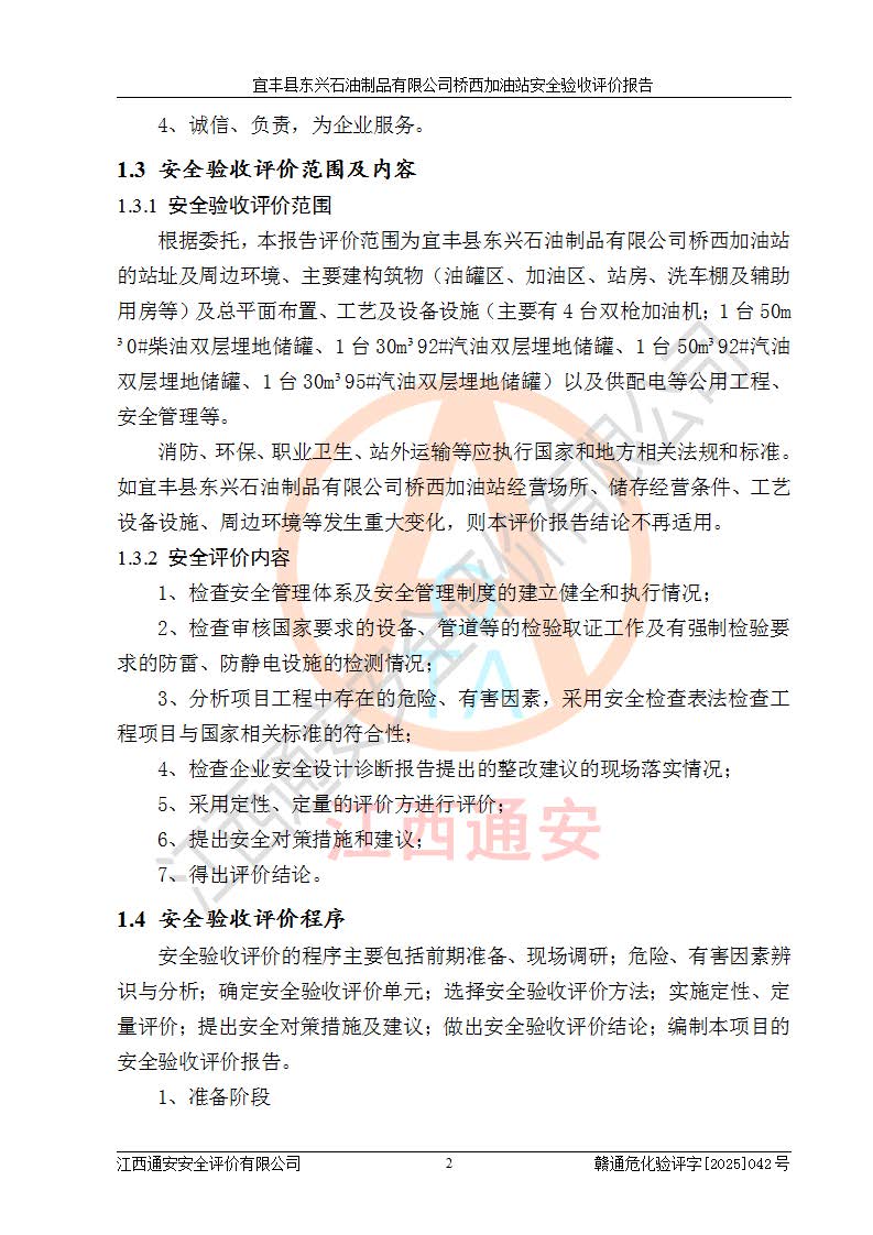 项目名称 | 宜丰县东兴石油制品有限公司桥西加油站安全验收评价 | ||||