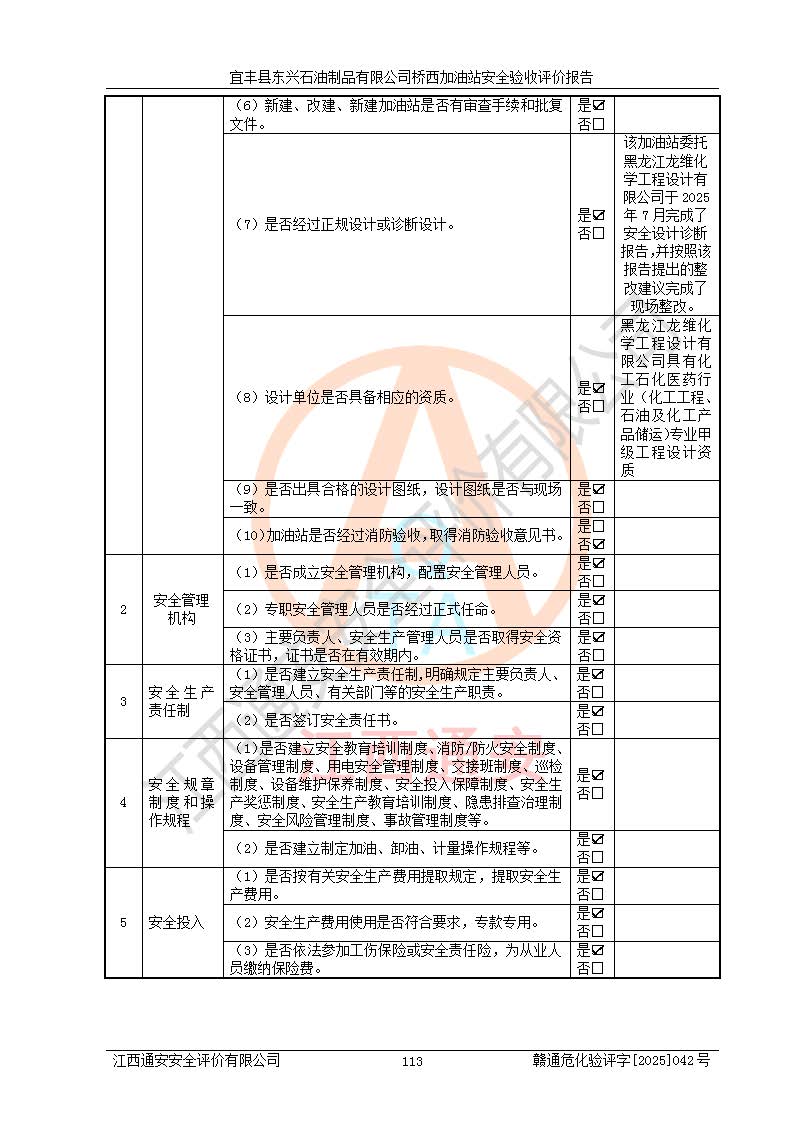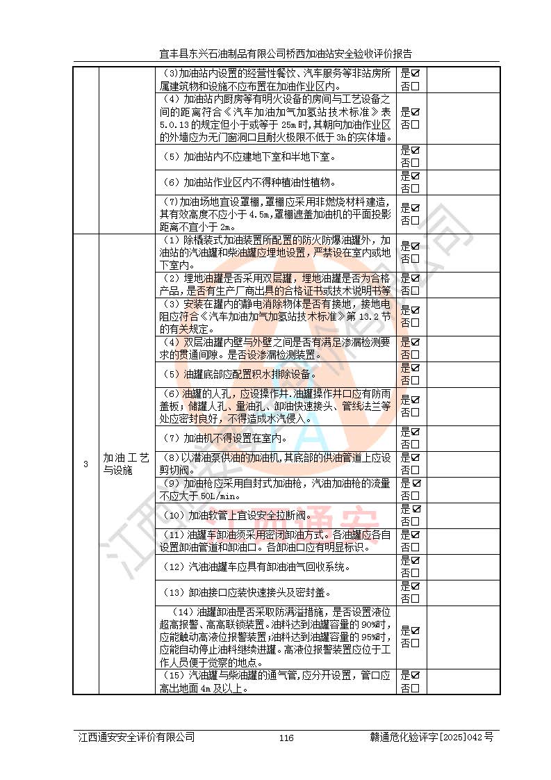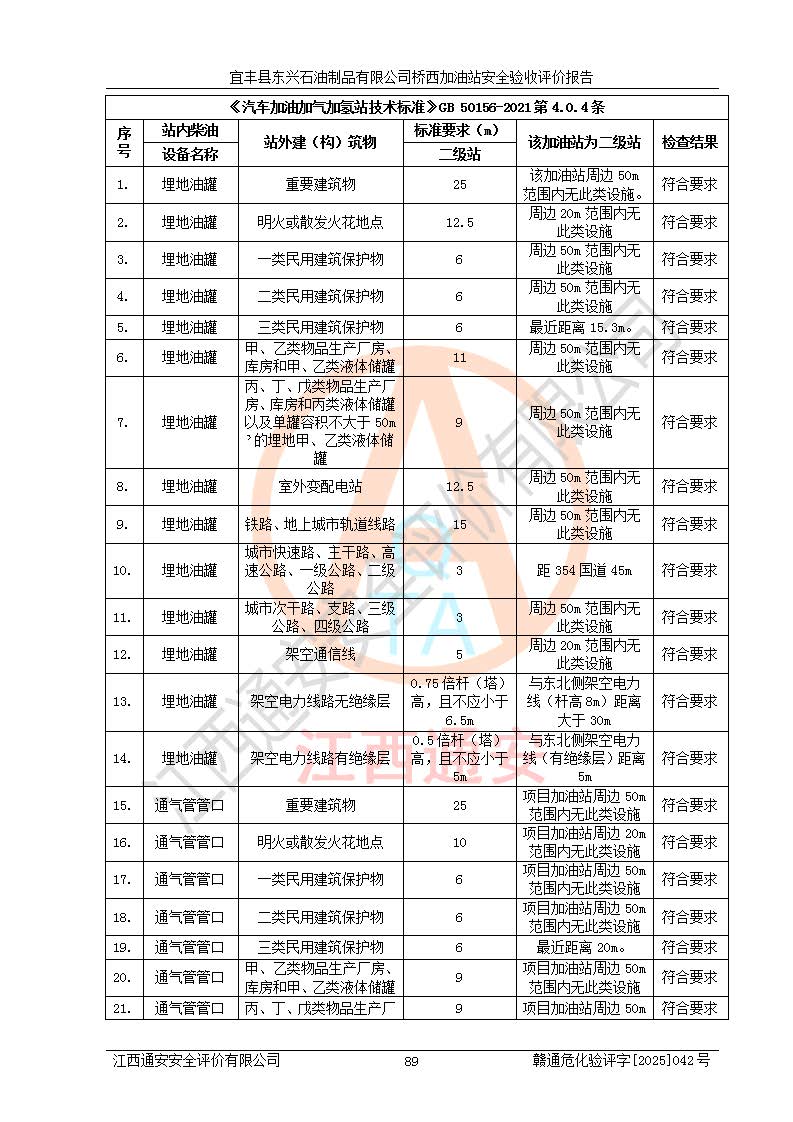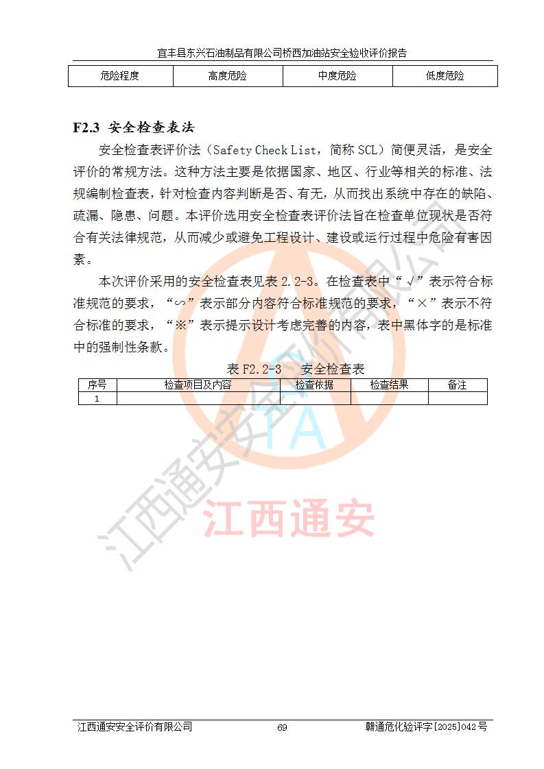 项目名称 | 宜丰县东兴石油制品有限公司桥西加油站安全验收评价 | ||||