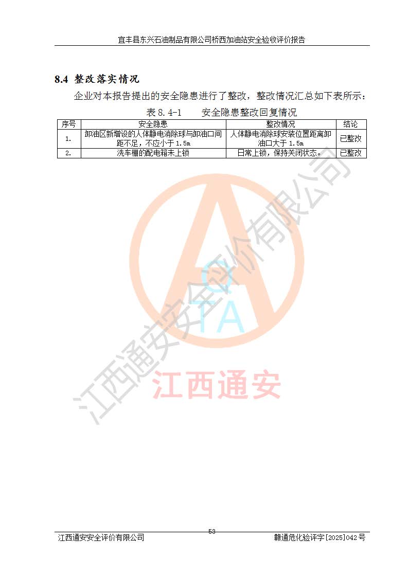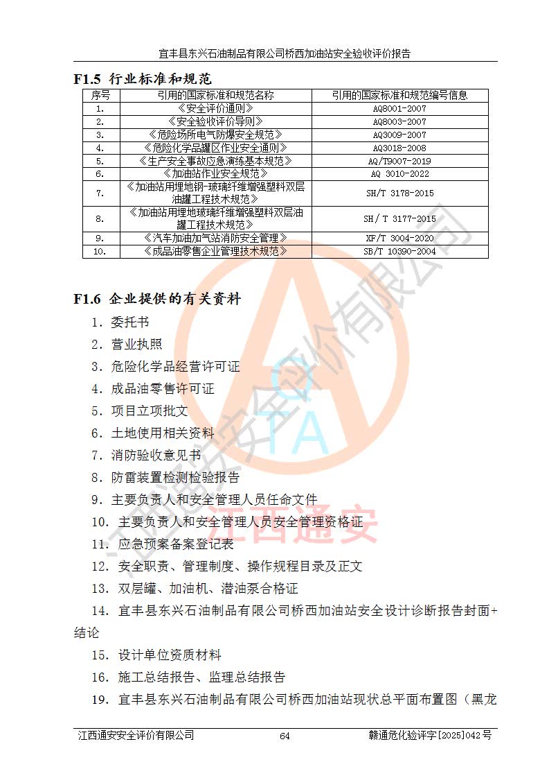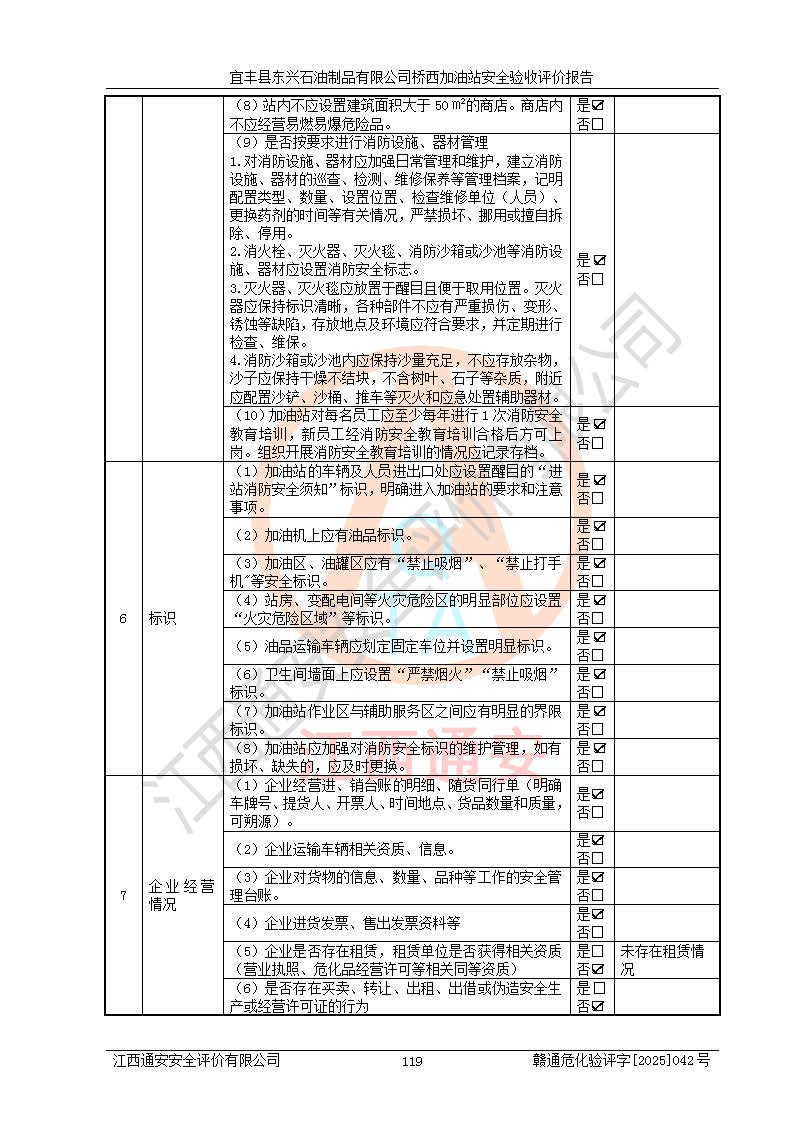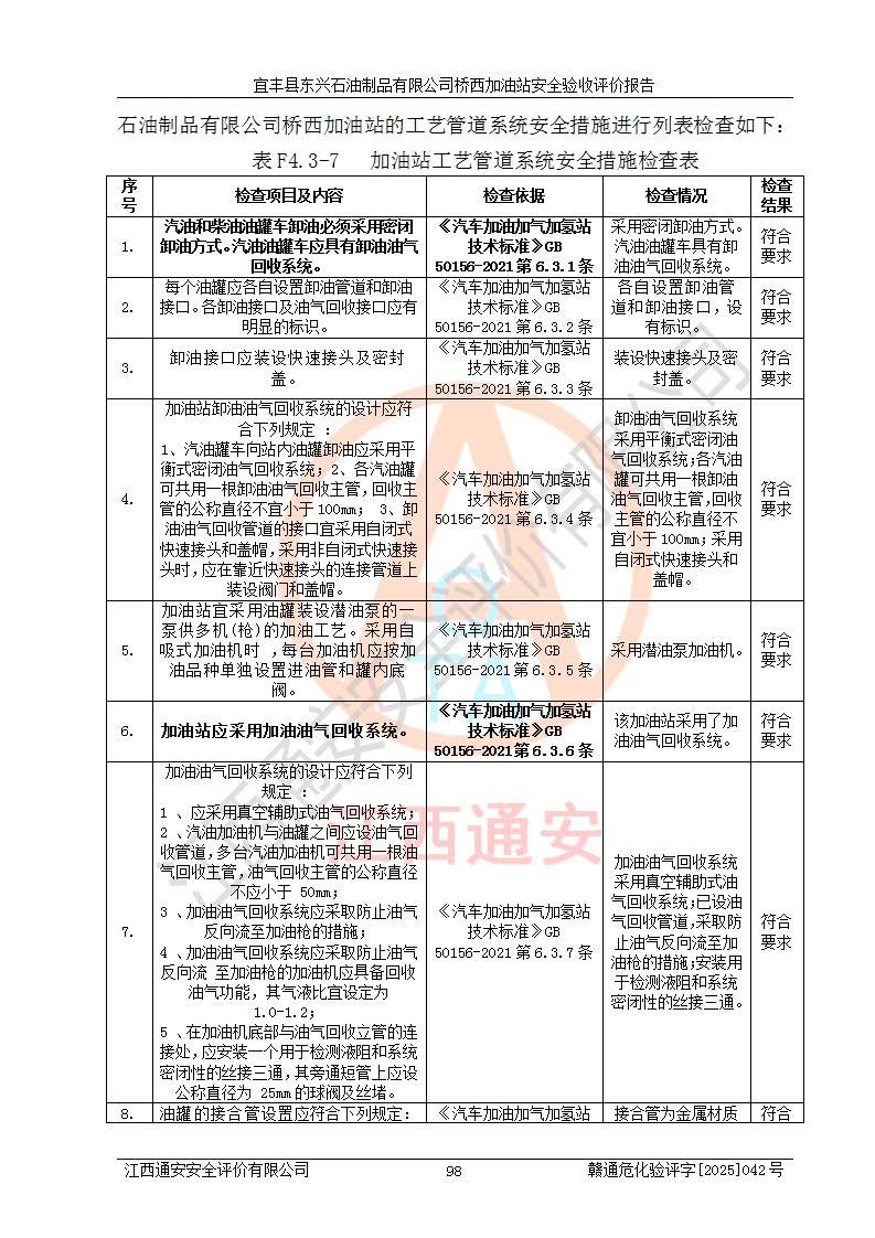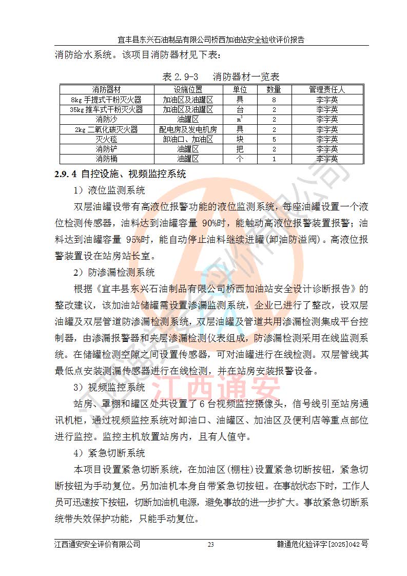 项目名称 | 宜丰县东兴石油制品有限公司桥西加油站安全验收评价 | ||||