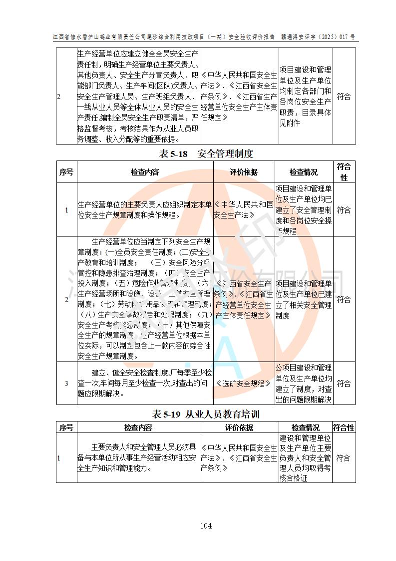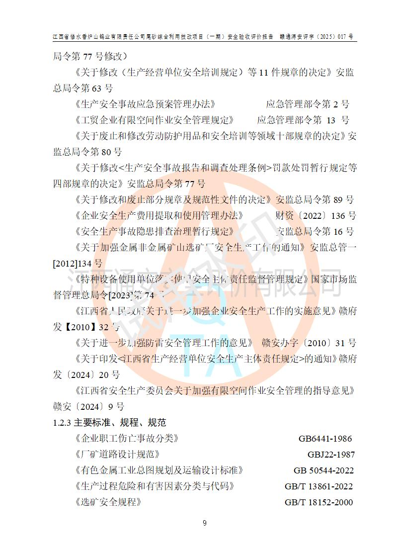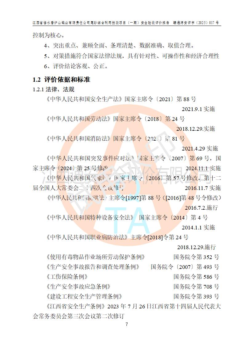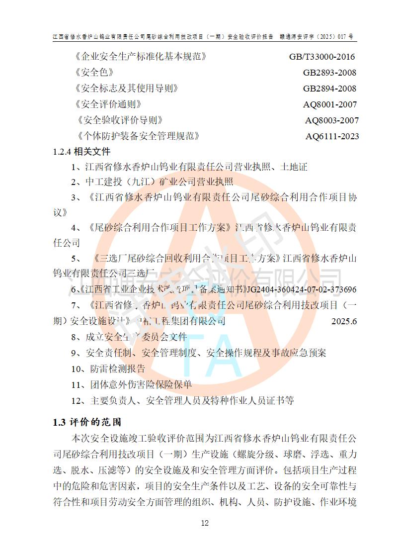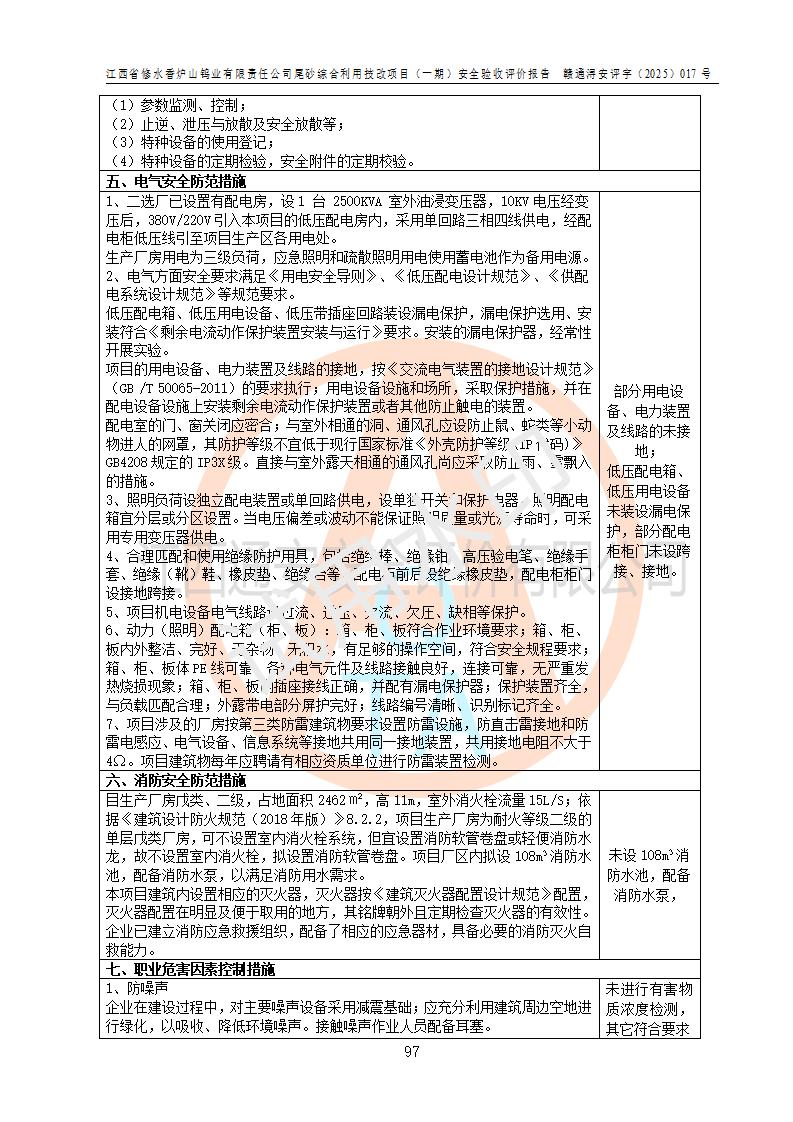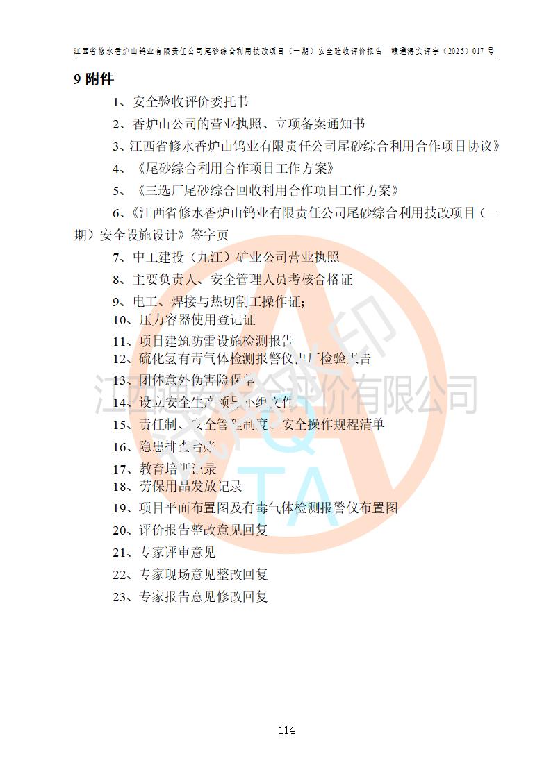 评价报告名称 | 江西省修水香炉山钨业有限责任公司尾砂综合利用技改项目(一期)安全验收评价报告 | |||||