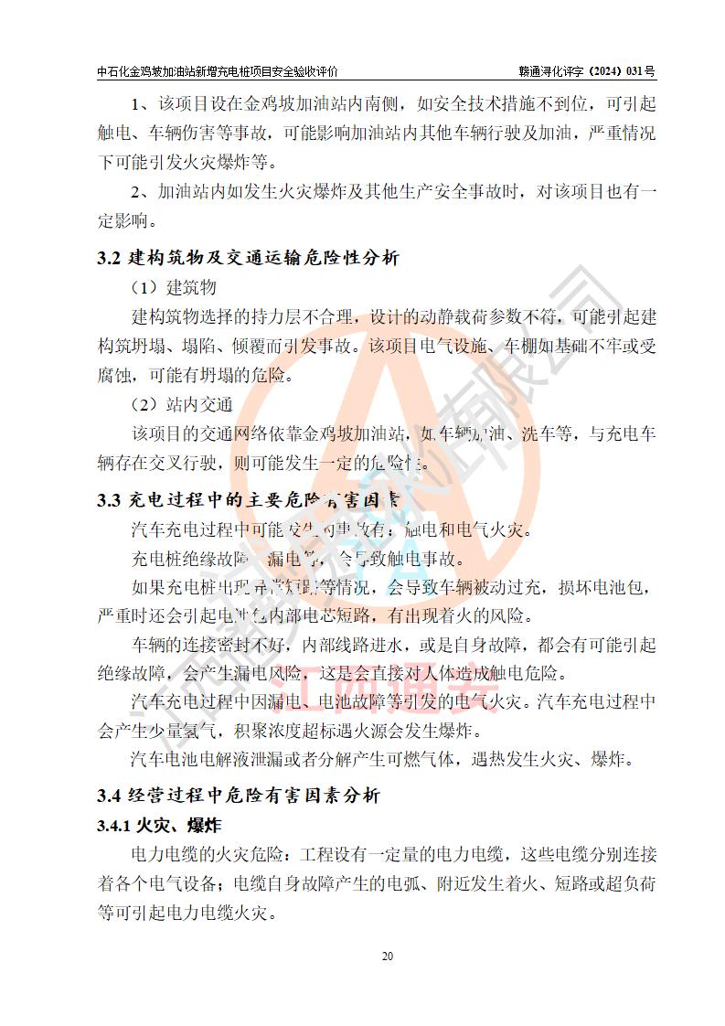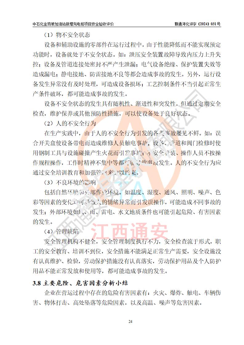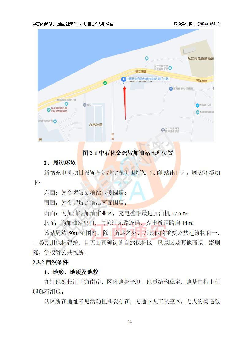 评价报告名称 | 中国石化销售股份有限公司江西九江浔阳石油分公司金鸡坡加油站新增充电桩项目安全验收评价报告 | |||