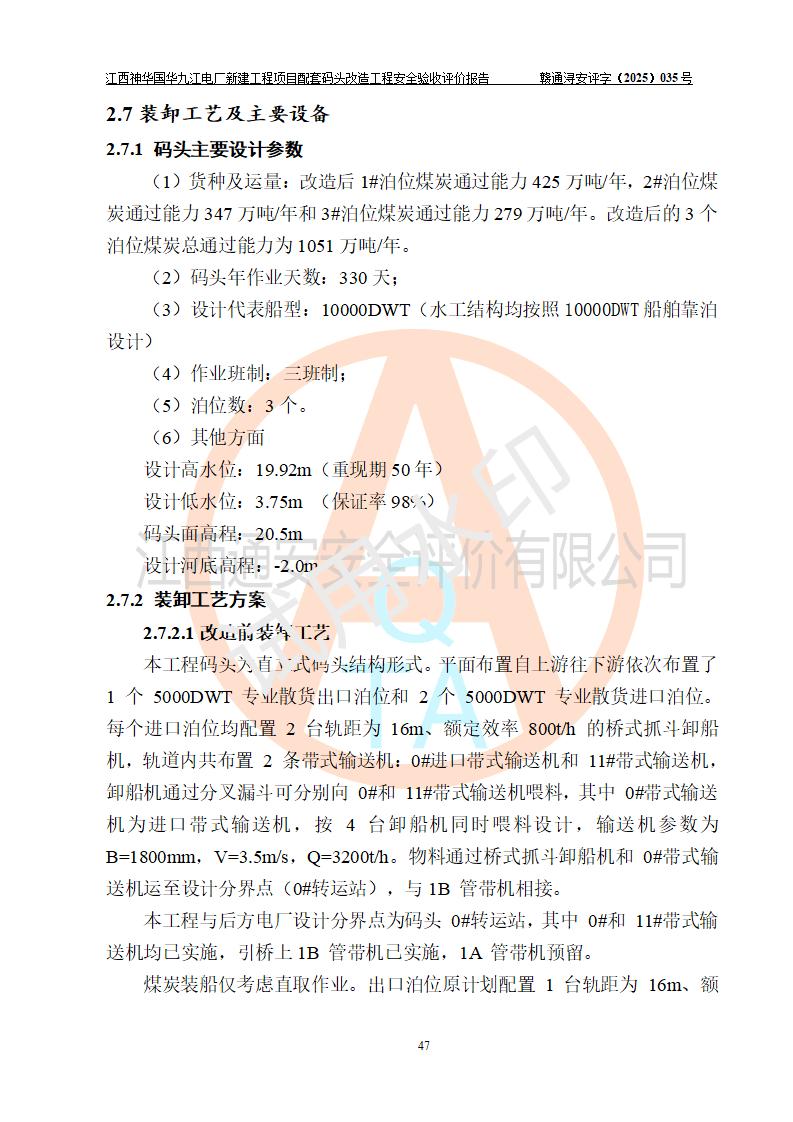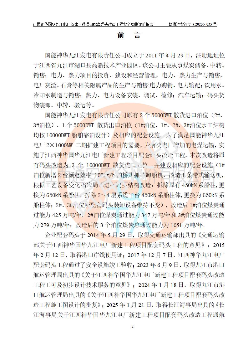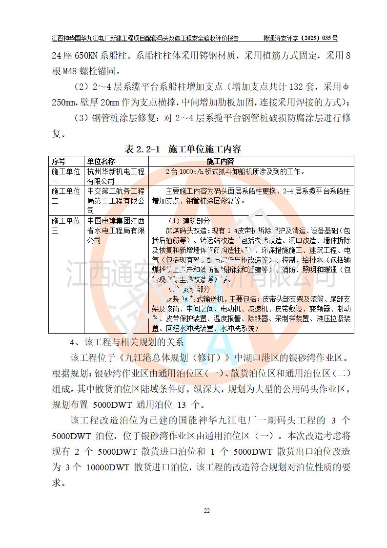 项目名称:江西神华国华九江电厂新建工程项目配套码头改造工程 项目地点:位于长江下游东北水道右岸,九江长江大桥下游约37**,岸线批复总长度为409米 建设单位:国能神华九江发电有限责任公司 勘察设计单位:中交第二航务工程勘察设计院有限公司 设计单位一:中交第二航务工程勘察设计院有限公司(水工建筑物设计分界以大堤为界,大堤以外由二航院设计) ;工艺专业设计分界点以码头平台上的 0#转运站为分界点,0#转运站内部工艺设备由二航院设计 设计单位二:引桥上部管带机(引桥上管带机300m后)由中南电力设计院设计 施工单位一:杭州华新机电工程有限公司 施工单位二:中交二航局第三工程有限公司 施工单位三:中国电建集团江西省水电工程局有限公司 监理单位:中交希迪工程咨询管理(武汉)有限公司 项目性质:改扩建 投资规模:8320.51万元 建设规模:江西神华国华九江电厂新建工程项目配套码头原有 2 个5000DWT 散货**泊位、1 个 5000DWT 散货出口泊位及相应的配套设施。本次改造将原有码头改造为 3 个 10000DWT 散货**泊位。改造后的3个泊位煤炭总通过能力为1051万吨/年。 |