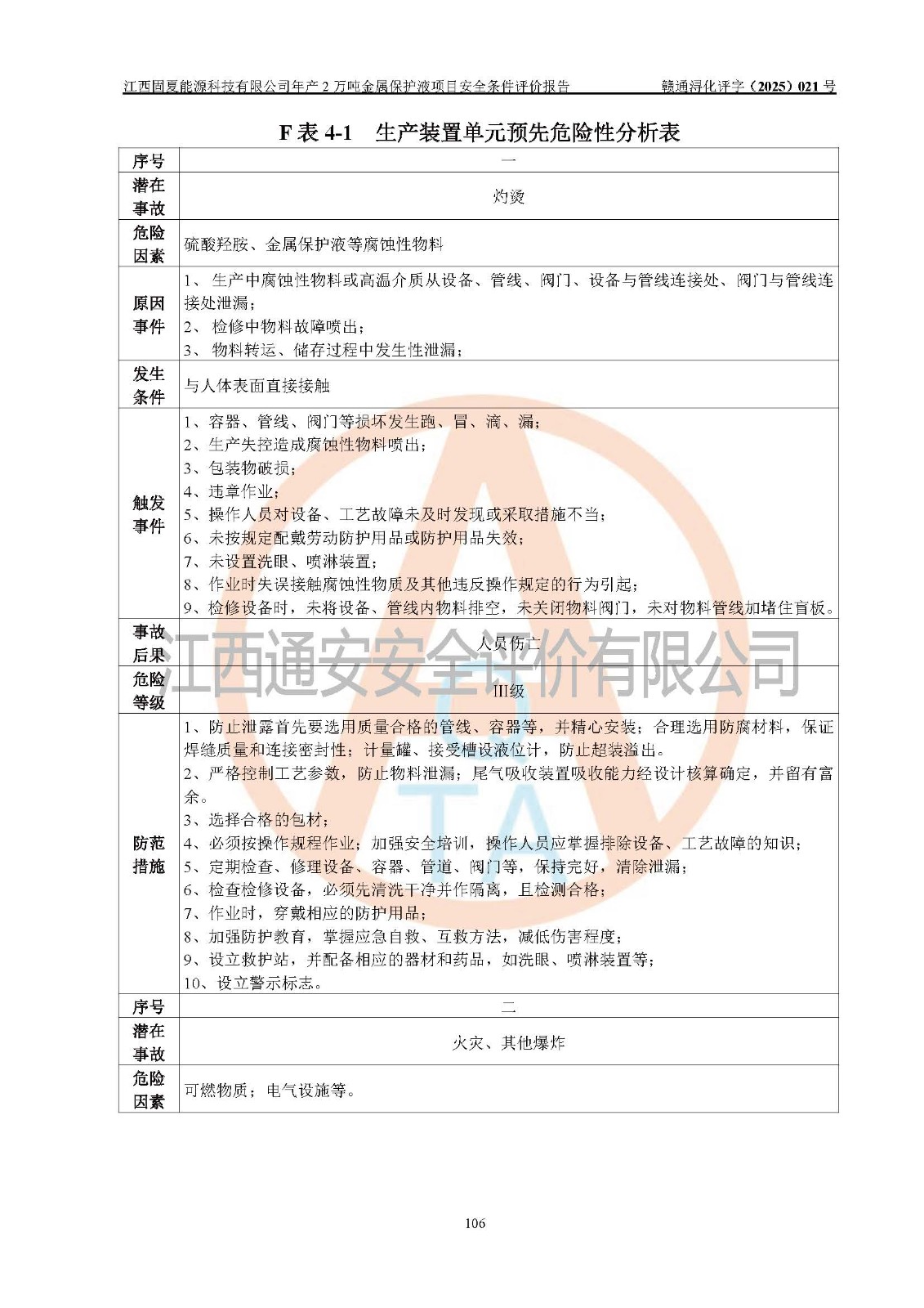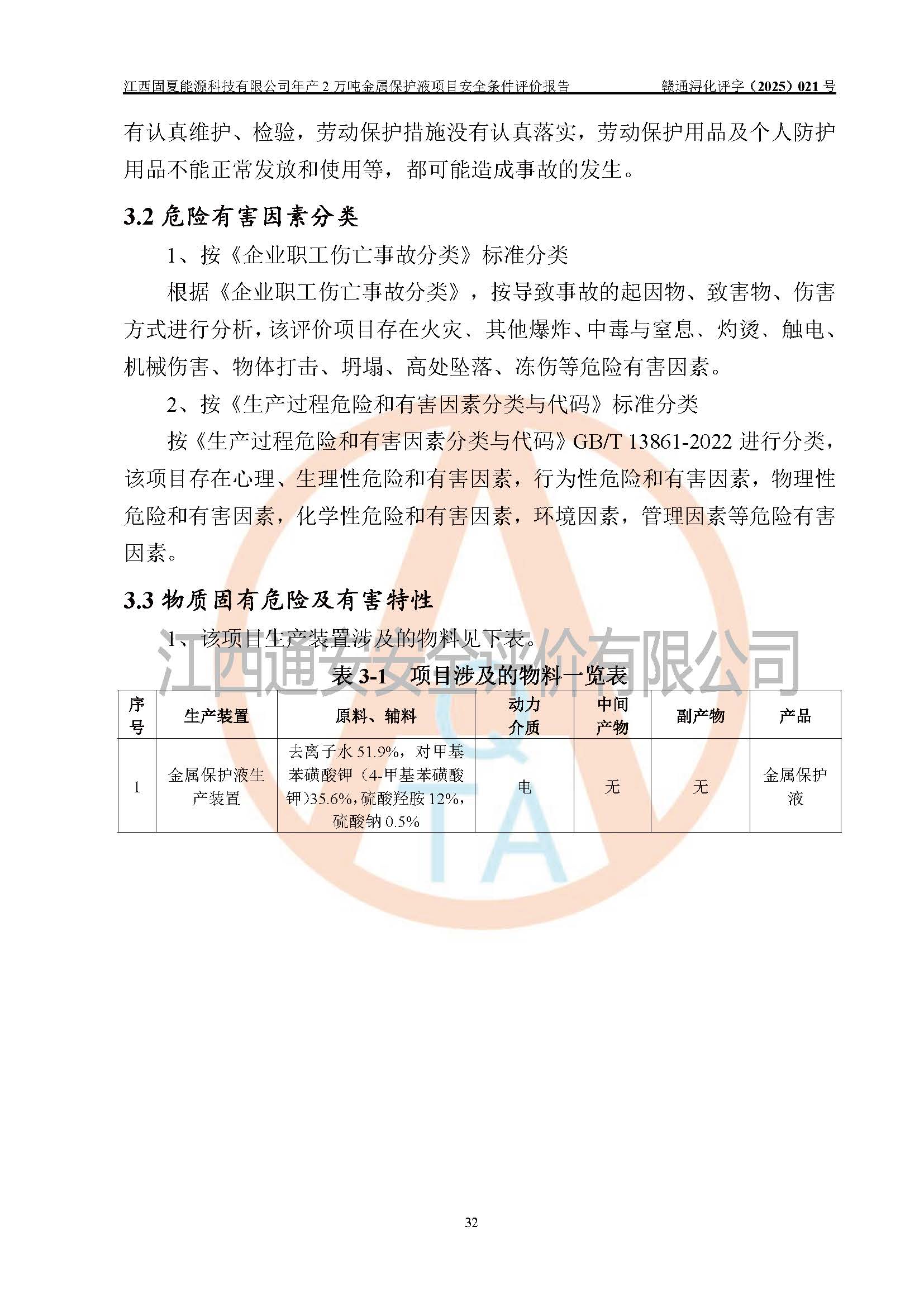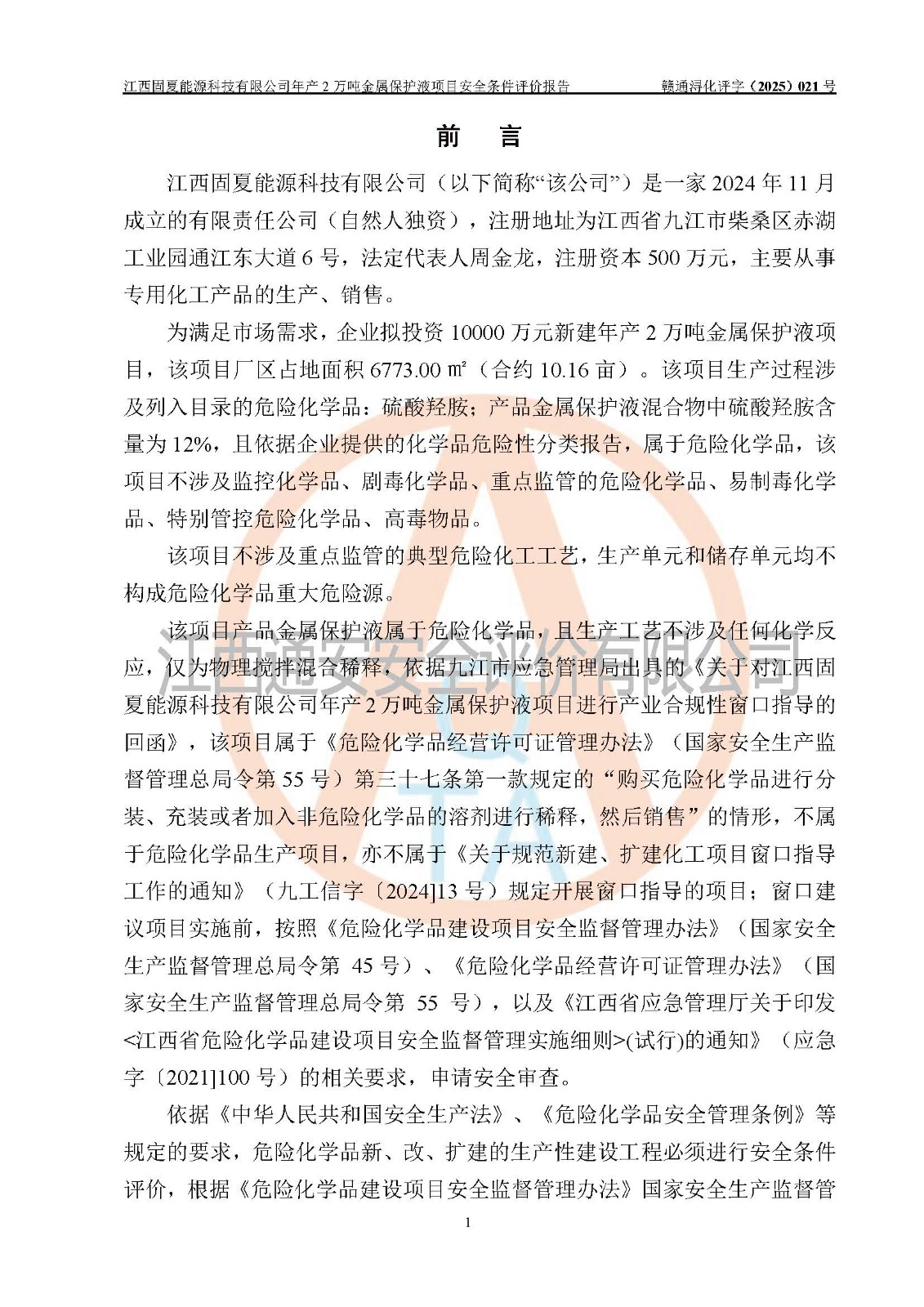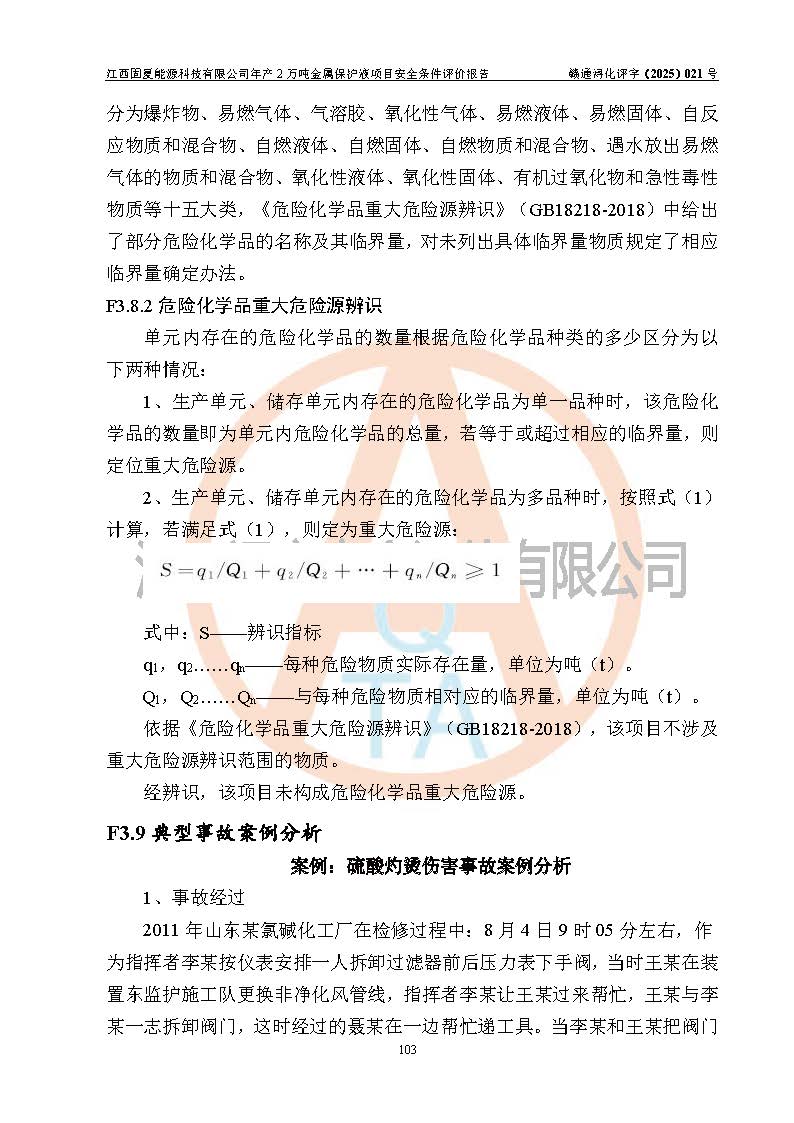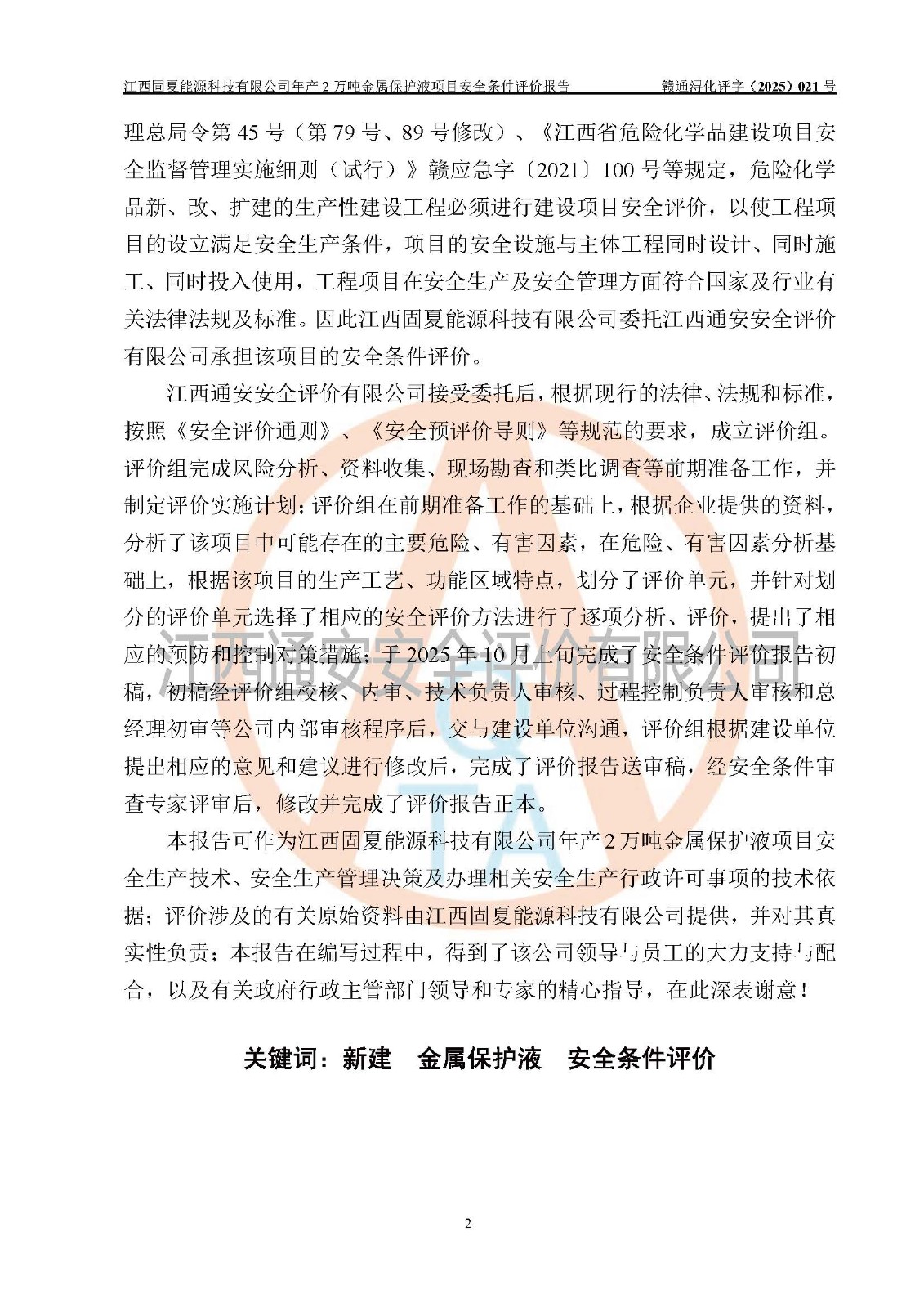 评价报告名称 | 江西固夏能源科技有限公司年产2万吨金属保护液项目安全条件评价报告 | |||