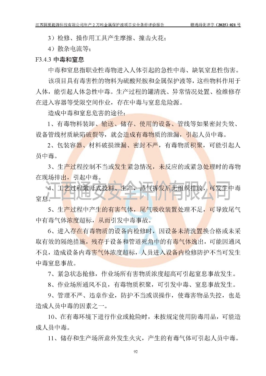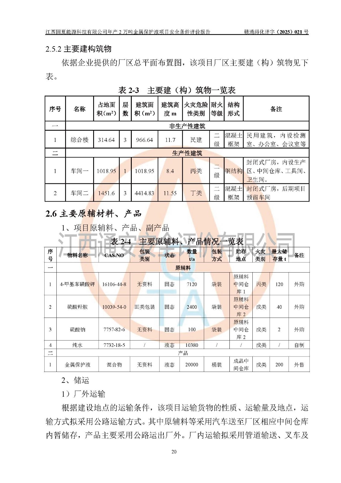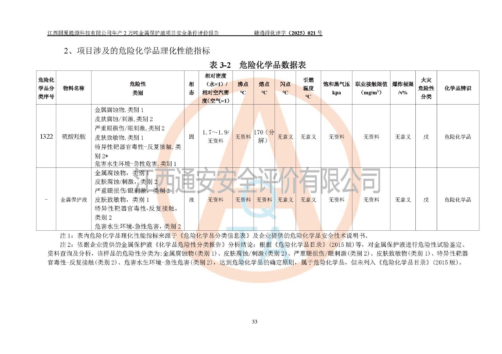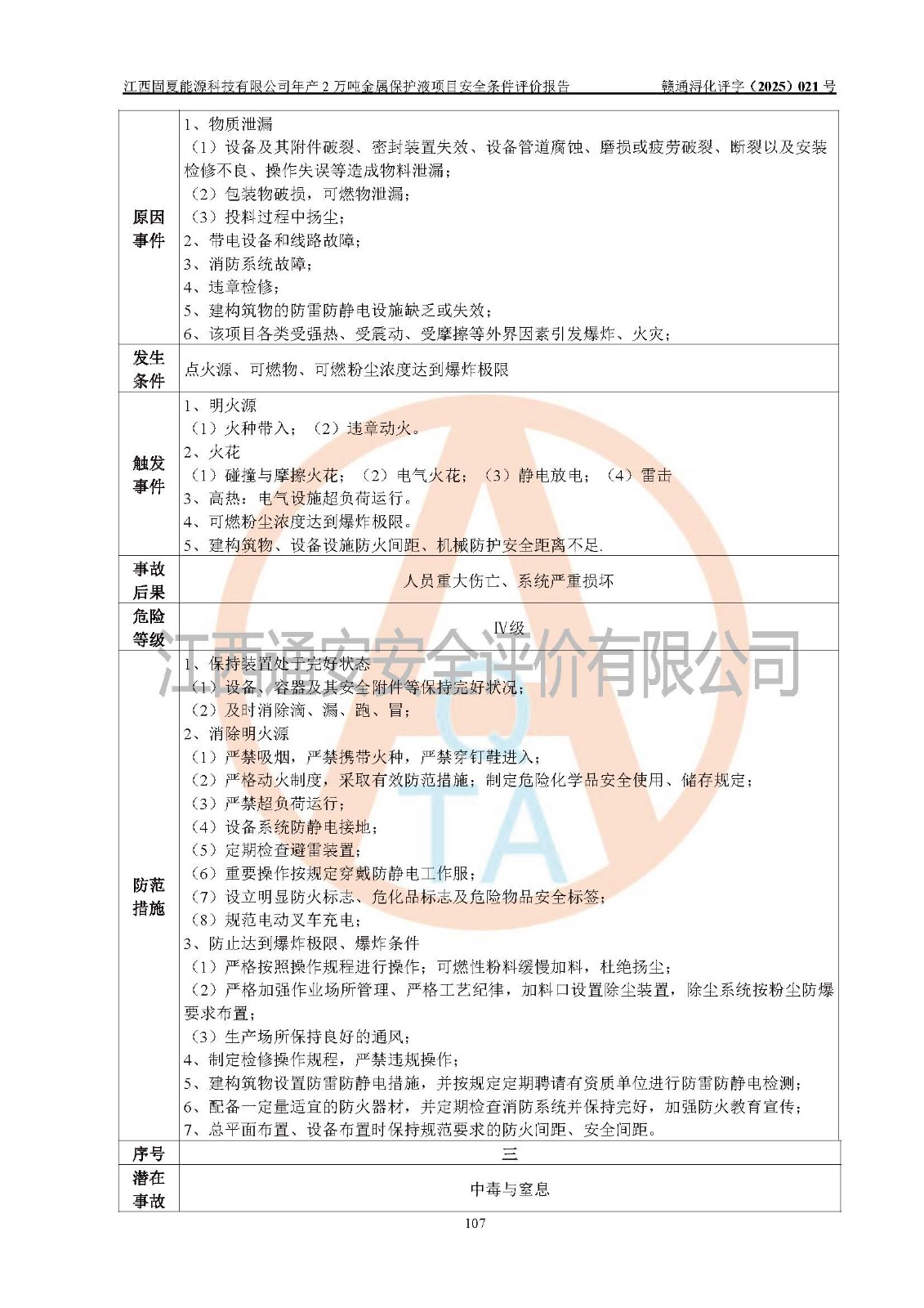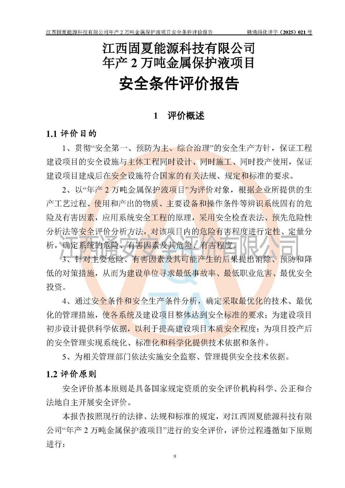 评价报告名称 | 江西固夏能源科技有限公司年产2万吨金属保护液项目安全条件评价报告 | |||