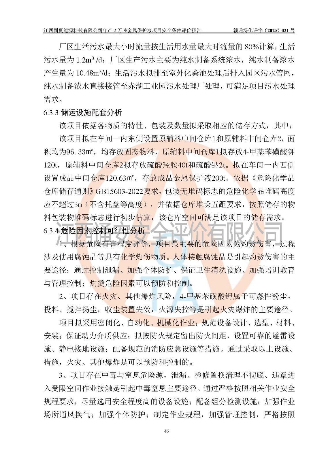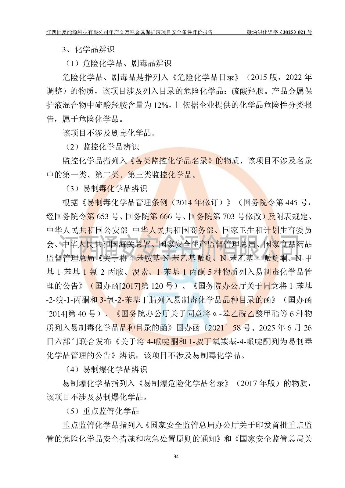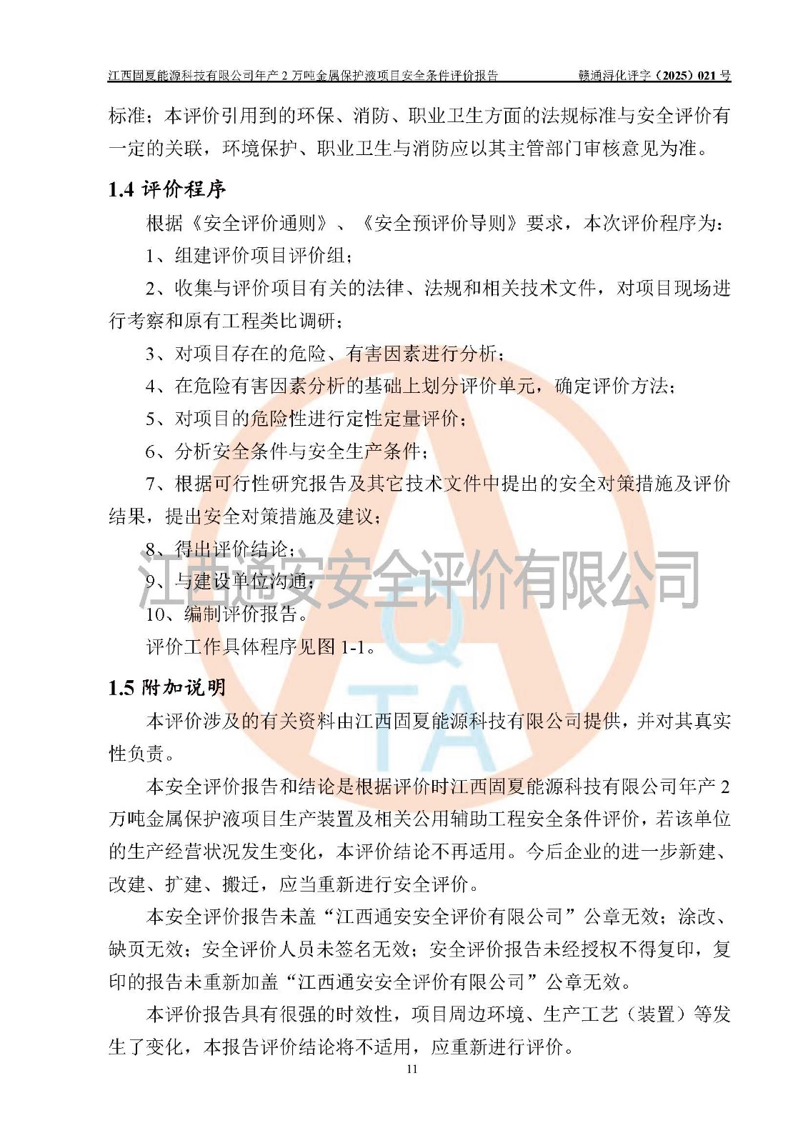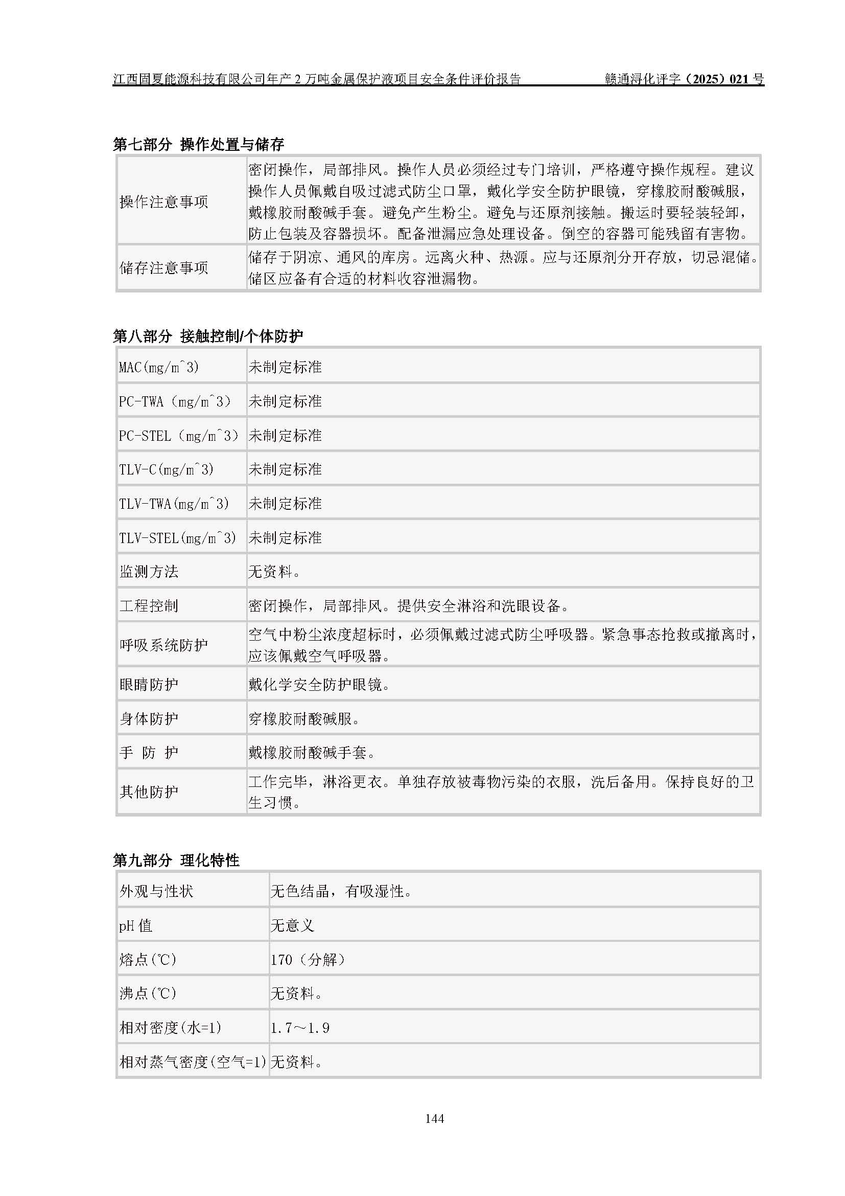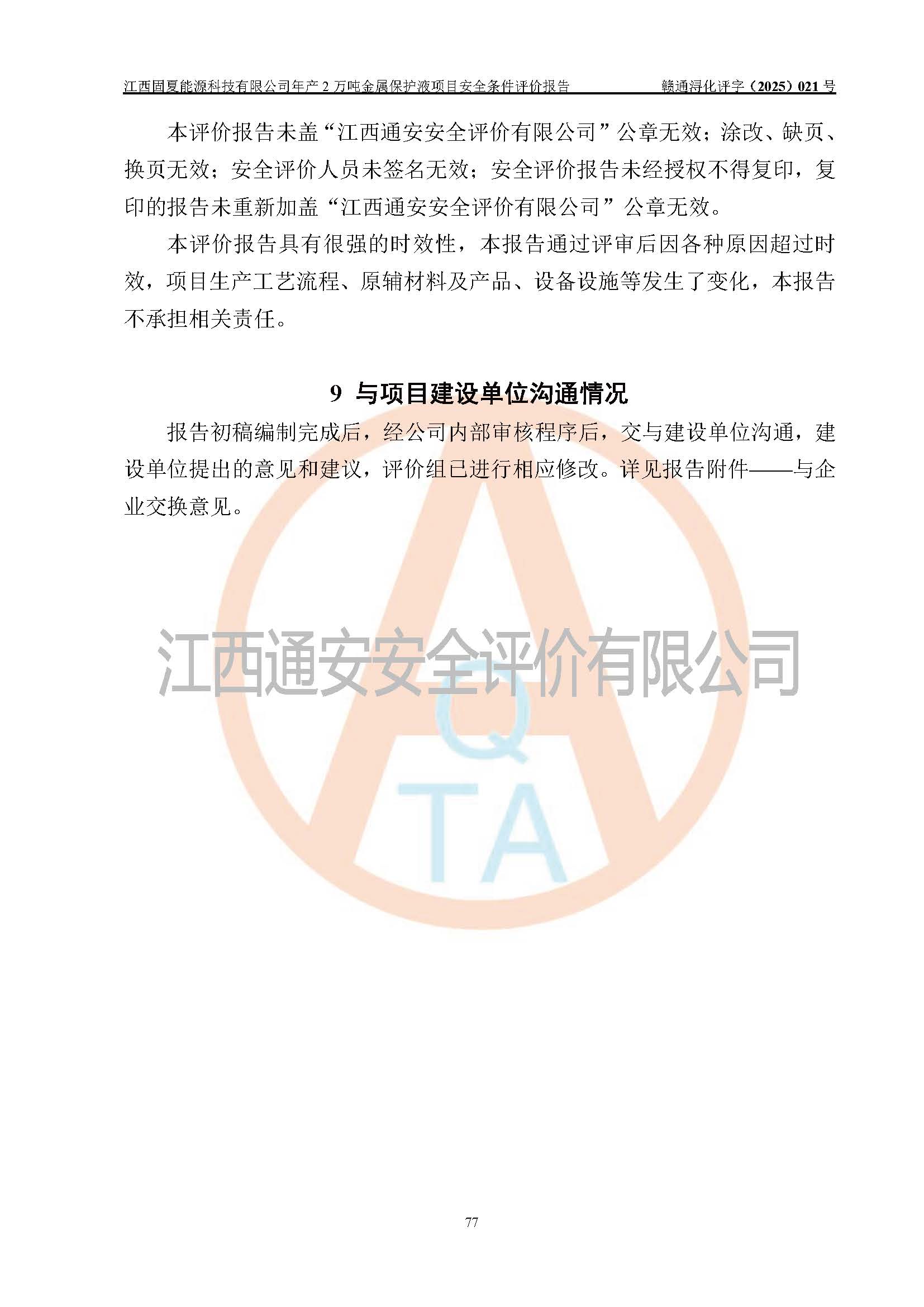 评价报告名称 | 江西固夏能源科技有限公司年产2万吨金属保护液项目安全条件评价报告 | |||