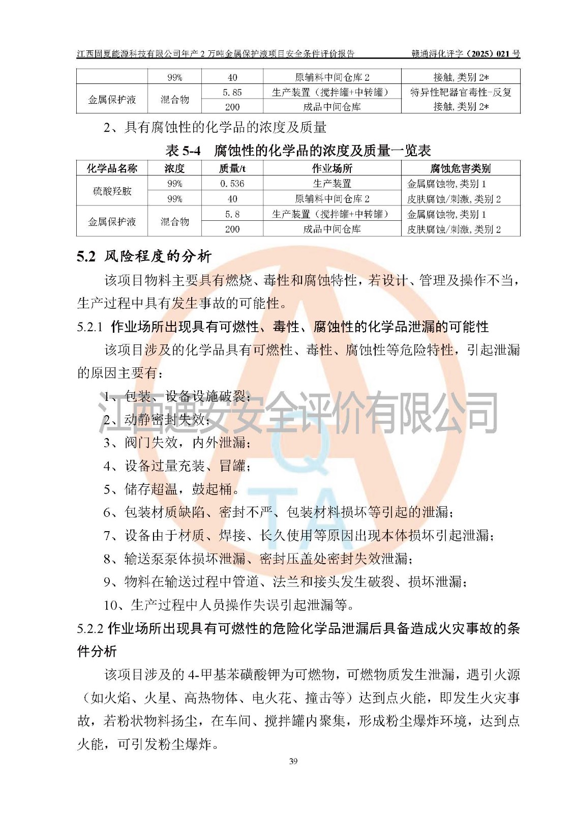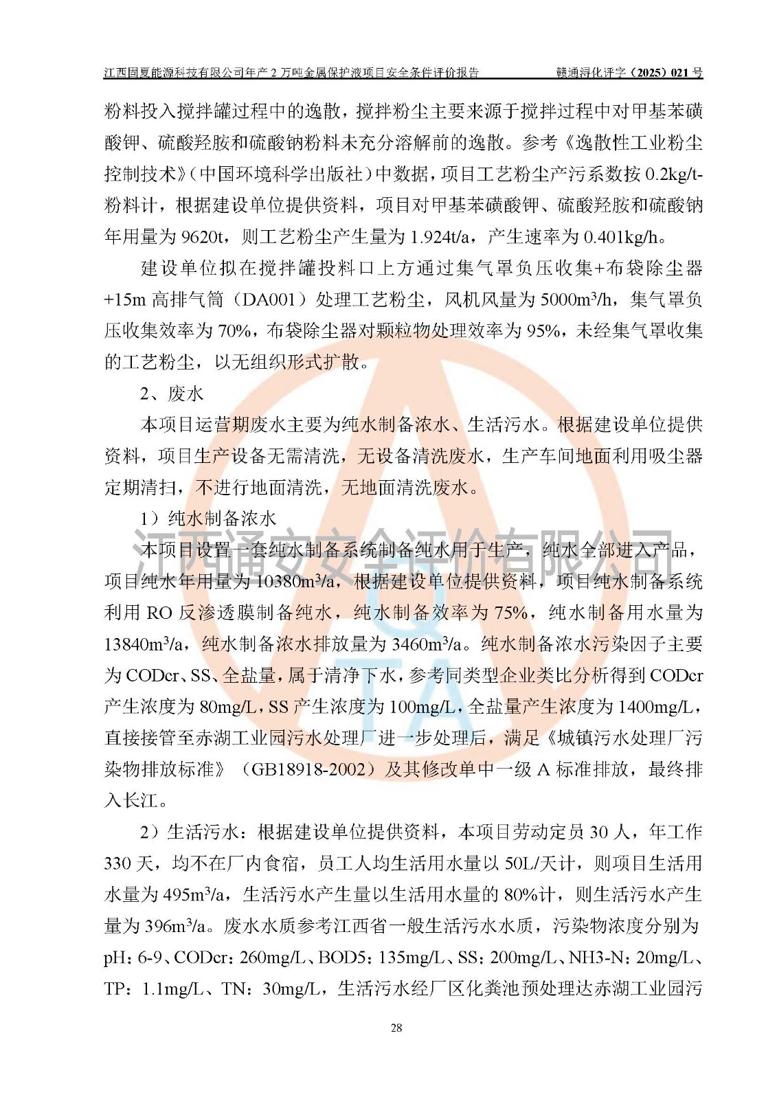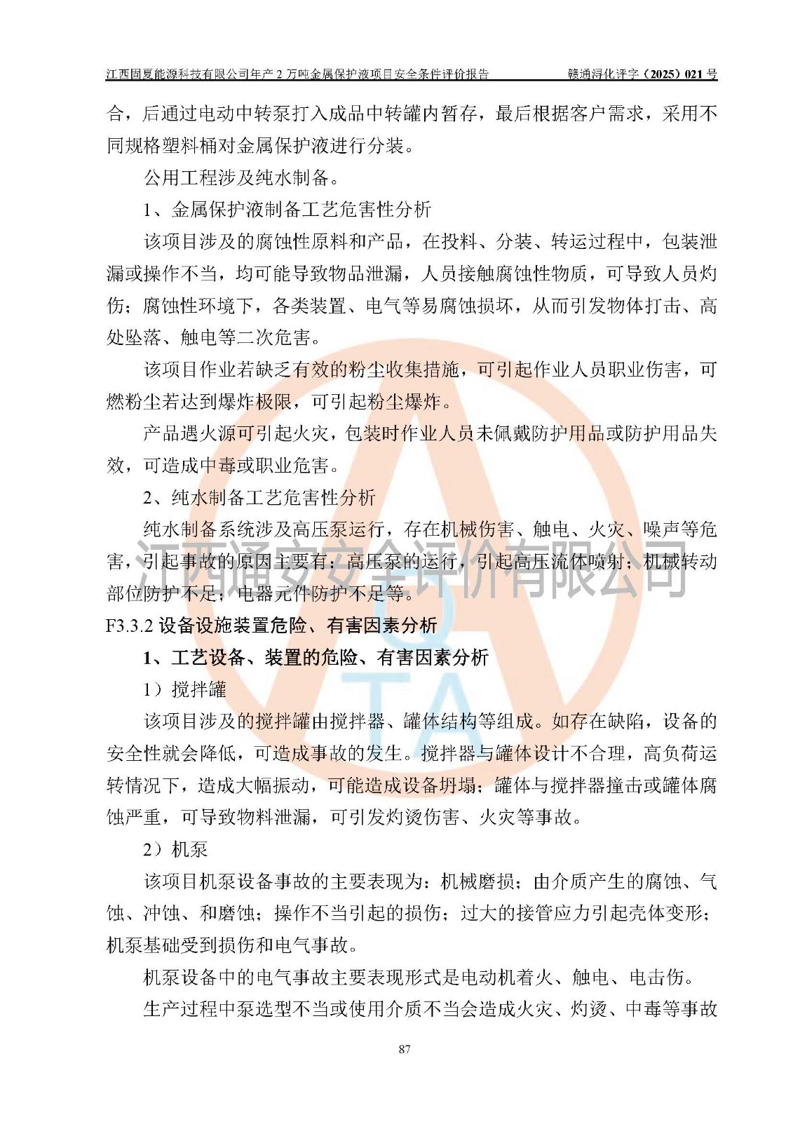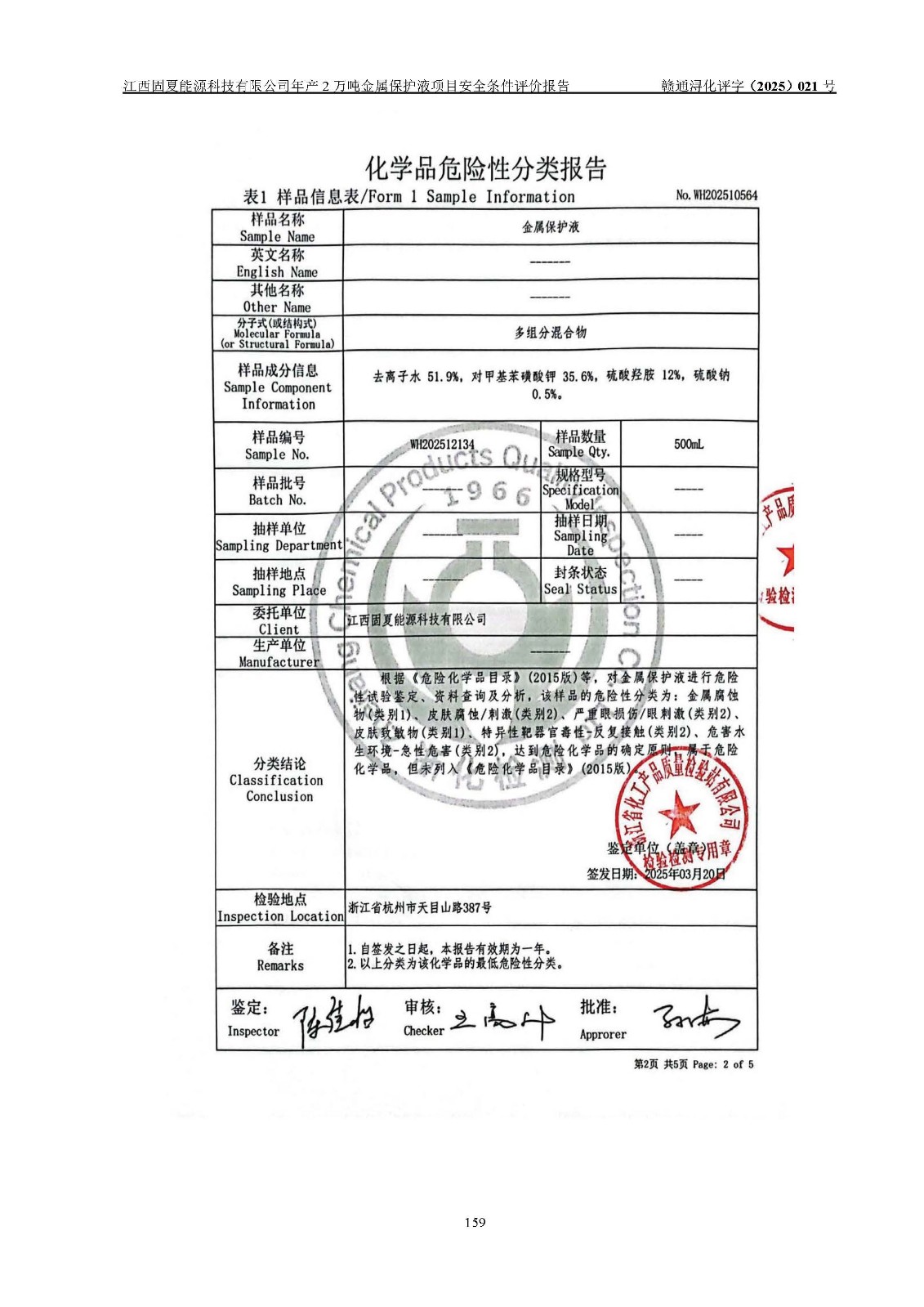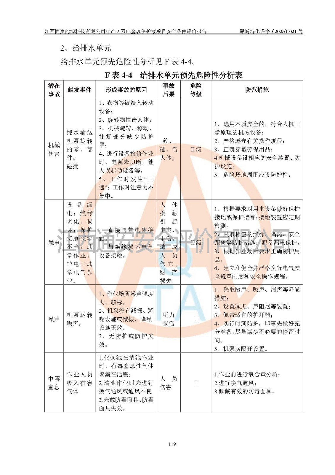 评价报告名称 | 江西固夏能源科技有限公司年产2万吨金属保护液项目安全条件评价报告 | |||