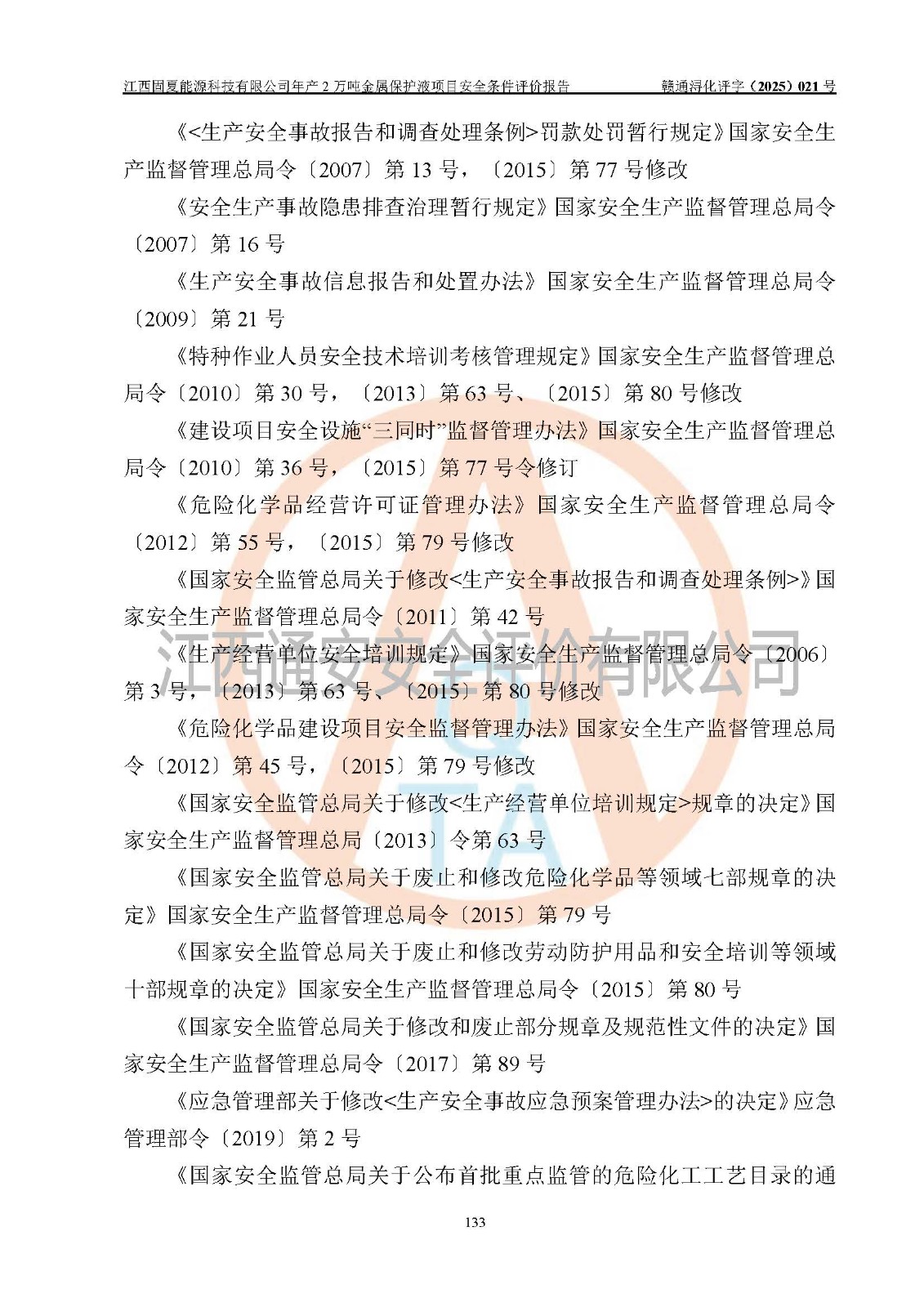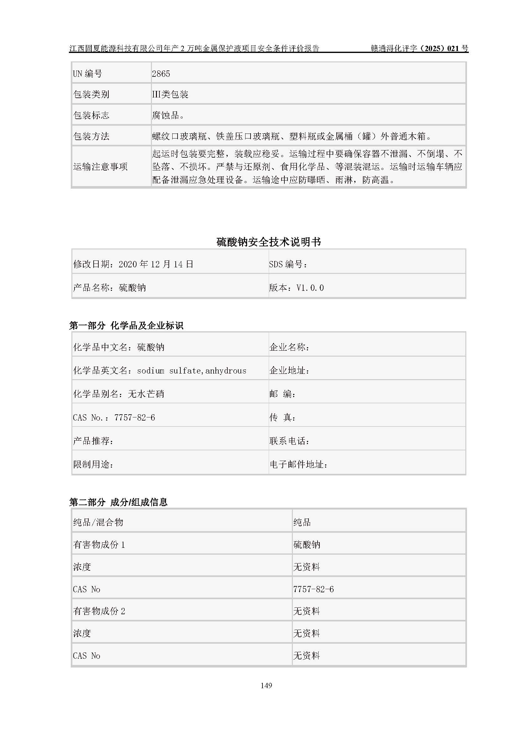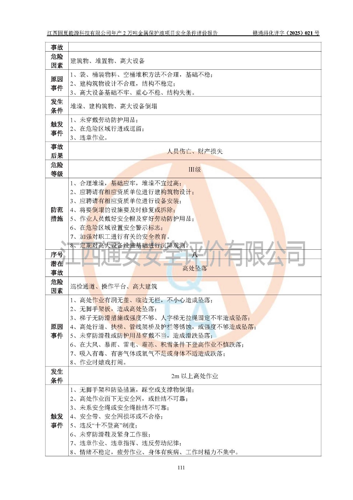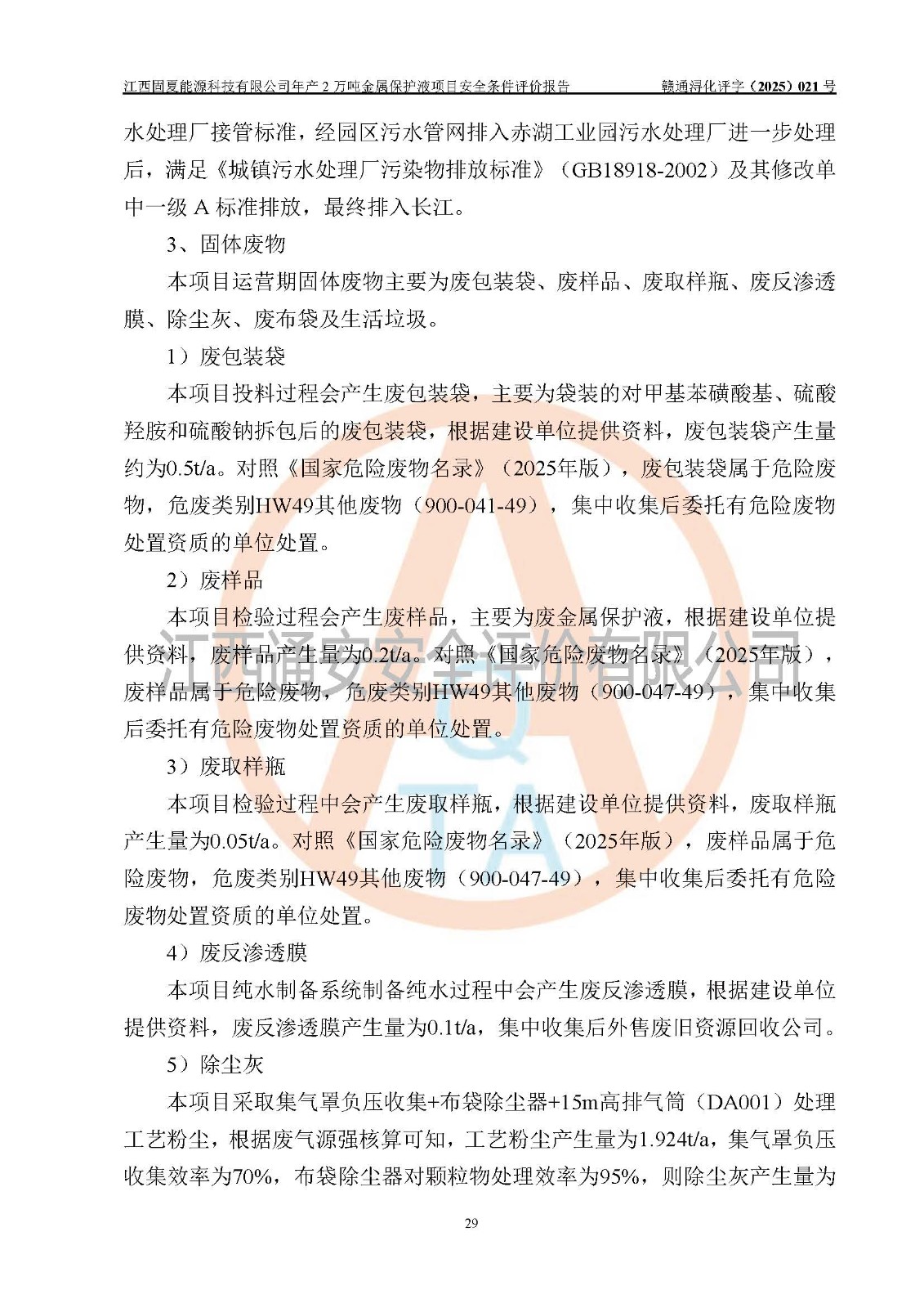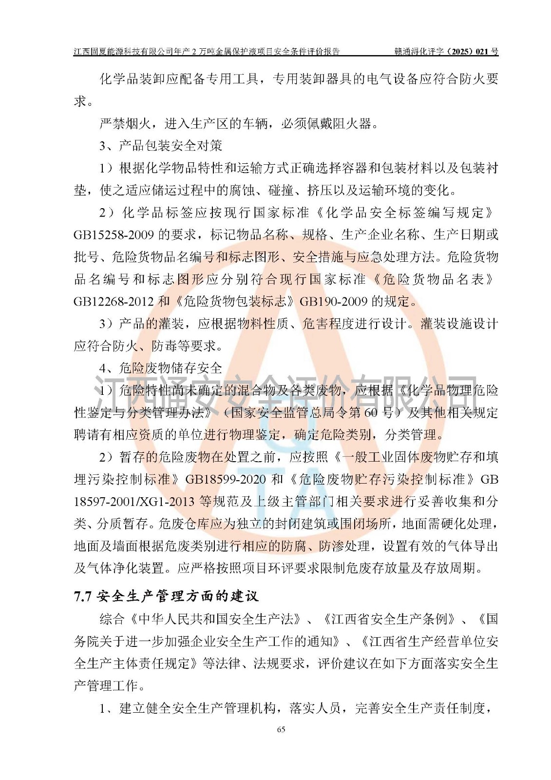 评价报告名称 | 江西固夏能源科技有限公司年产2万吨金属保护液项目安全条件评价报告 | |||