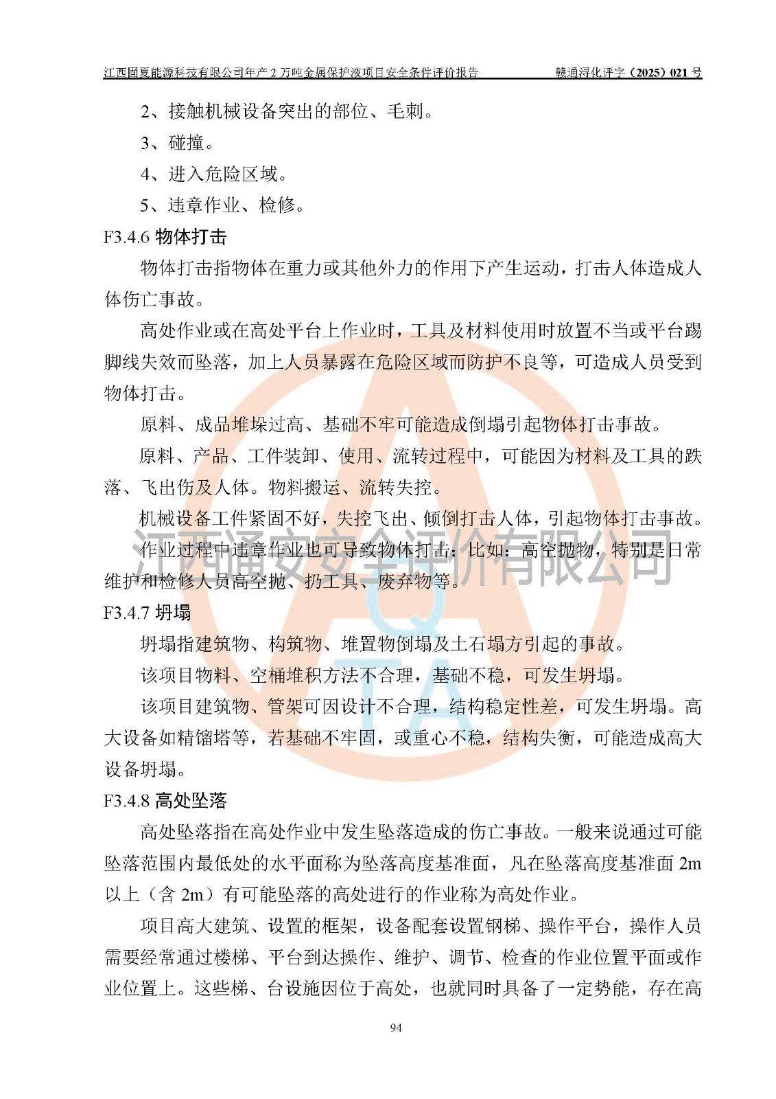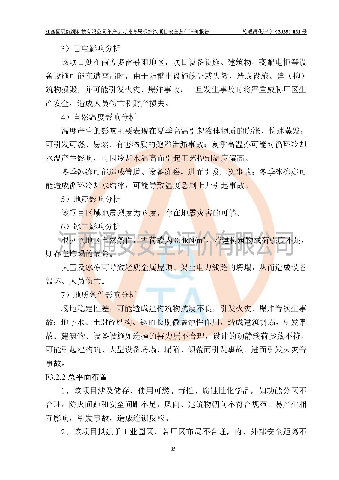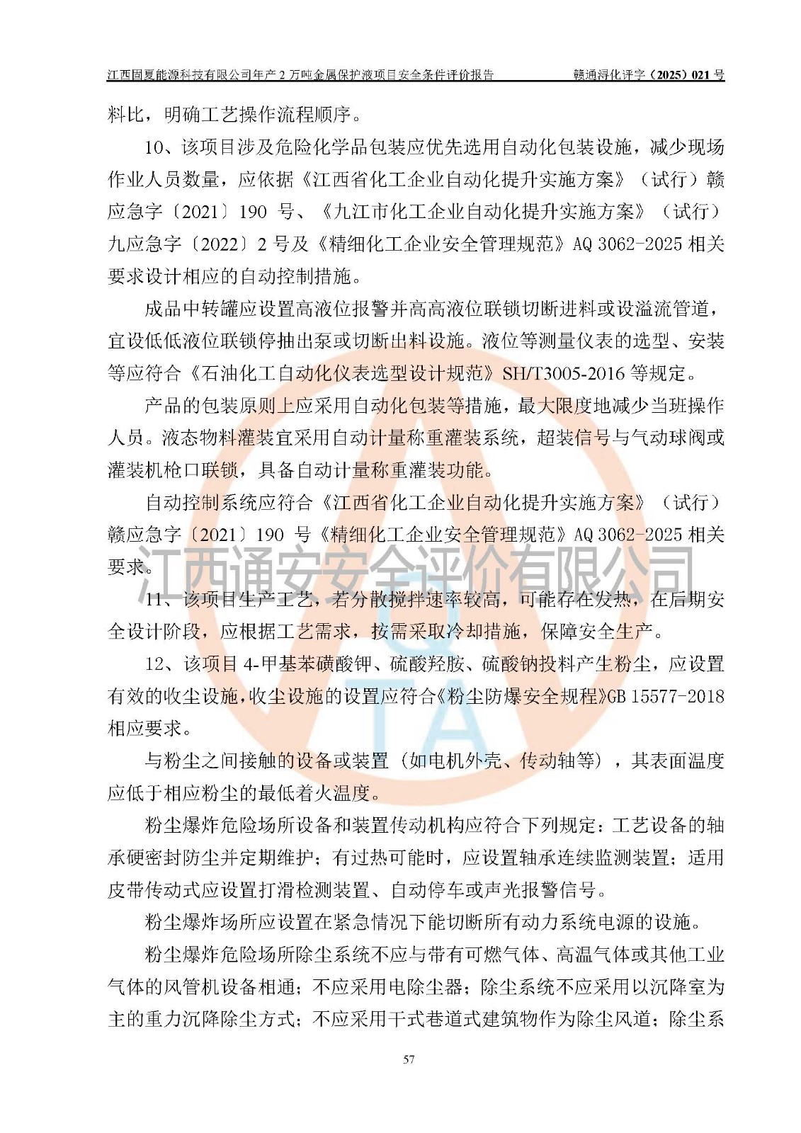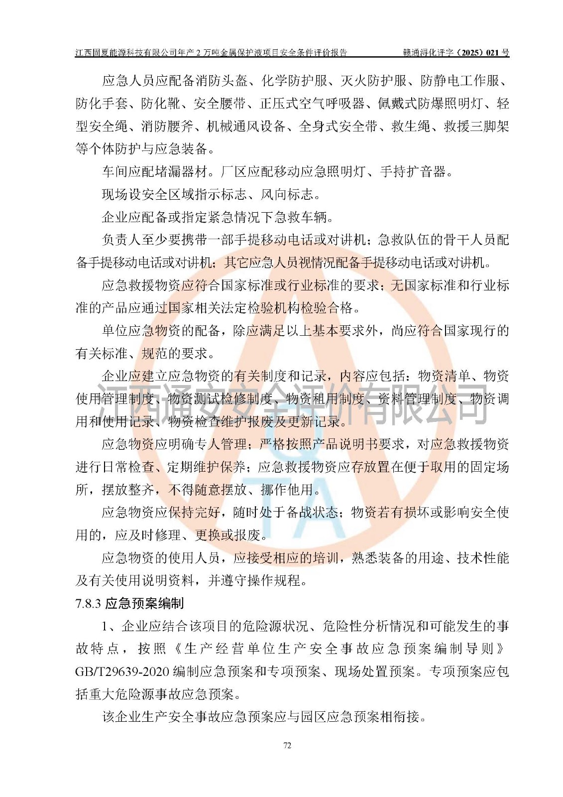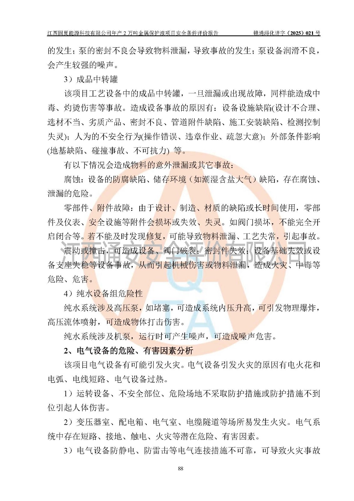 评价报告名称 | 江西固夏能源科技有限公司年产2万吨金属保护液项目安全条件评价报告 | |||