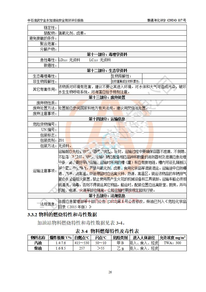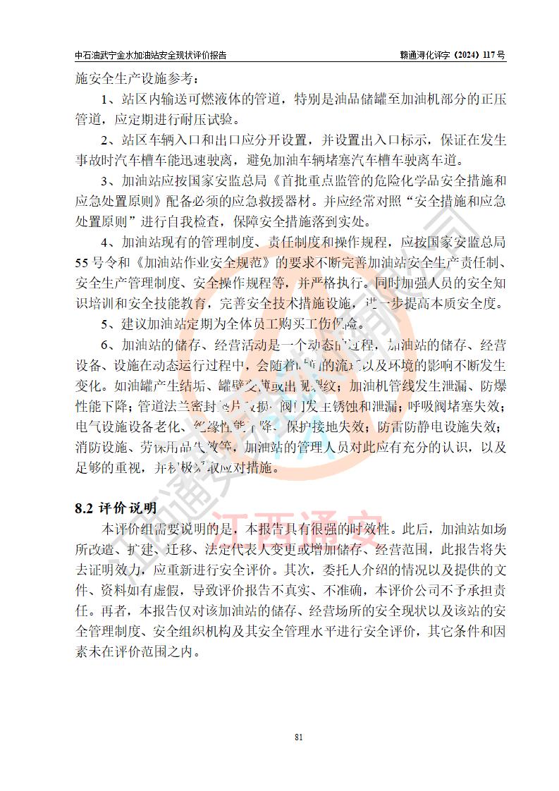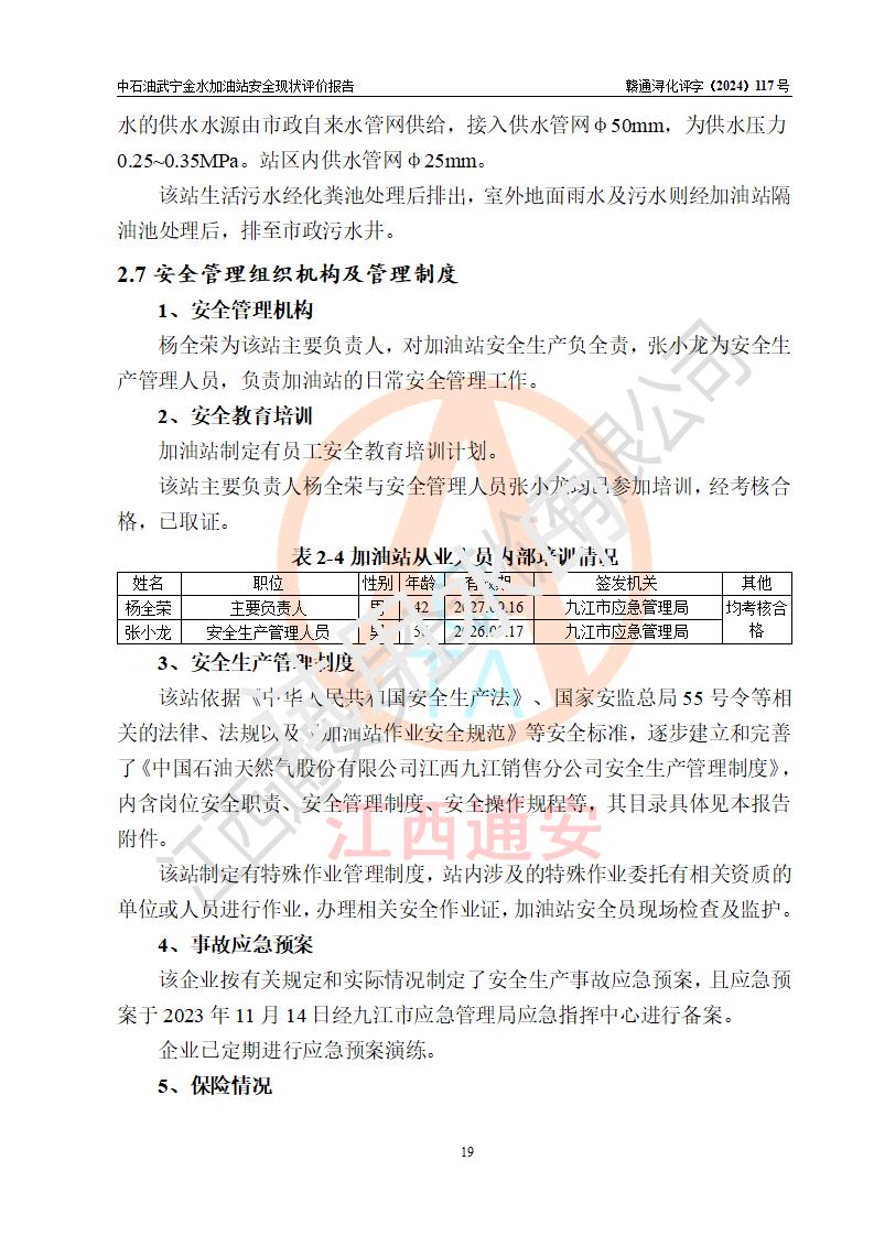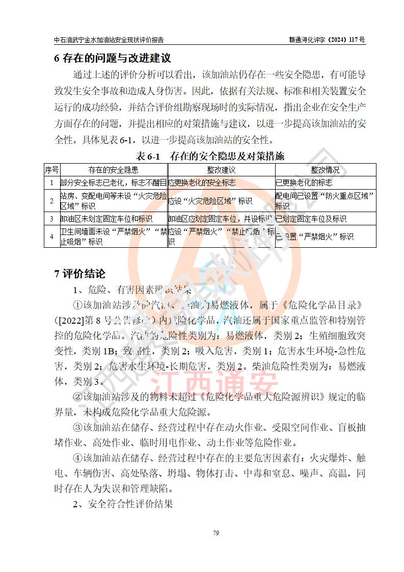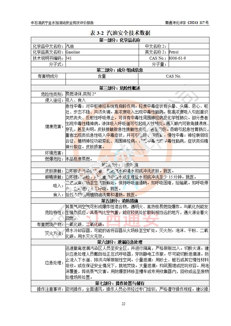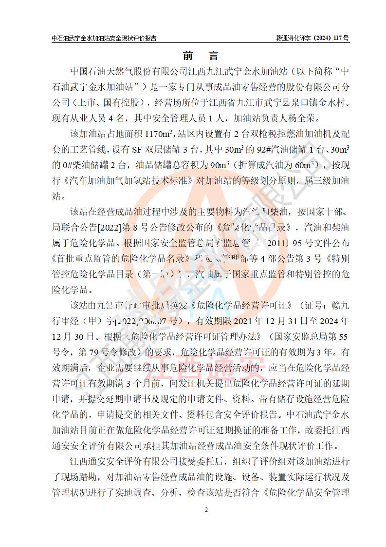 评价报告名称 | 中国石油天然气股份有限公司江西九江武宁金水加油站安全现状评价报告 | |||