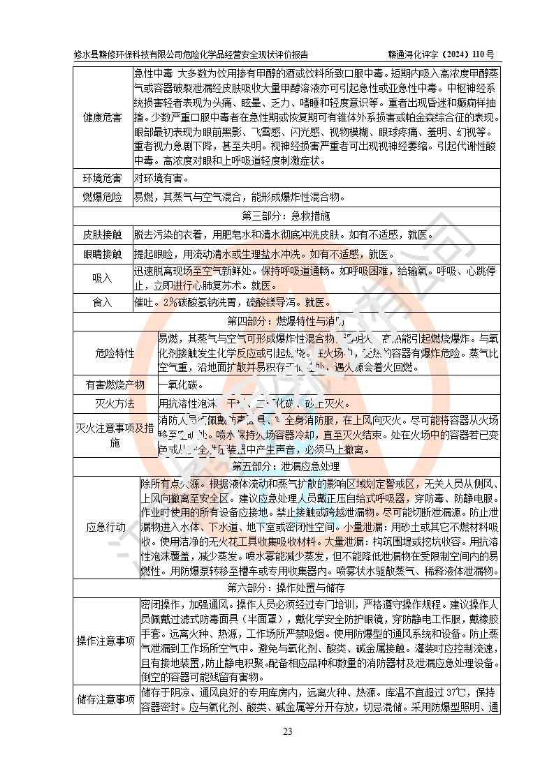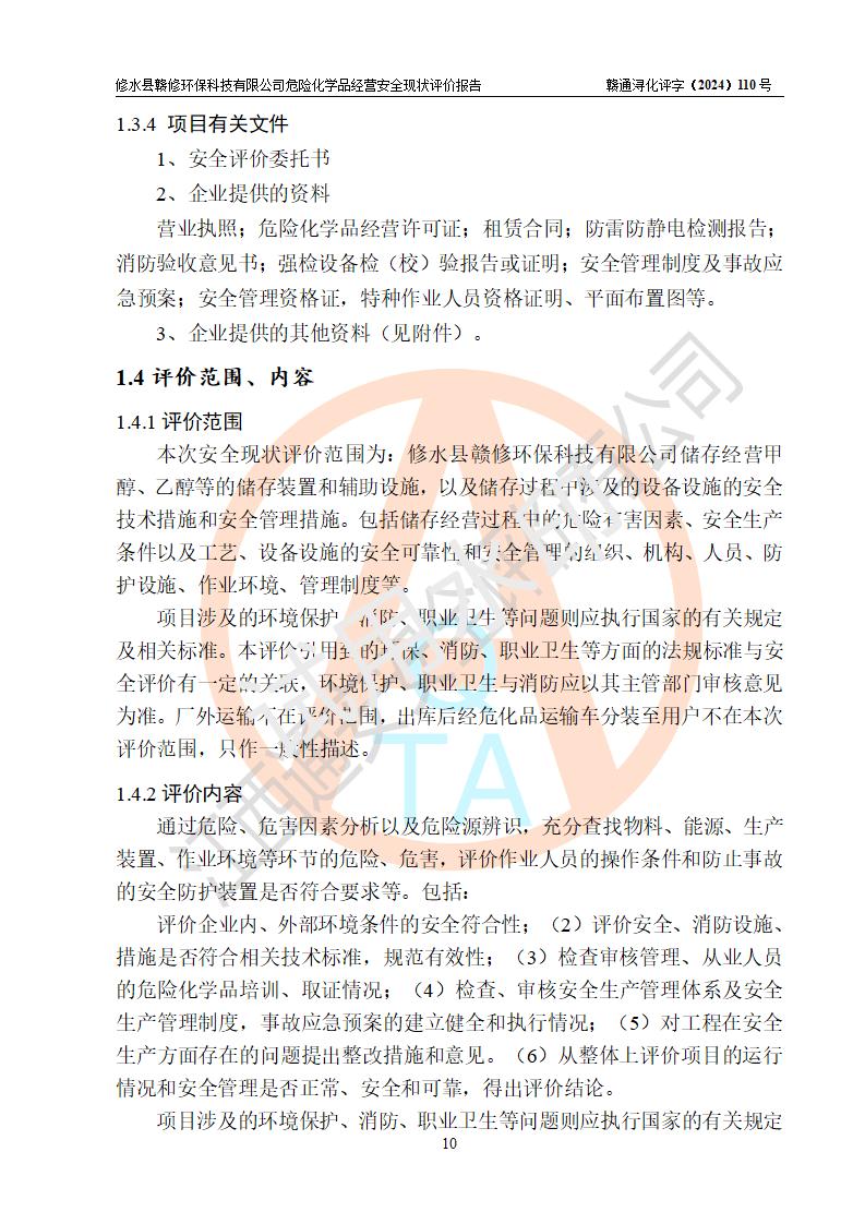评价报告名称 | 修水县赣修**科技有限公司危险化学品经营安全现状评价报告 | ||||||