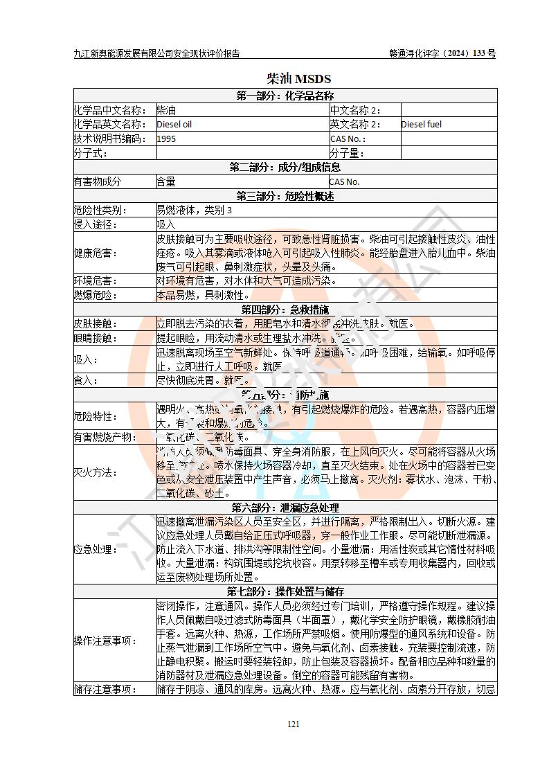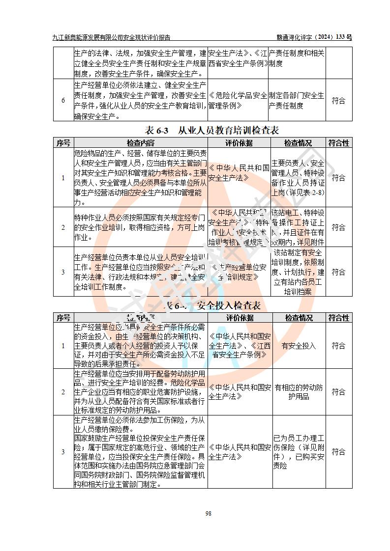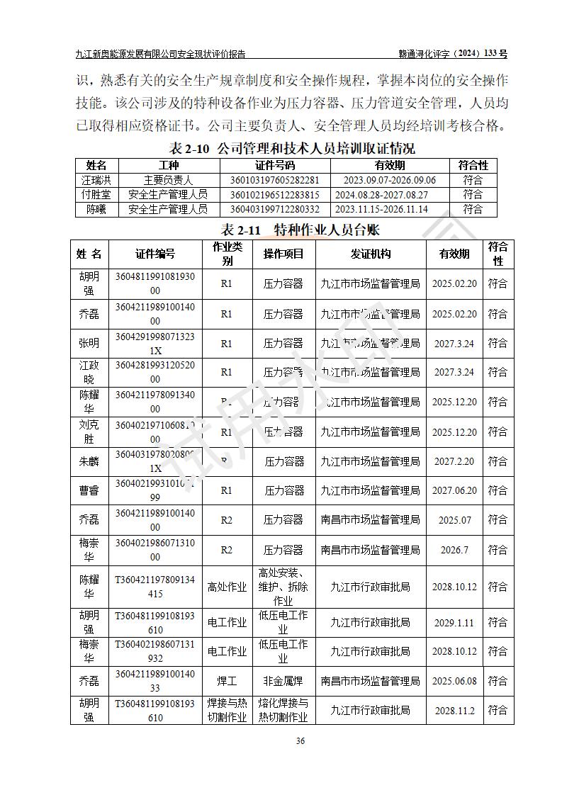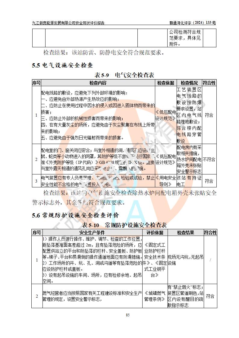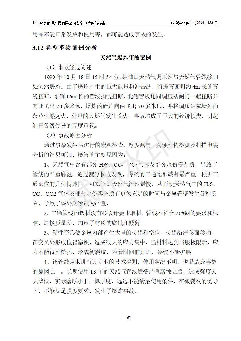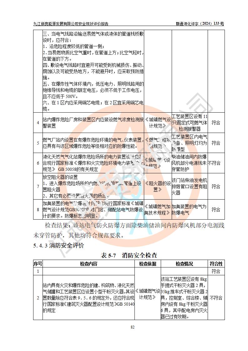 评价结论 | 九江新奥能源发展有限公司配套的安全设施及安全生产管理符合有关法规、标准规范要求,在落实本报告提出的安全对策措施与建议后,其风险可控,能达到可以接受的程度,可满足安全生产条件。 | ||||||
