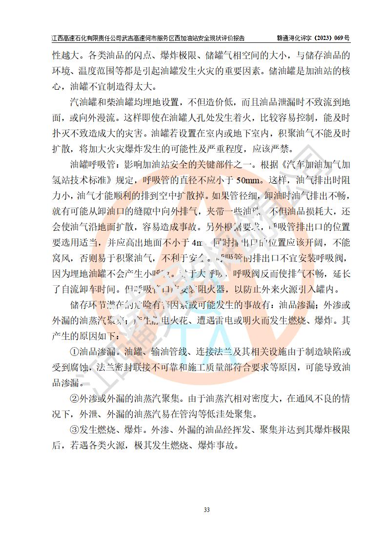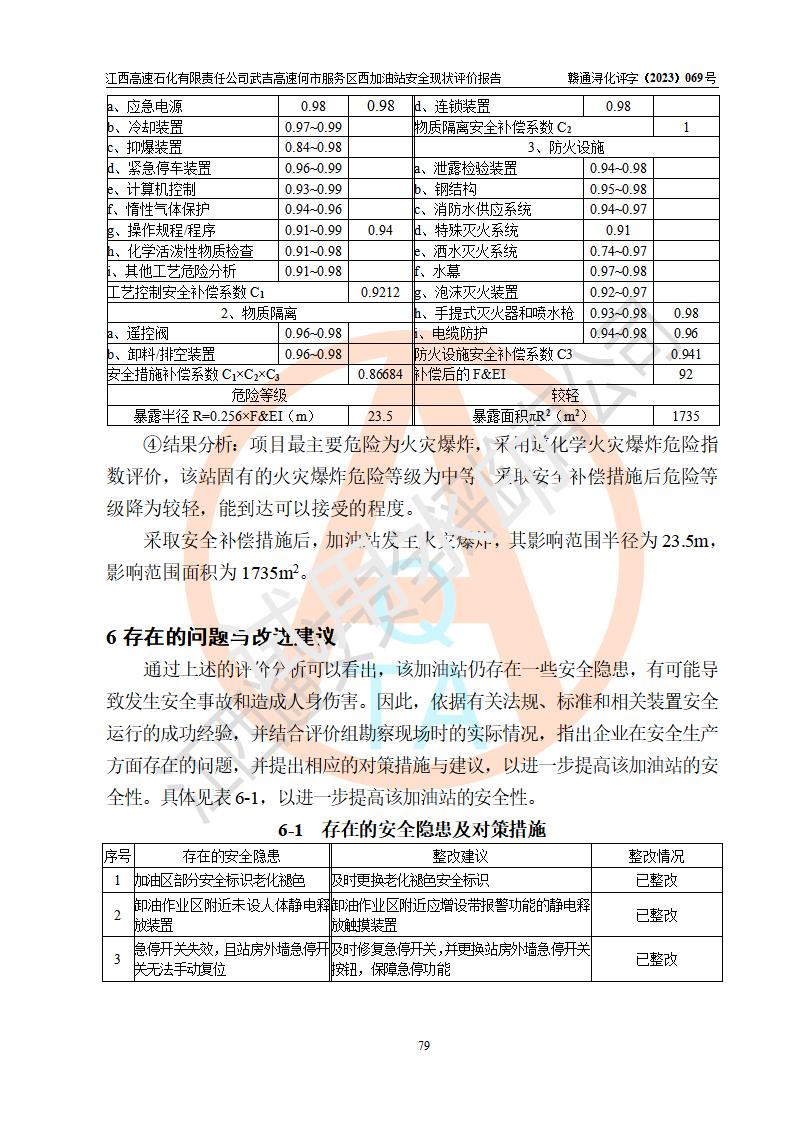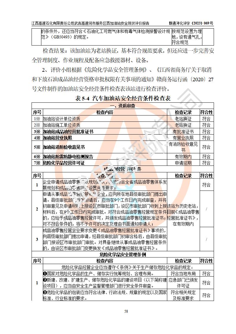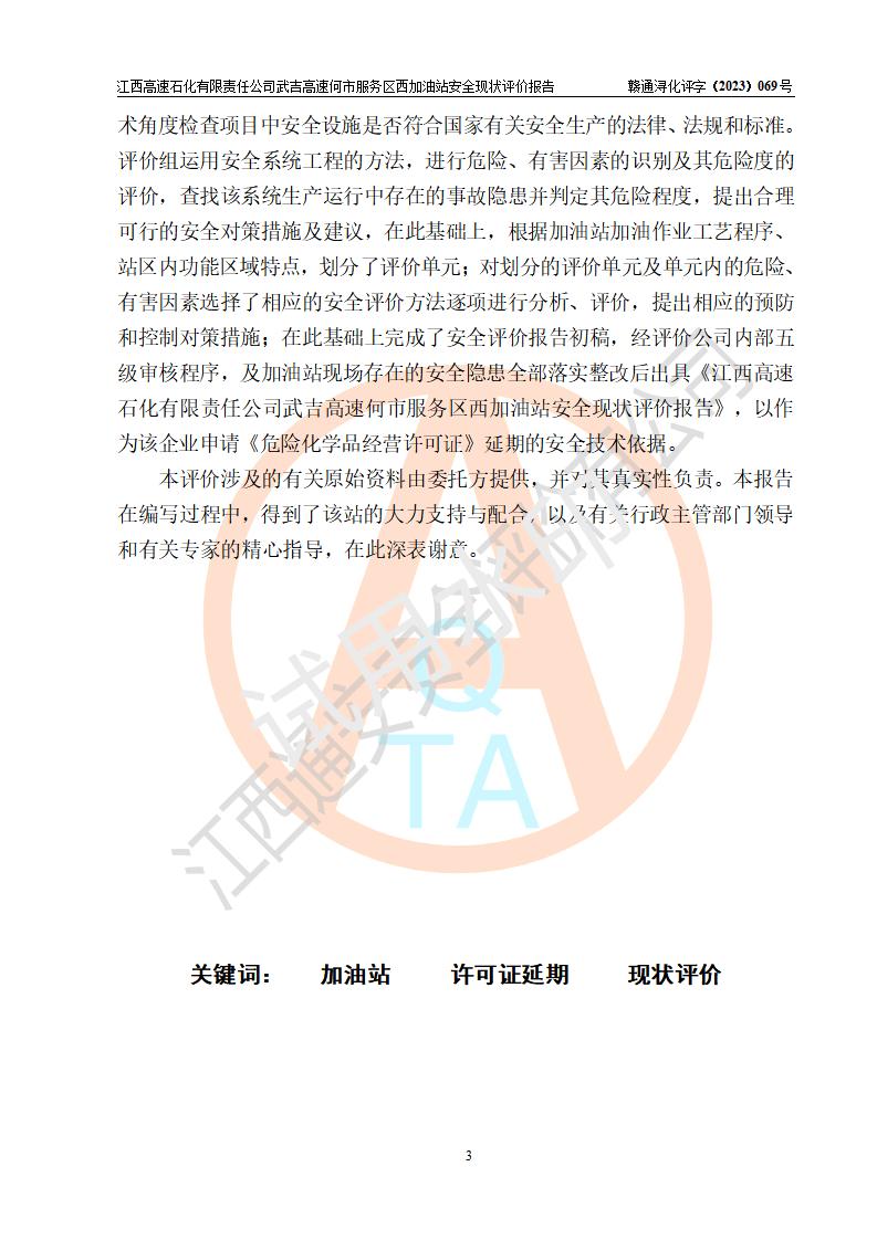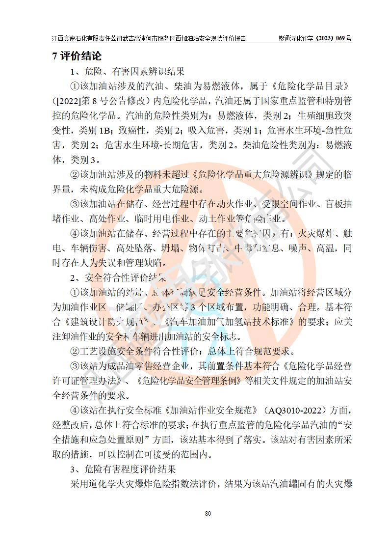 评价报告名称 | 江西高速石化有限责任公司武吉高速何市服务区西加油站安全现状评价报告 | |||