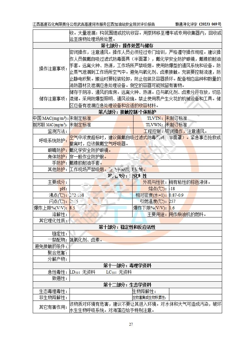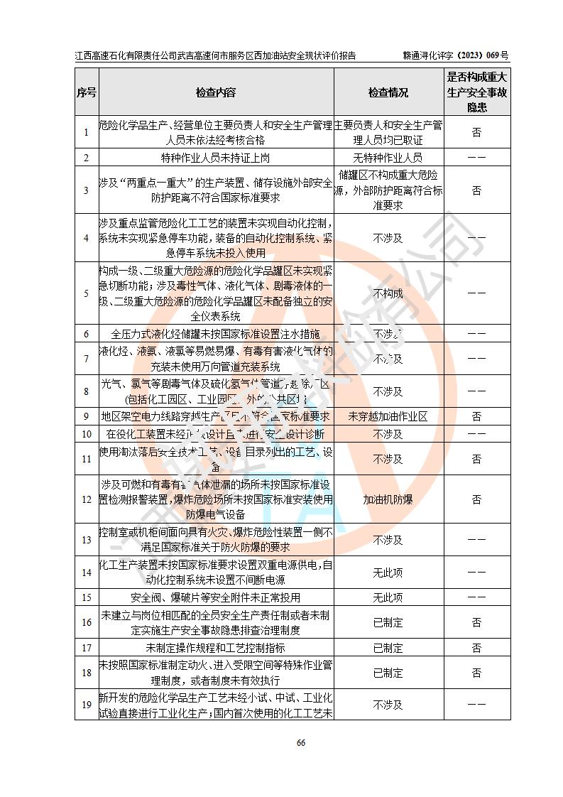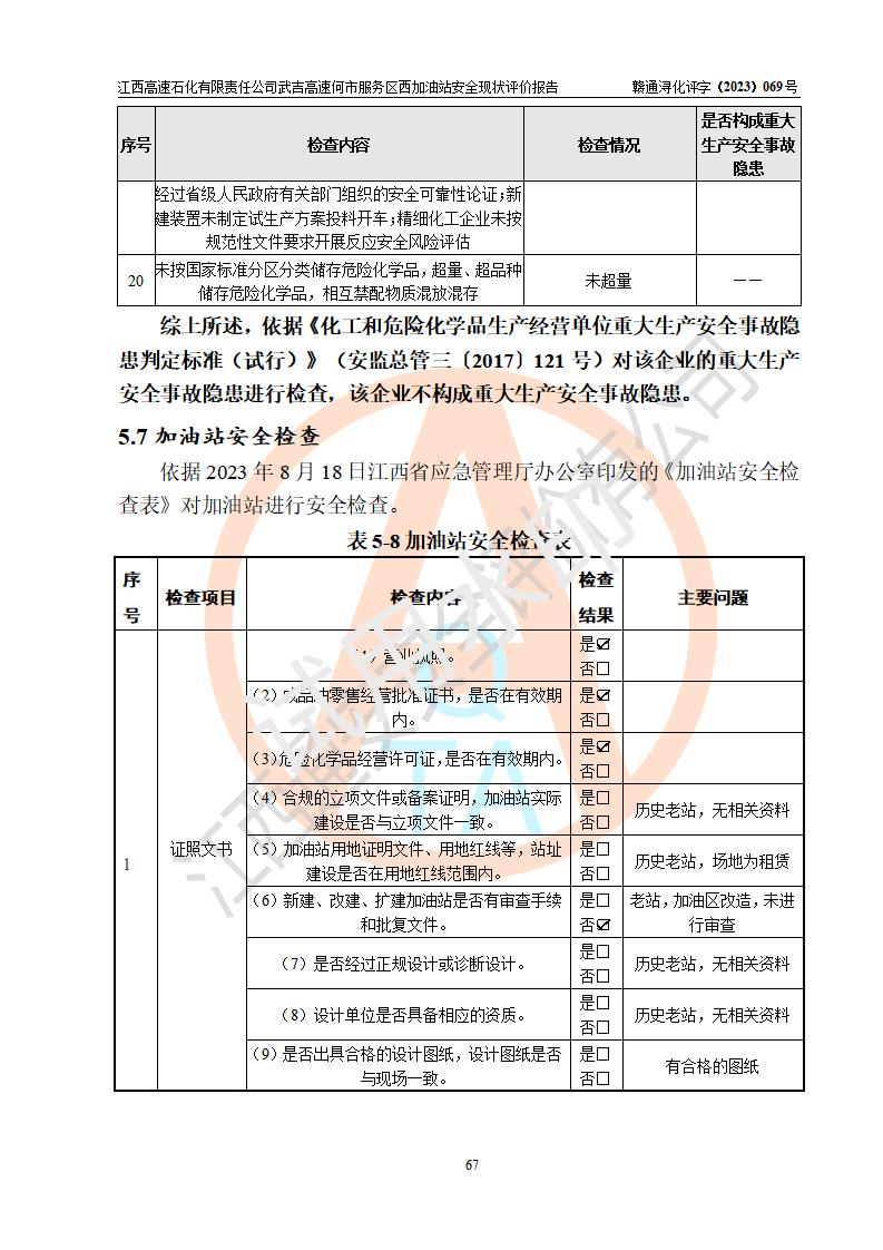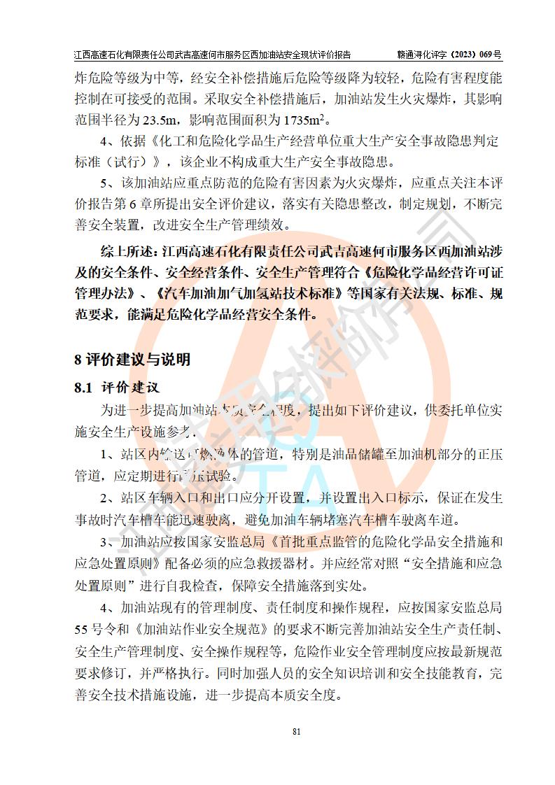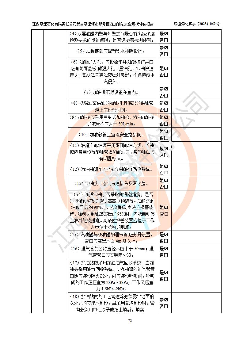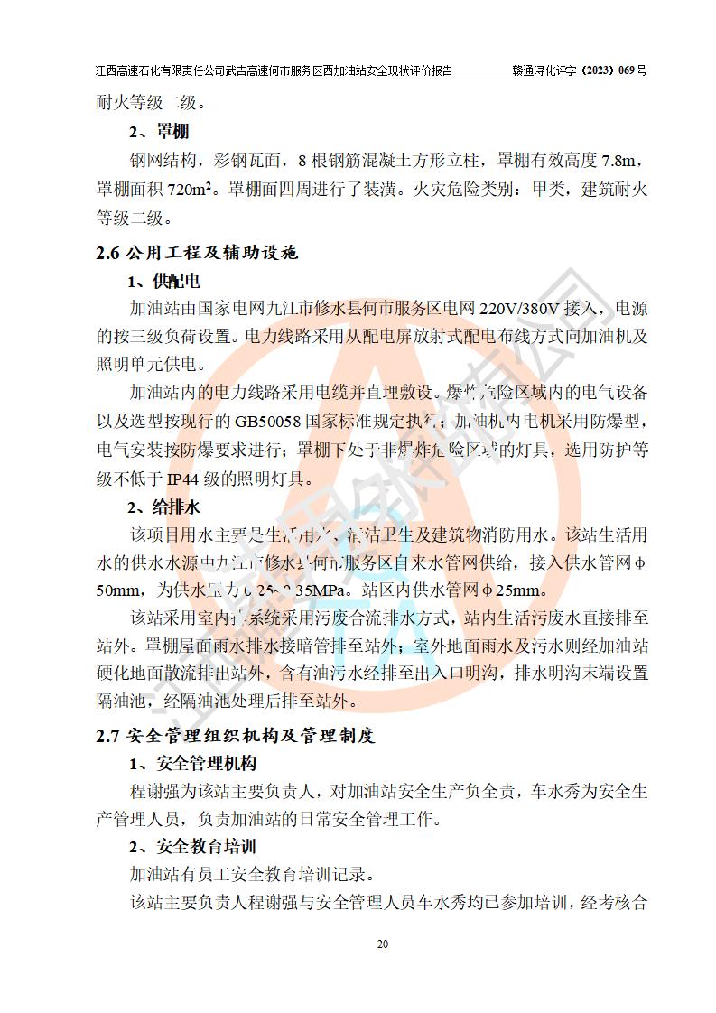评价报告名称 | 江西高速石化有限责任公司武吉高速何市服务区西加油站安全现状评价报告 | |||