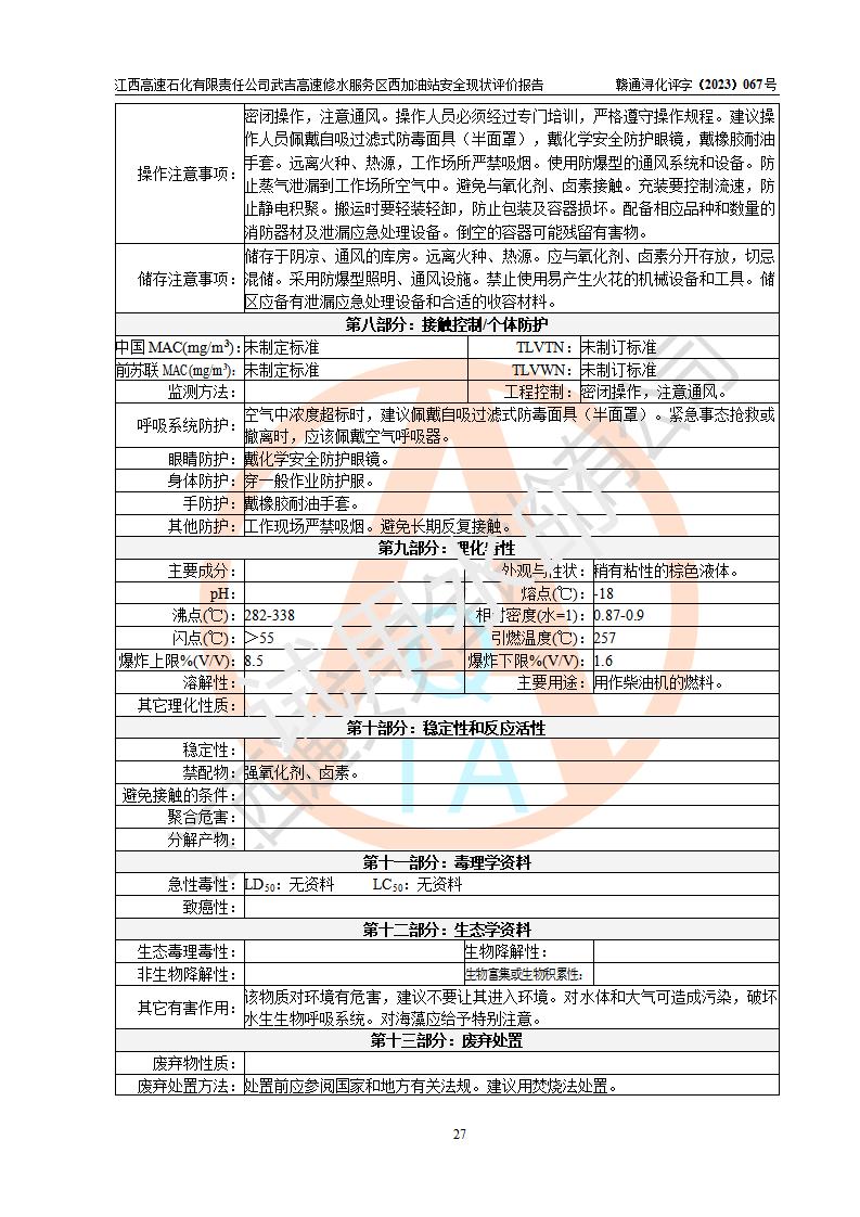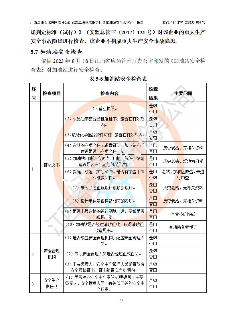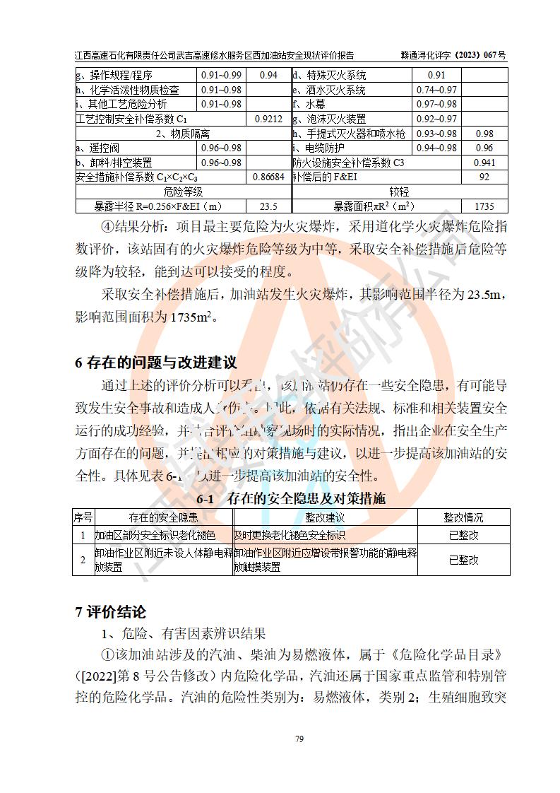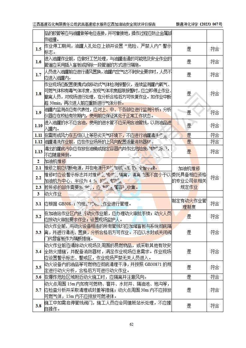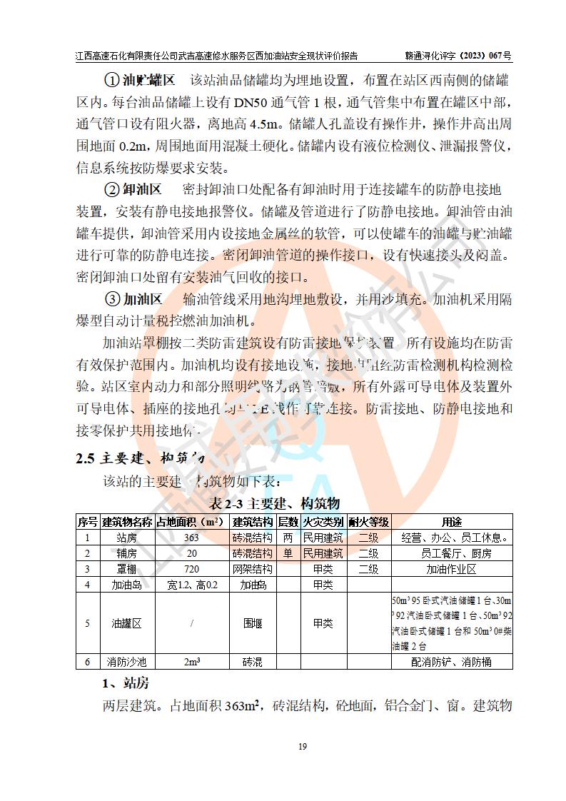 评价报告名称 | 江西高速石化有限责任公司武吉高速修水服务区西加油站安全现状评价报告 | |||