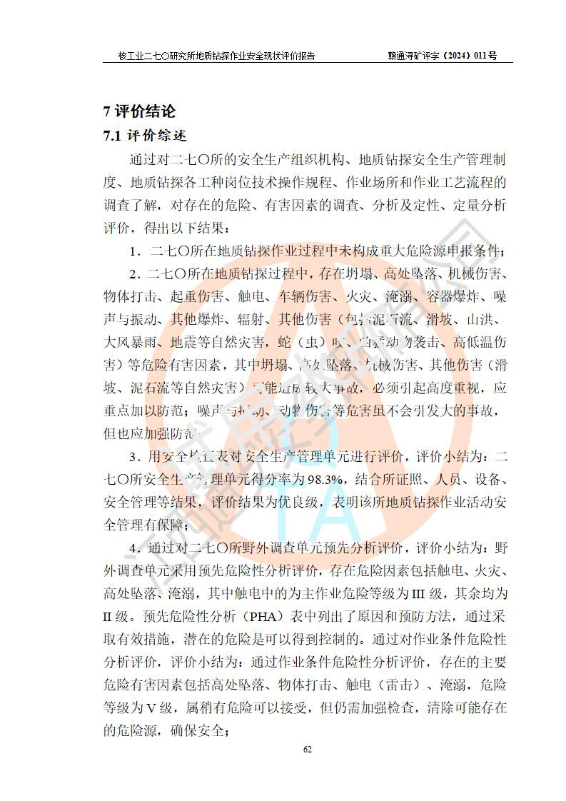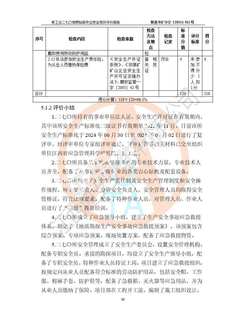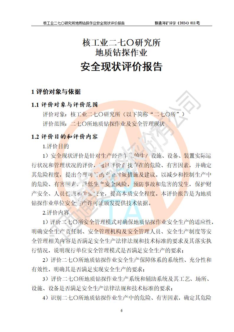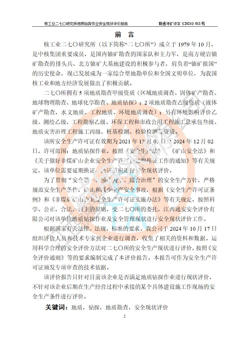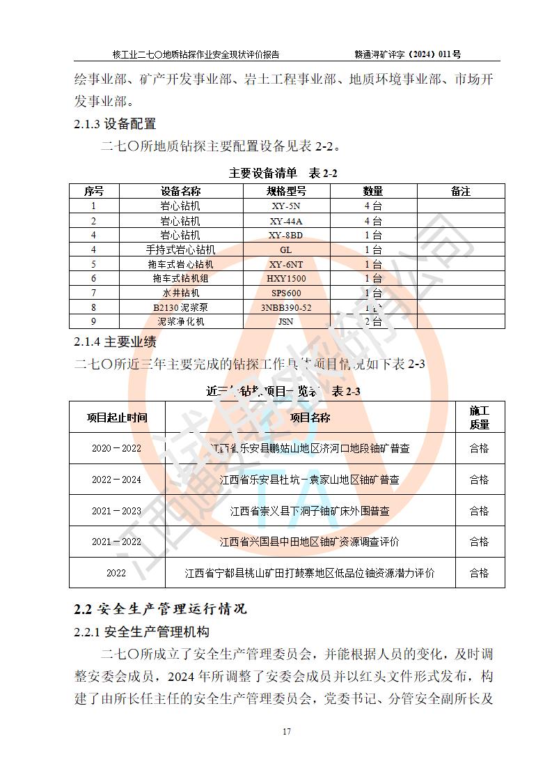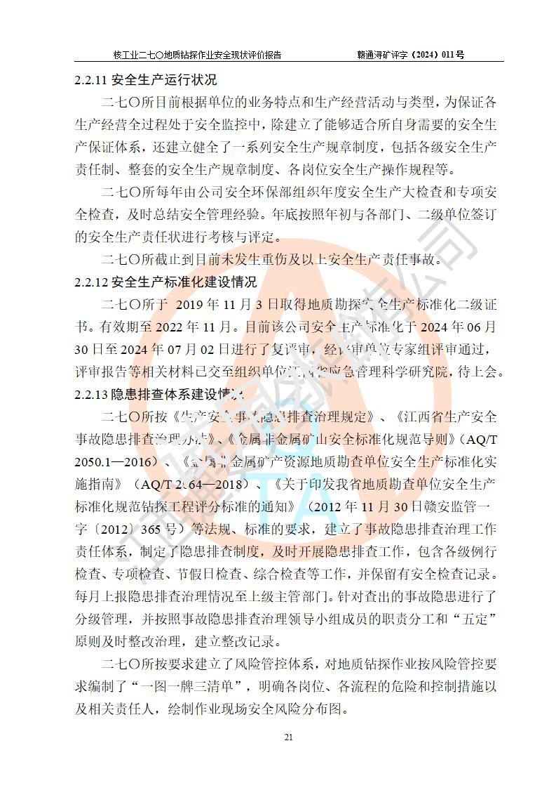 核工业二七〇研究所地质钻探作业安全现状评价报告